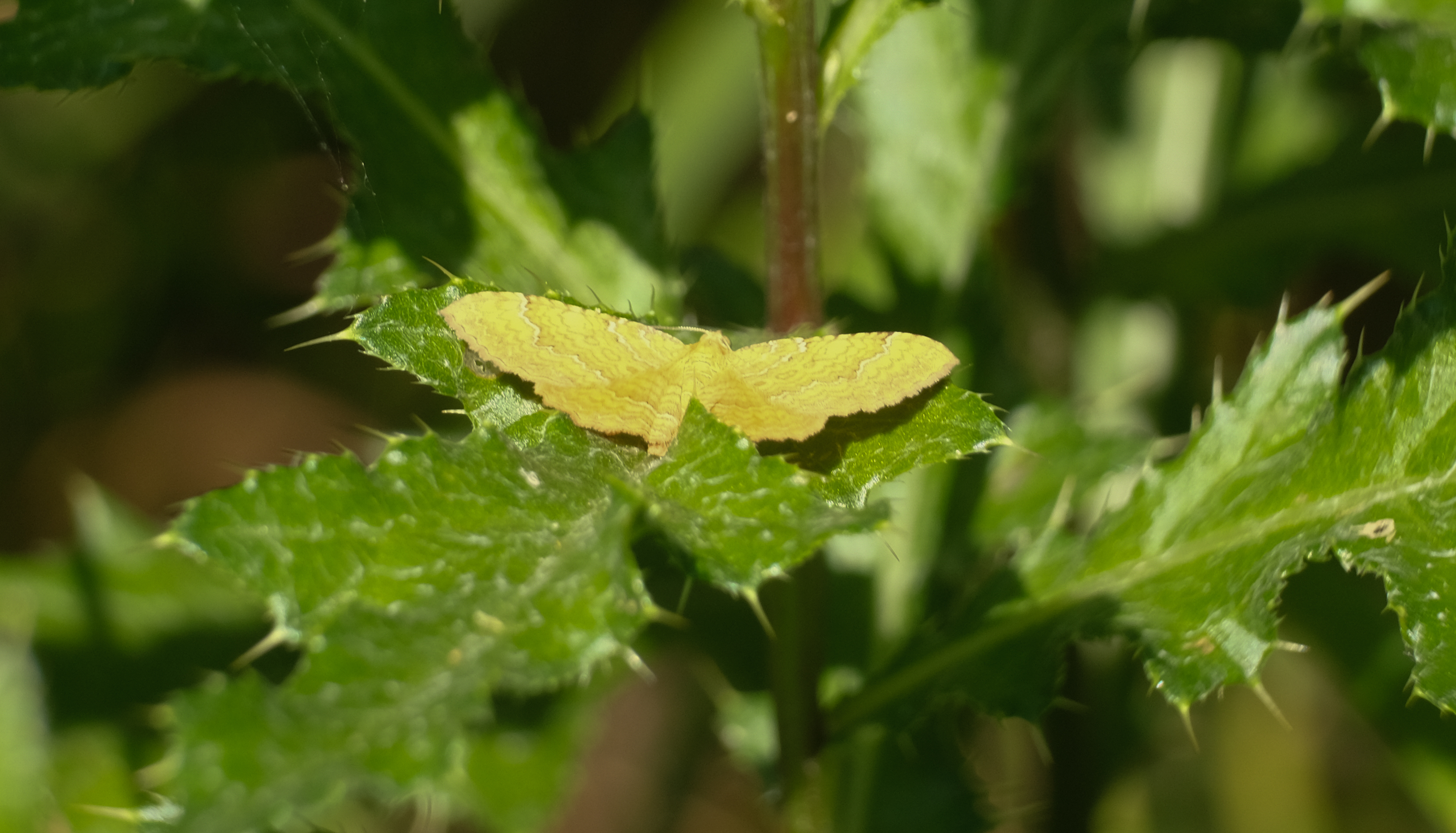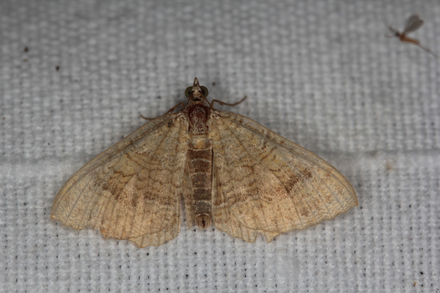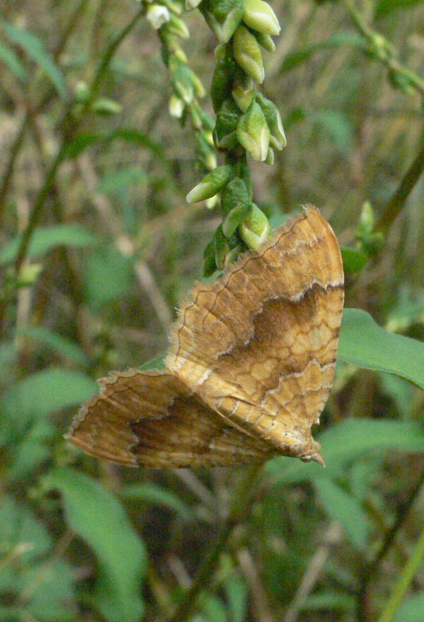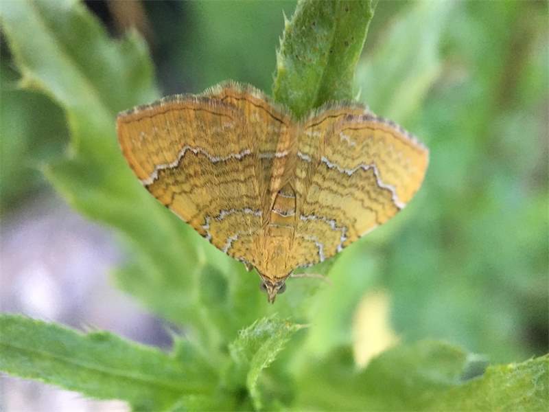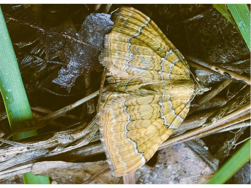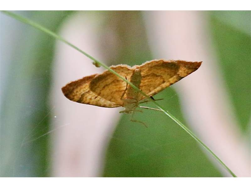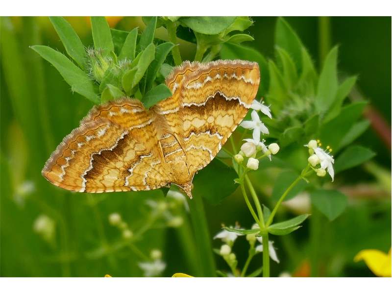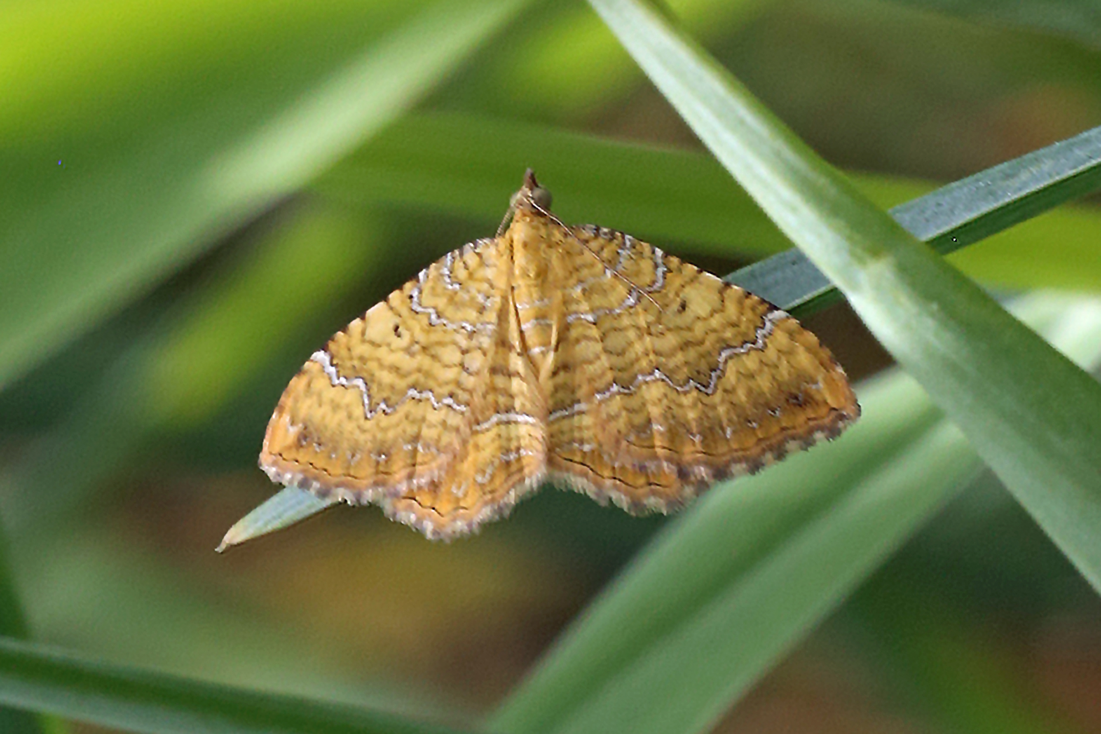 Ockergelbe Blattspanner, oder Löwenzahnspanner oder Brennnesselspanner (Camptogramma bilineata (Linnaeus, 1758)), am Licht, Radeberg, August 2013.