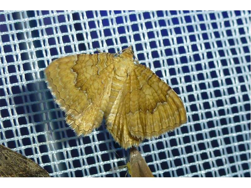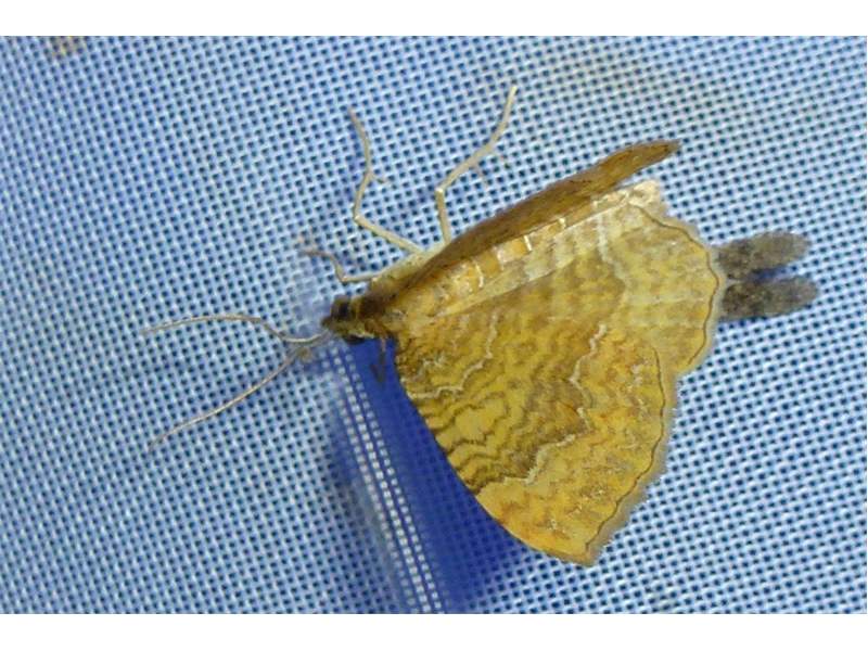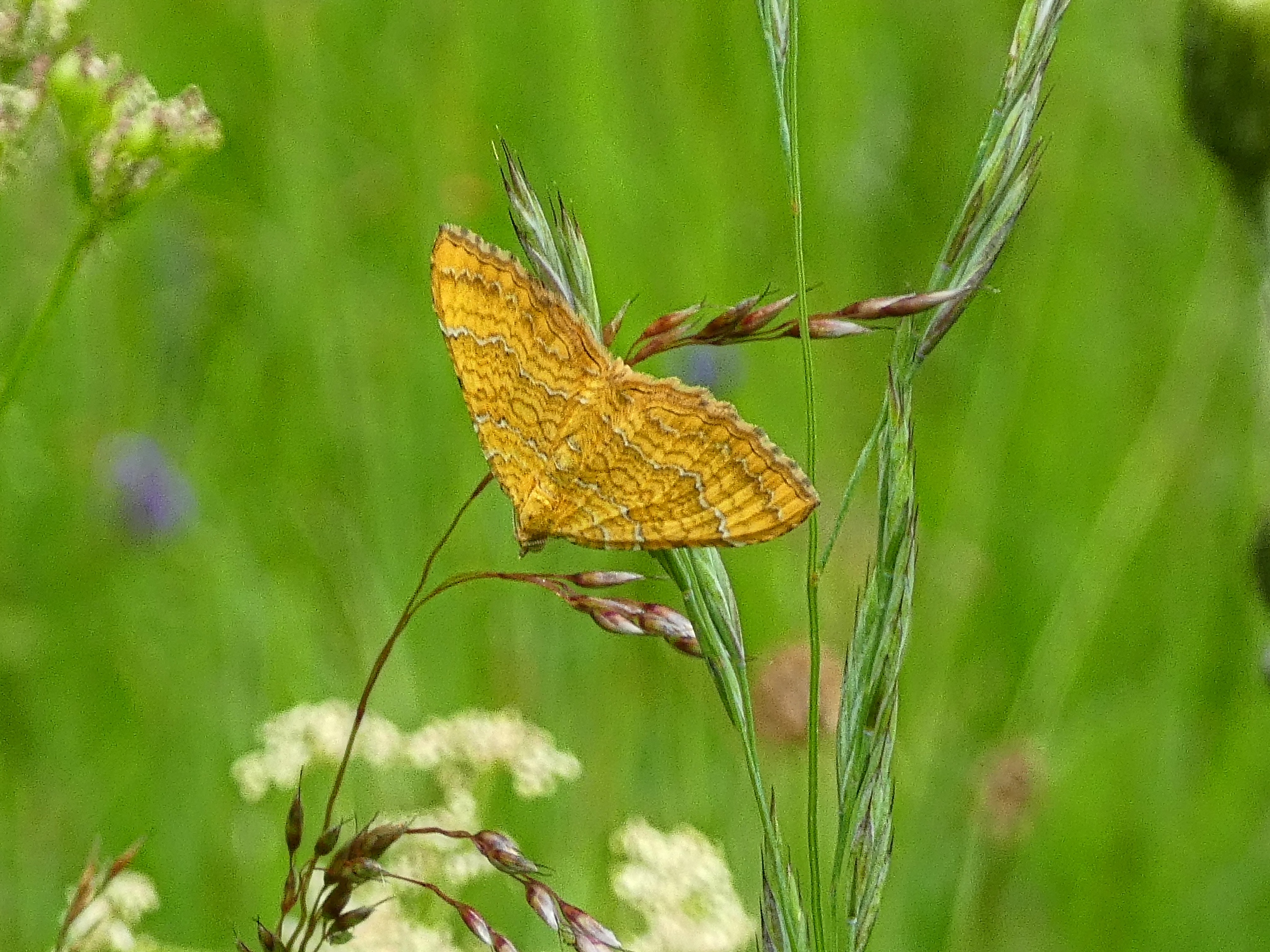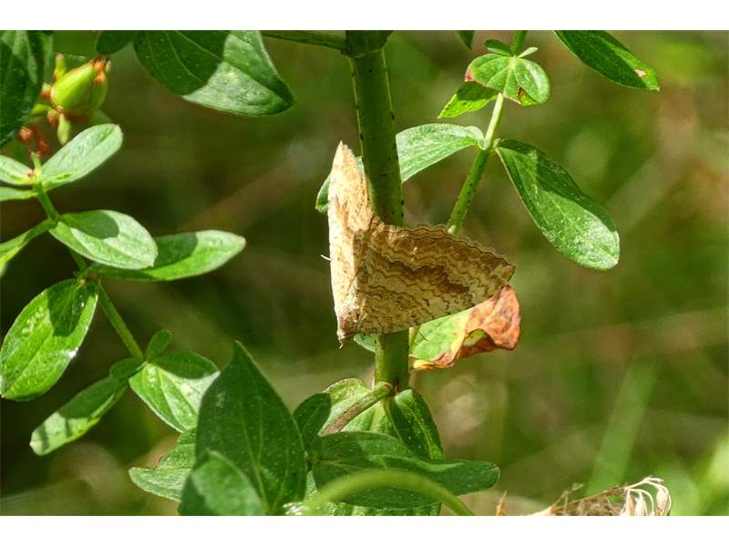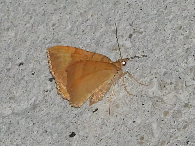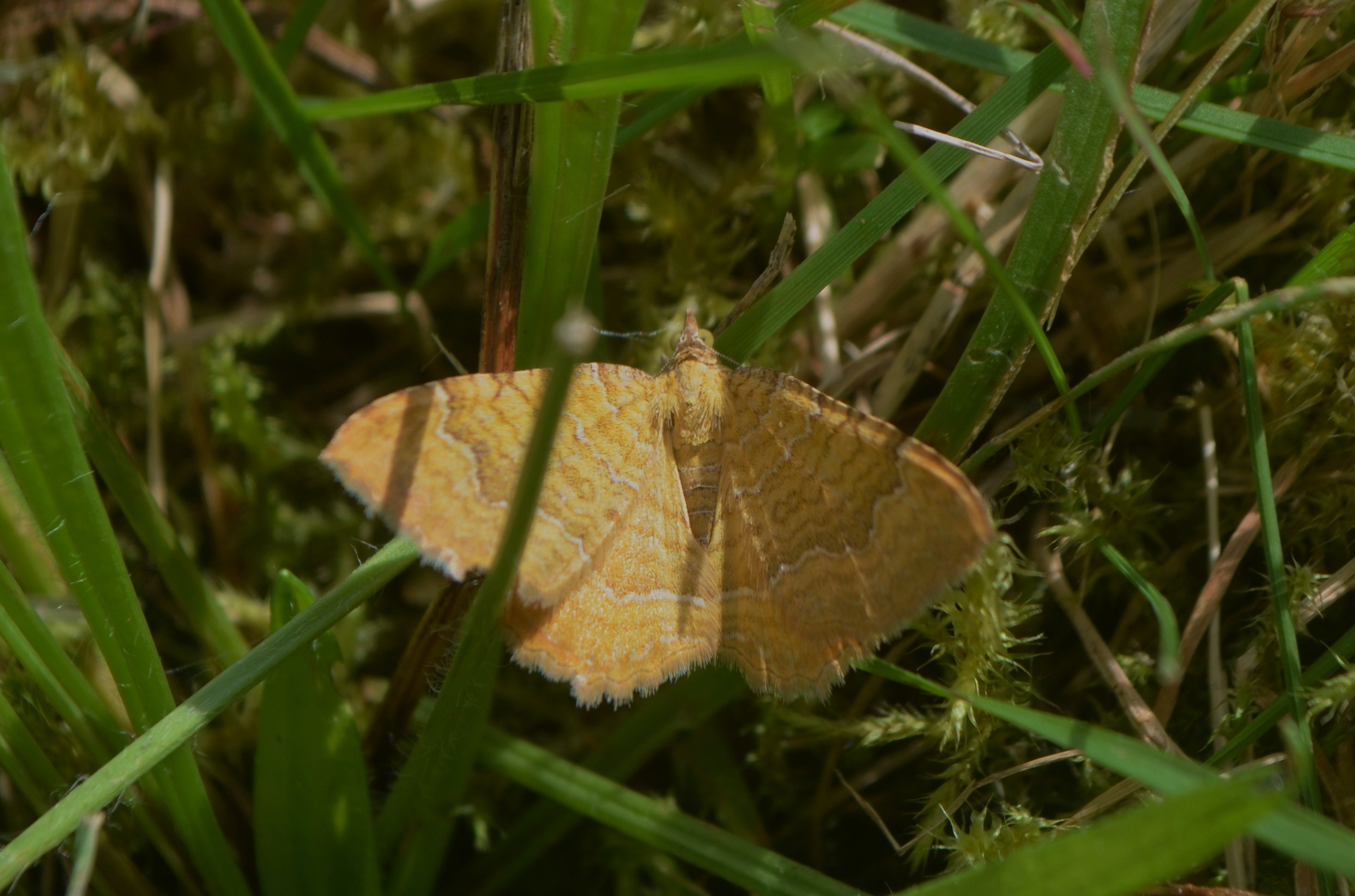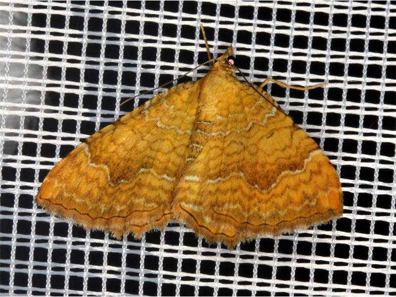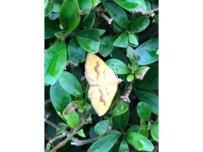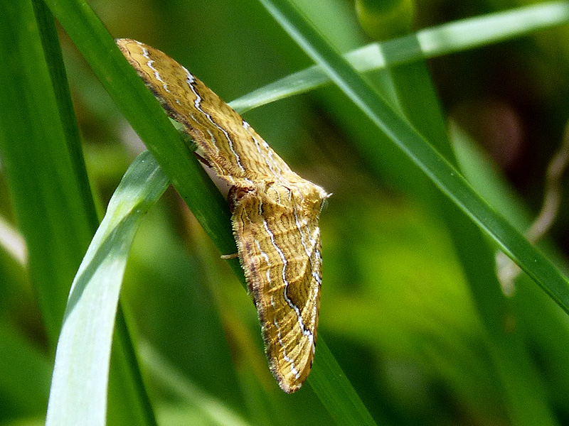 Ockergelbe Blattspanner, oder Löwenzahnspanner oder Brennnesselspanner (Camptogramma bilineata (Linnaeus, 1758)), am Licht, Radeberg, August 2013.