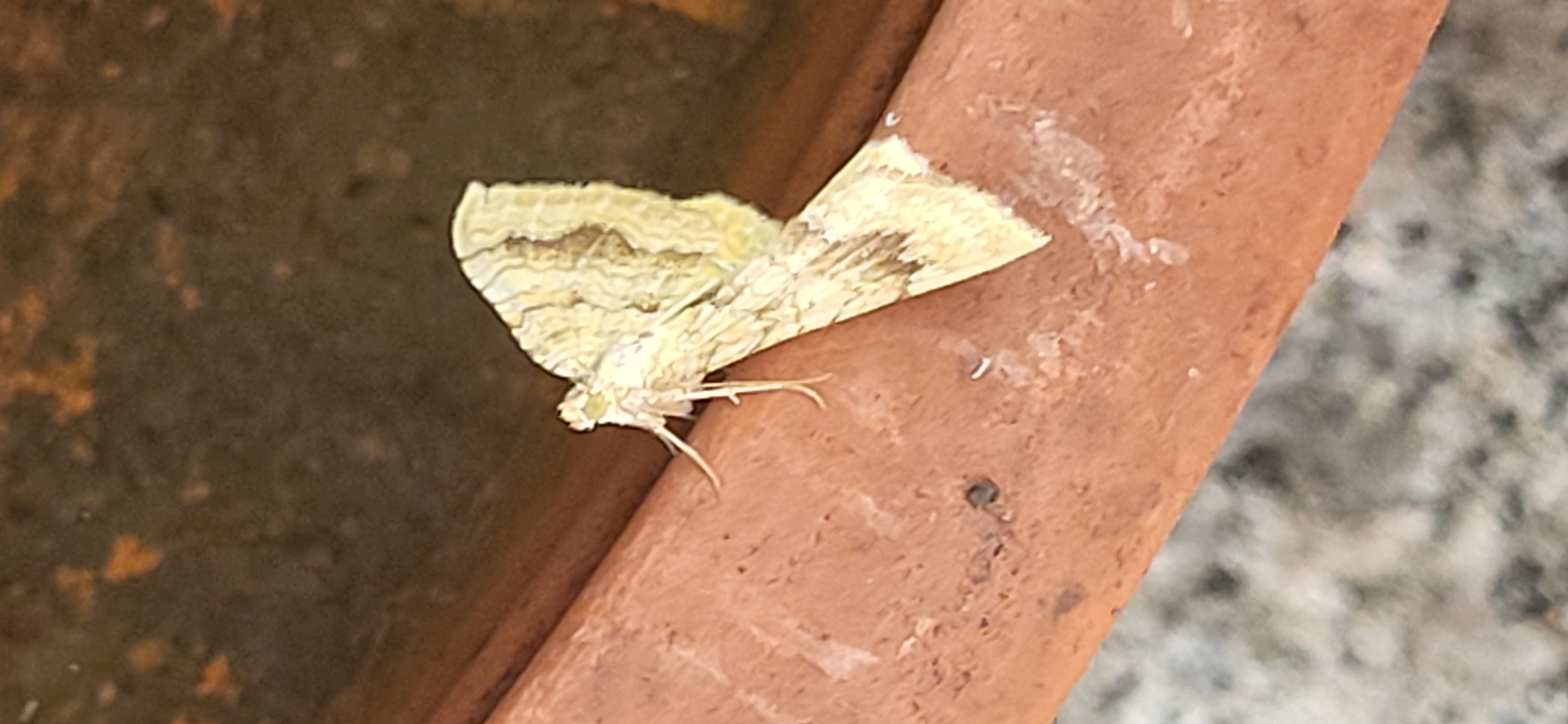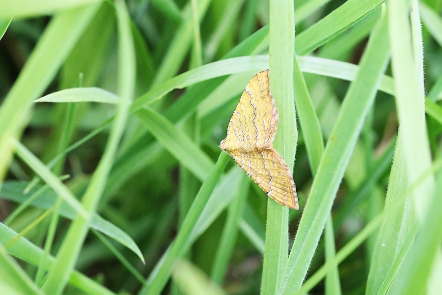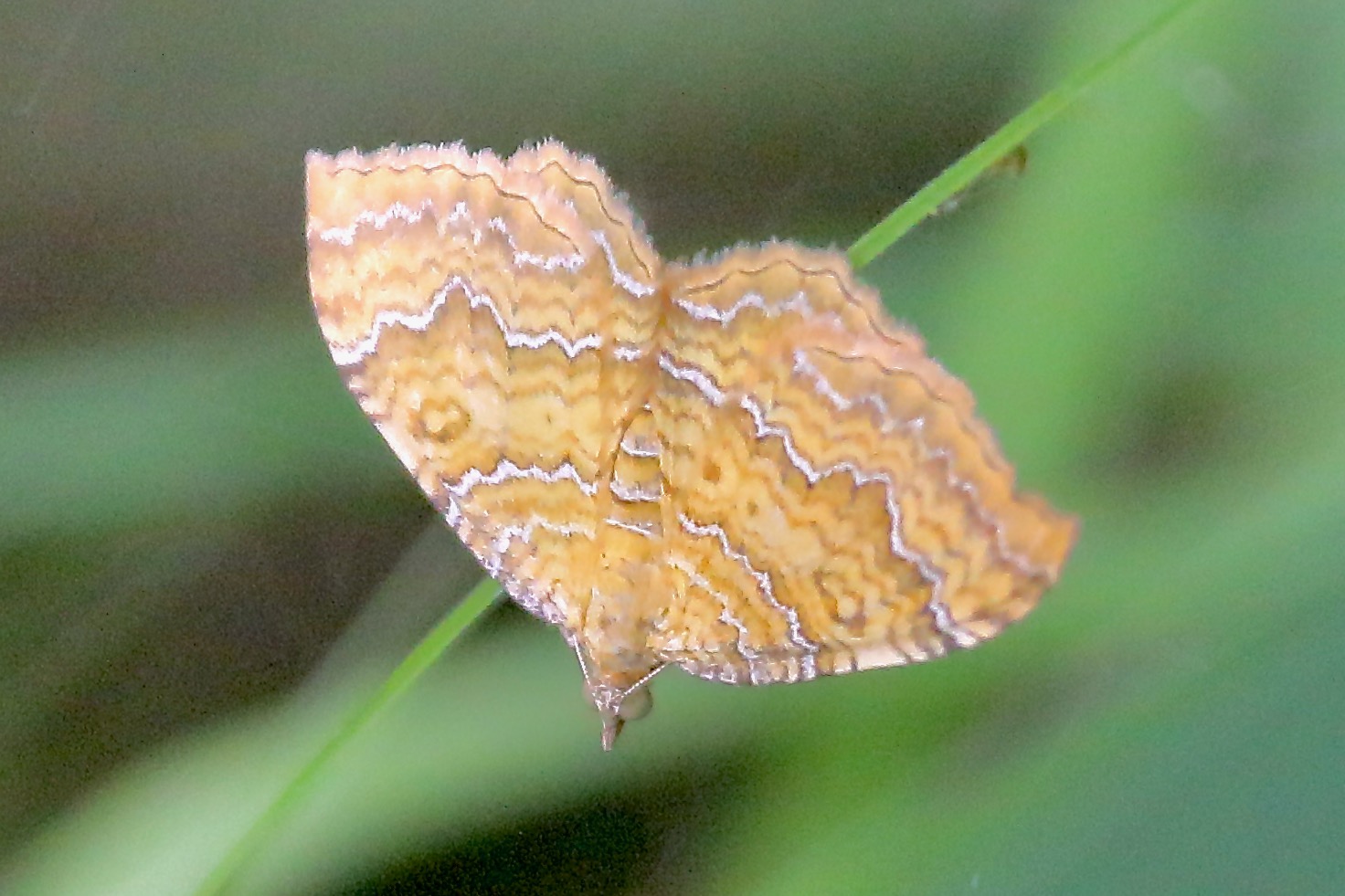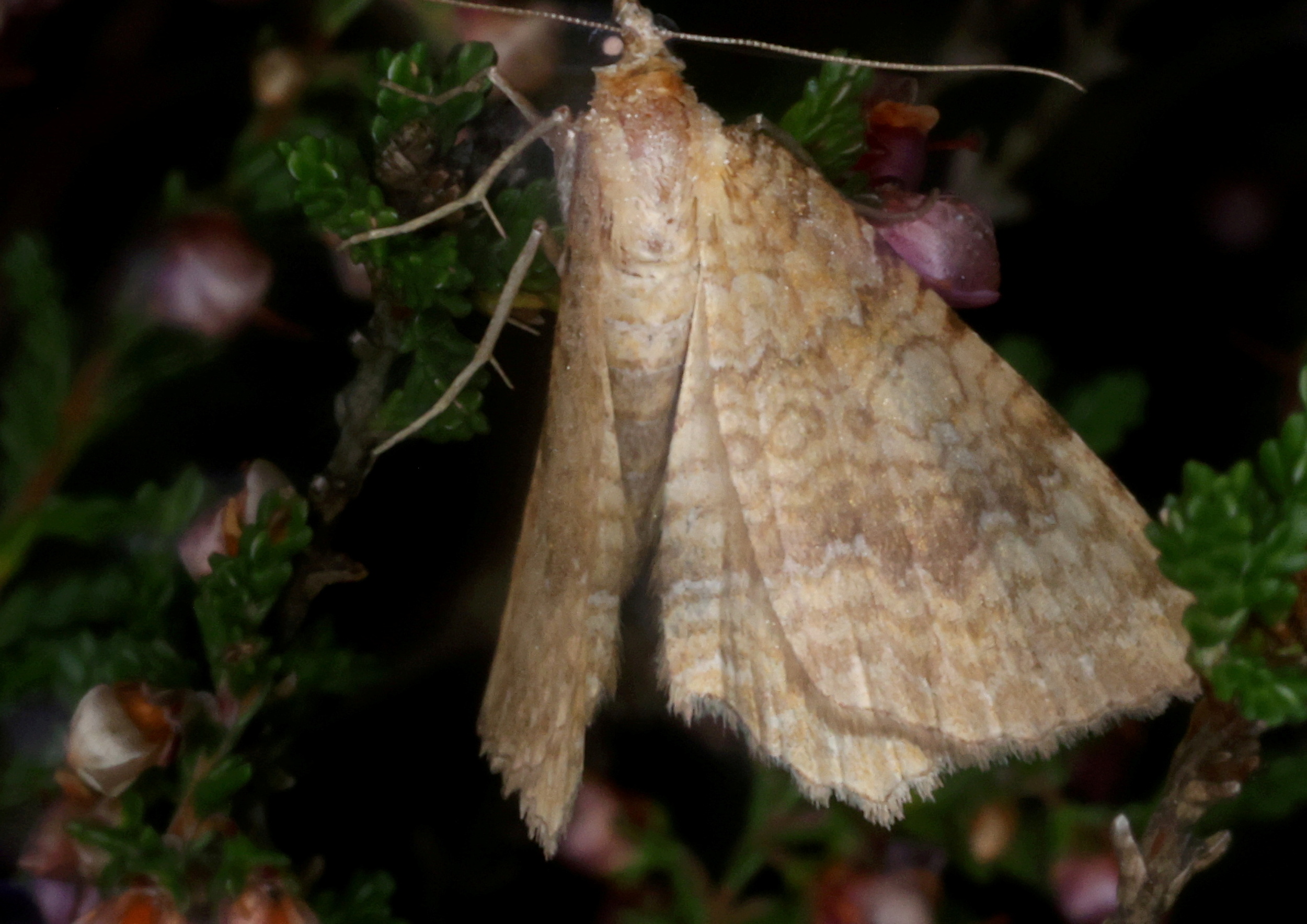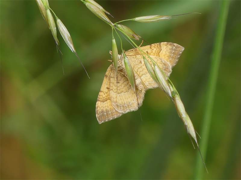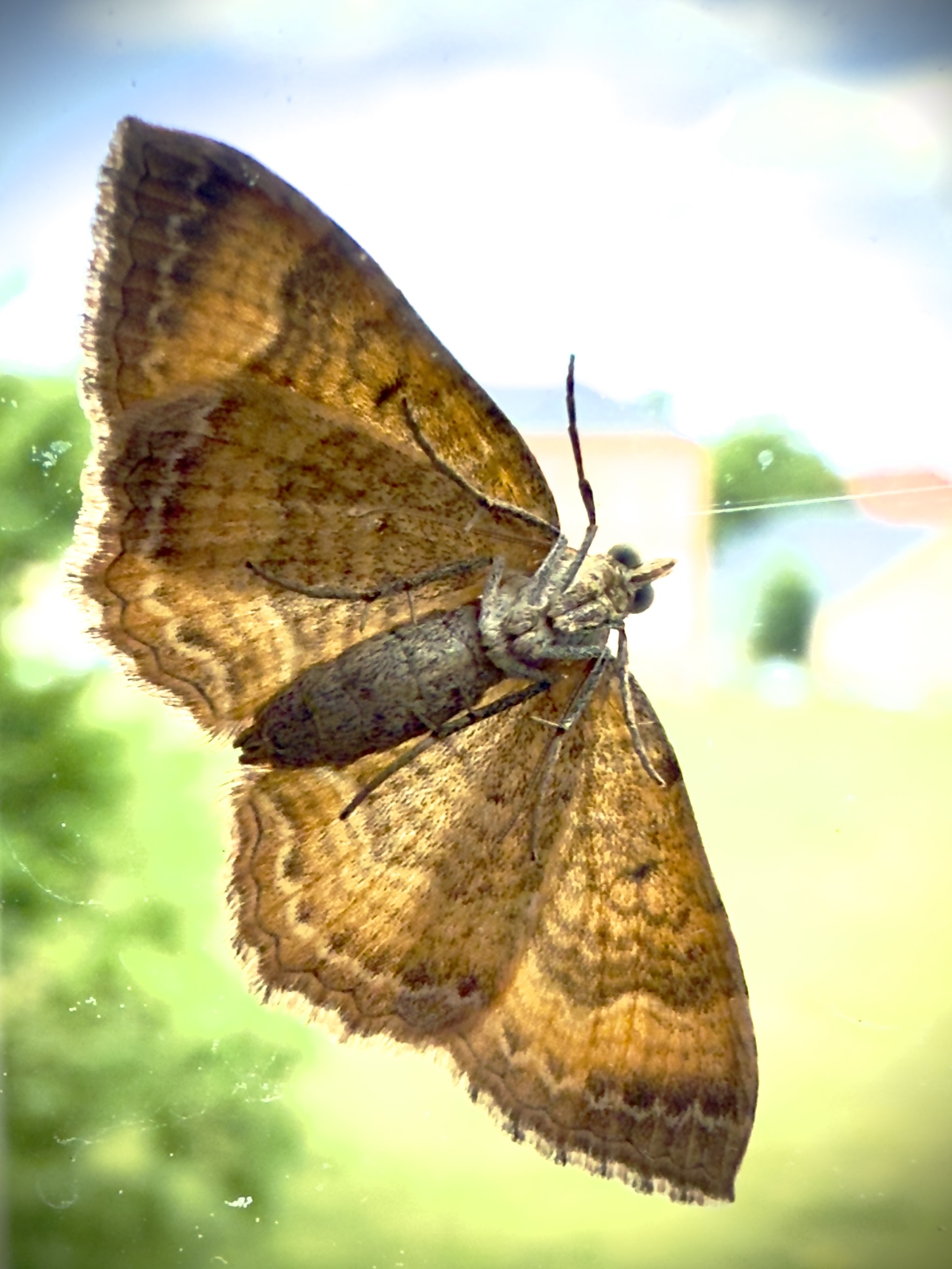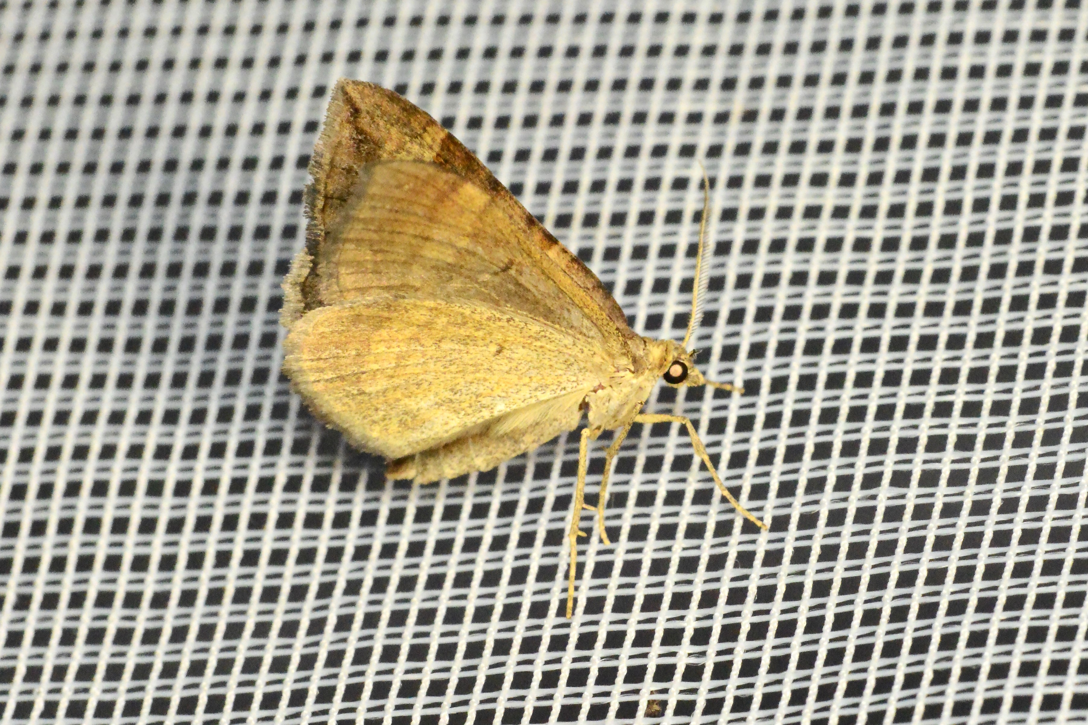 Ockergelbe Blattspanner, oder Löwenzahnspanner oder Brennnesselspanner (Camptogramma bilineata (Linnaeus, 1758)), am Licht, Radeberg, August 2013.
