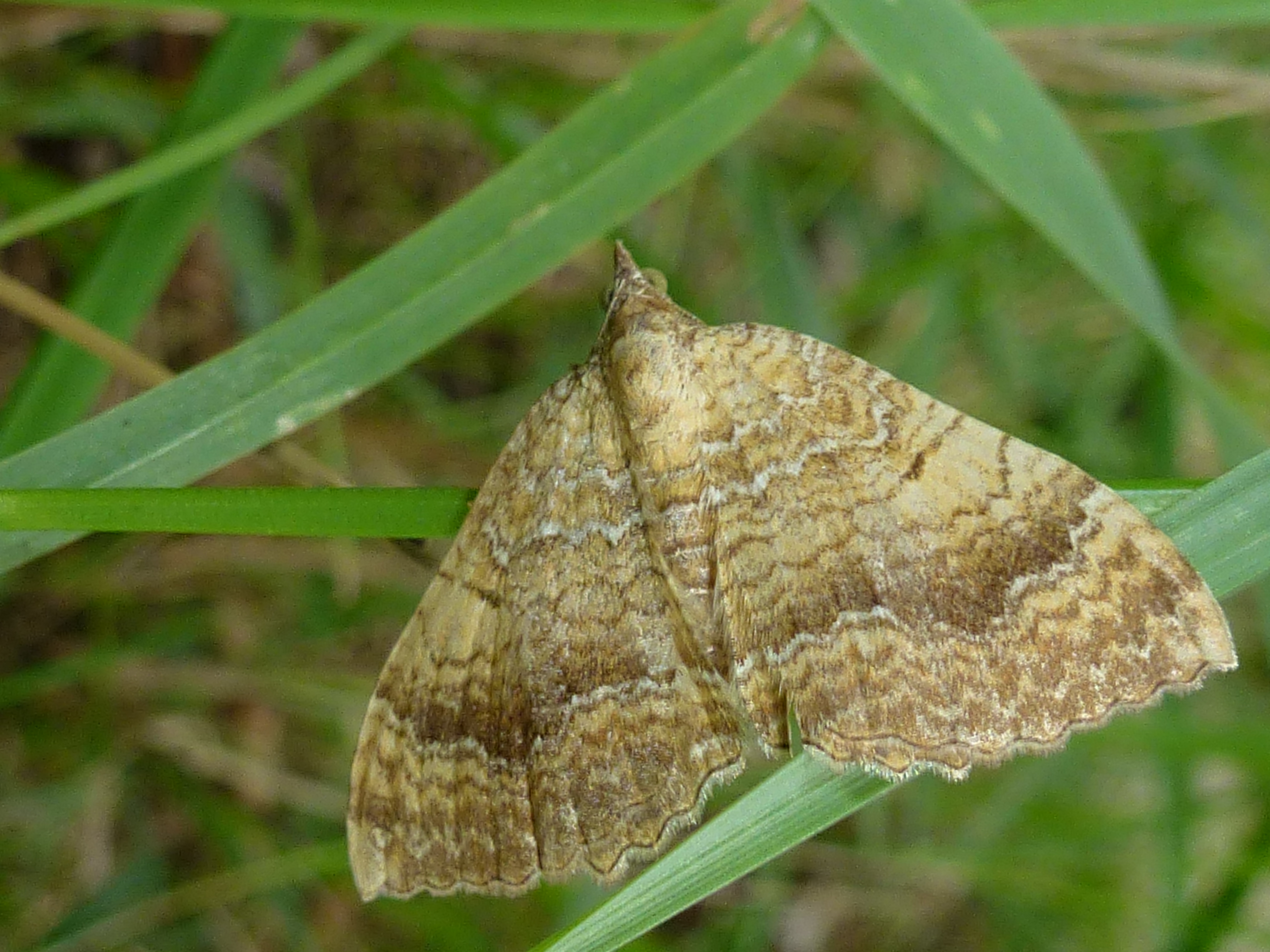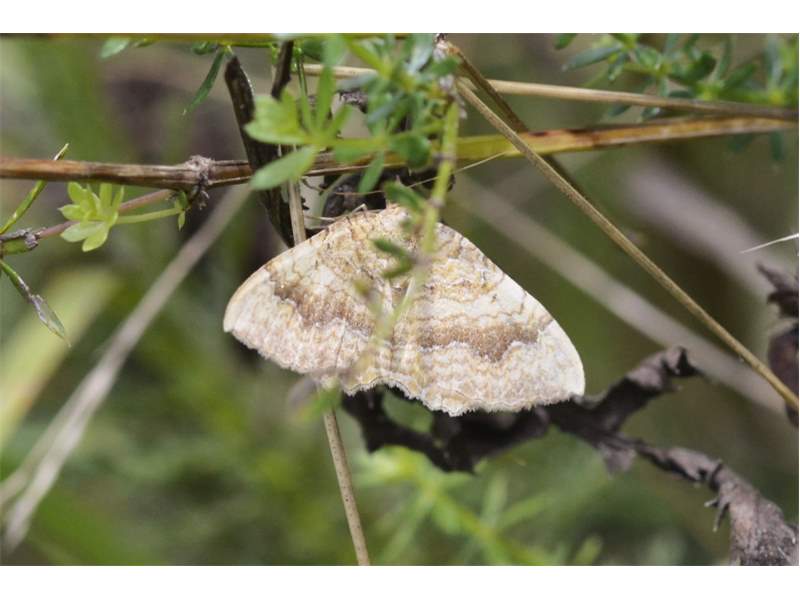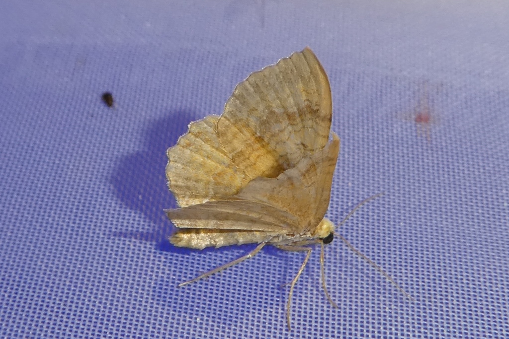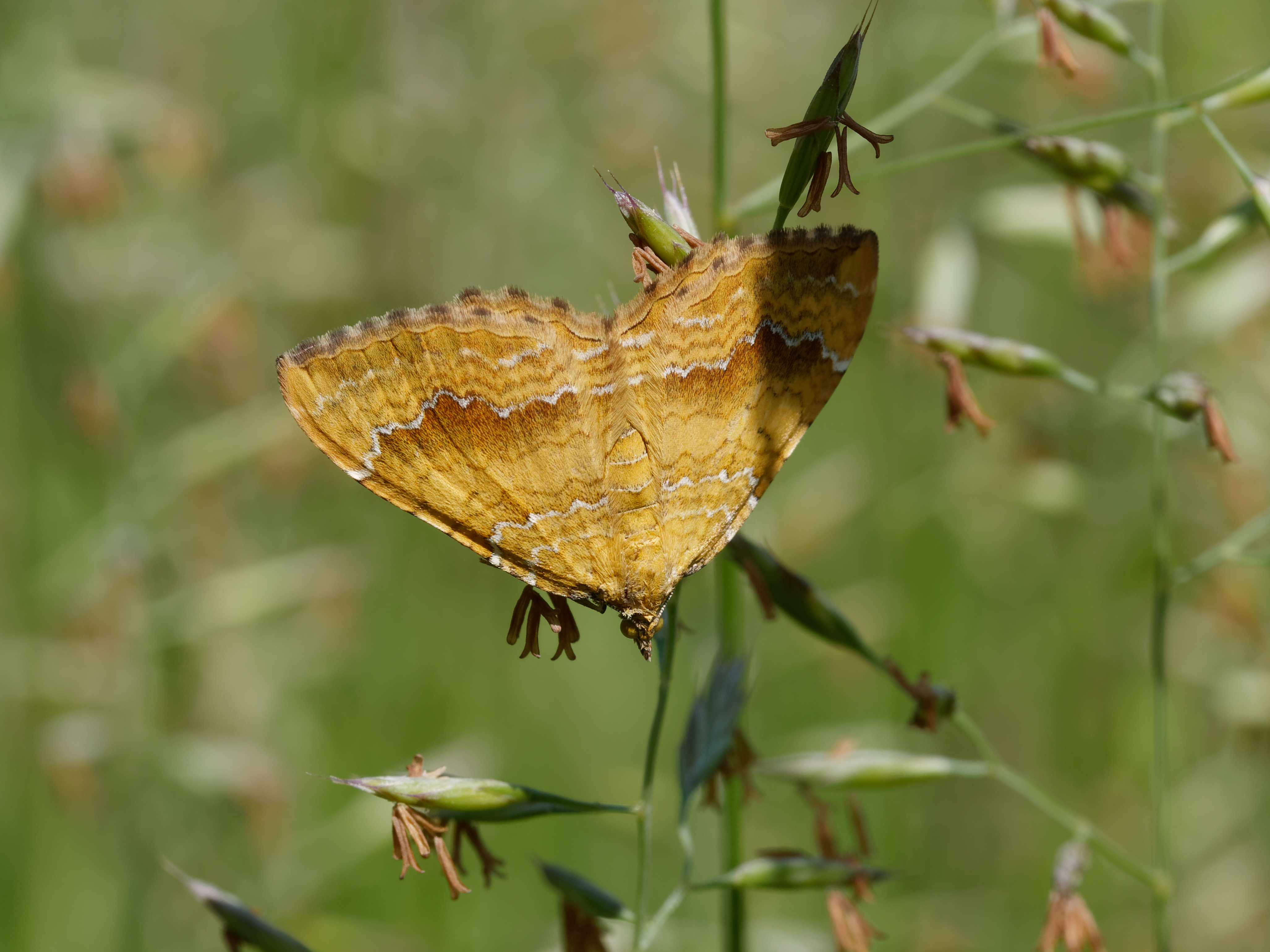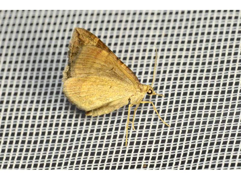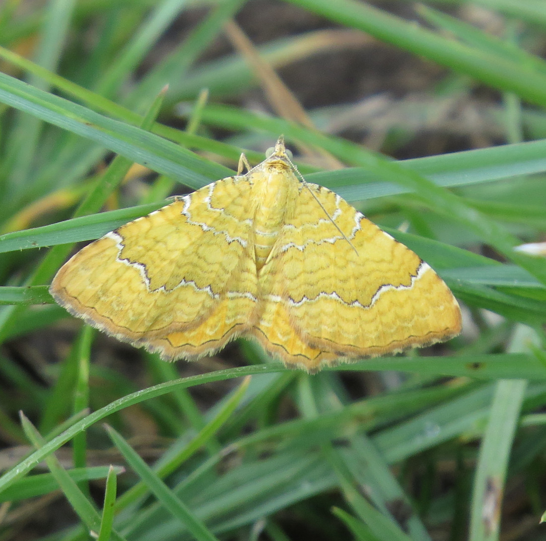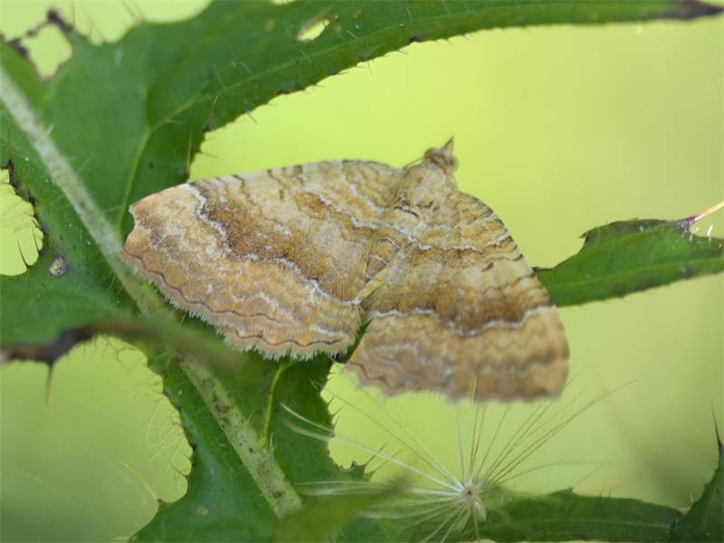 Ockergelbe Blattspanner, oder Löwenzahnspanner oder Brennnesselspanner (Camptogramma bilineata (Linnaeus, 1758)), am Licht, Radeberg, August 2013.