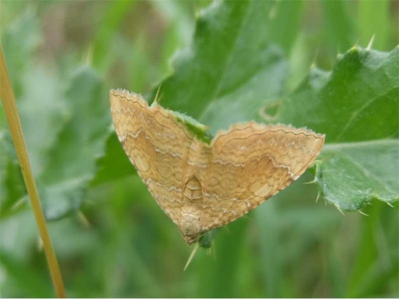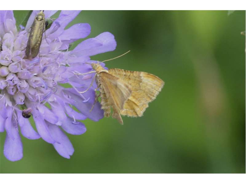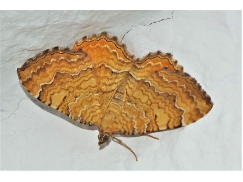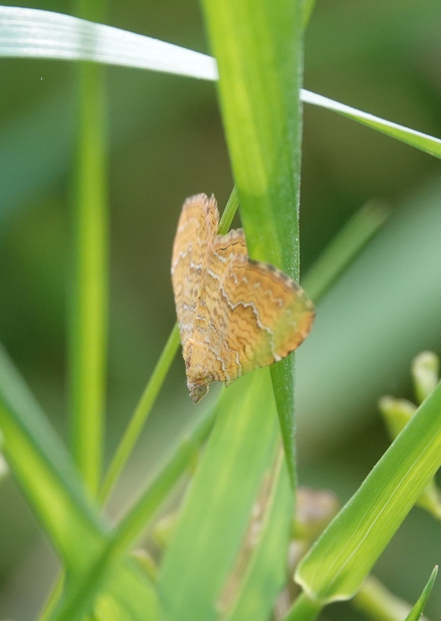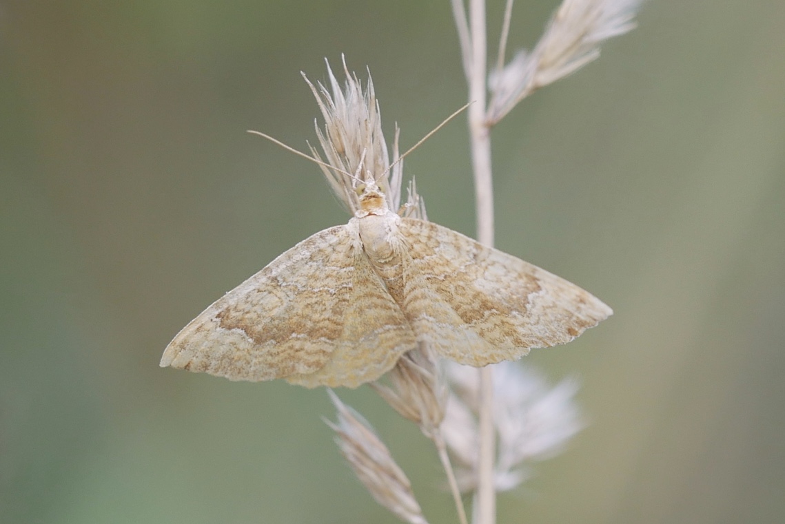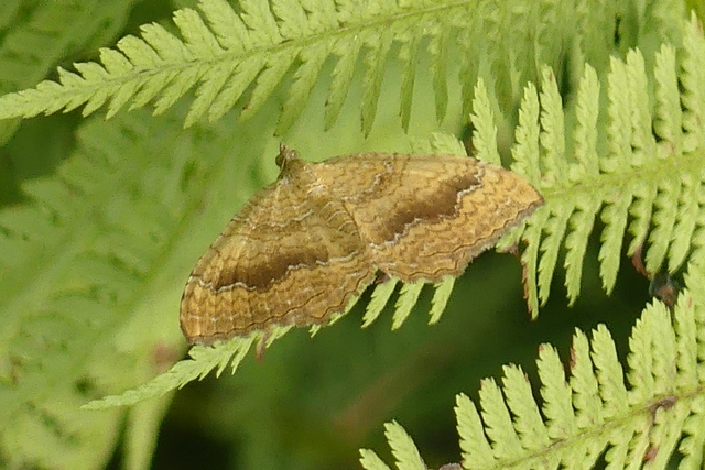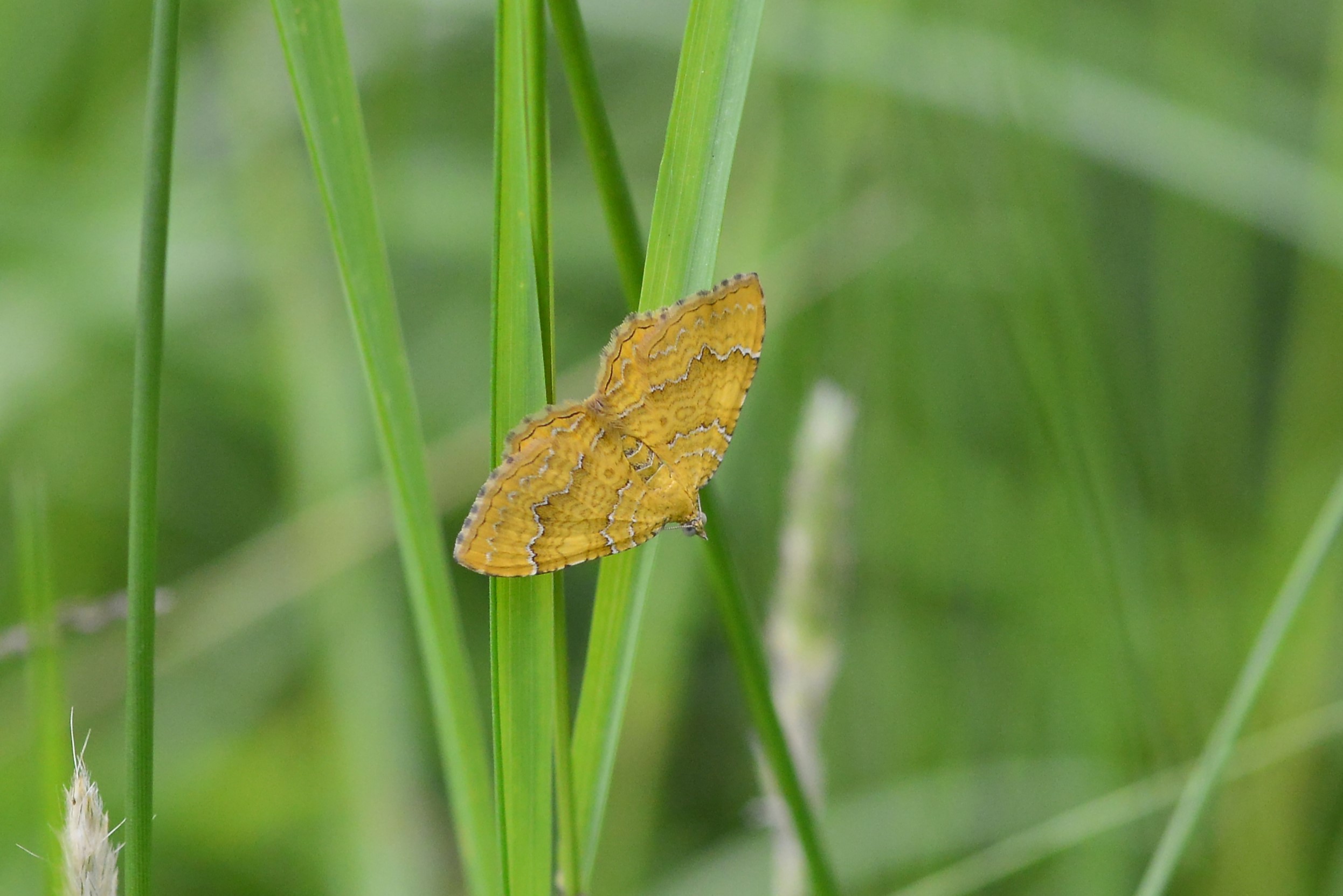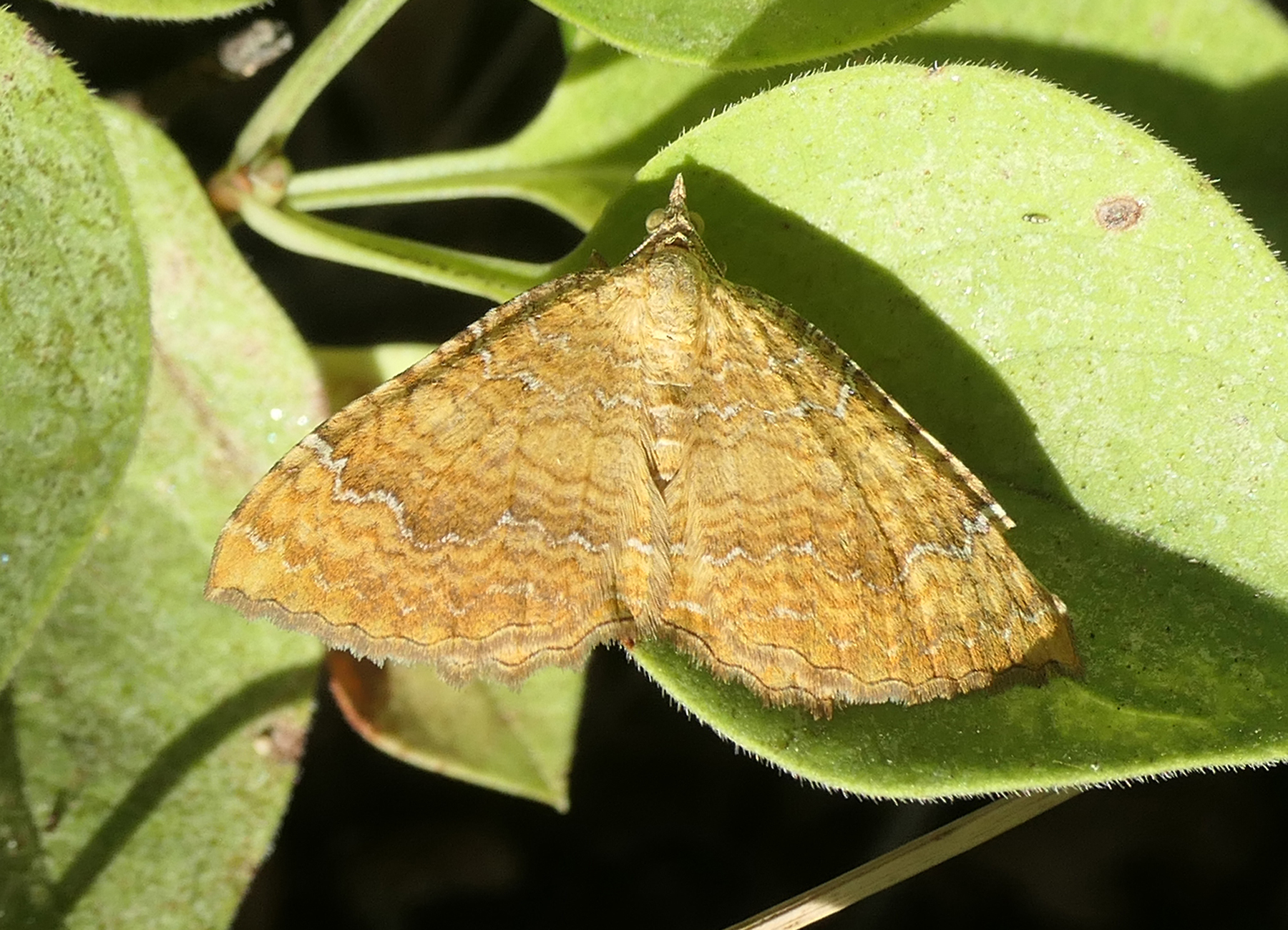 Ockergelbe Blattspanner, oder Löwenzahnspanner oder Brennnesselspanner (Camptogramma bilineata (Linnaeus, 1758)), am Licht, Radeberg, August 2013.
