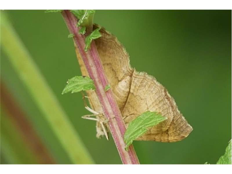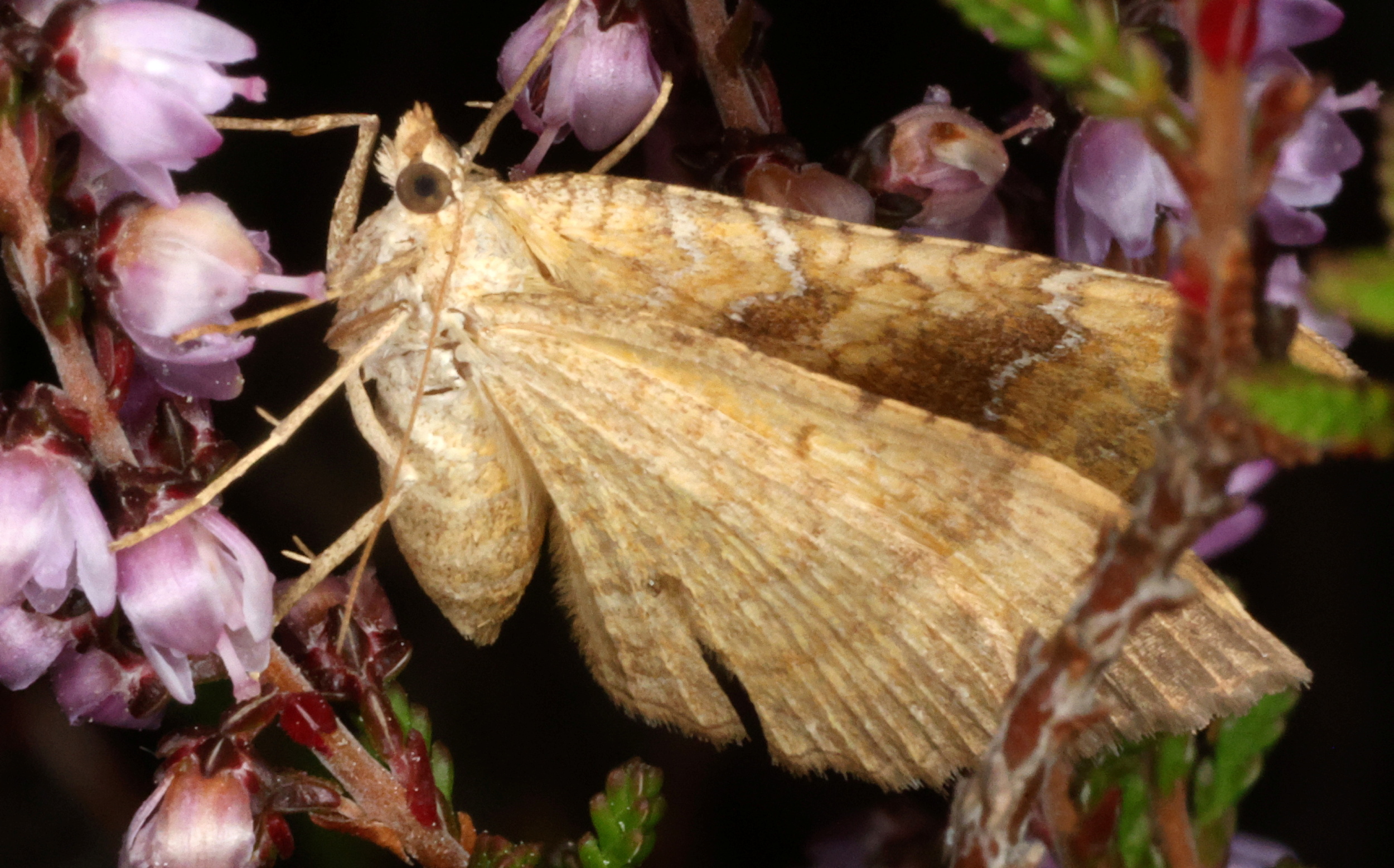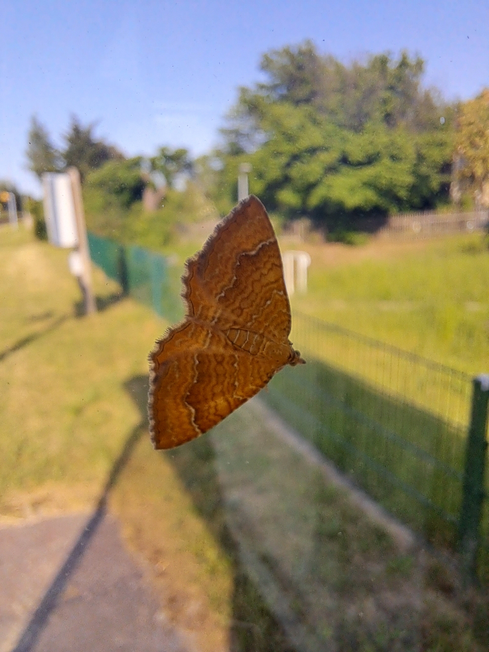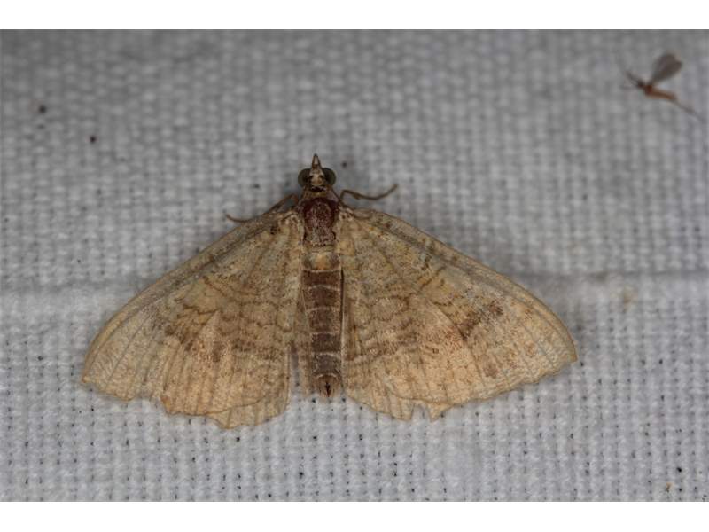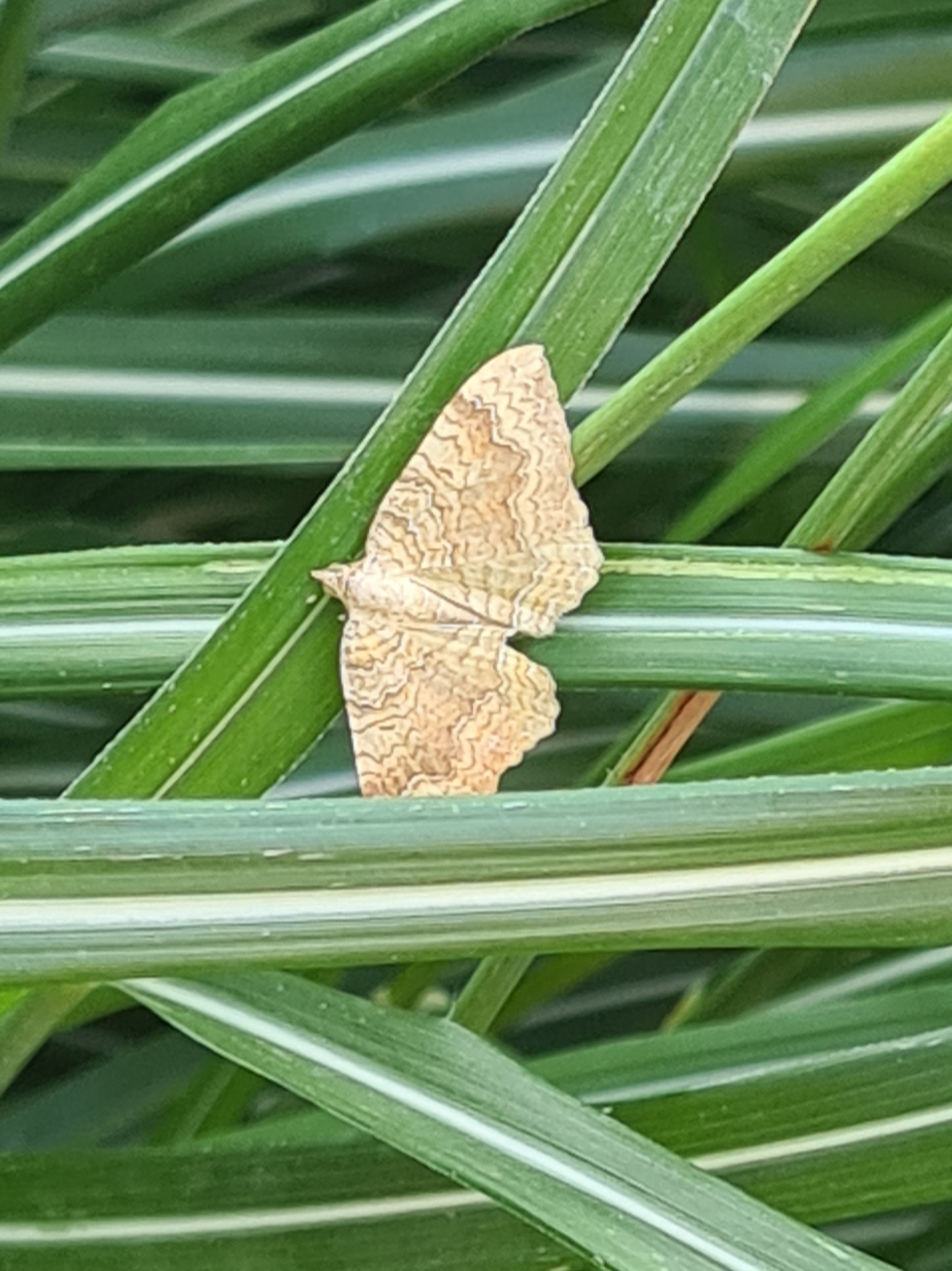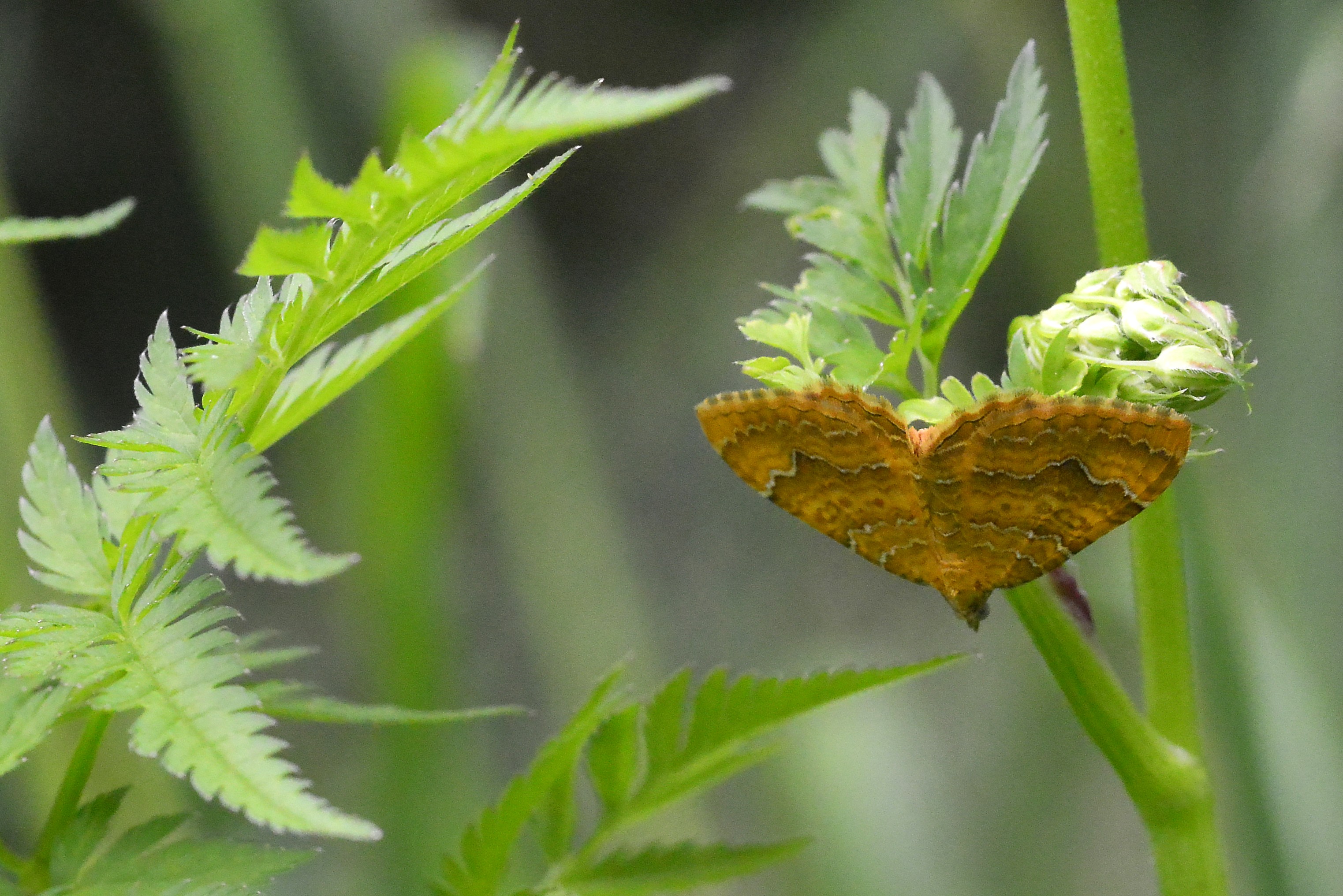 Ockergelbe Blattspanner, oder Löwenzahnspanner oder Brennnesselspanner (Camptogramma bilineata (Linnaeus, 1758)), am Licht, Radeberg, August 2013.