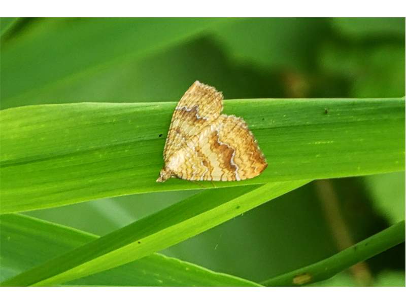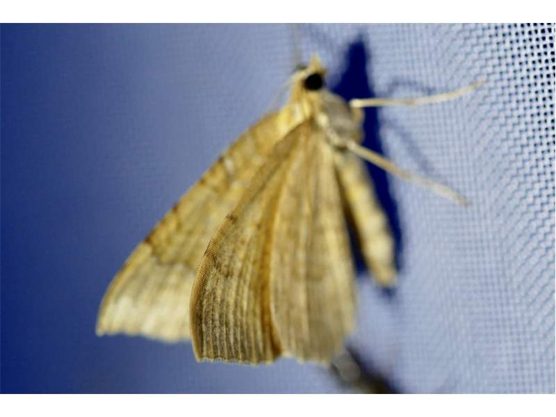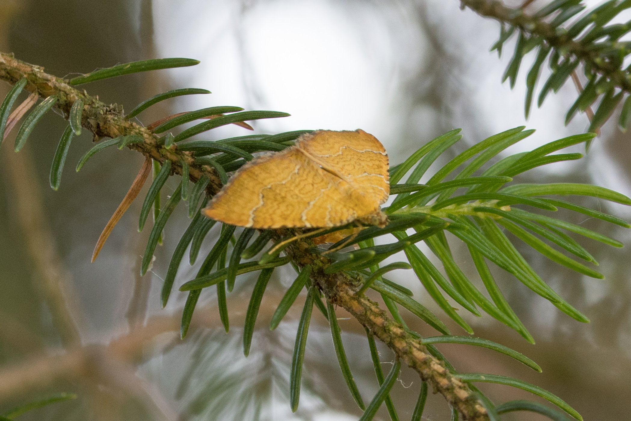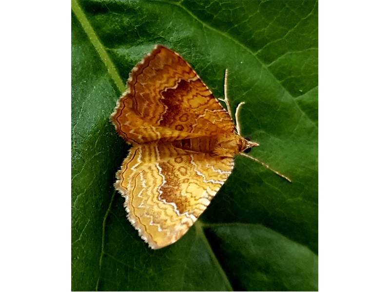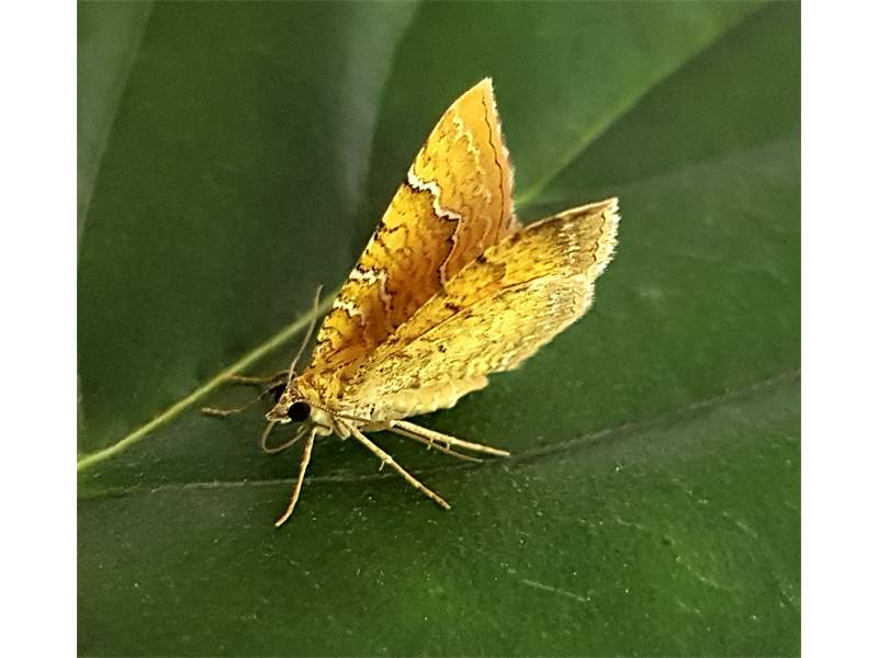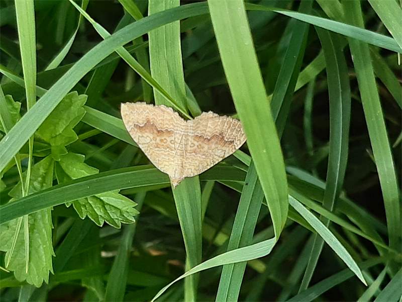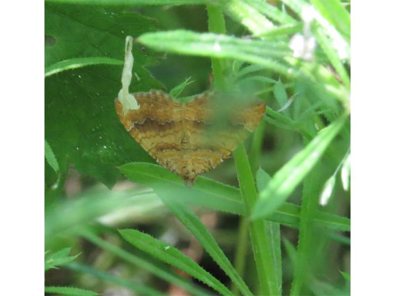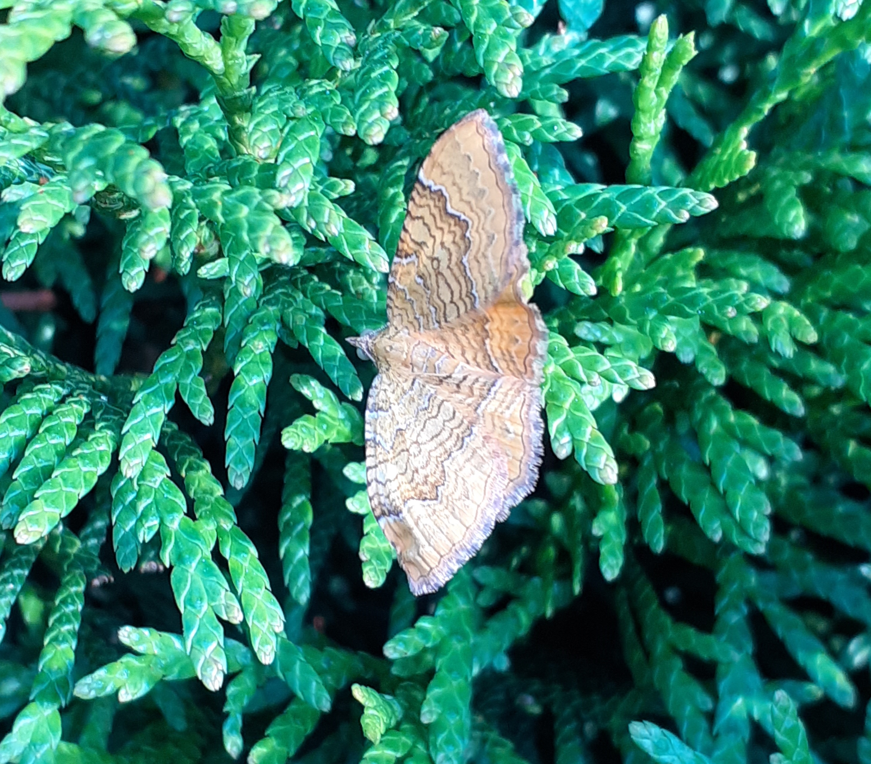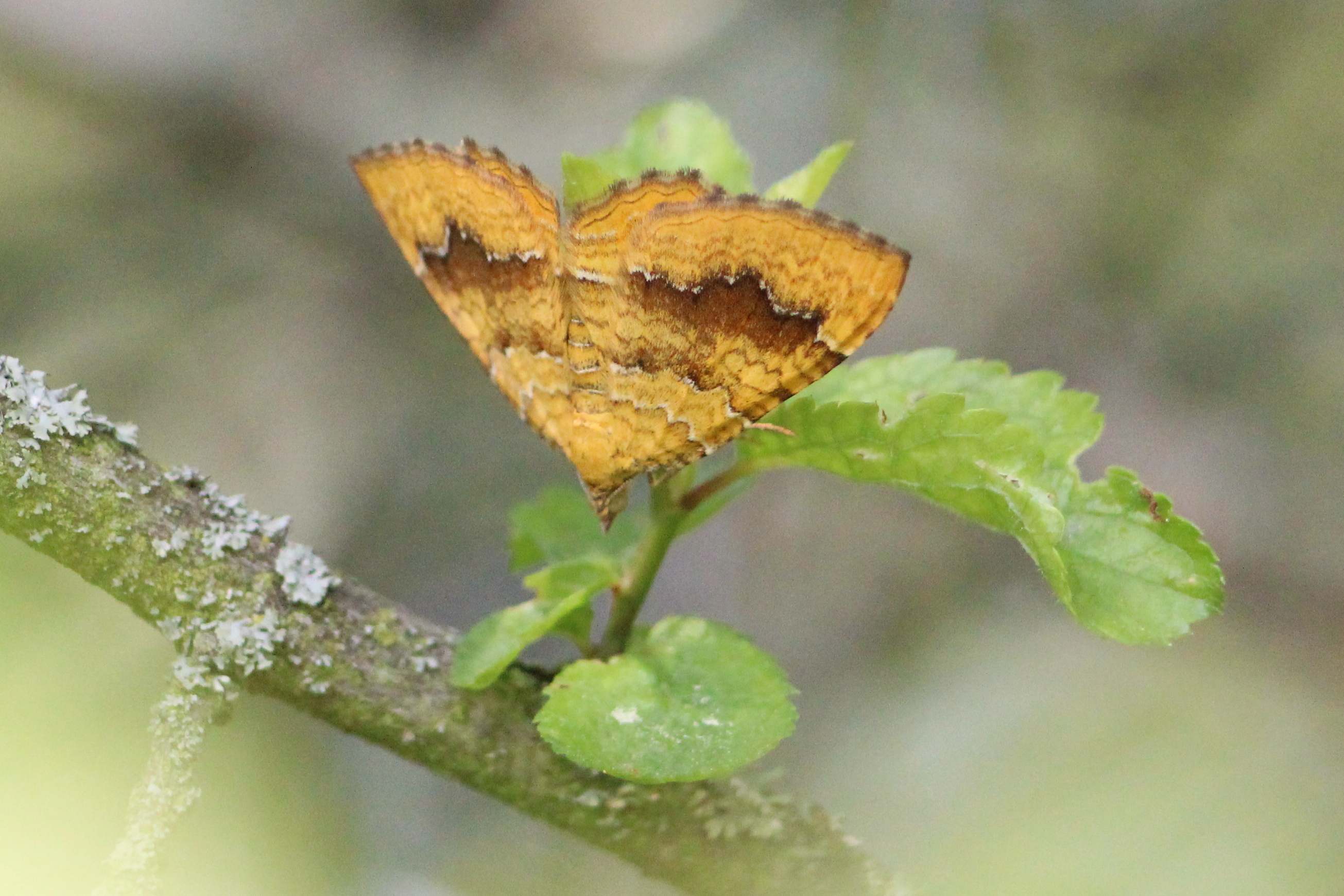Ockergelbe Blattspanner, oder Löwenzahnspanner oder Brennnesselspanner (Camptogramma bilineata (Linnaeus, 1758)), am Licht, Radeberg, August 2013.