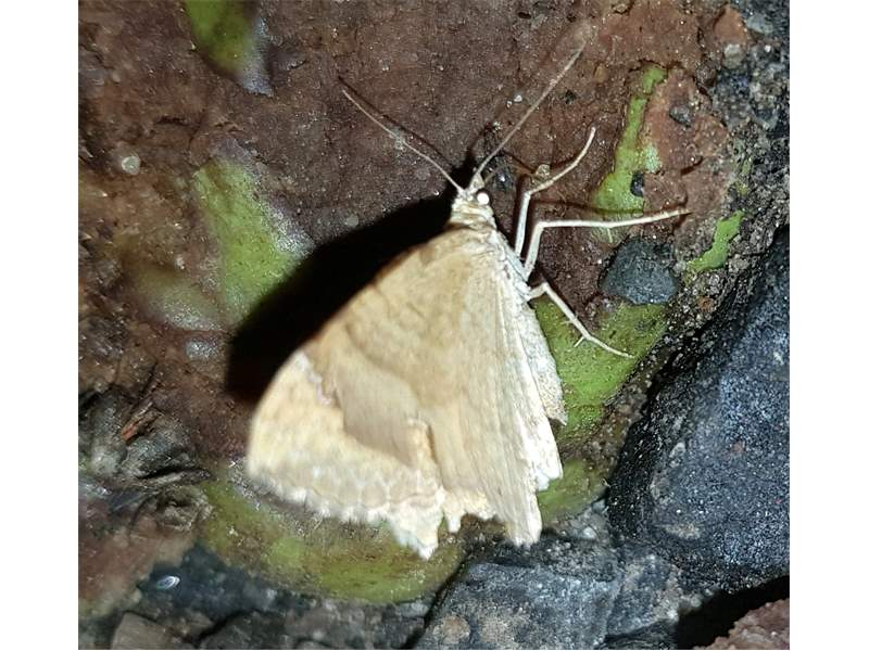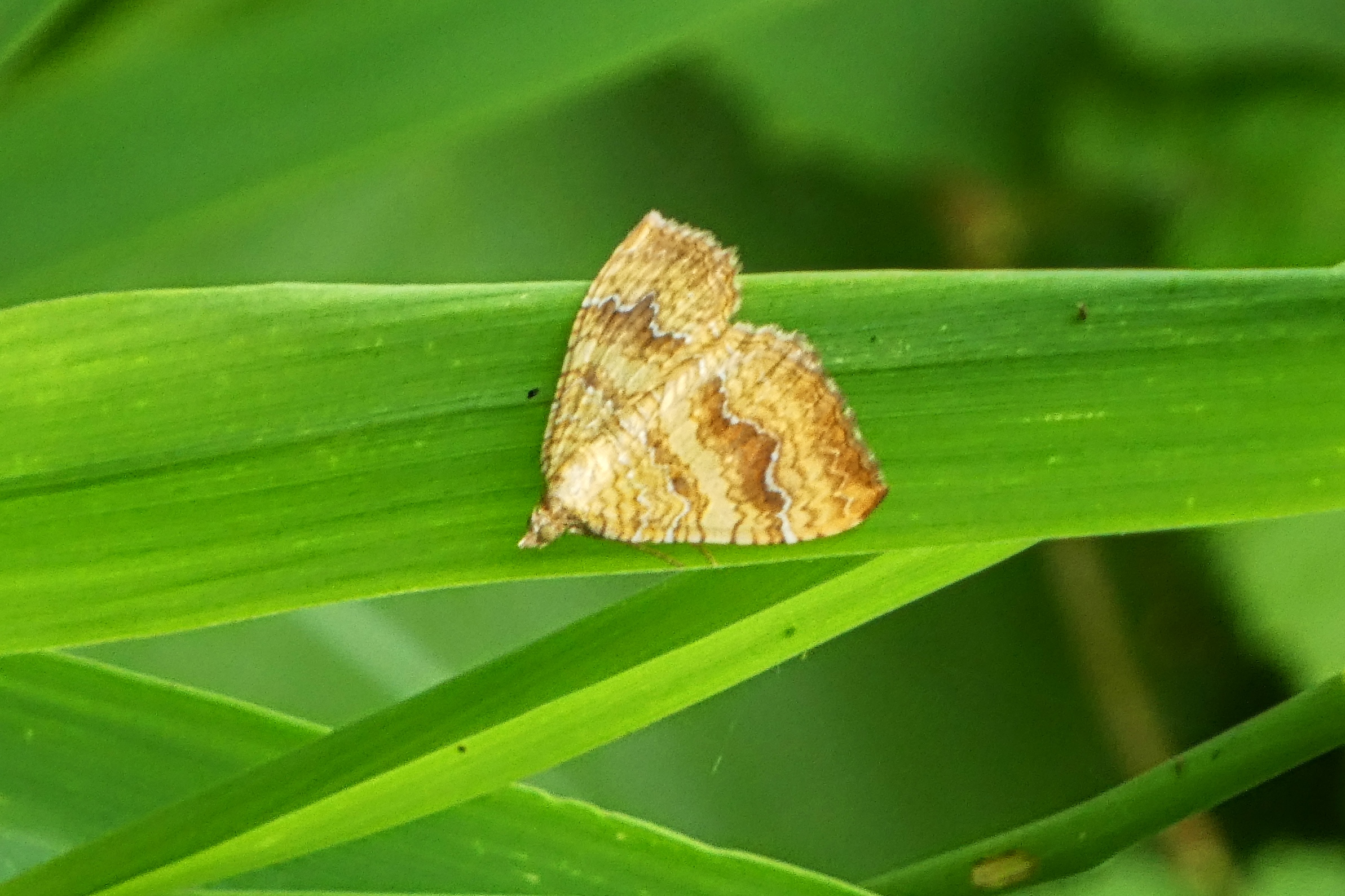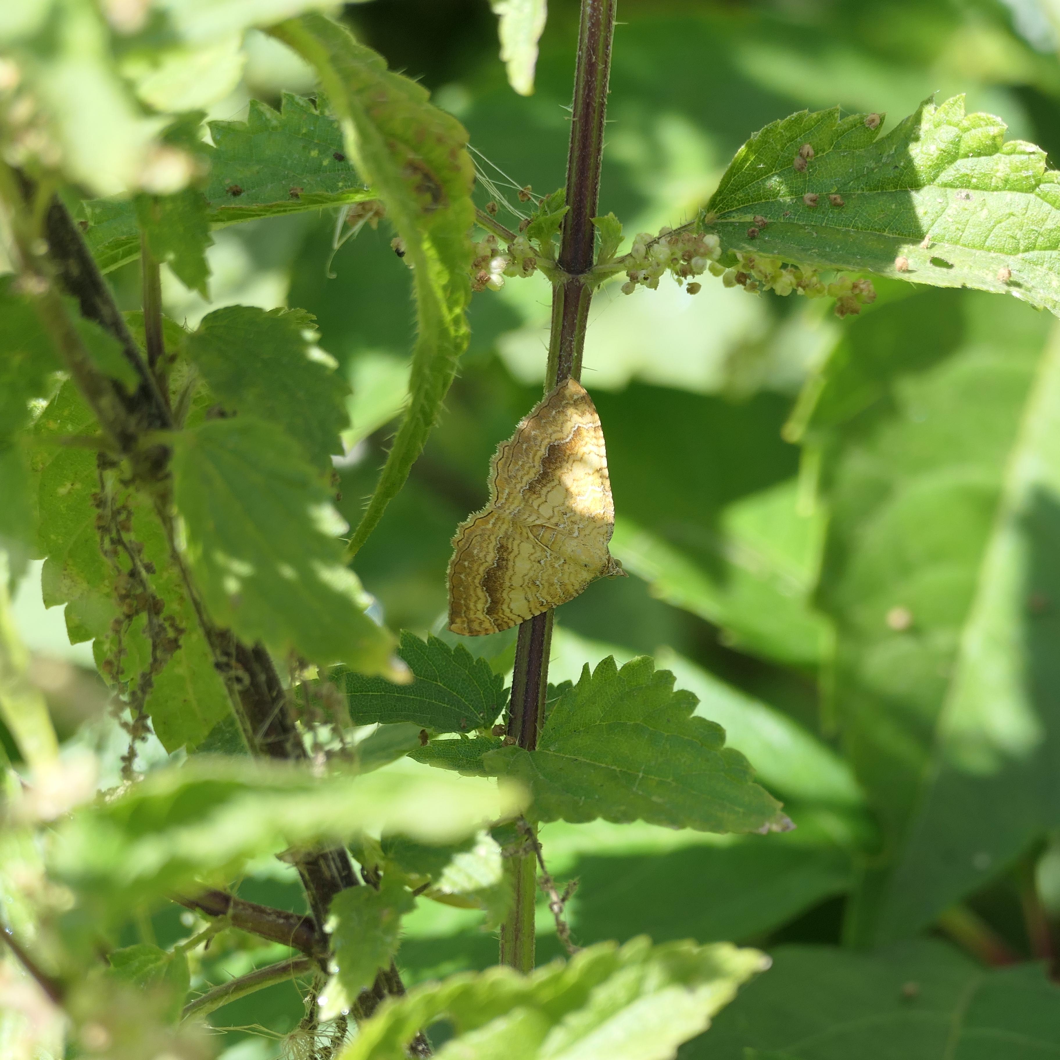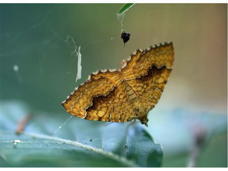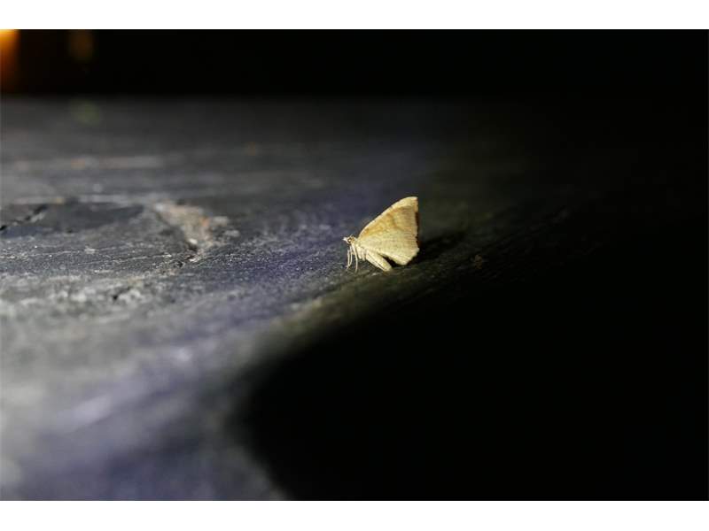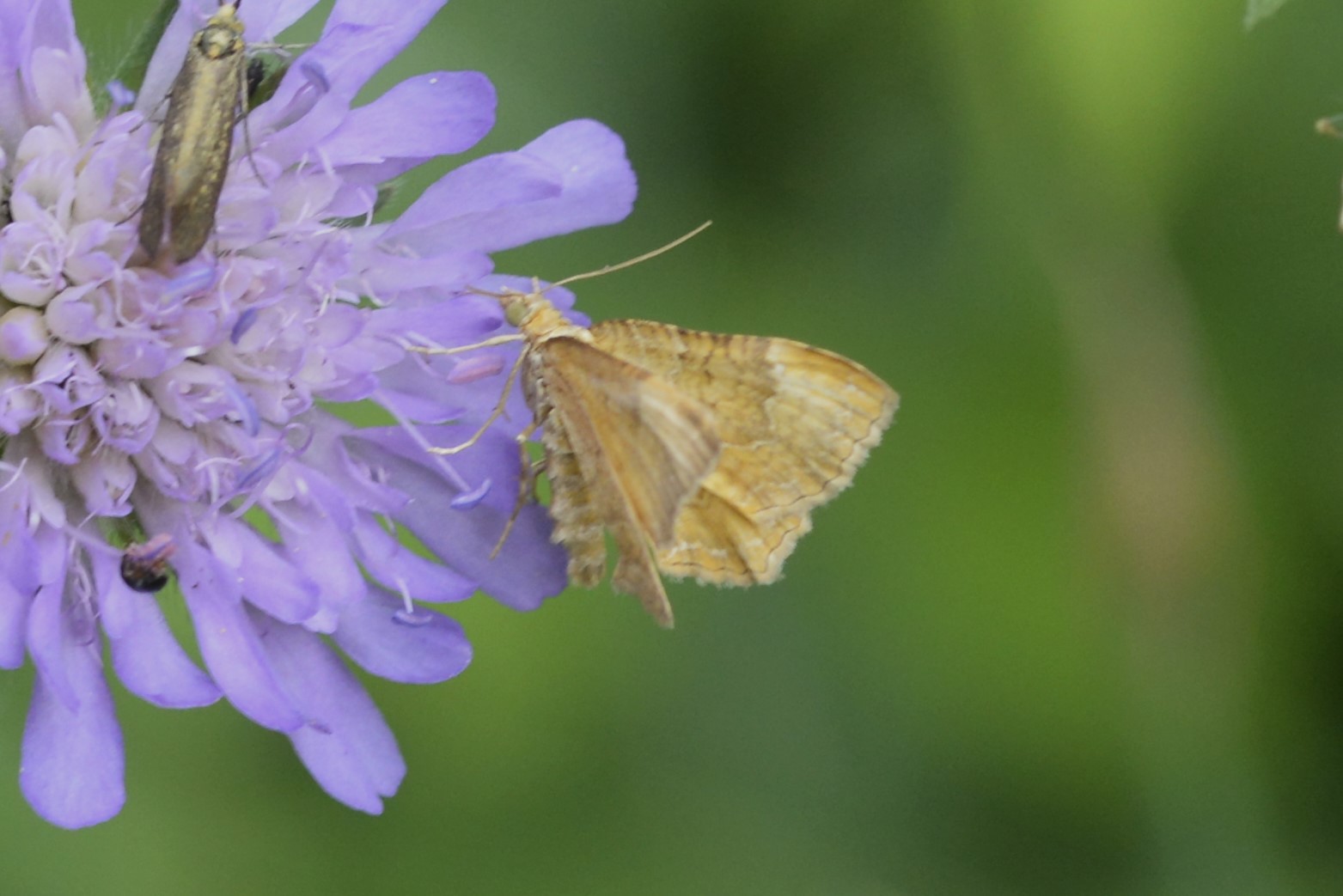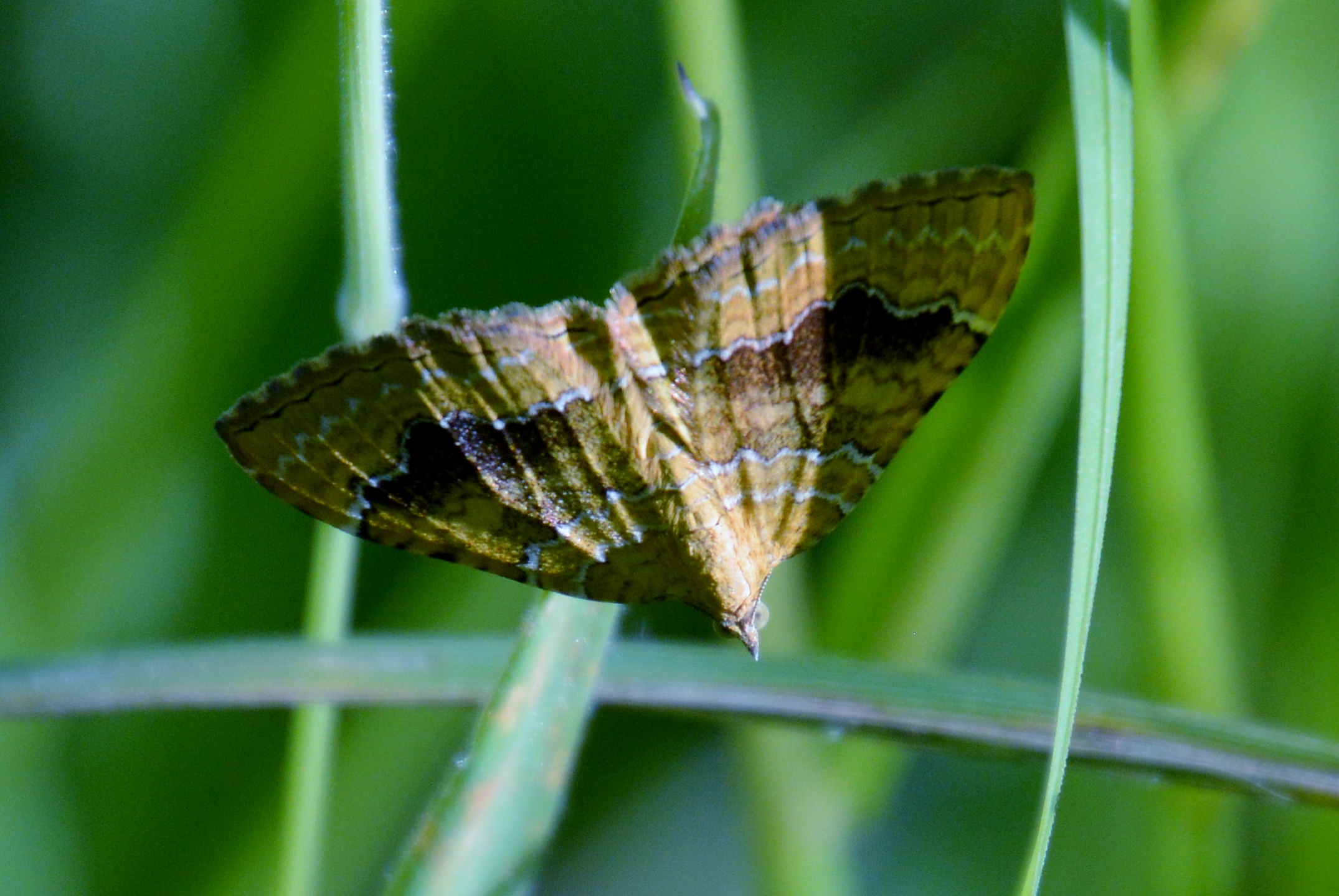 Ockergelbe Blattspanner, oder Löwenzahnspanner oder Brennnesselspanner (Camptogramma bilineata (Linnaeus, 1758)), am Licht, Radeberg, August 2013.