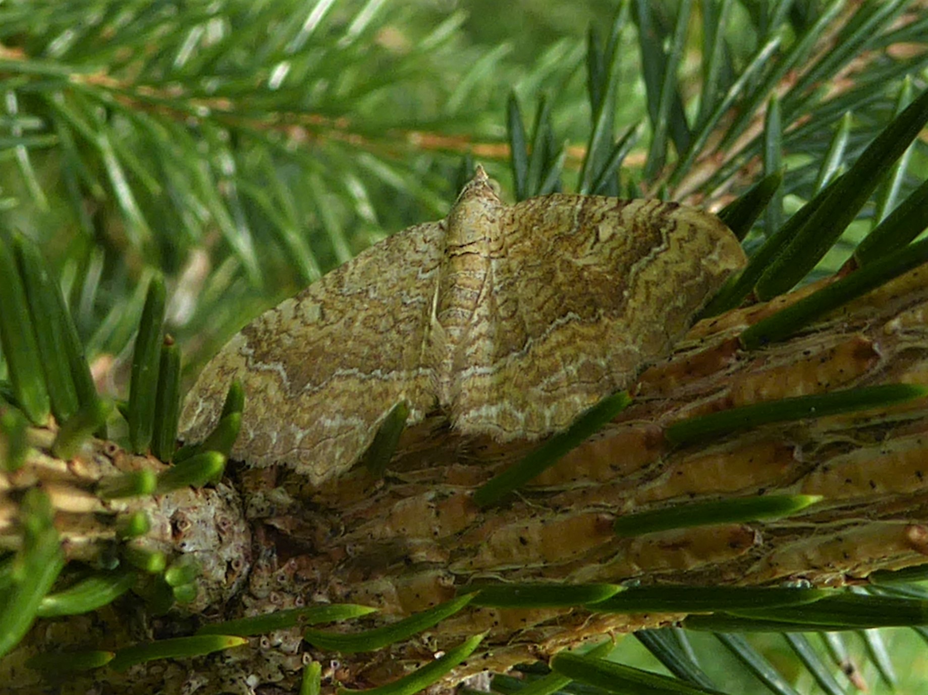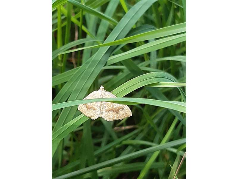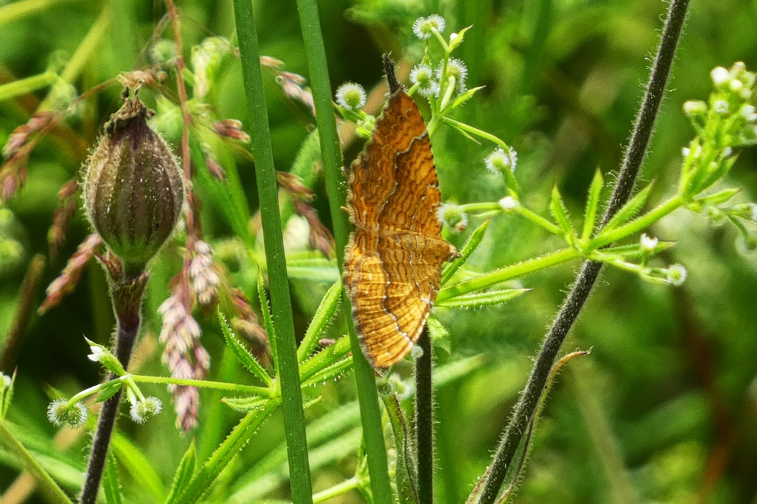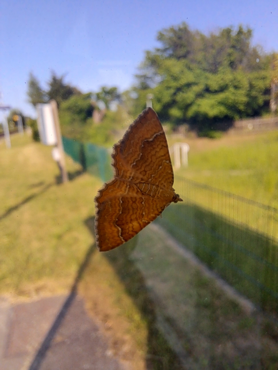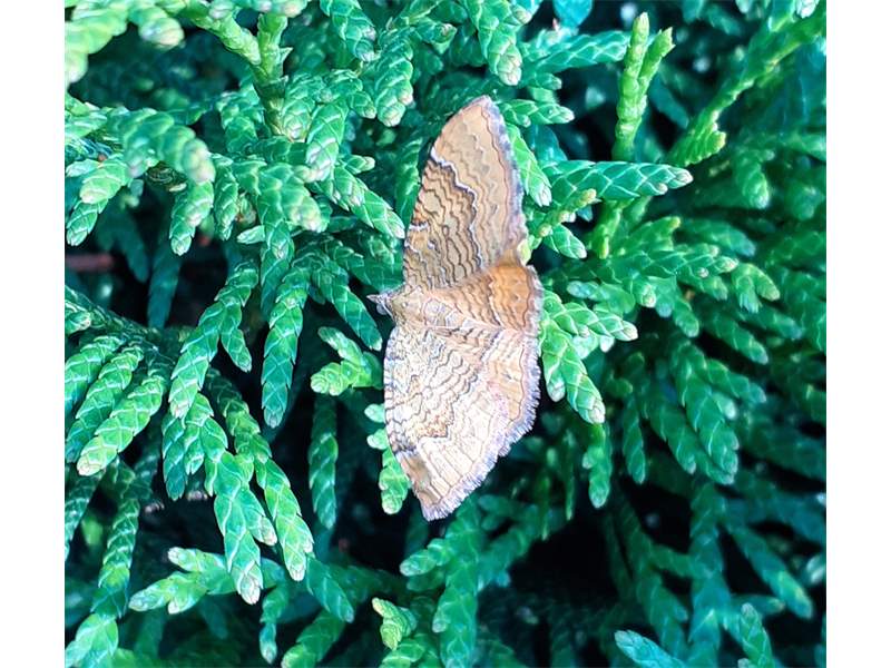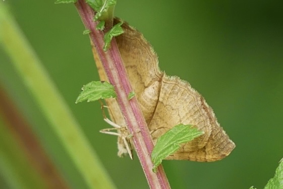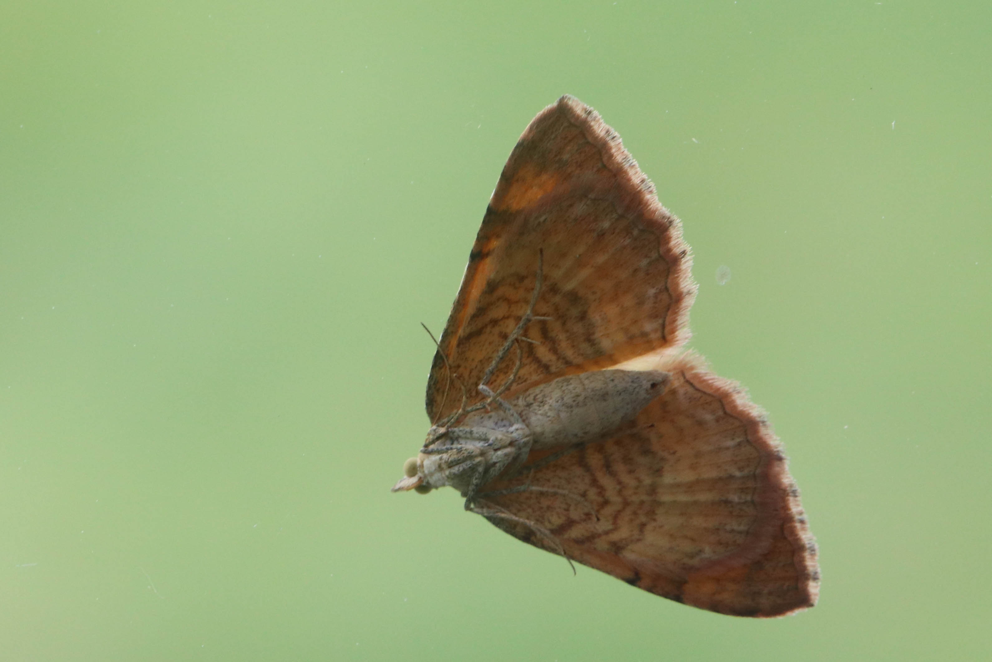 Ockergelbe Blattspanner, oder Löwenzahnspanner oder Brennnesselspanner (Camptogramma bilineata (Linnaeus, 1758)), am Licht, Radeberg, August 2013.