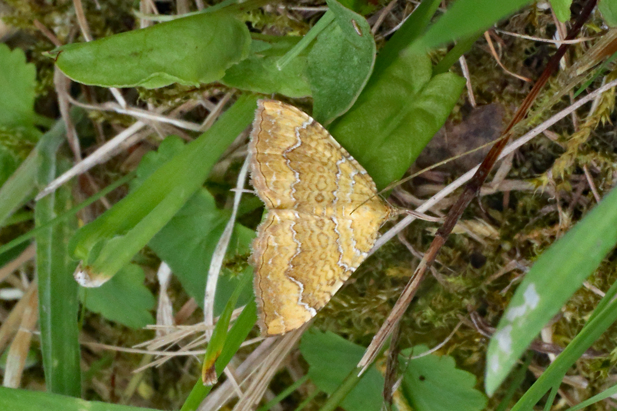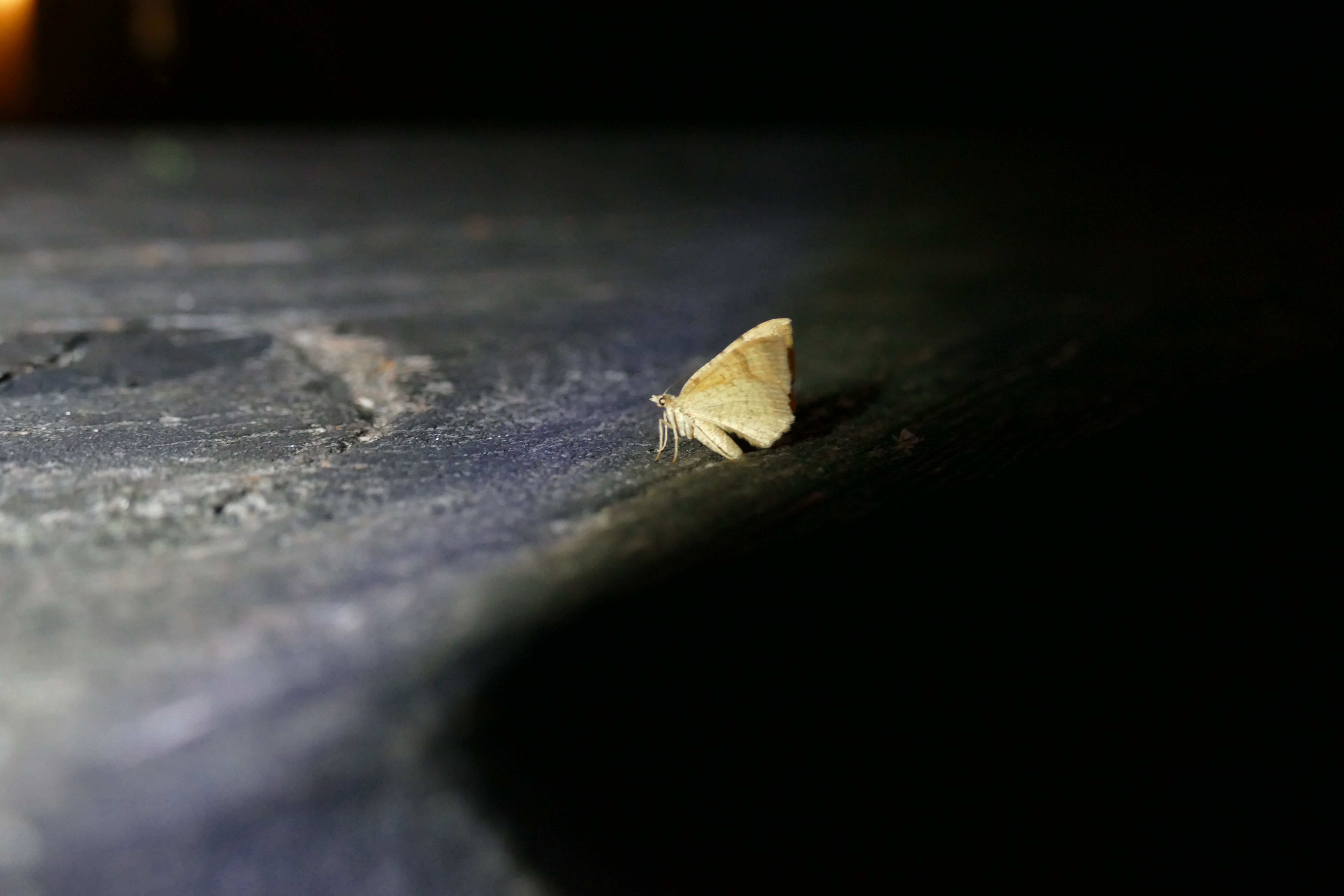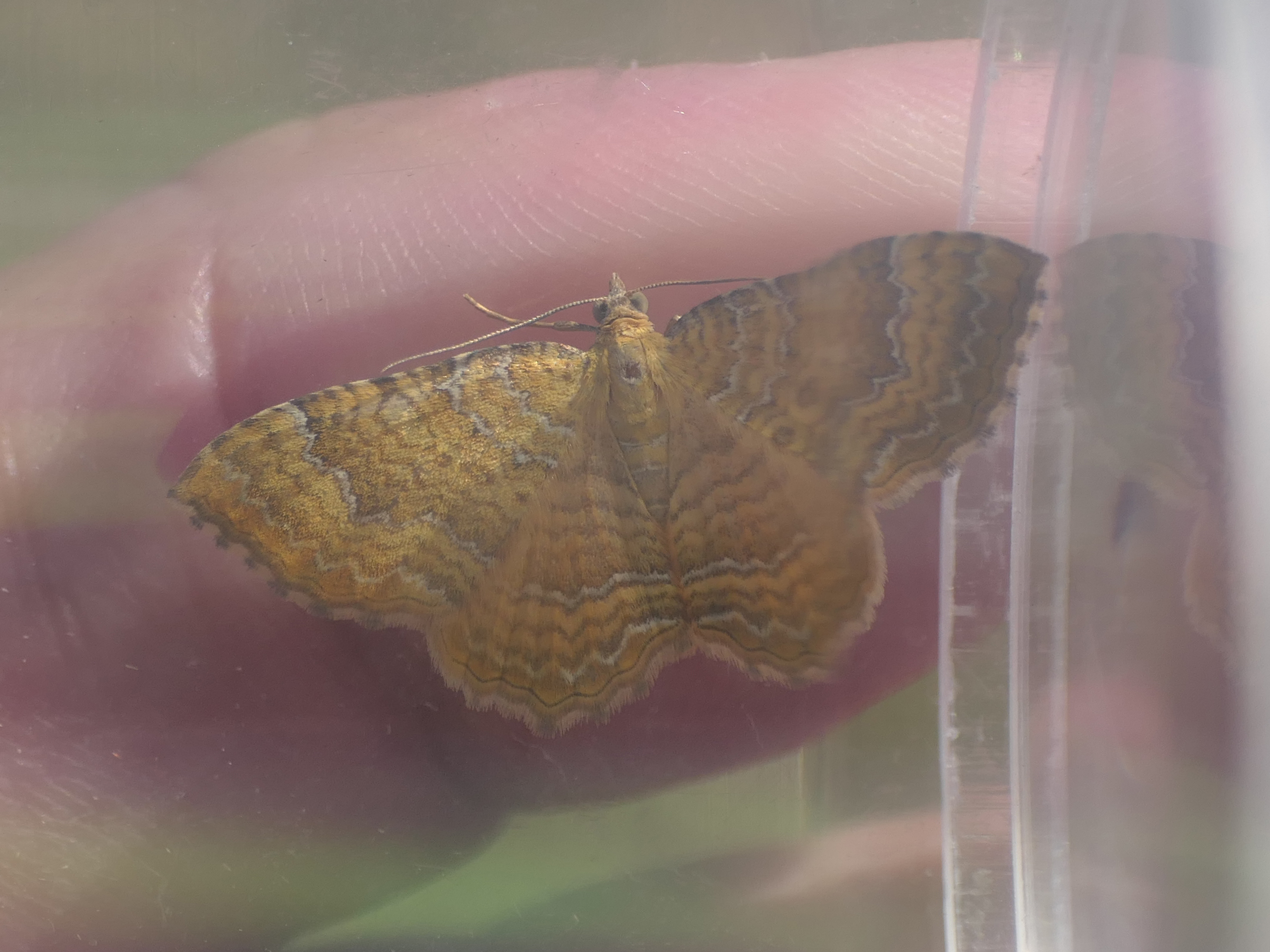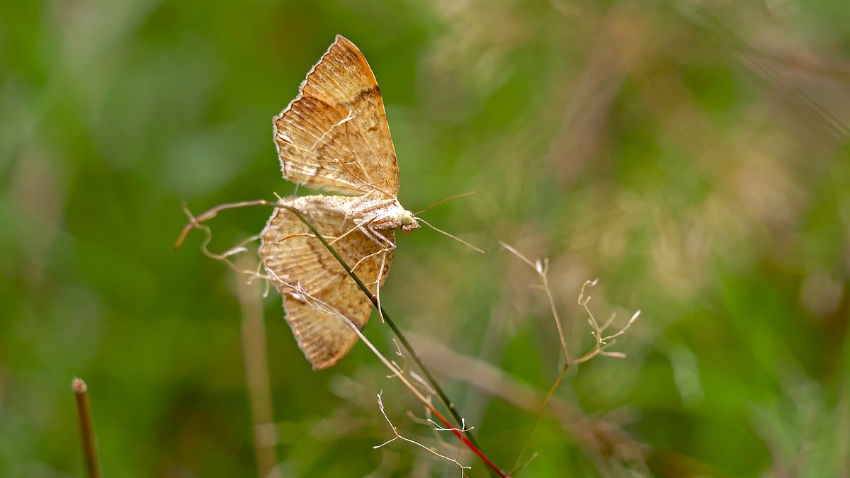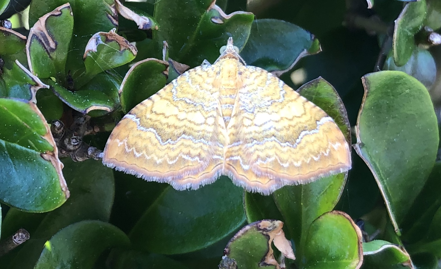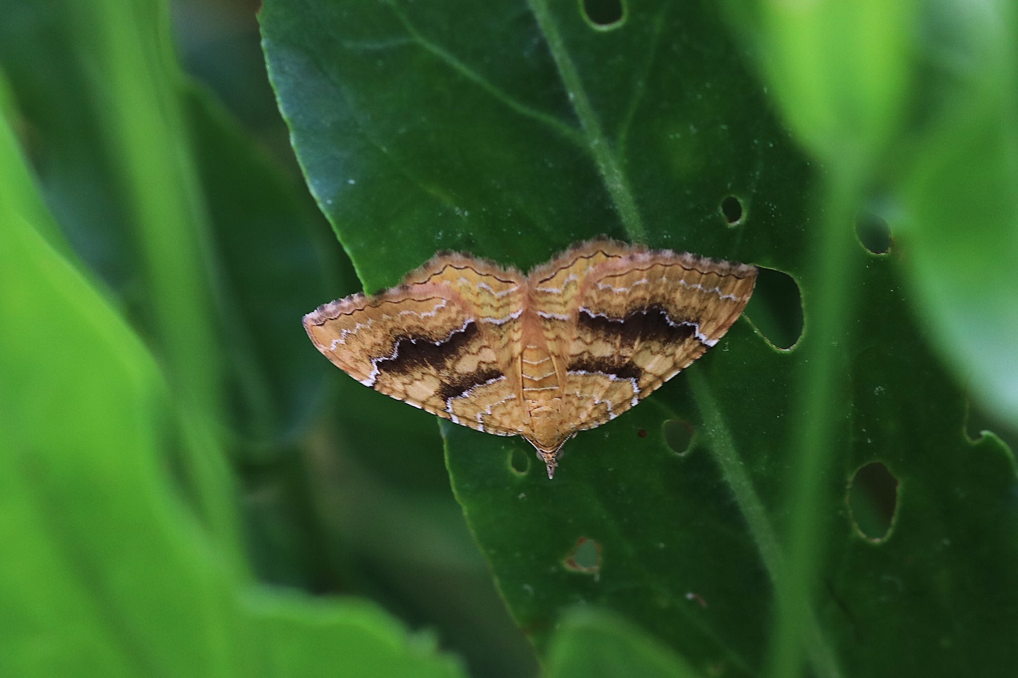 Ockergelbe Blattspanner, oder Löwenzahnspanner oder Brennnesselspanner (Camptogramma bilineata (Linnaeus, 1758)), am Licht, Radeberg, August 2013.