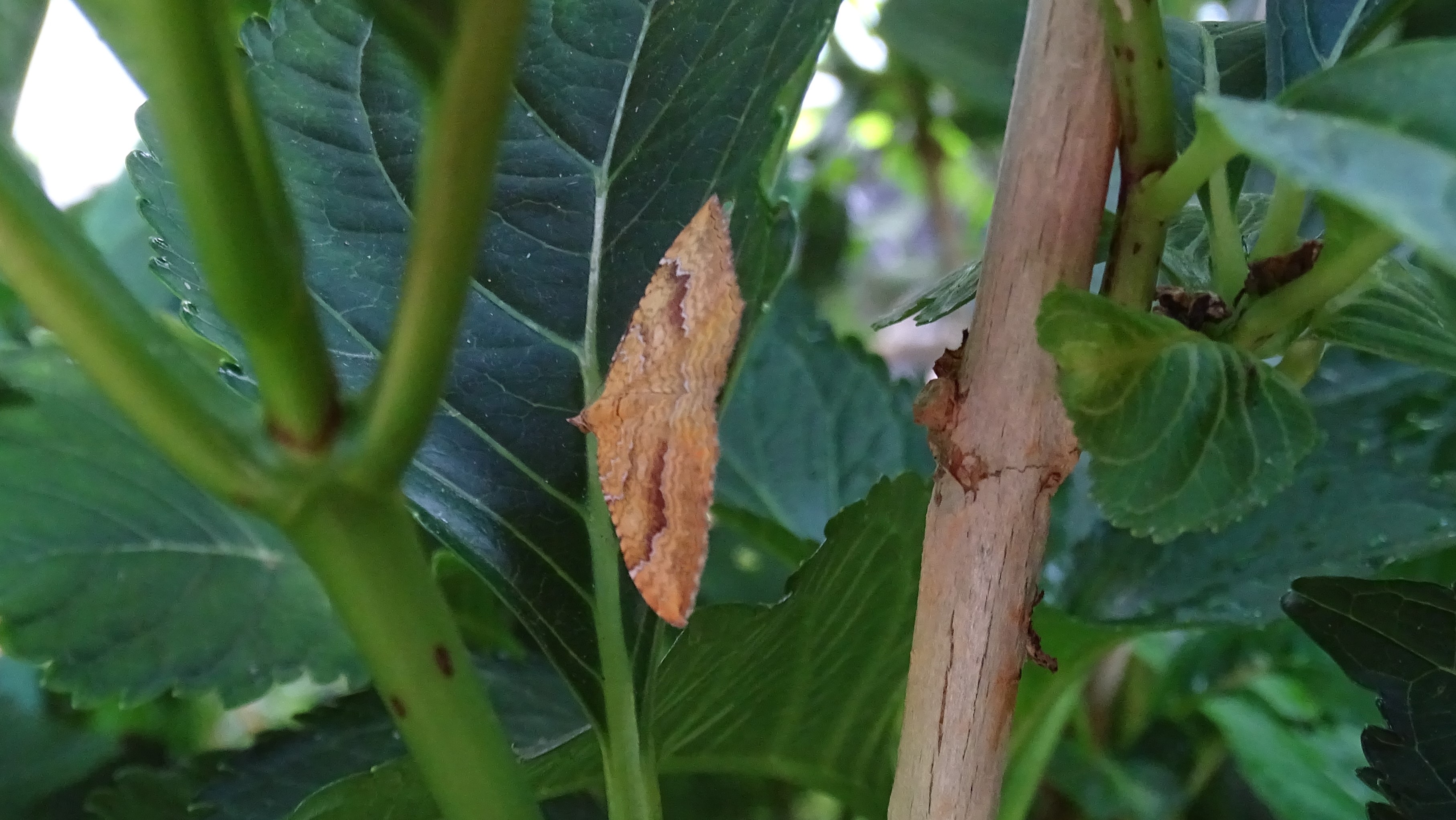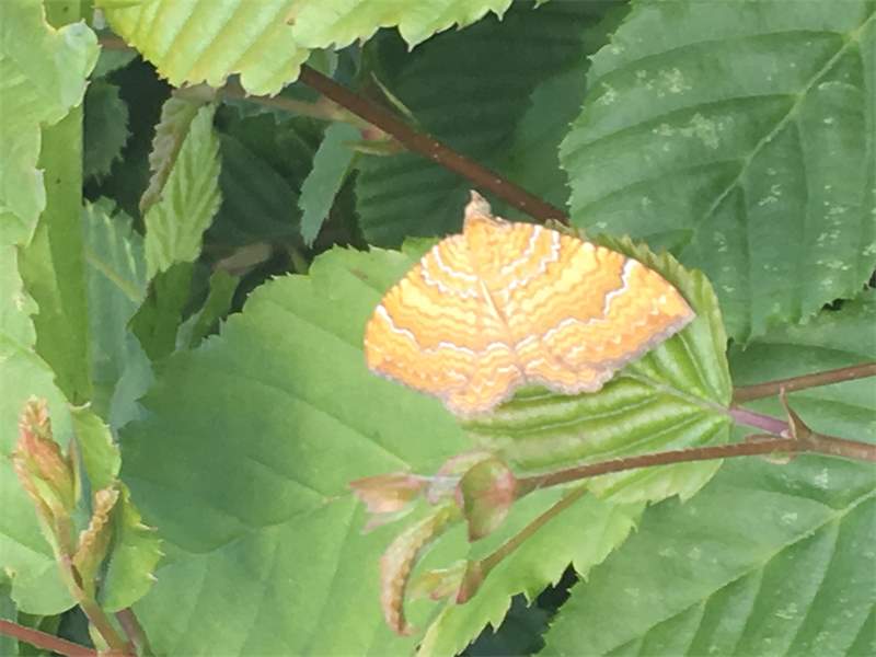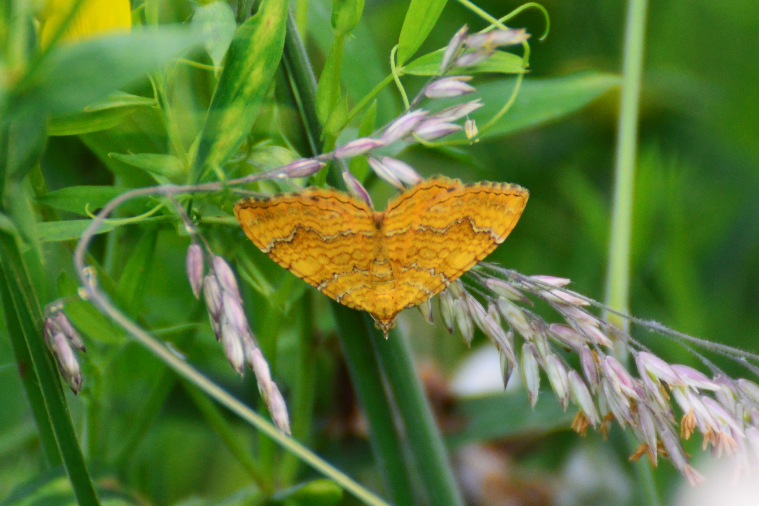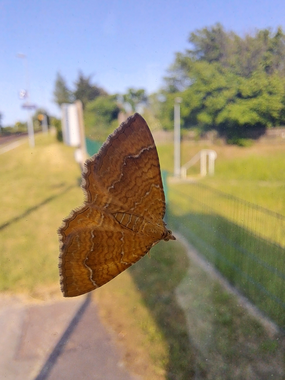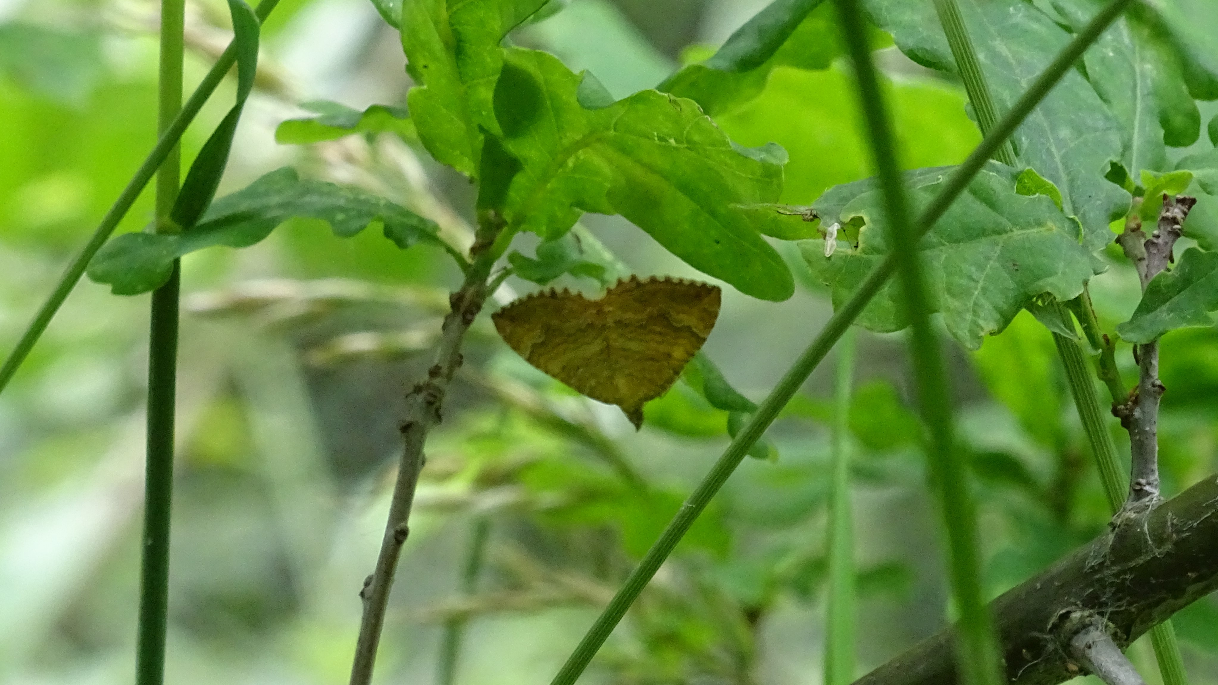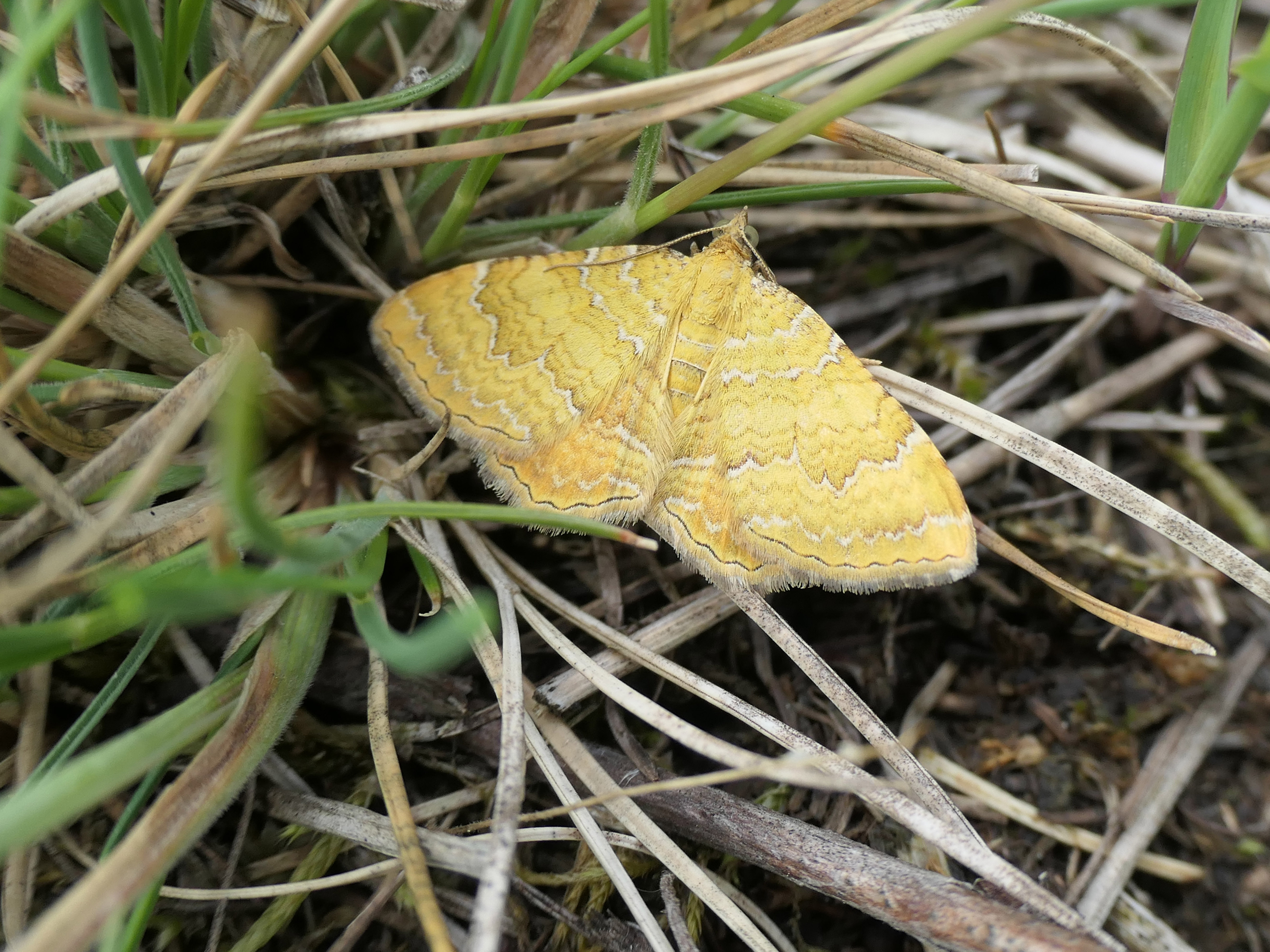 Ockergelbe Blattspanner, oder Löwenzahnspanner oder Brennnesselspanner (Camptogramma bilineata (Linnaeus, 1758)), am Licht, Radeberg, August 2013.