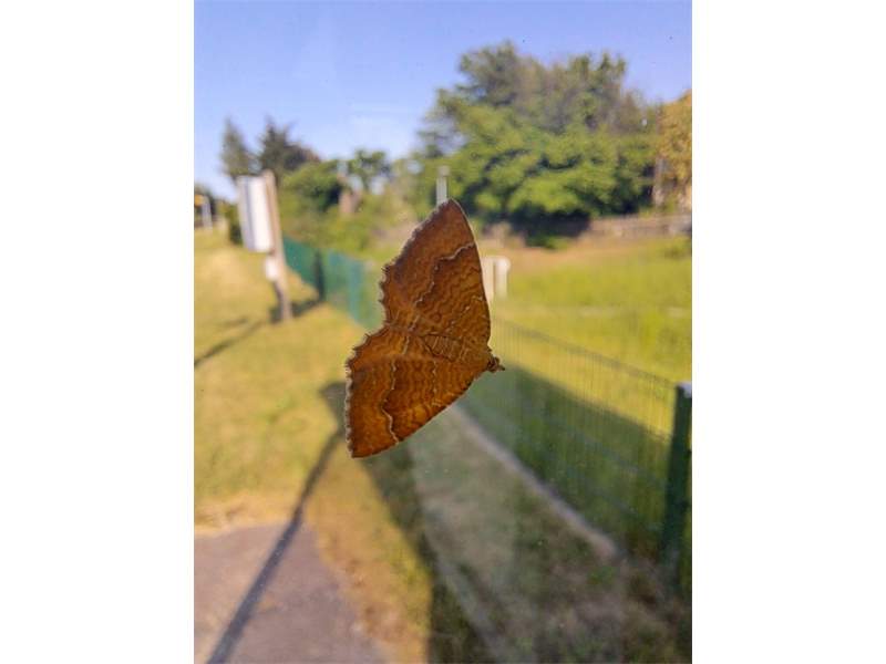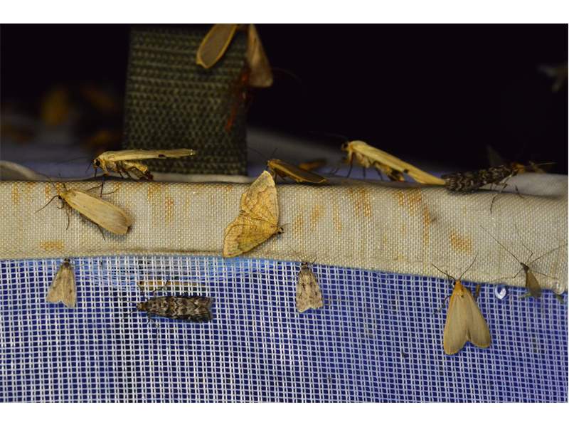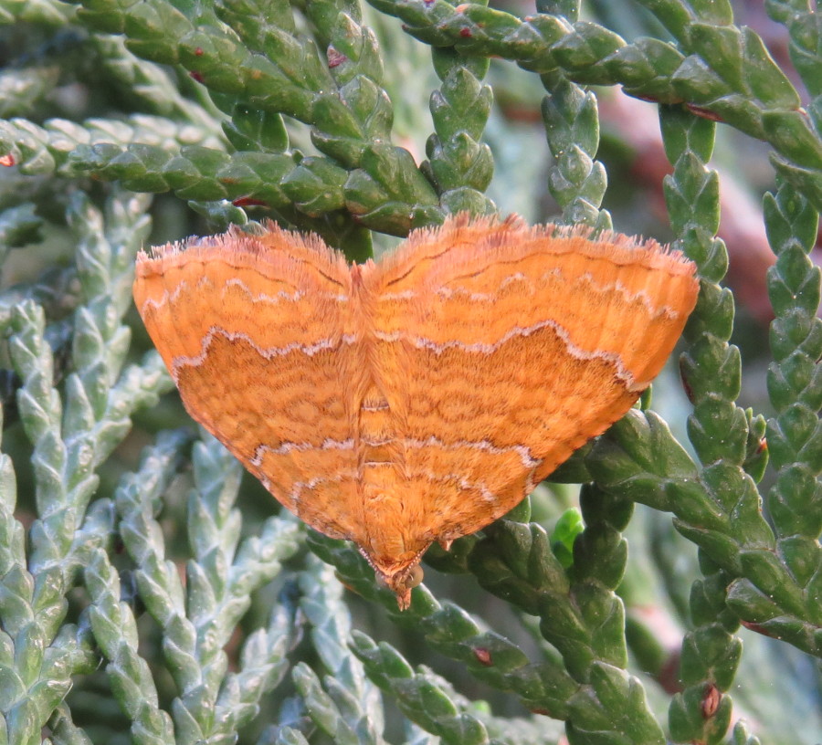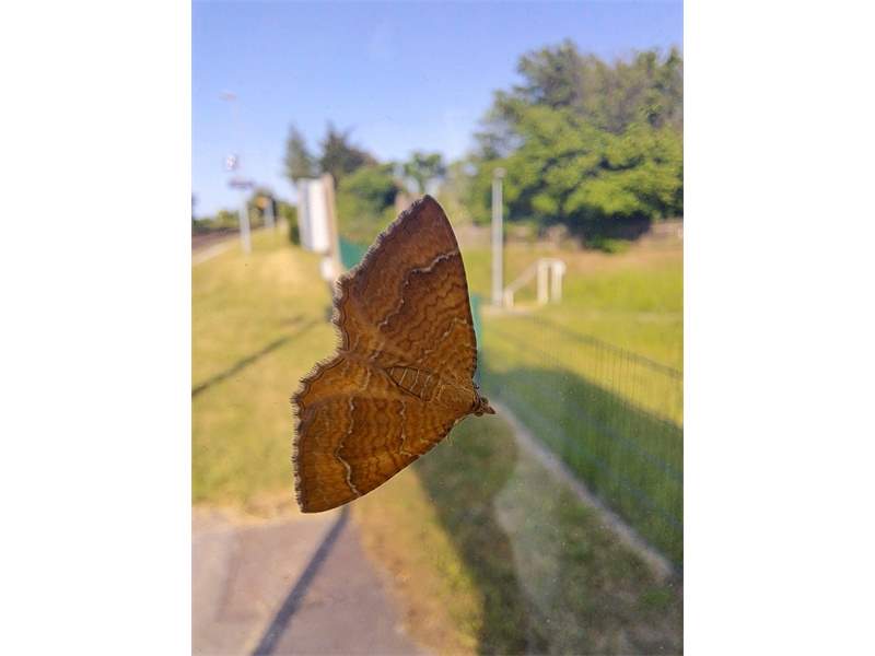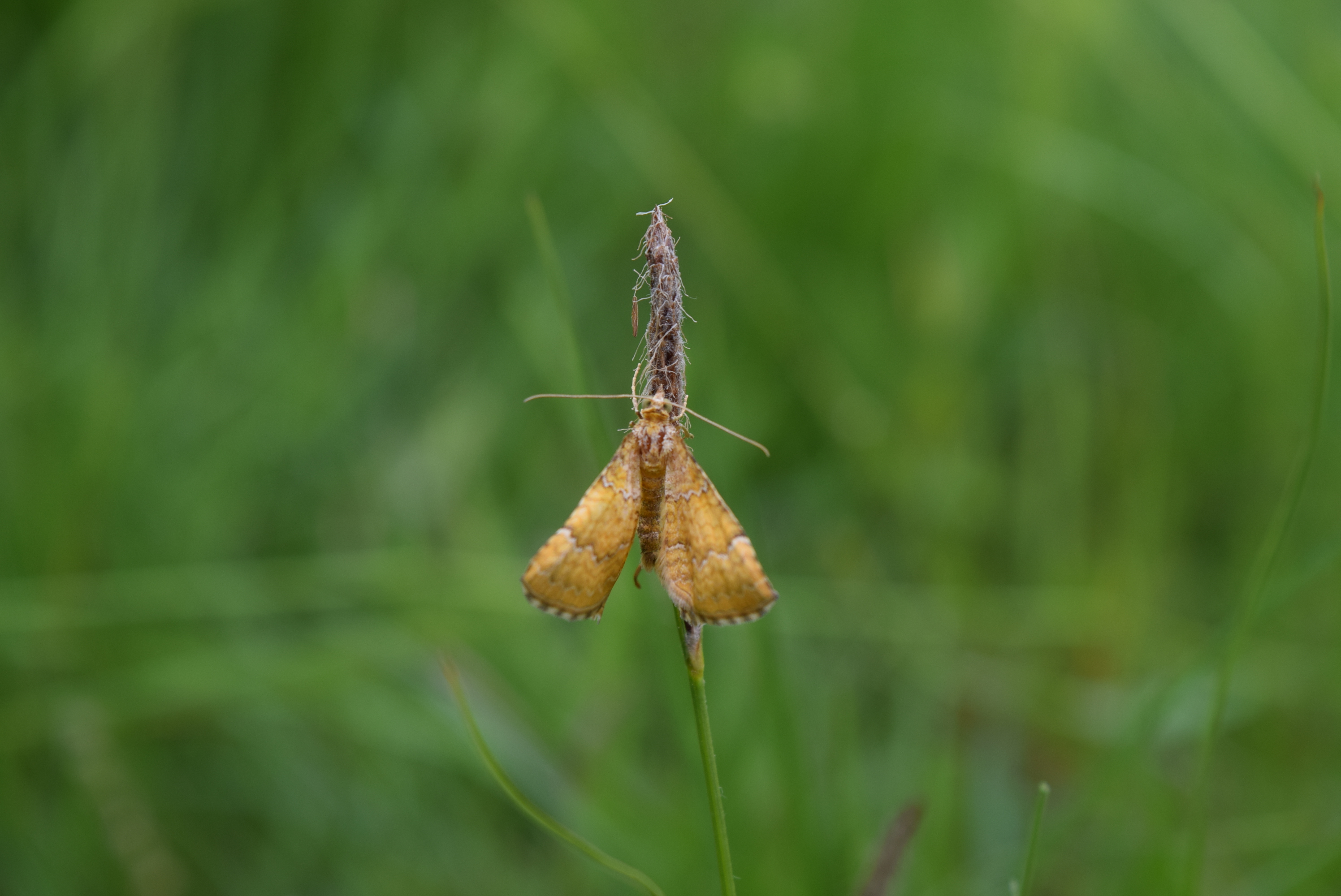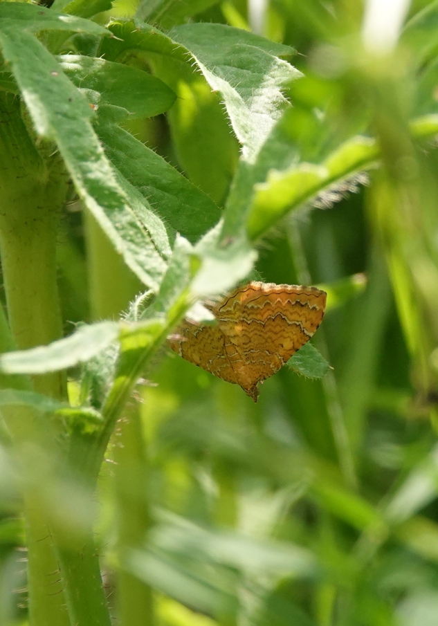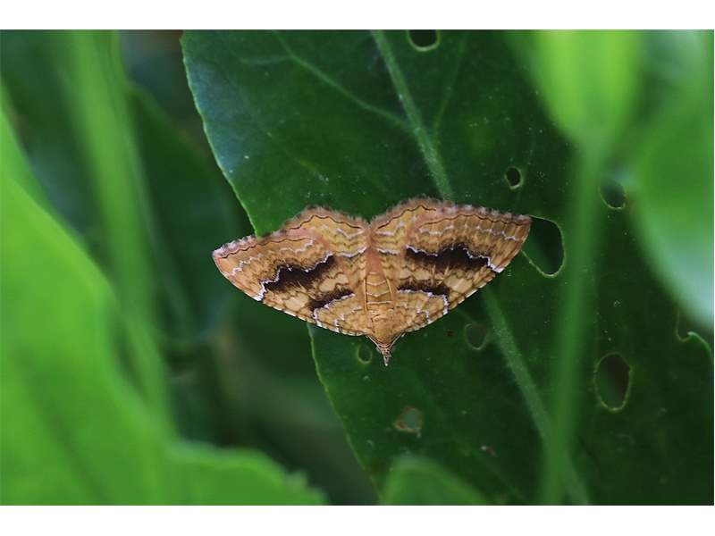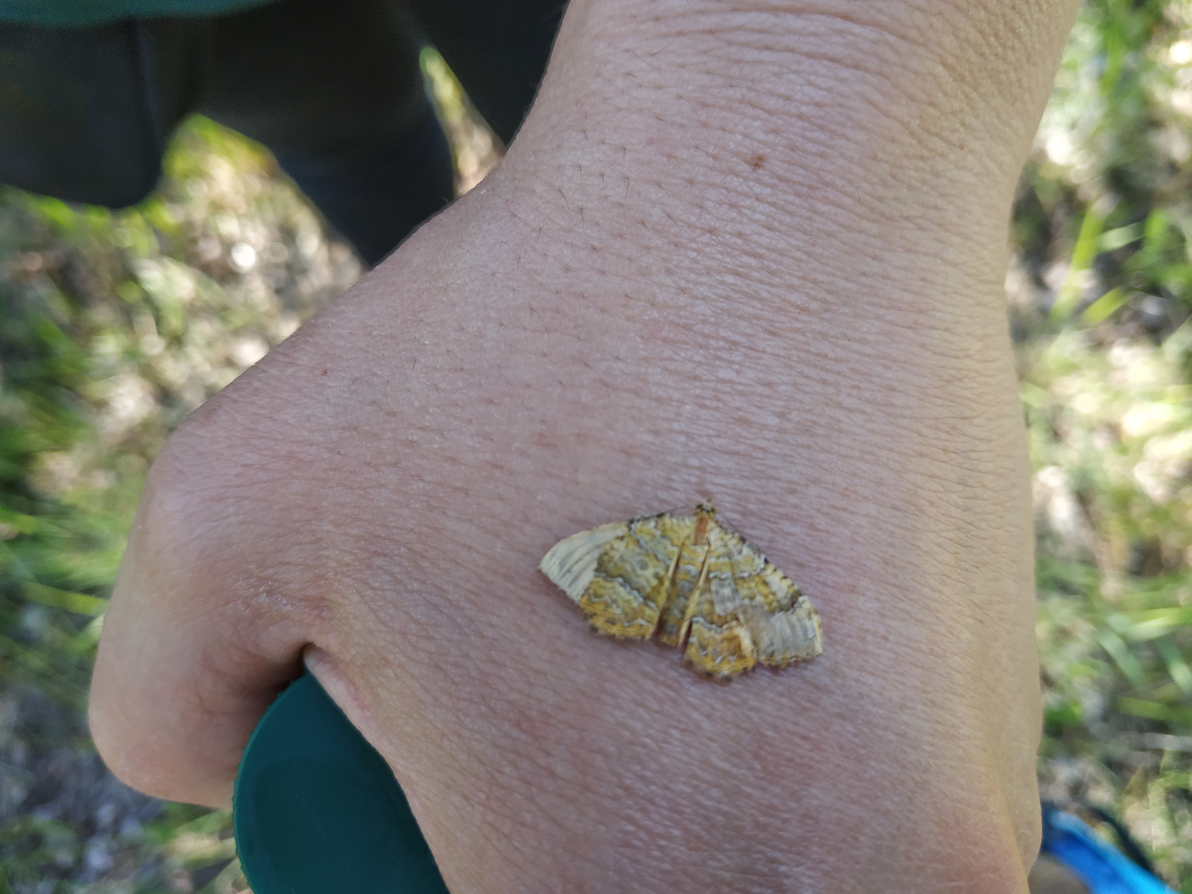 Ockergelbe Blattspanner, oder Löwenzahnspanner oder Brennnesselspanner (Camptogramma bilineata (Linnaeus, 1758)), am Licht, Radeberg, August 2013.