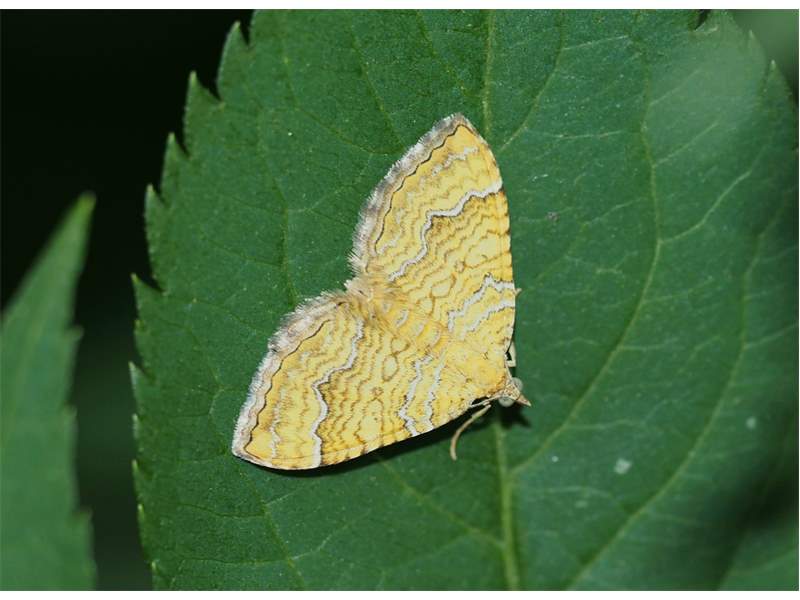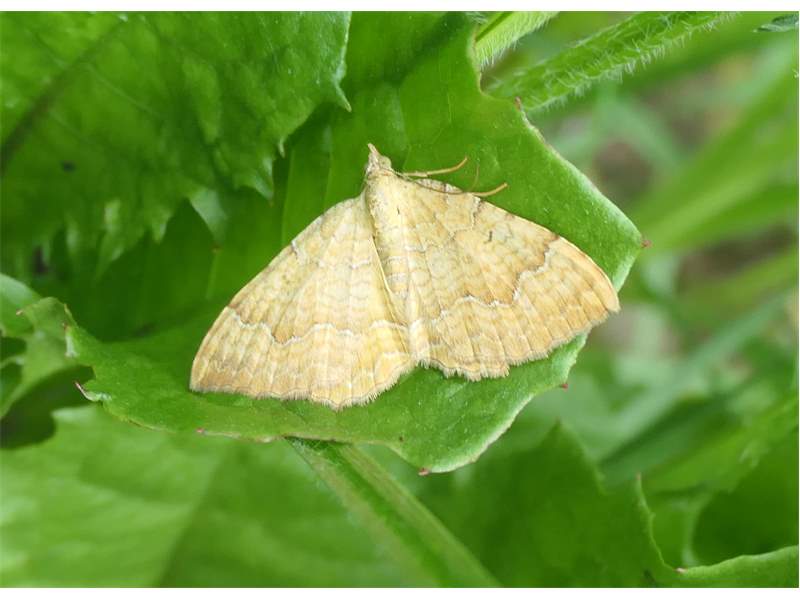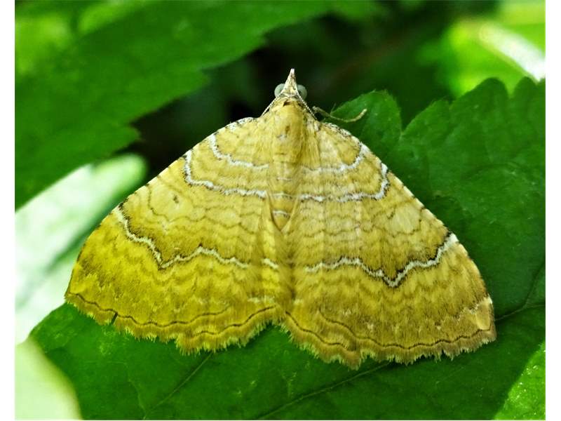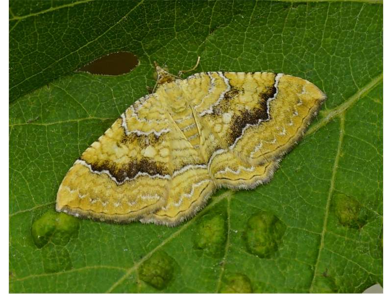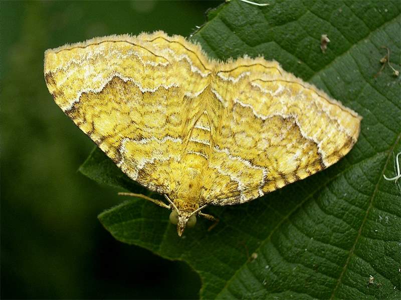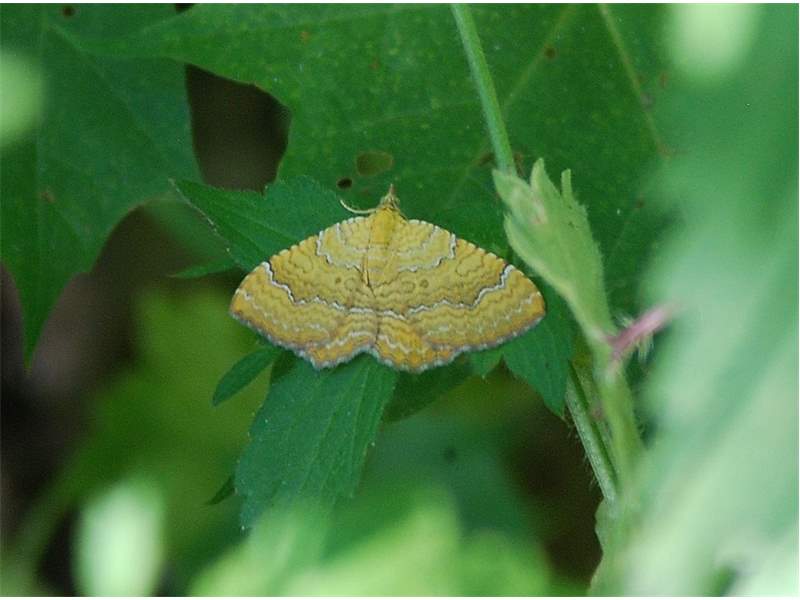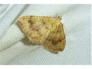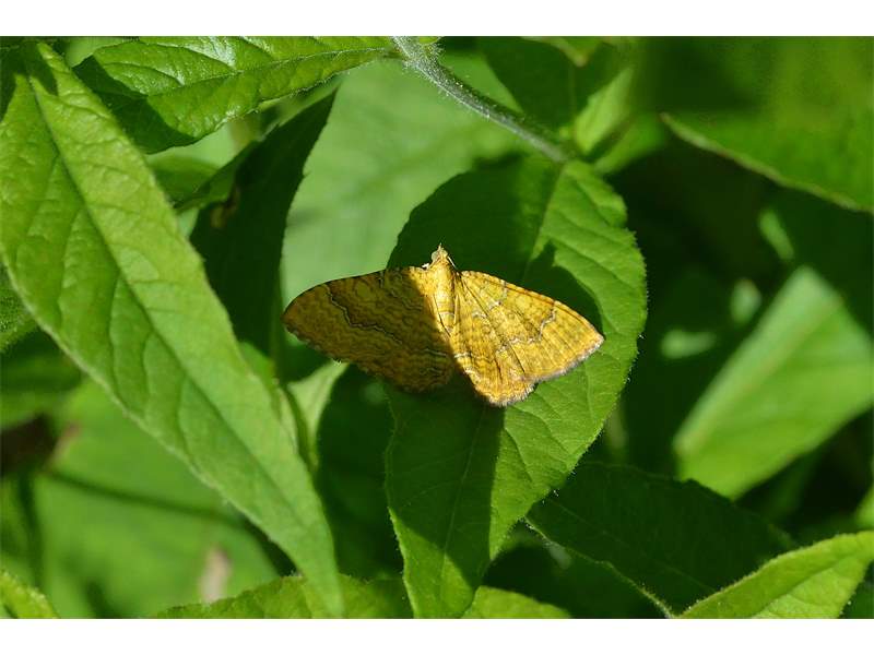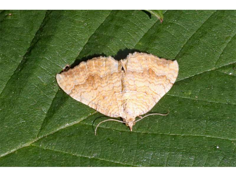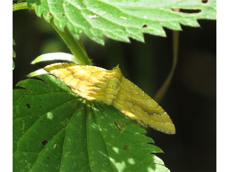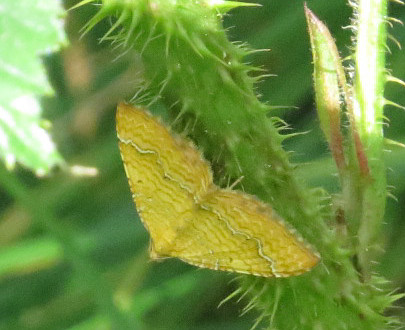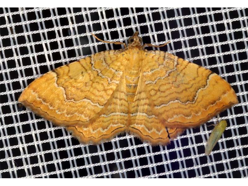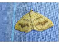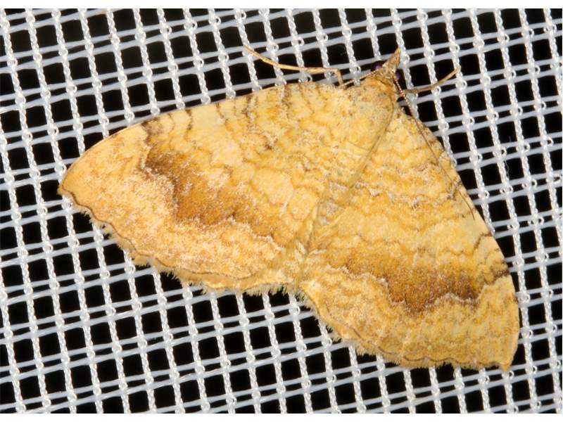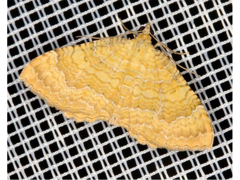 Ockergelbe Blattspanner, oder Löwenzahnspanner oder Brennnesselspanner (Camptogramma bilineata (Linnaeus, 1758)), am Licht, Radeberg, August 2013. (© Udo Lemke)( Bild vergrößern)