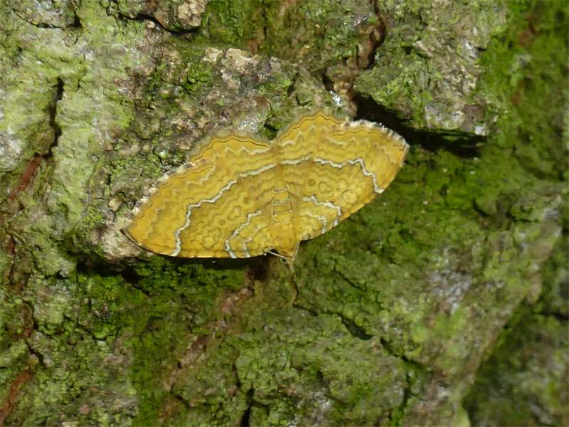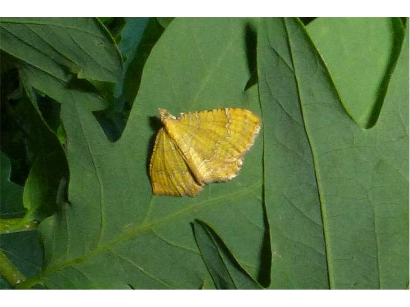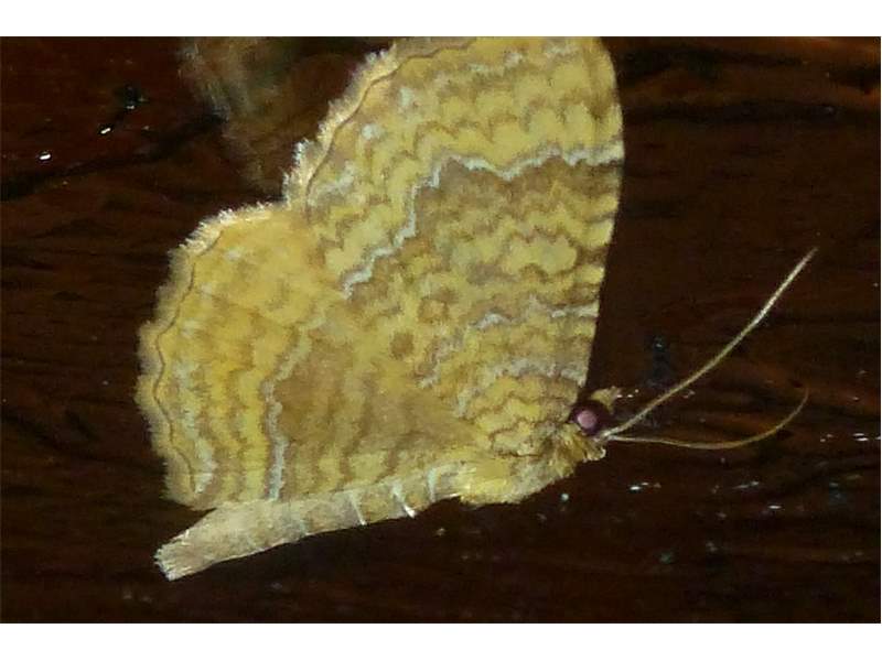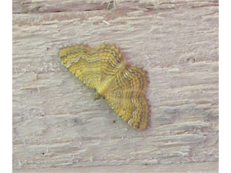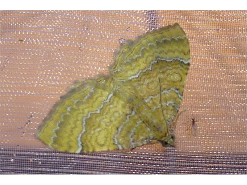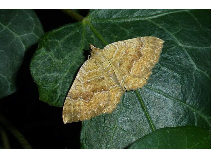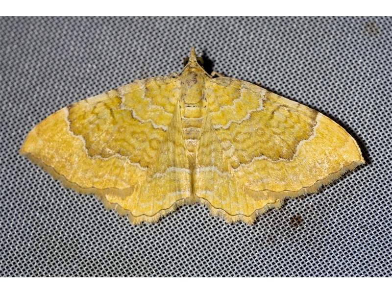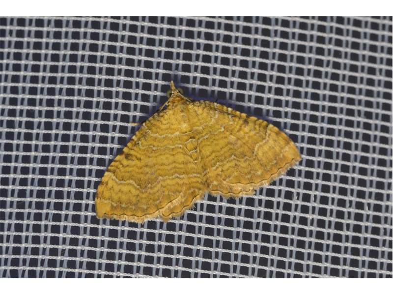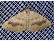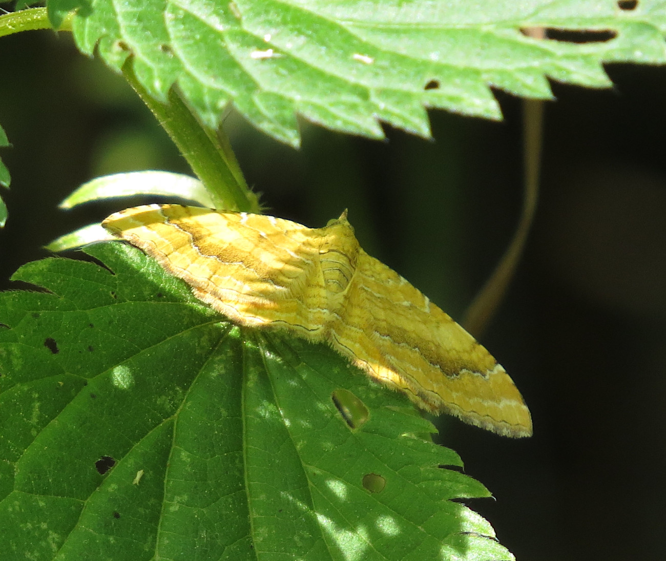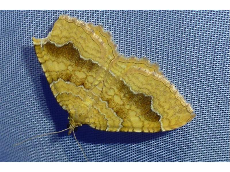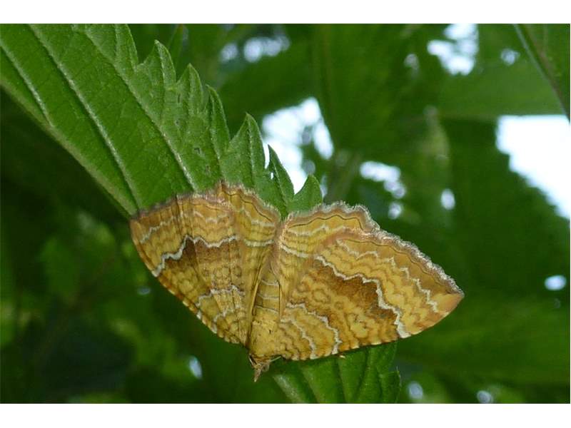 Ockergelbe Blattspanner, oder Löwenzahnspanner oder Brennnesselspanner (Camptogramma bilineata (Linnaeus, 1758)), am Licht, Radeberg, August 2013. (© Udo Lemke)( Bild vergrößern)
