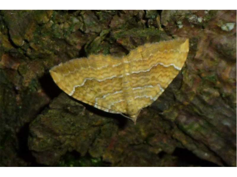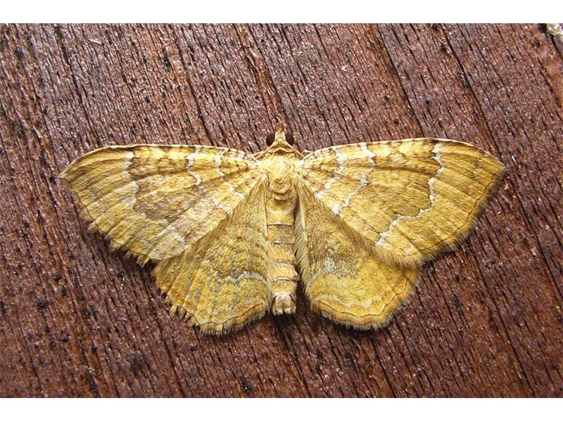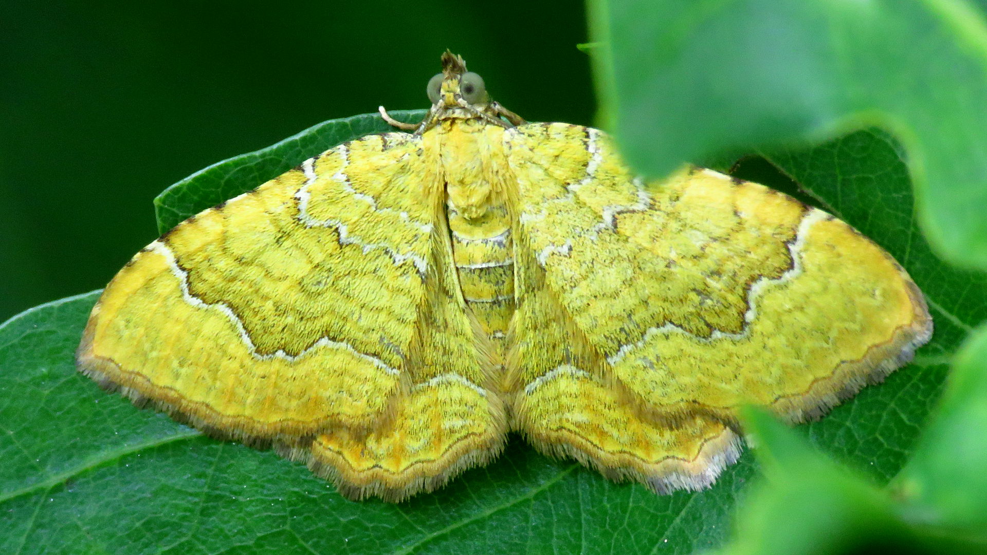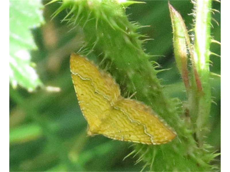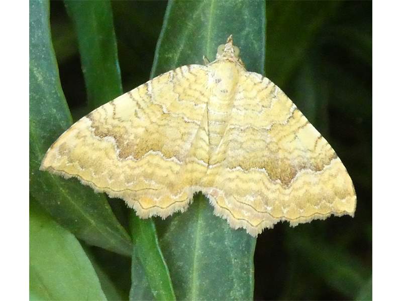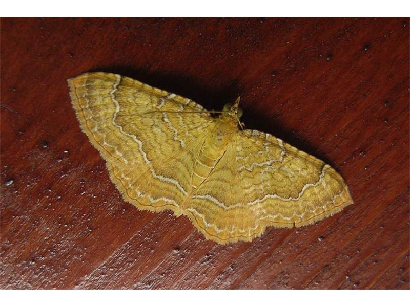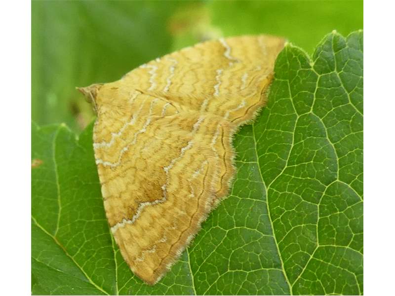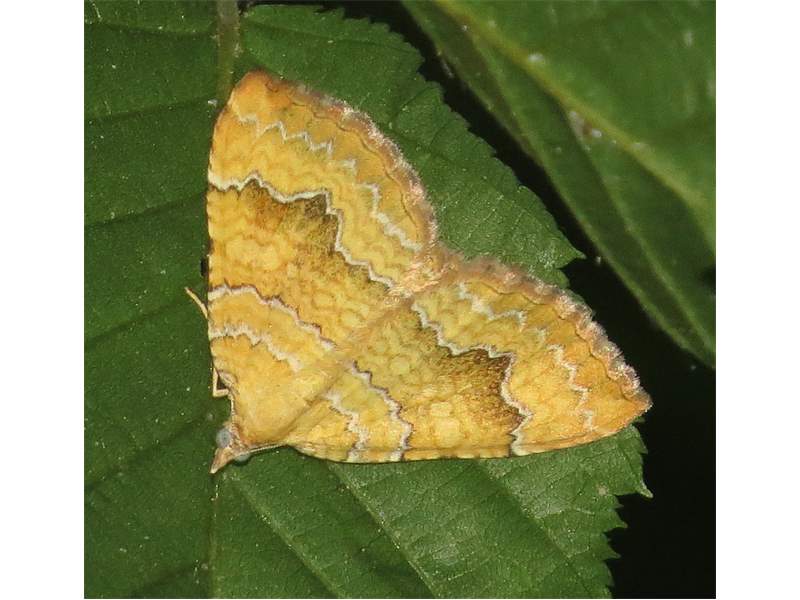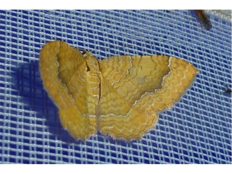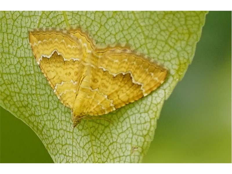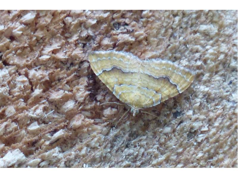 Ockergelbe Blattspanner, oder Löwenzahnspanner oder Brennnesselspanner (Camptogramma bilineata (Linnaeus, 1758)), am Licht, Radeberg, August 2013. (© Udo Lemke)( Bild vergrößern)