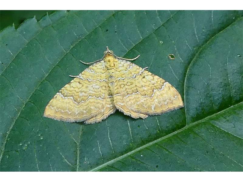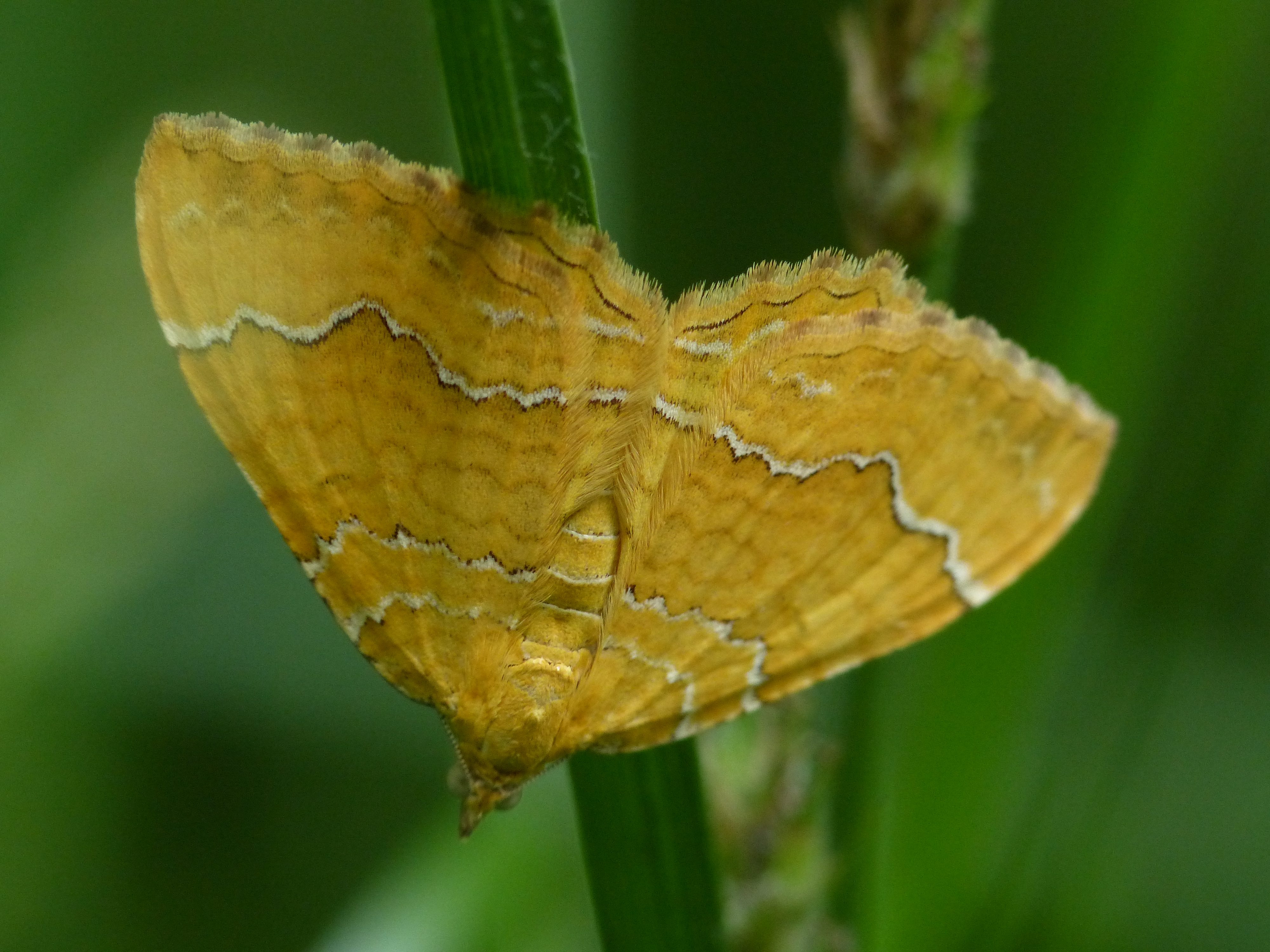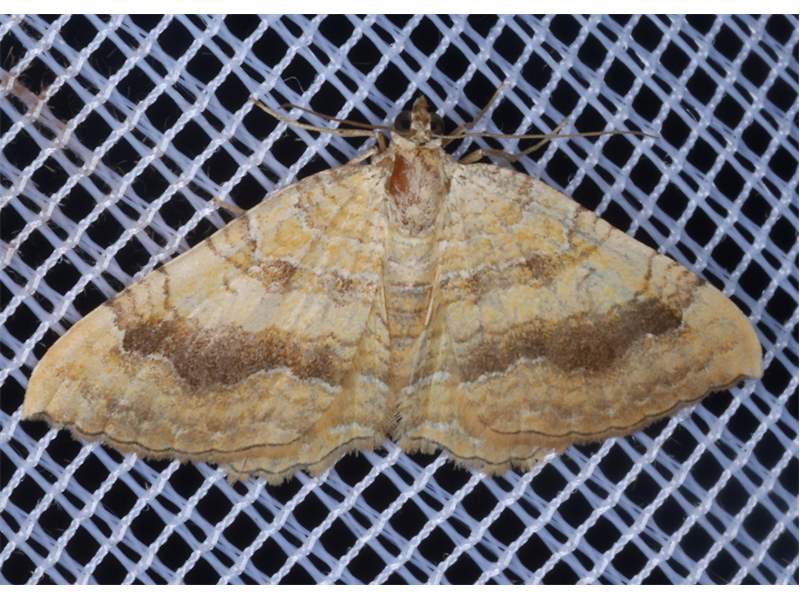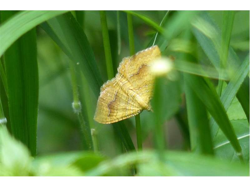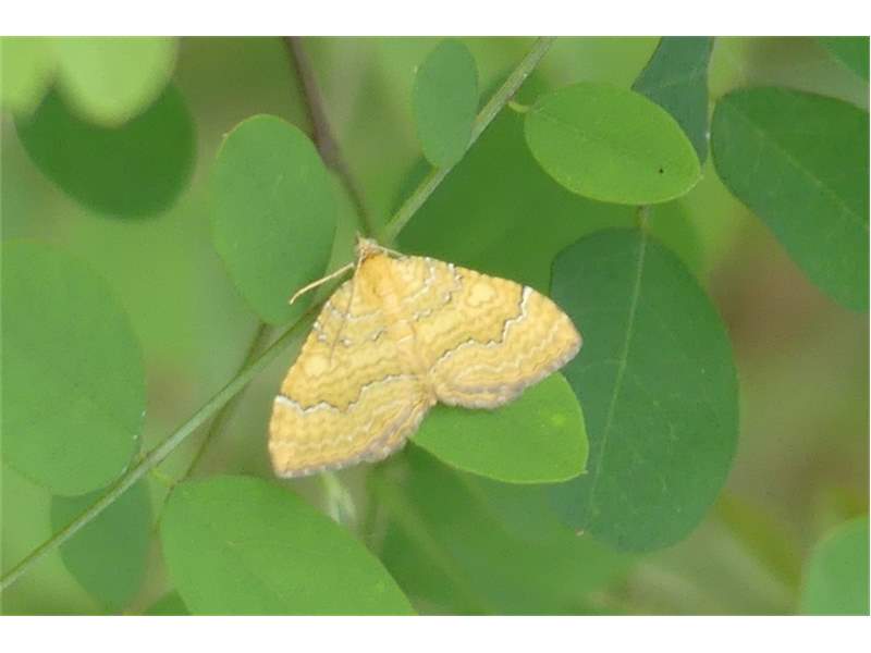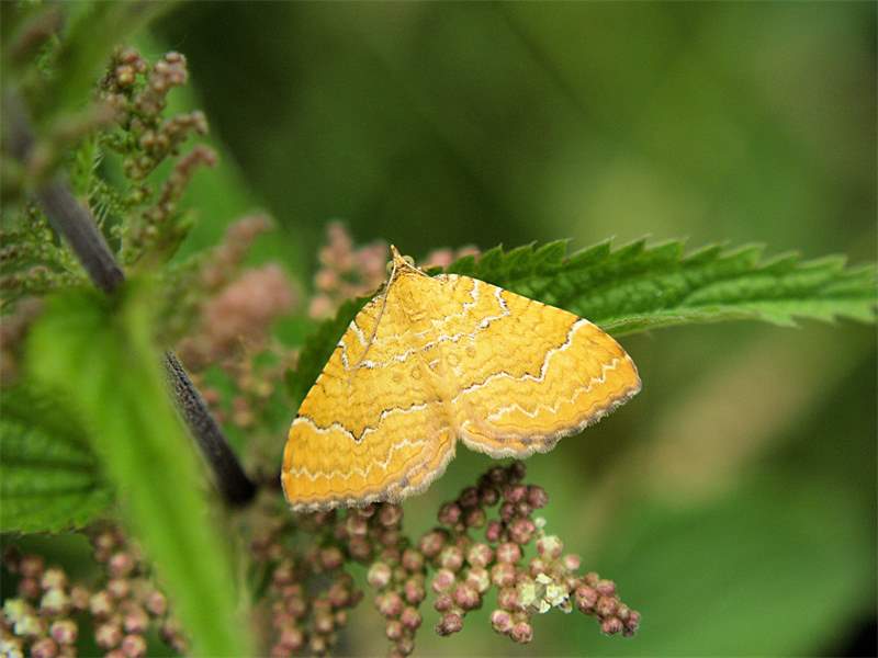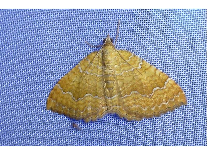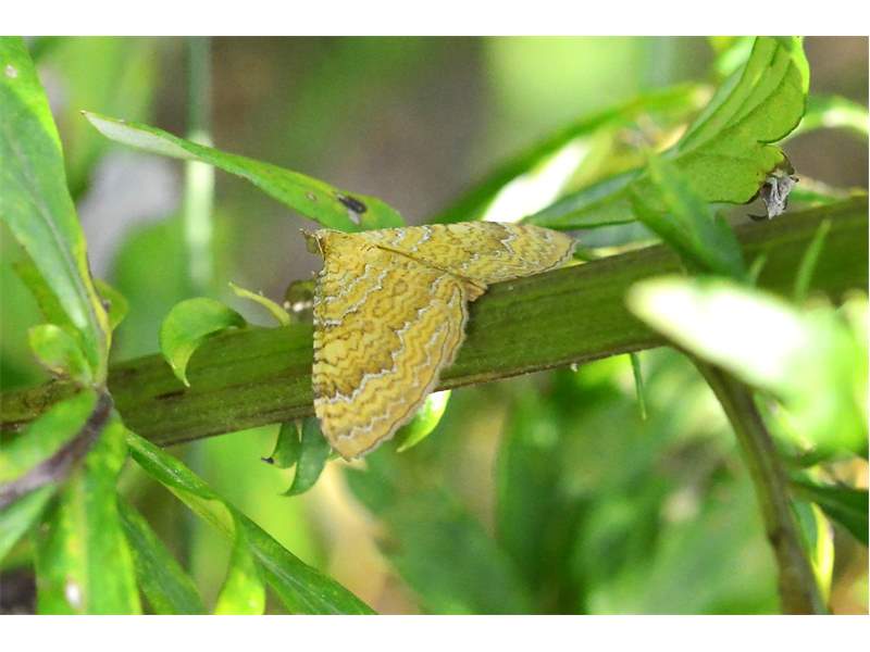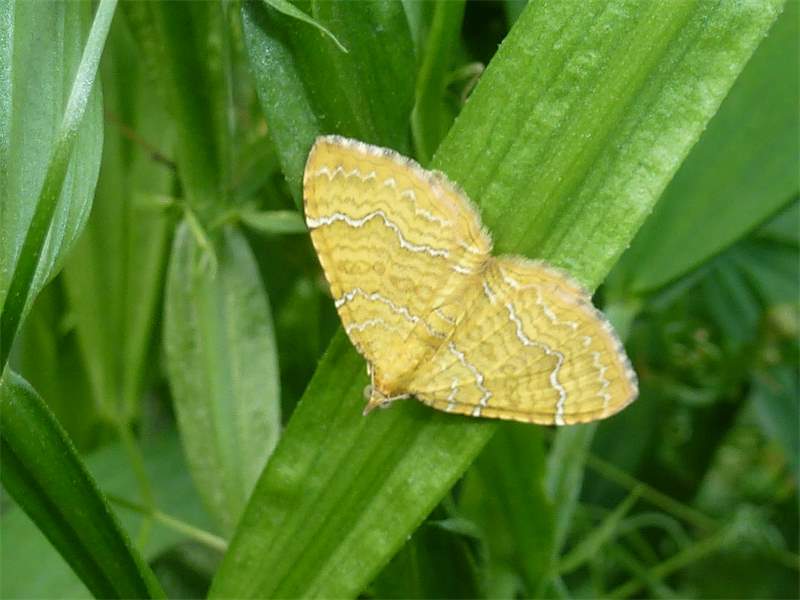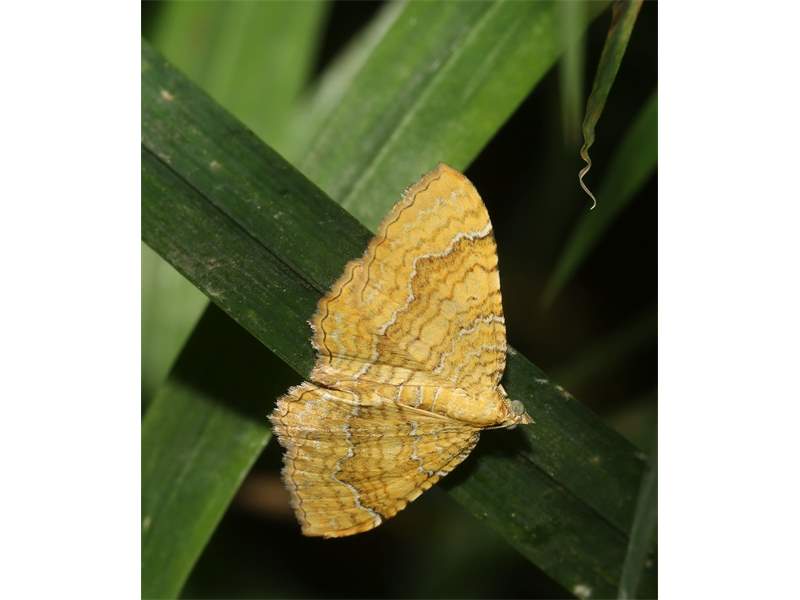 Ockergelbe Blattspanner, oder Löwenzahnspanner oder Brennnesselspanner (Camptogramma bilineata (Linnaeus, 1758)), am Licht, Radeberg, August 2013. (© Udo Lemke)( Bild vergrößern)