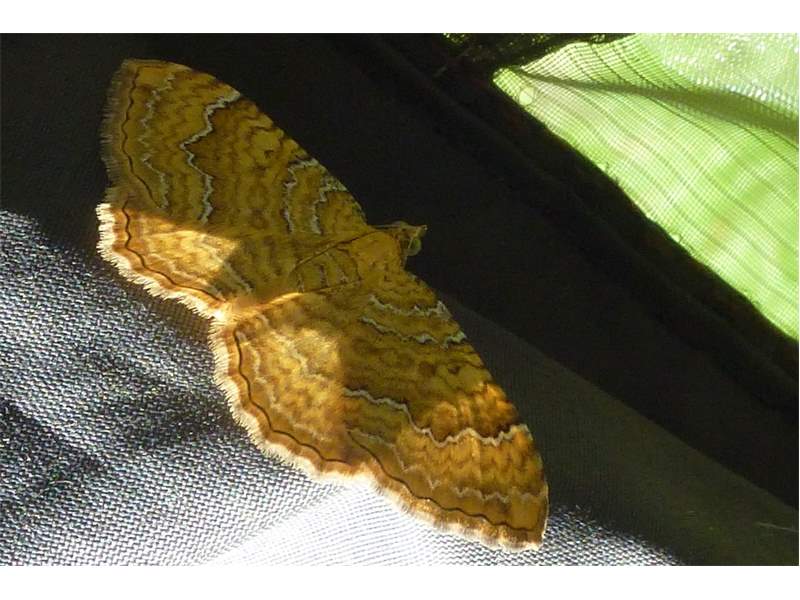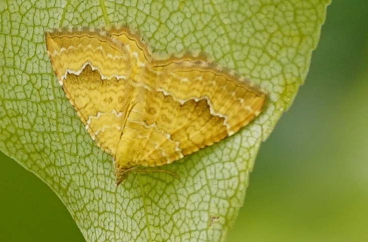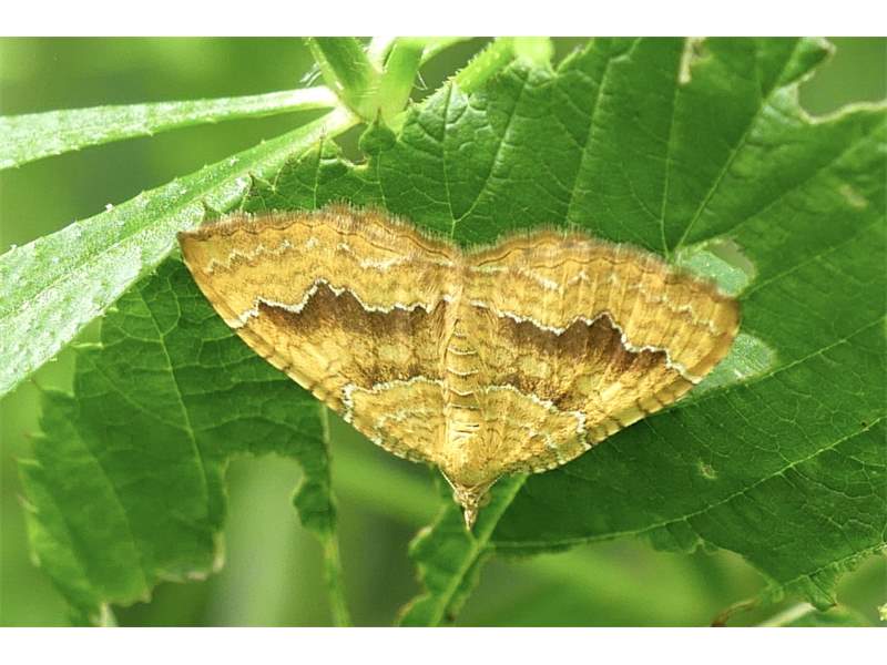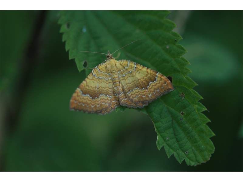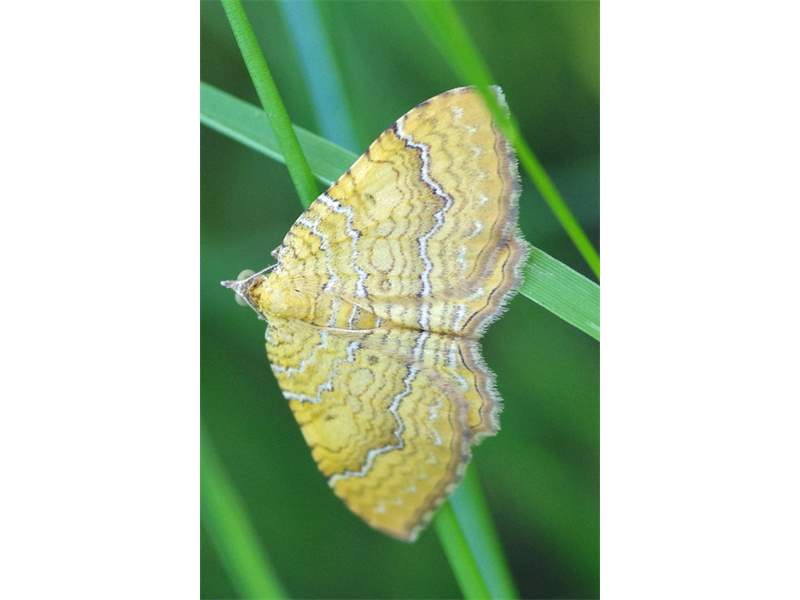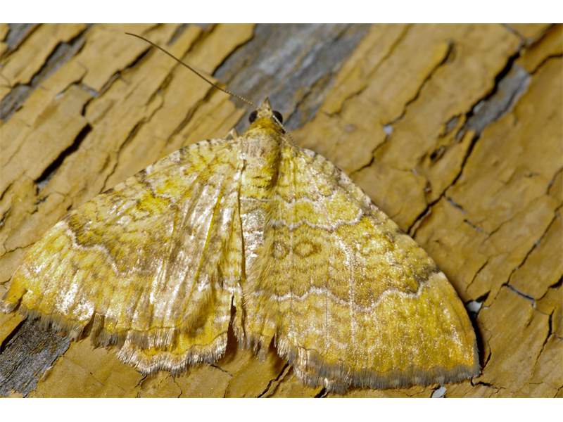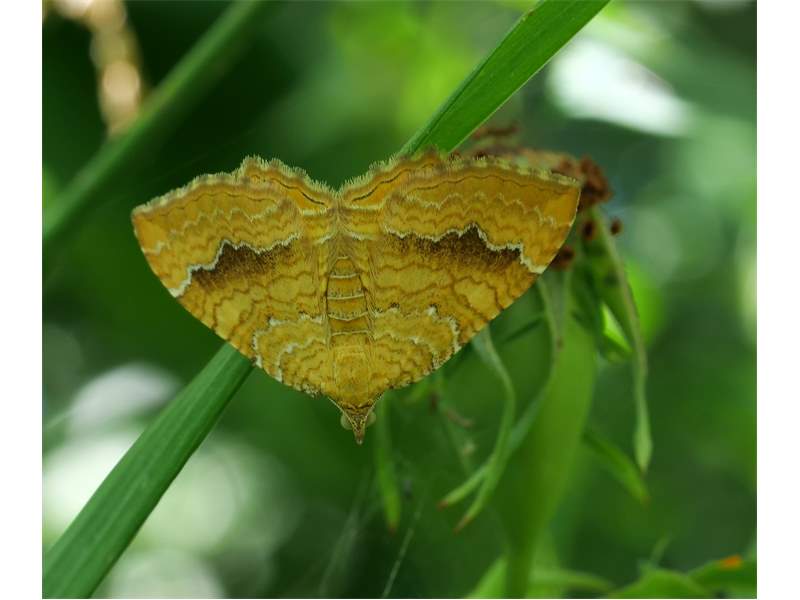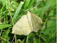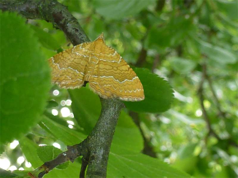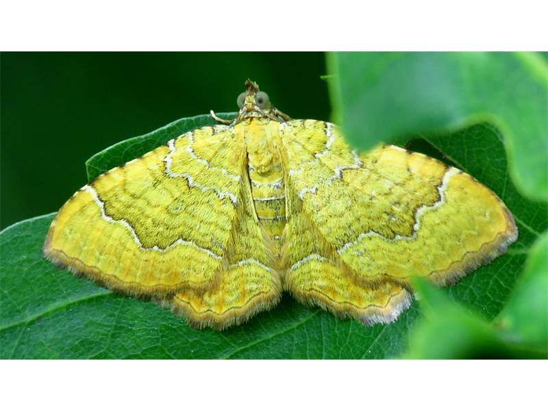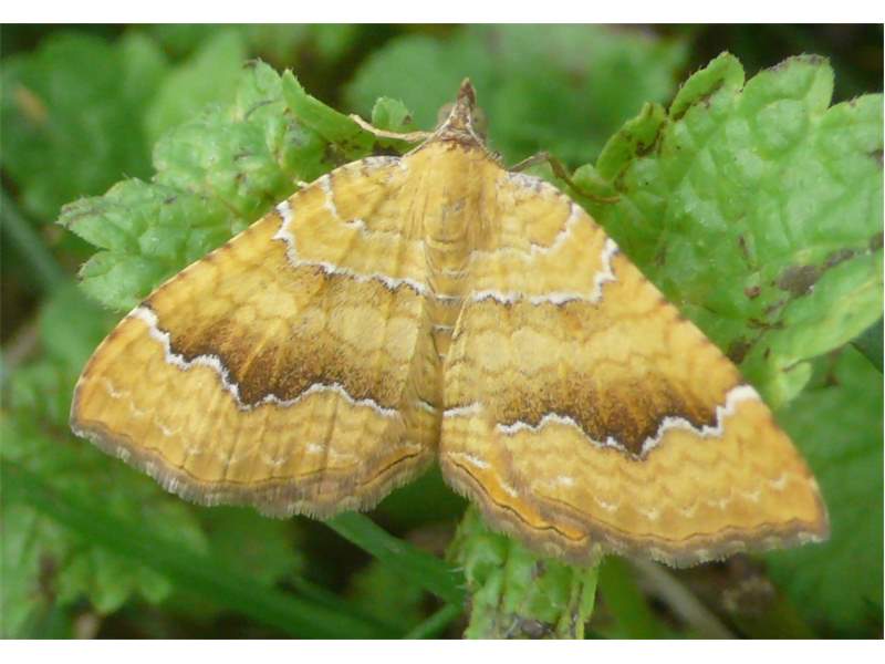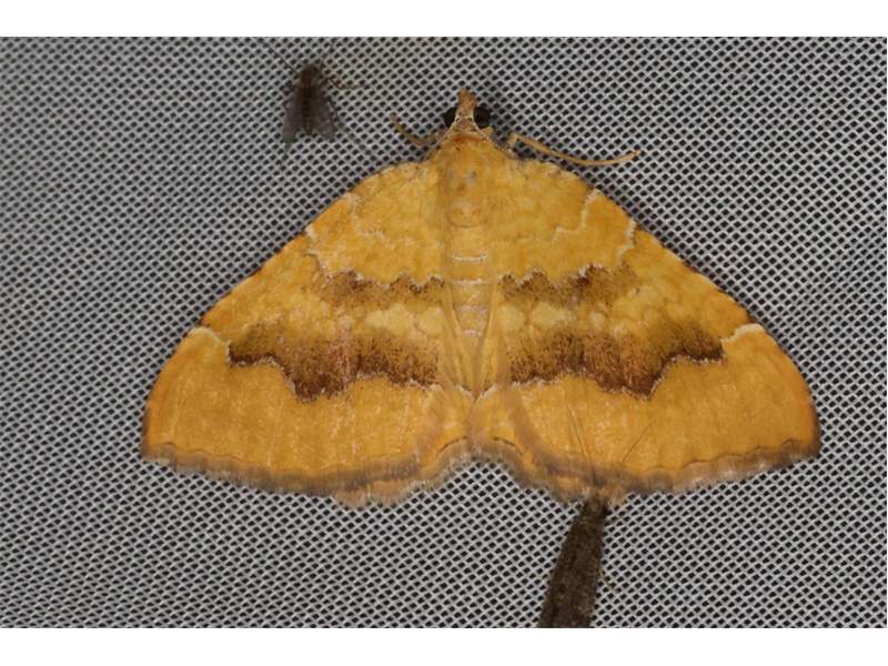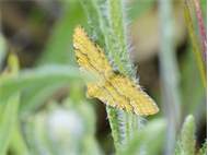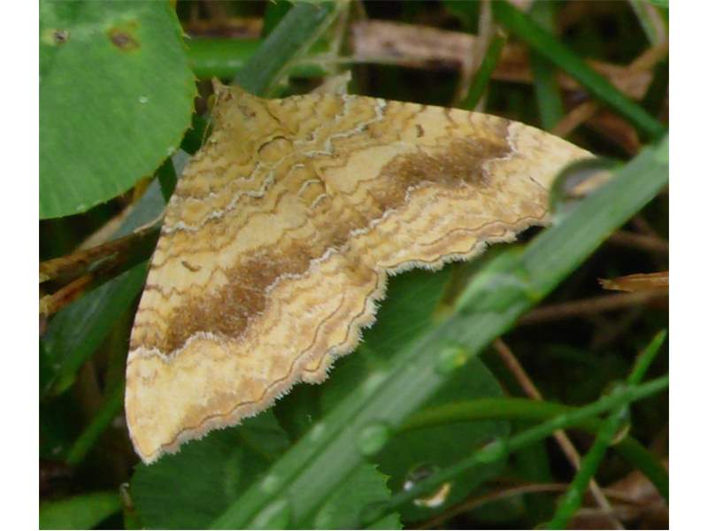 Ockergelbe Blattspanner, oder Löwenzahnspanner oder Brennnesselspanner (Camptogramma bilineata (Linnaeus, 1758)), am Licht, Radeberg, August 2013. (© Udo Lemke)( Bild vergrößern)