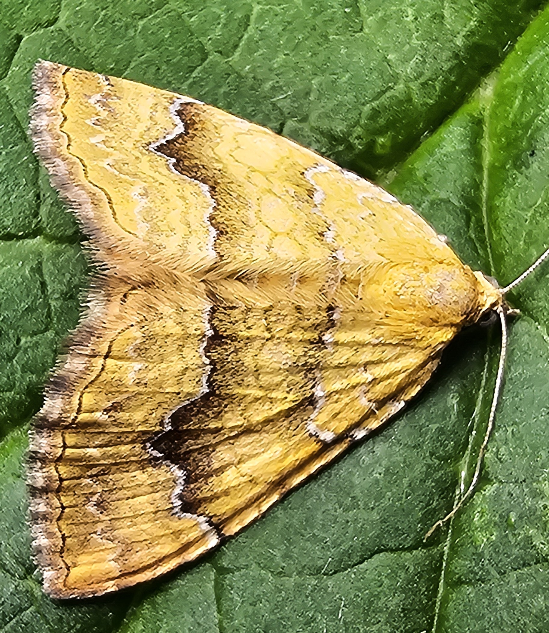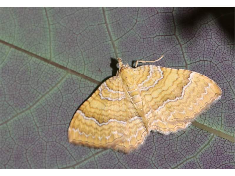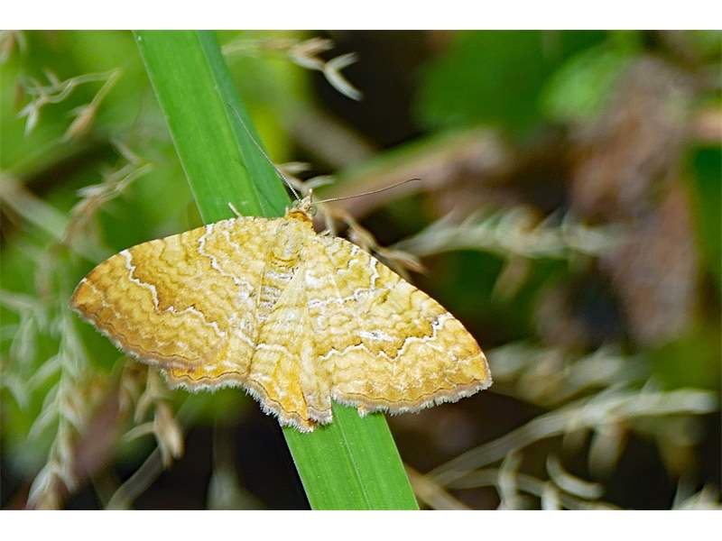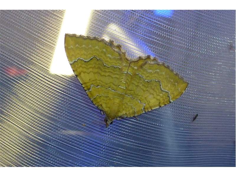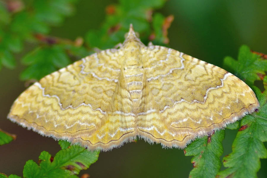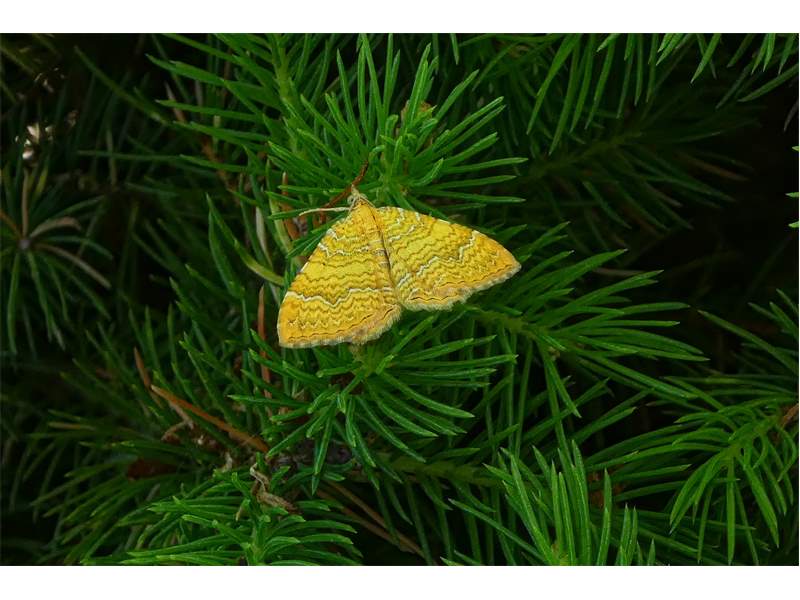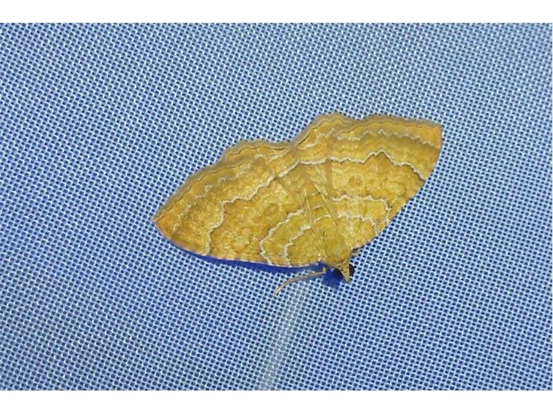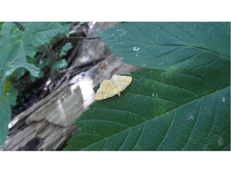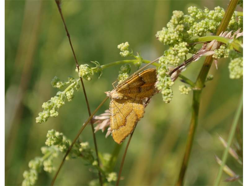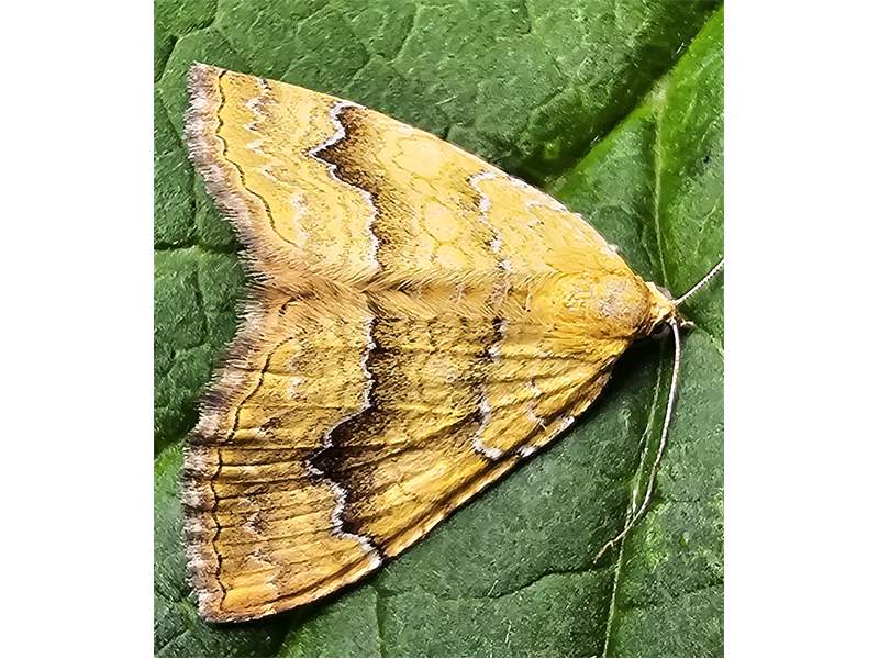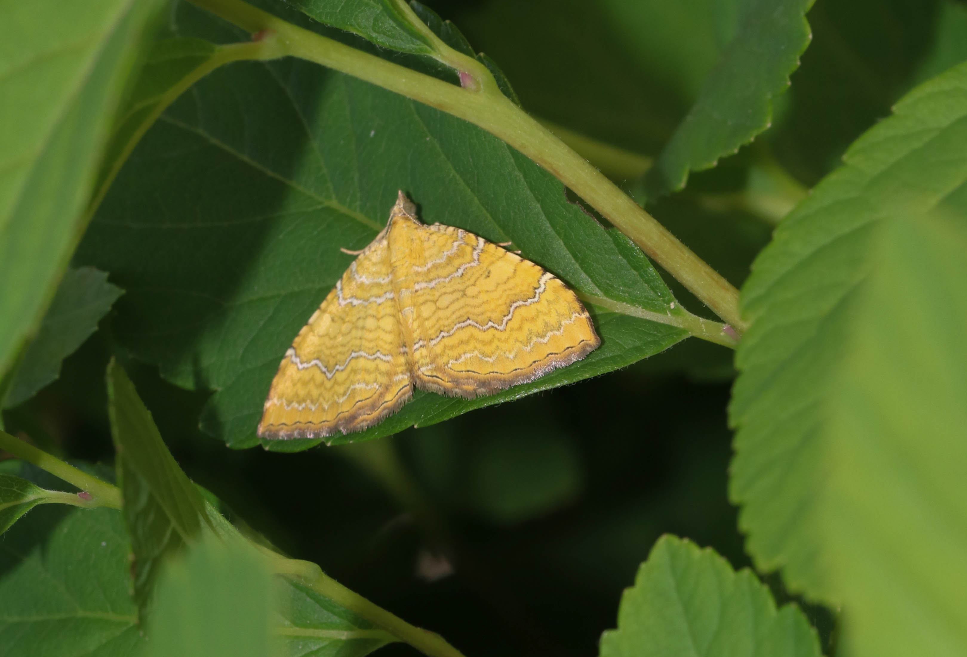Ockergelbe Blattspanner, oder Löwenzahnspanner oder Brennnesselspanner (Camptogramma bilineata (Linnaeus, 1758)), am Licht, Radeberg, August 2013. (© Udo Lemke)( Bild vergrößern)