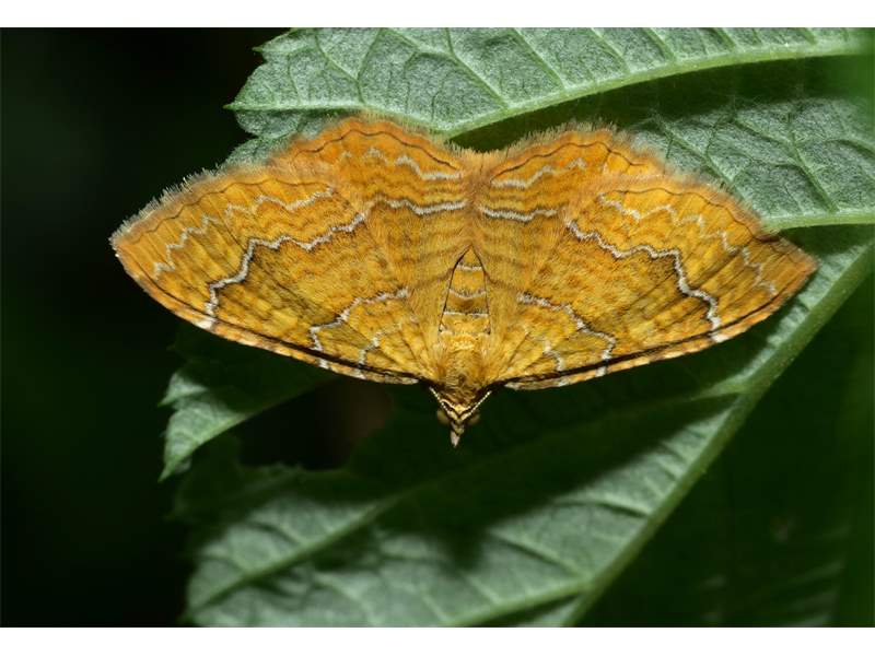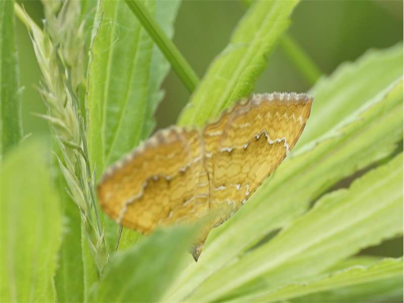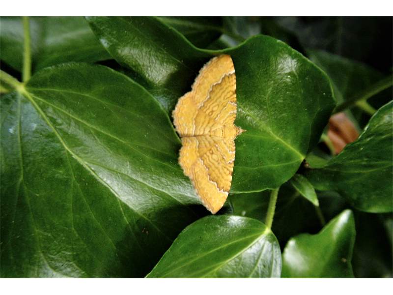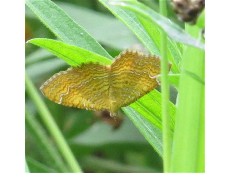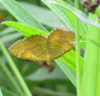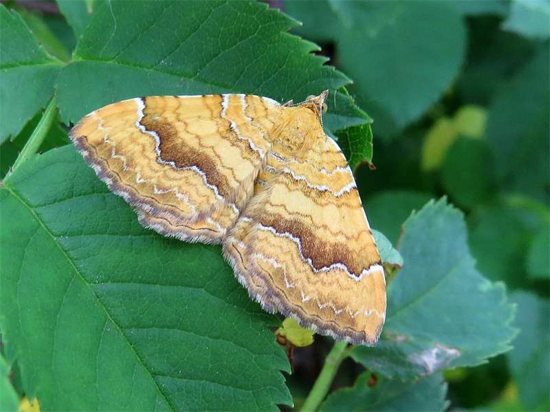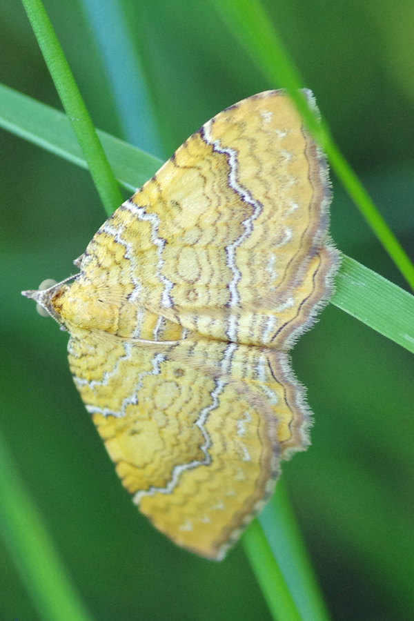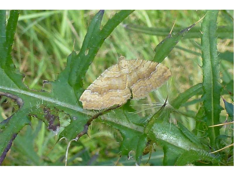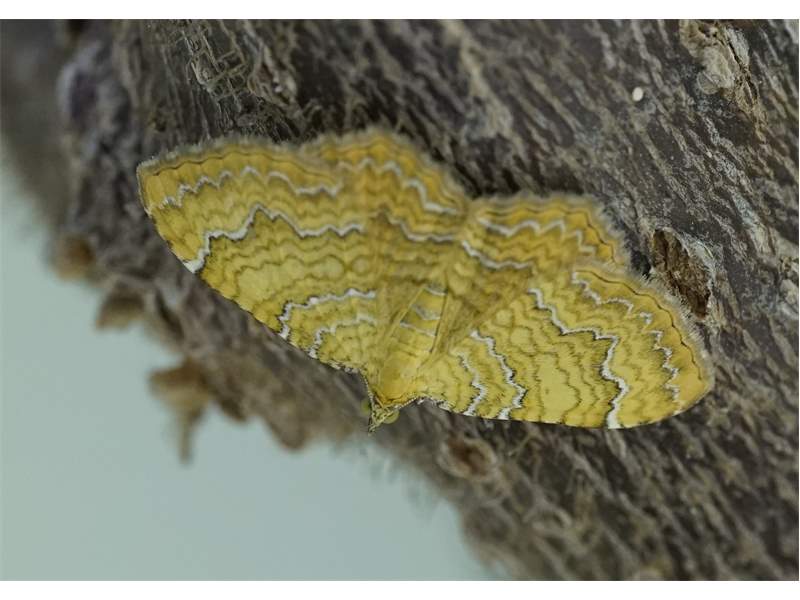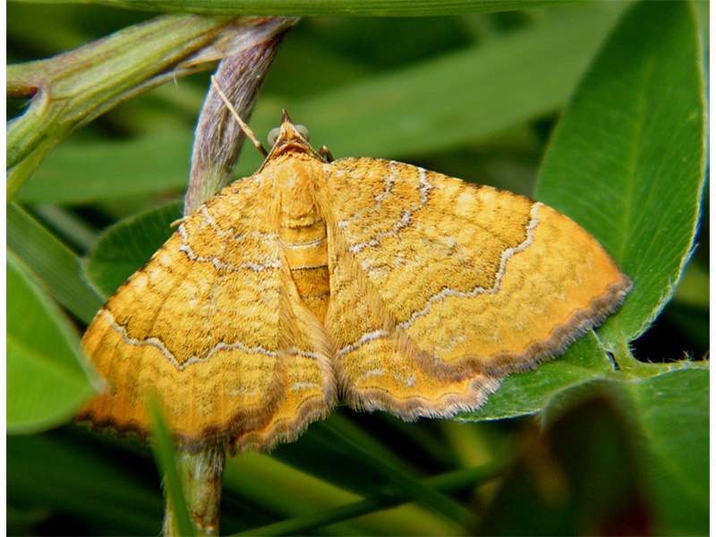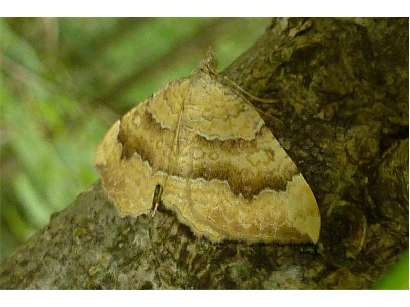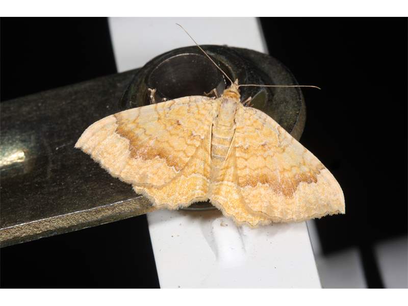 Ockergelbe Blattspanner, oder Löwenzahnspanner oder Brennnesselspanner (Camptogramma bilineata (Linnaeus, 1758)), am Licht, Radeberg, August 2013. (© Udo Lemke)( Bild vergrößern)