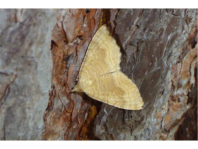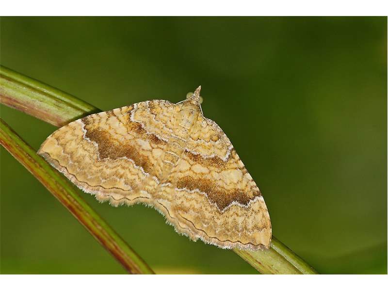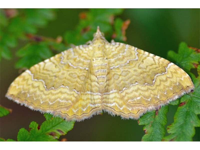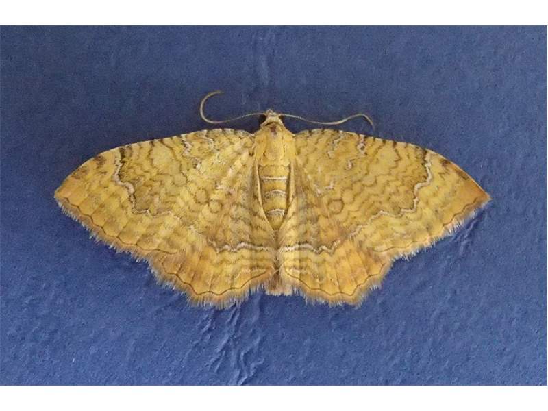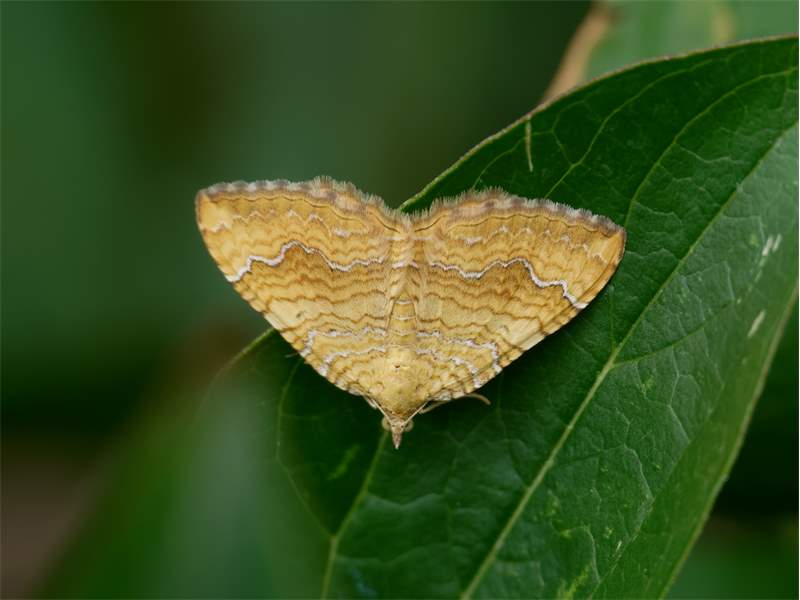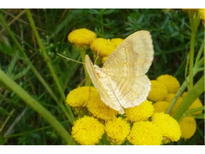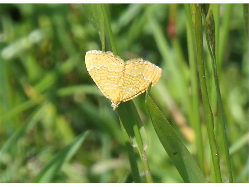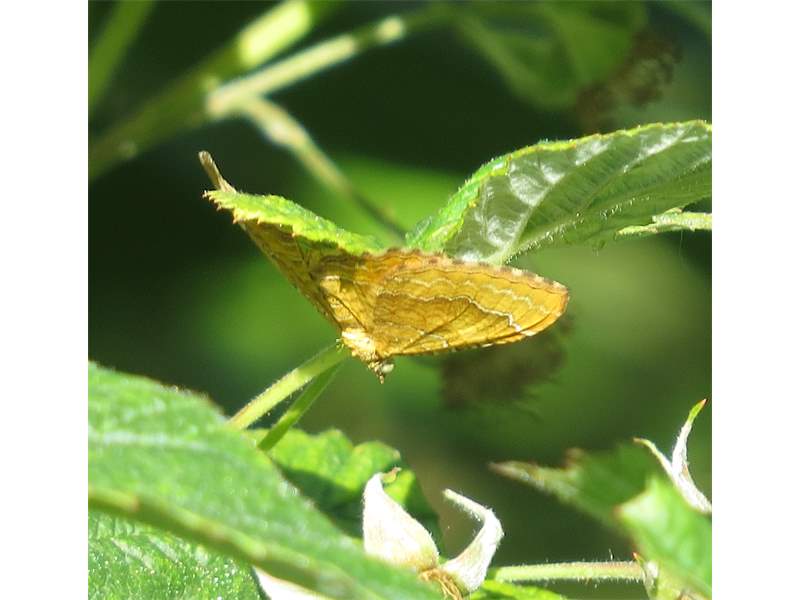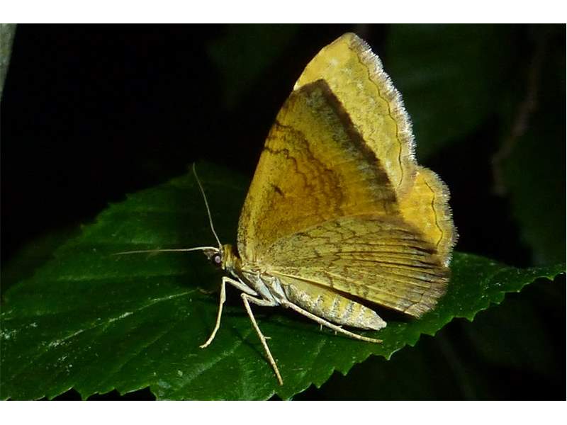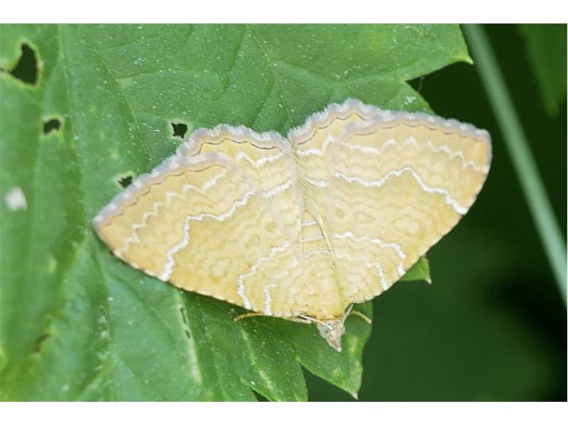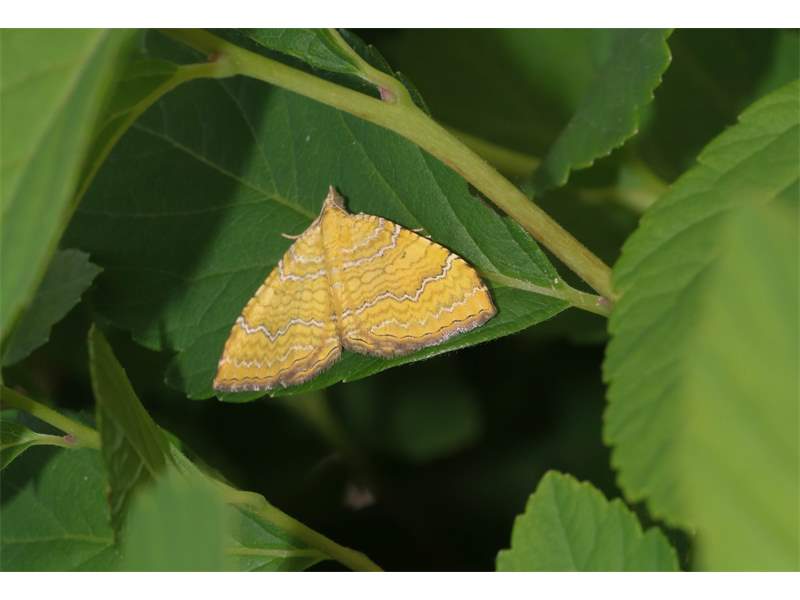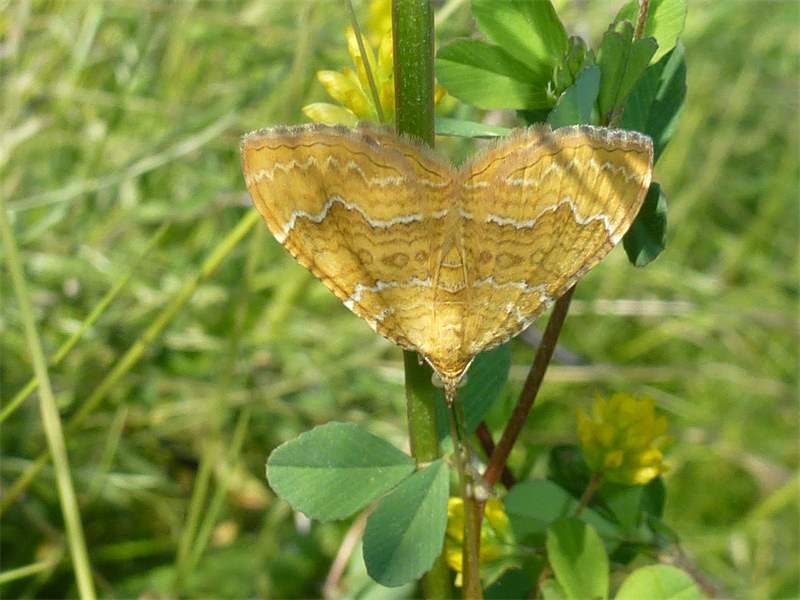 Ockergelbe Blattspanner, oder Löwenzahnspanner oder Brennnesselspanner (Camptogramma bilineata (Linnaeus, 1758)), am Licht, Radeberg, August 2013. (© Udo Lemke)( Bild vergrößern)
