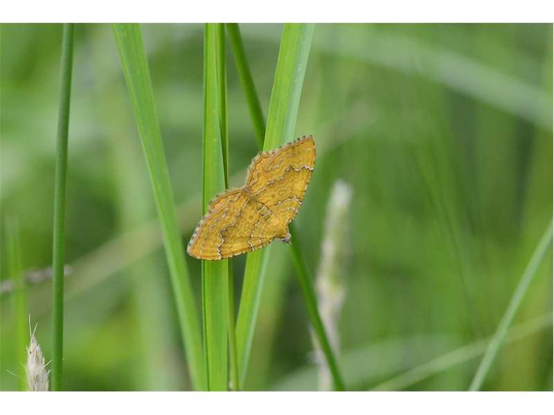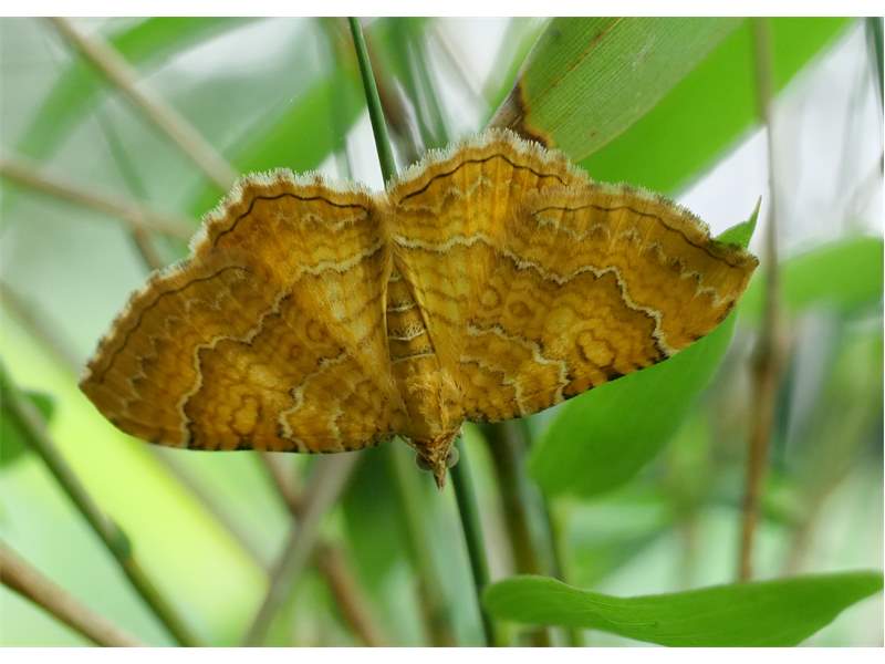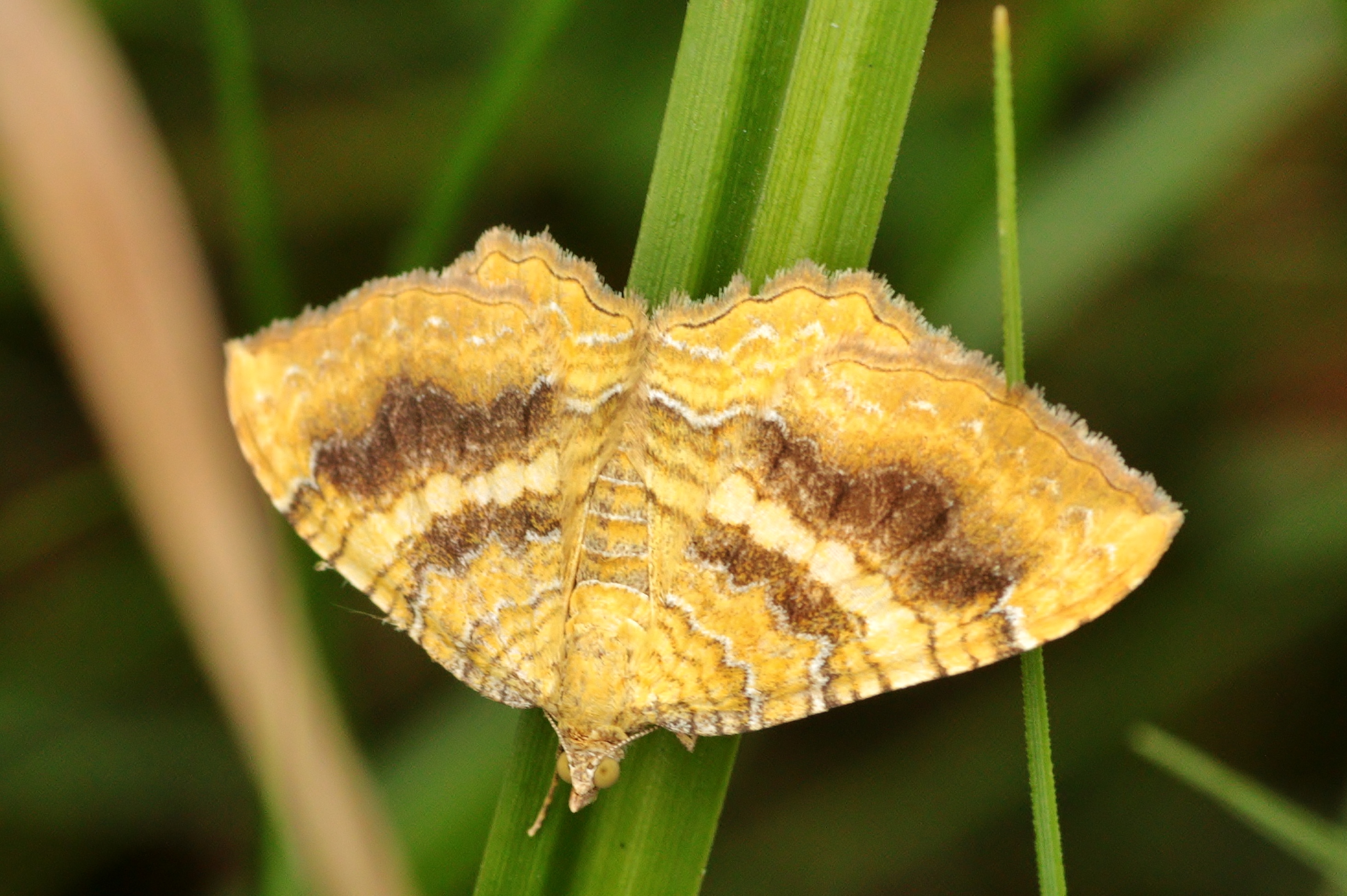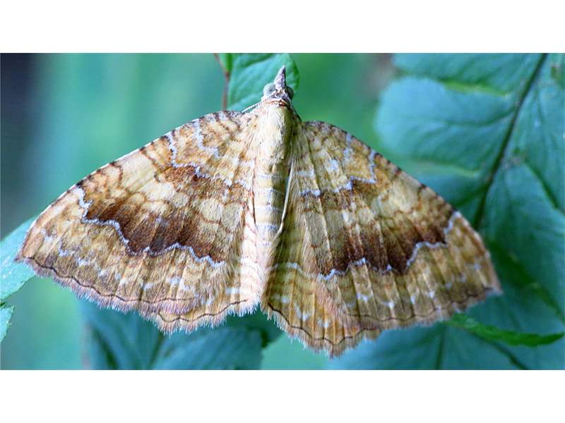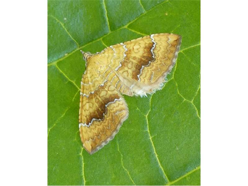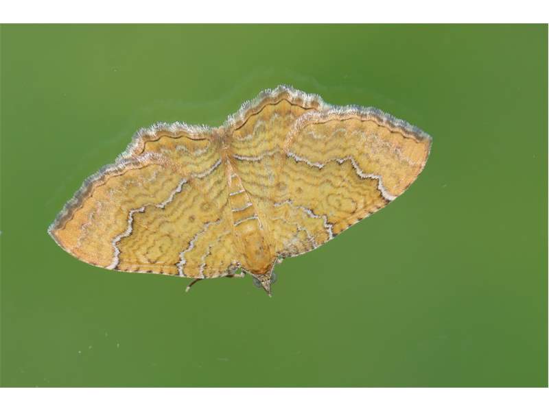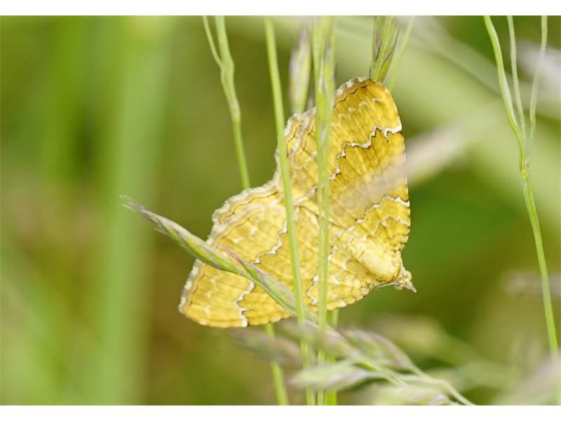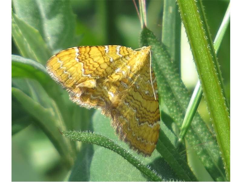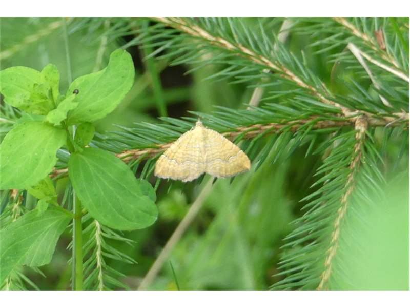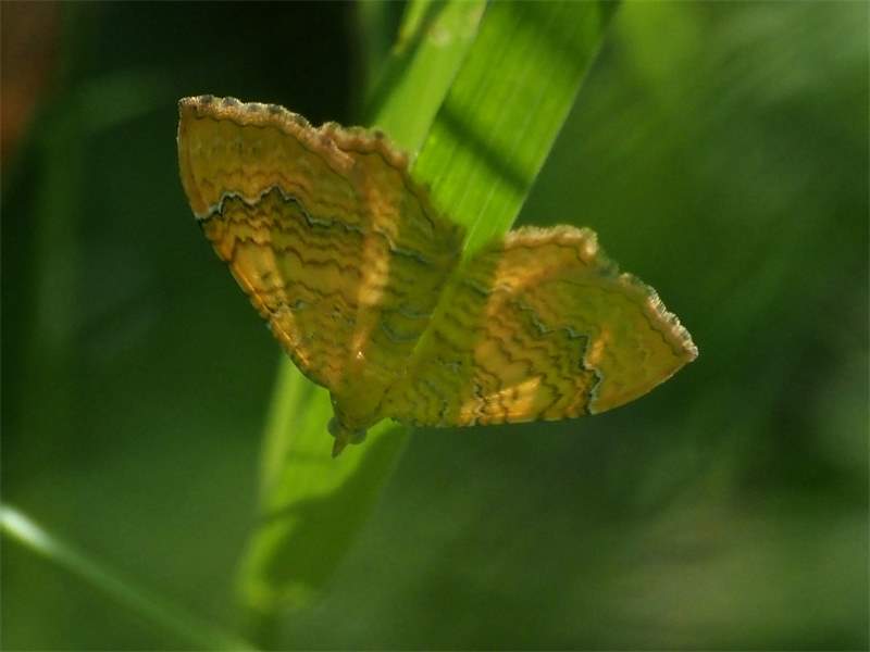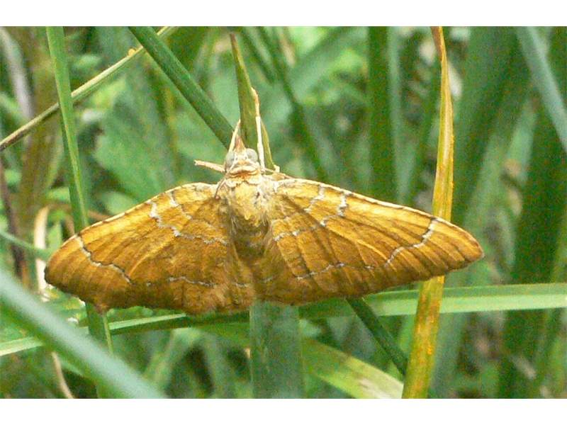 Ockergelbe Blattspanner, oder Löwenzahnspanner oder Brennnesselspanner (Camptogramma bilineata (Linnaeus, 1758)), am Licht, Radeberg, August 2013. (© Udo Lemke)( Bild vergrößern)