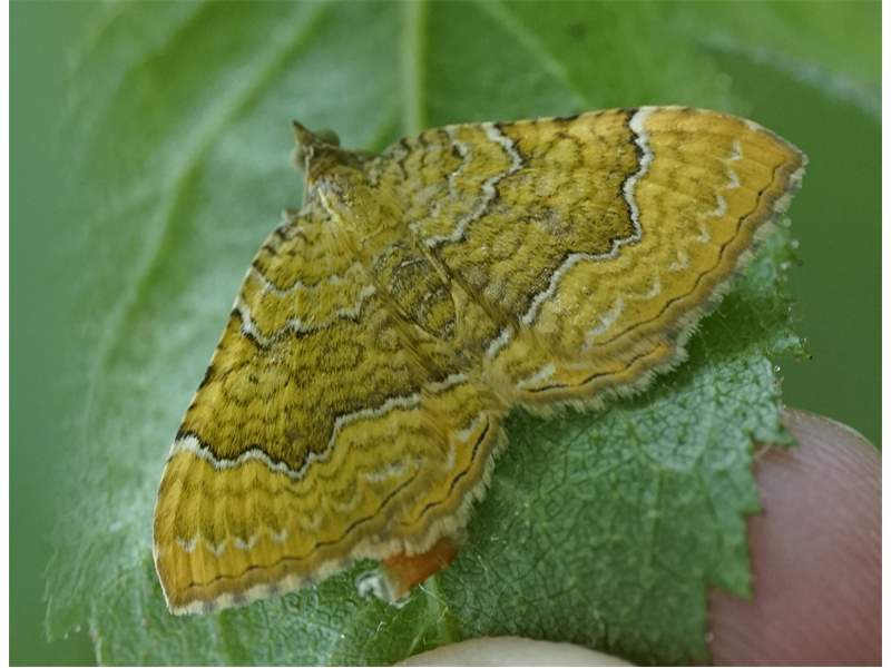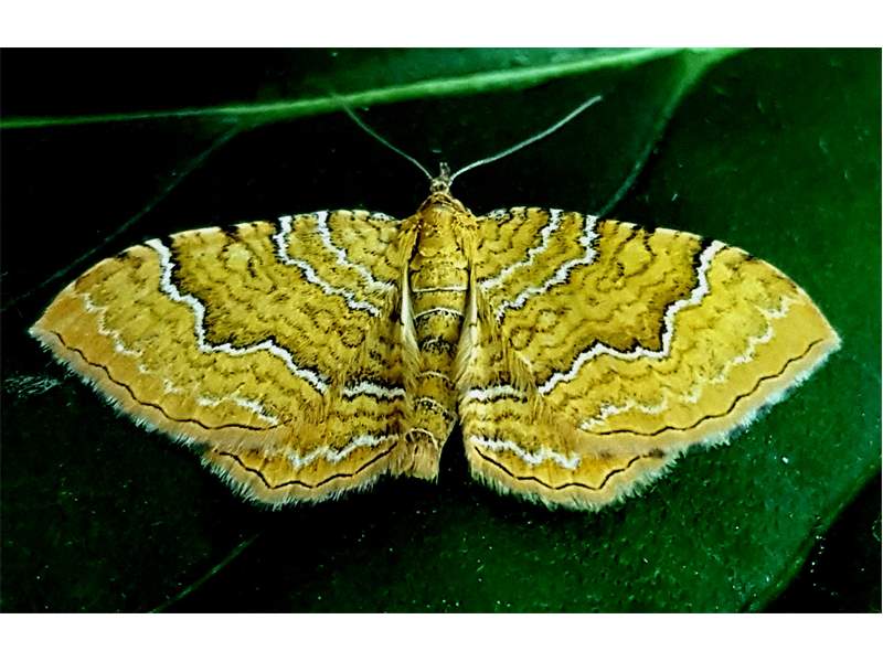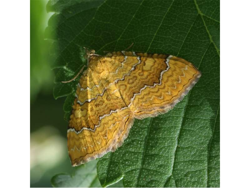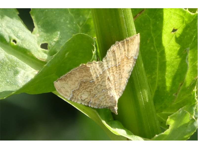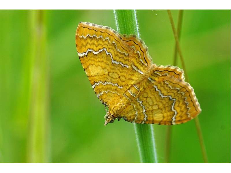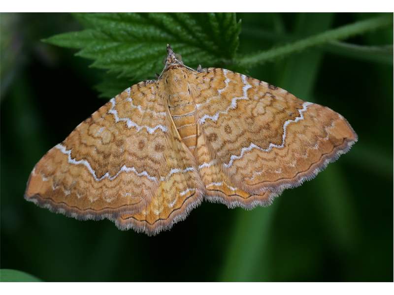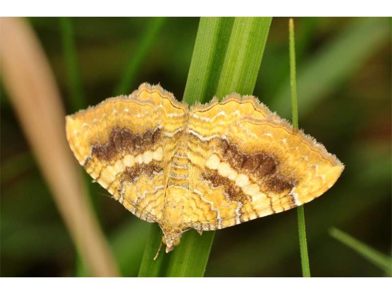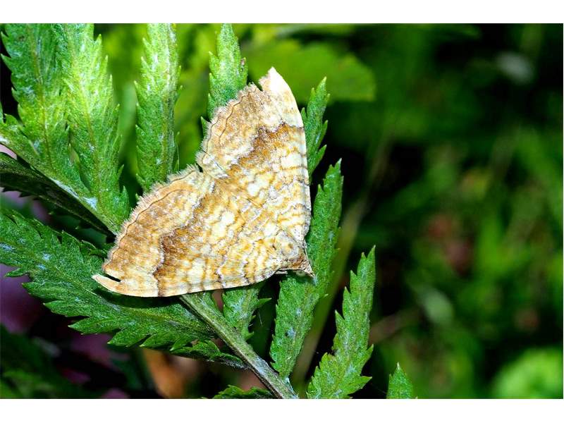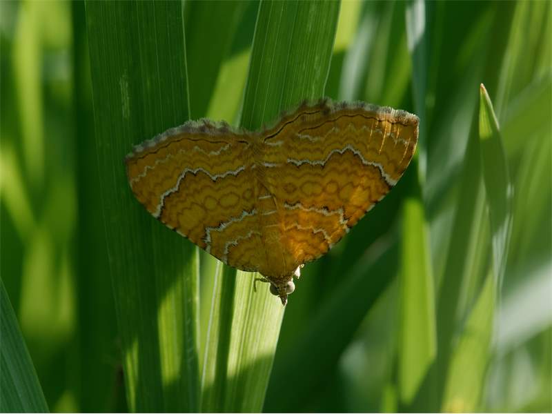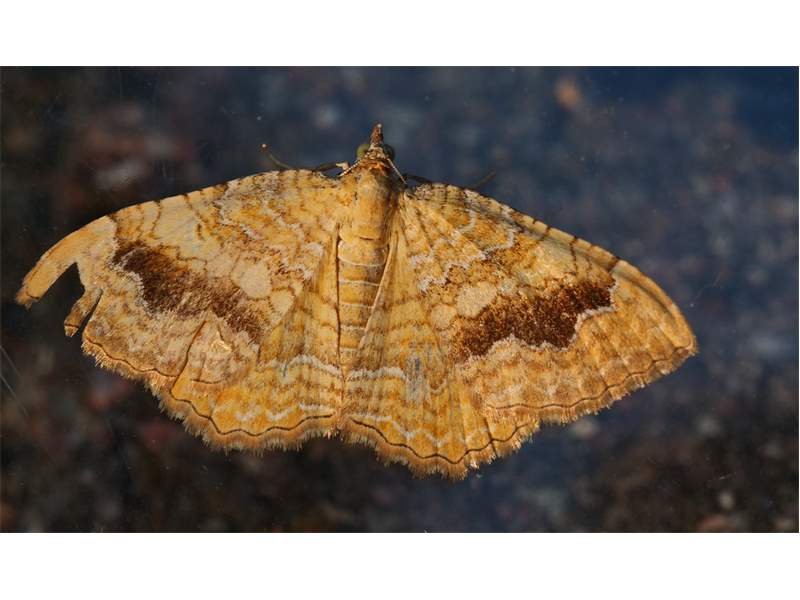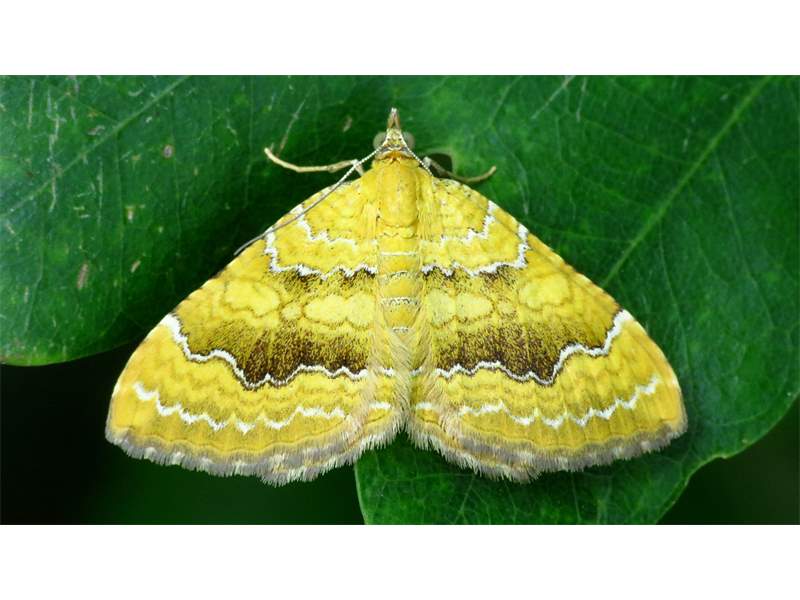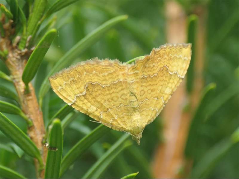 Ockergelbe Blattspanner, oder Löwenzahnspanner oder Brennnesselspanner (Camptogramma bilineata (Linnaeus, 1758)), am Licht, Radeberg, August 2013. (© Udo Lemke)( Bild vergrößern)