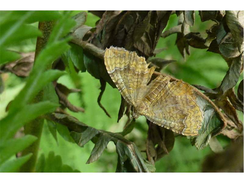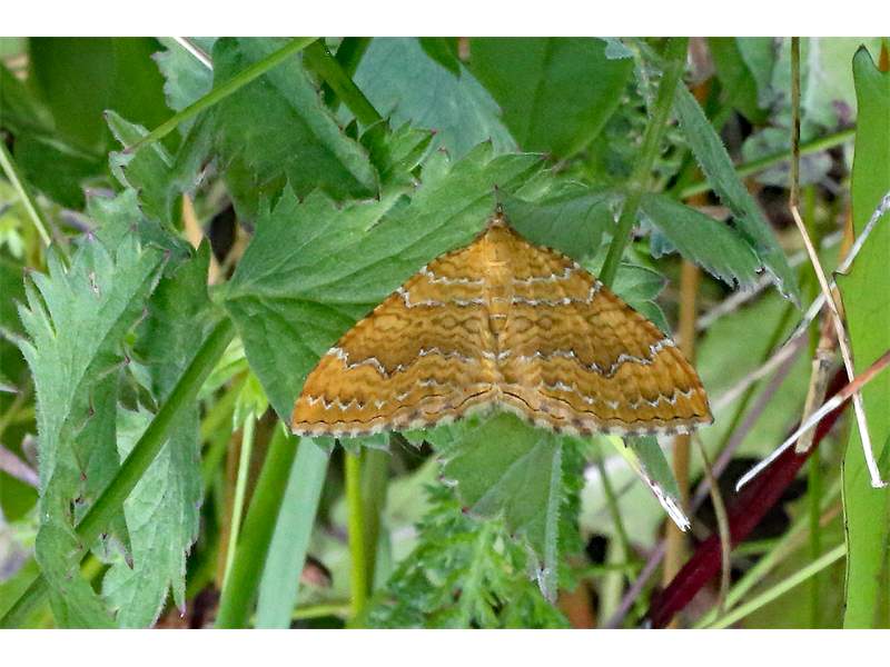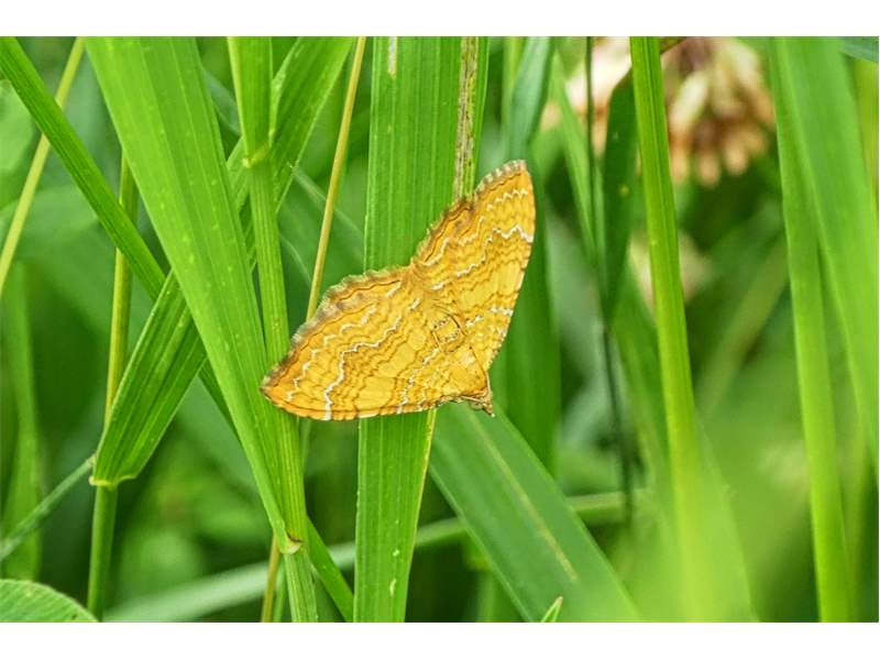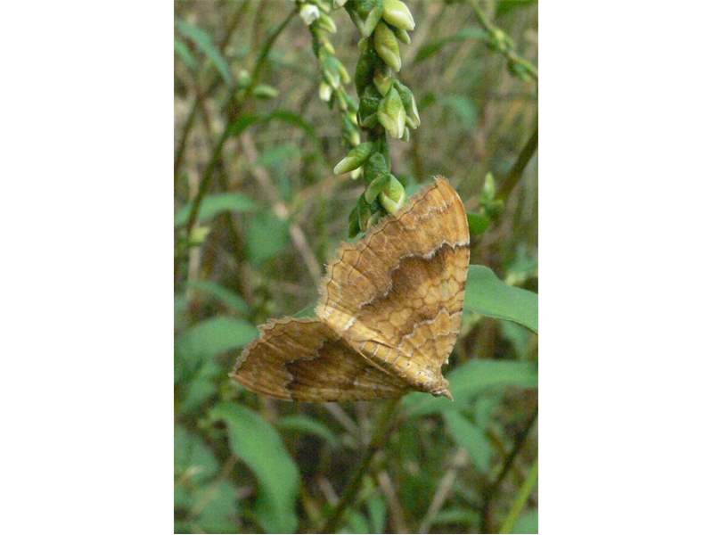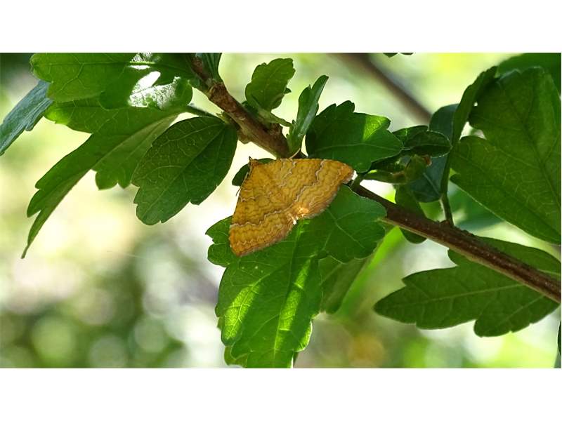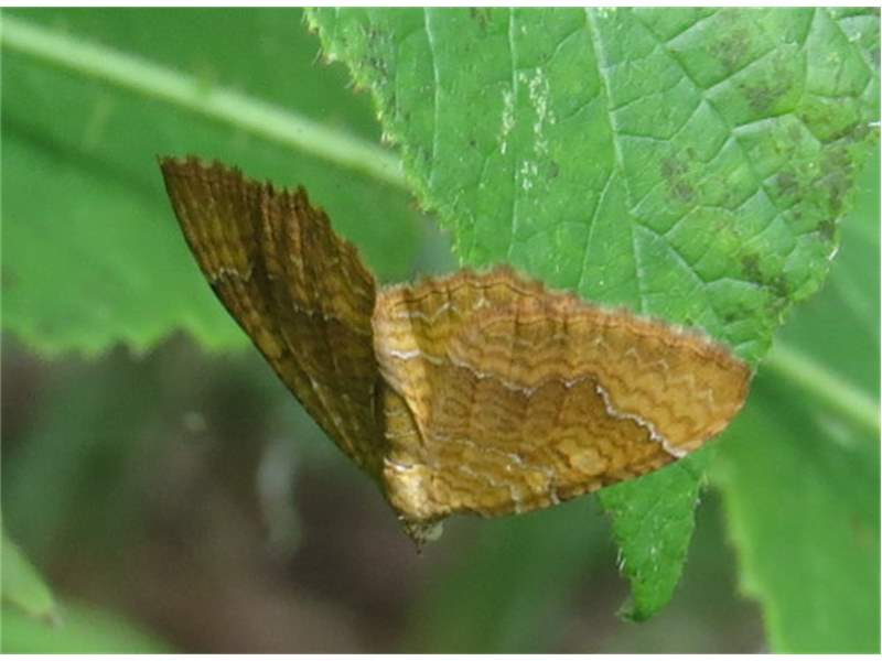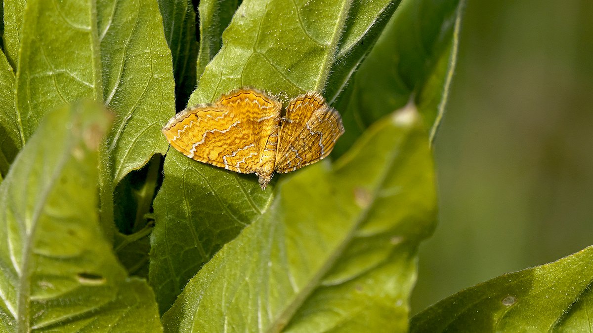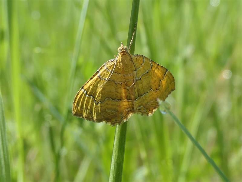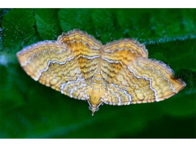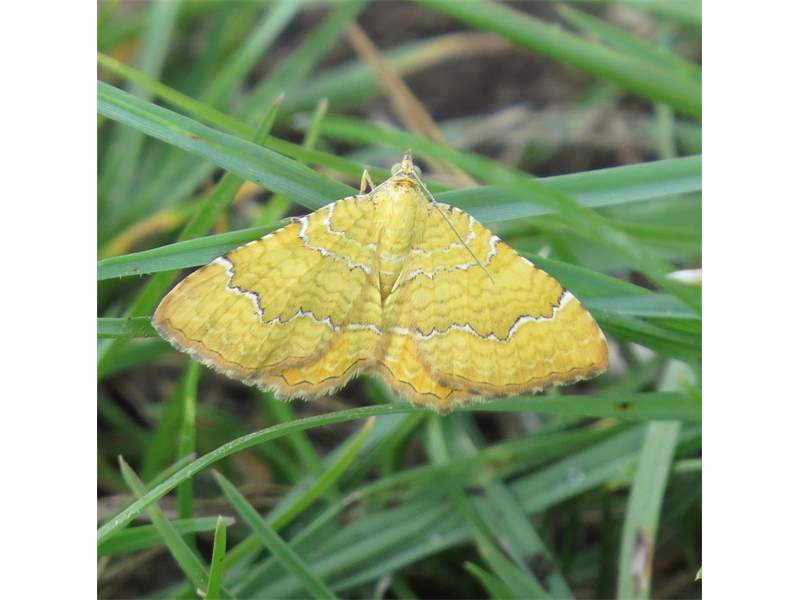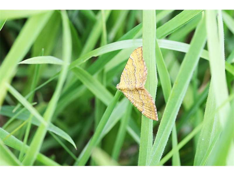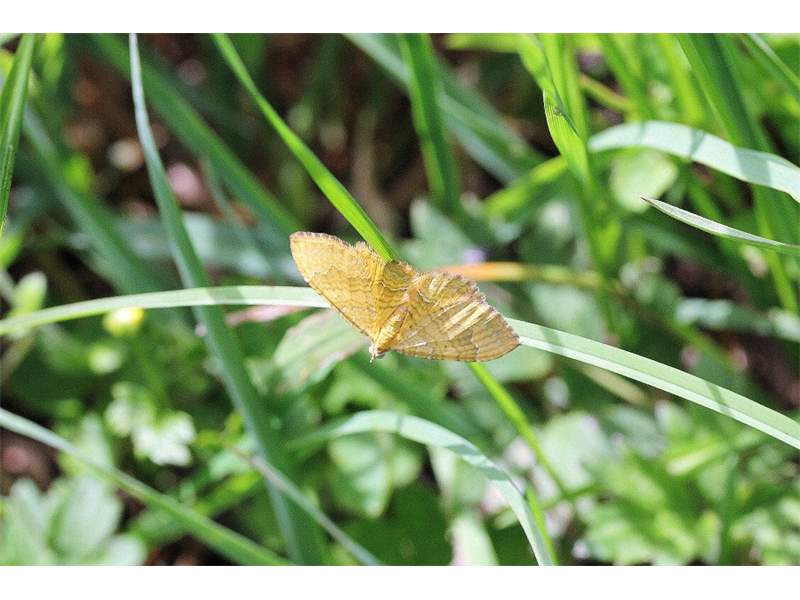 Ockergelbe Blattspanner, oder Löwenzahnspanner oder Brennnesselspanner (Camptogramma bilineata (Linnaeus, 1758)), am Licht, Radeberg, August 2013. (© Udo Lemke)( Bild vergrößern)