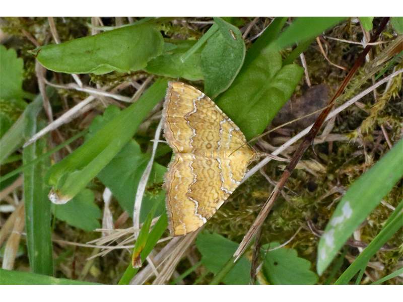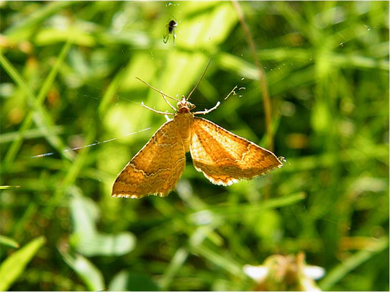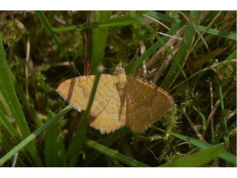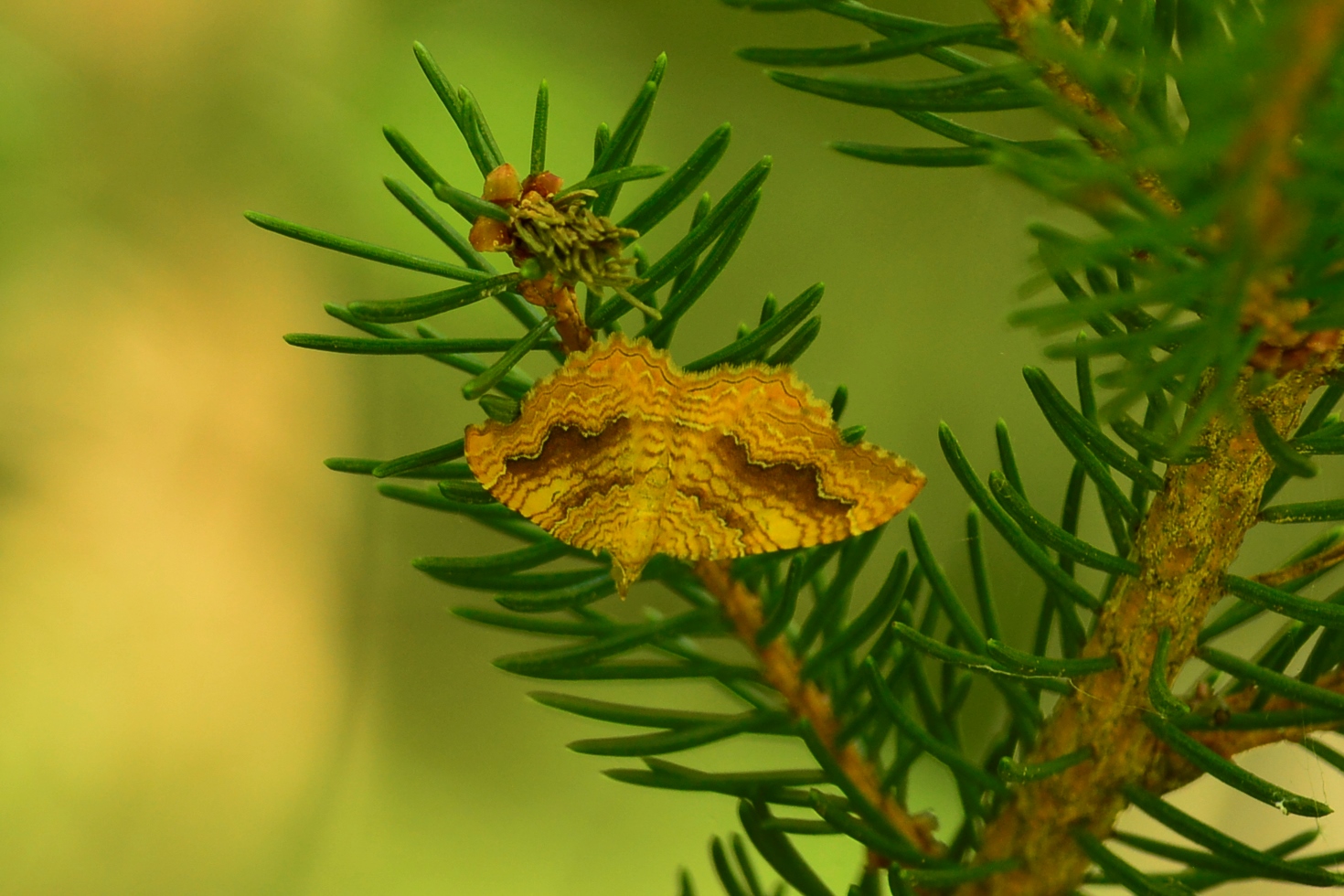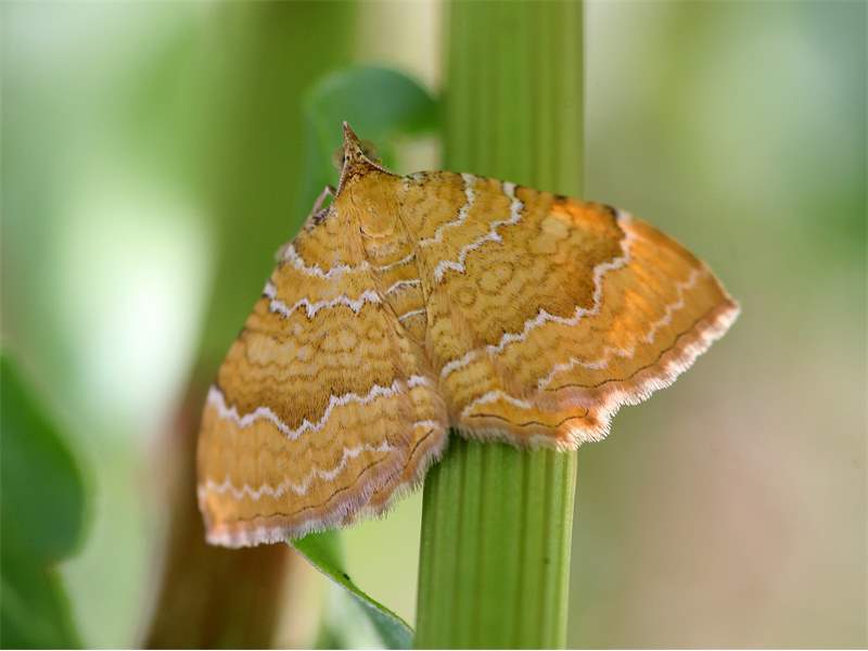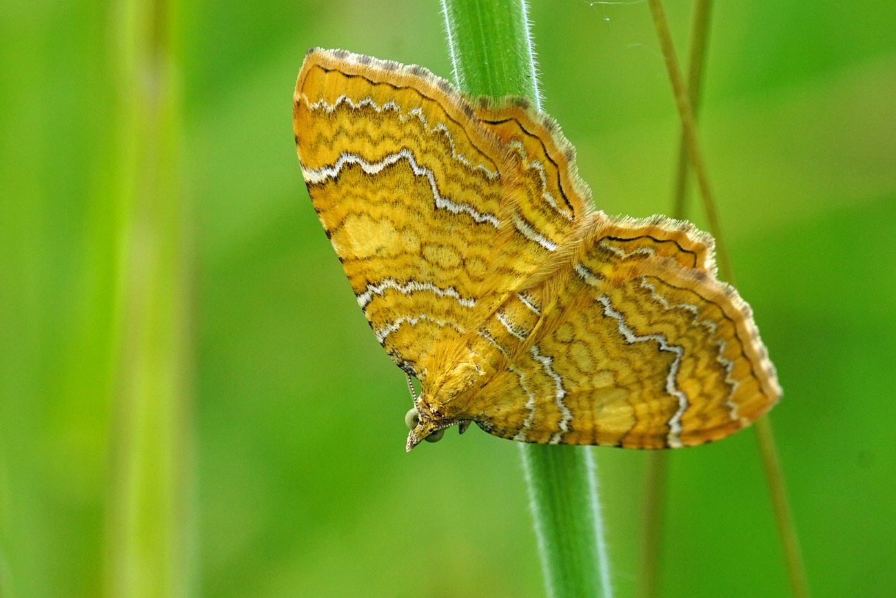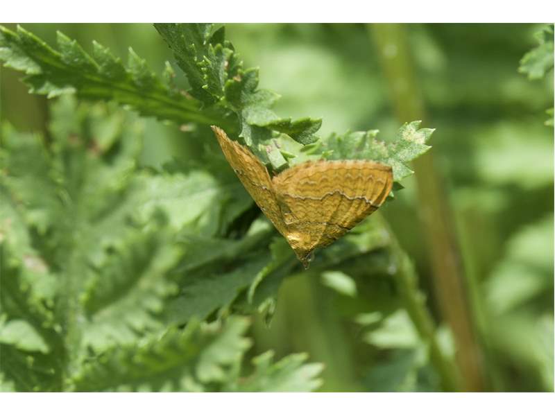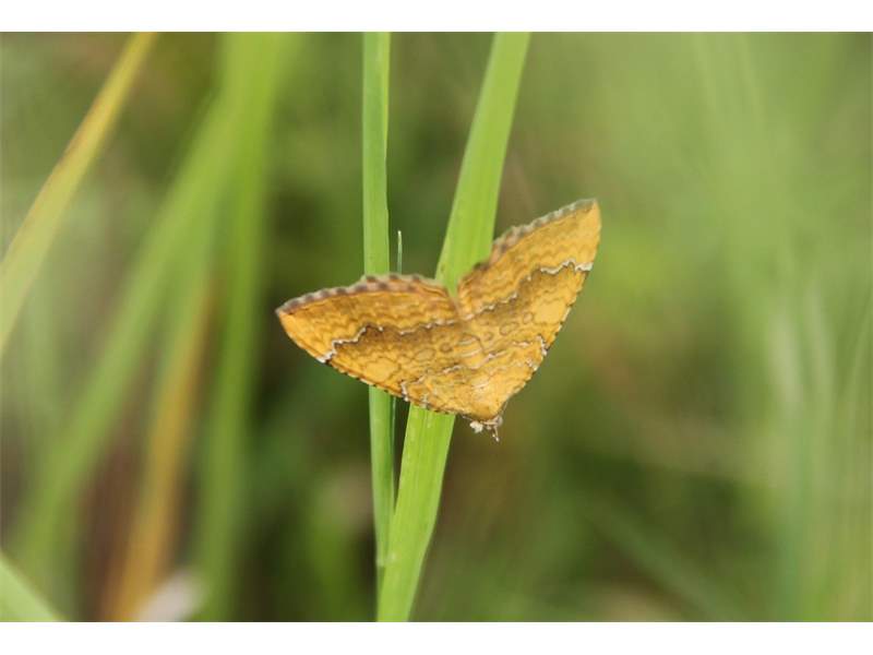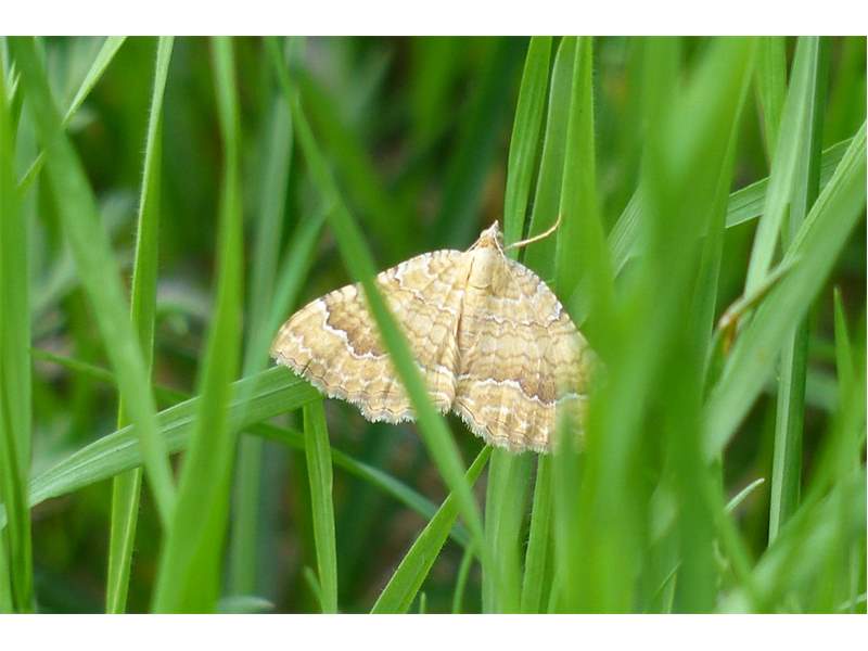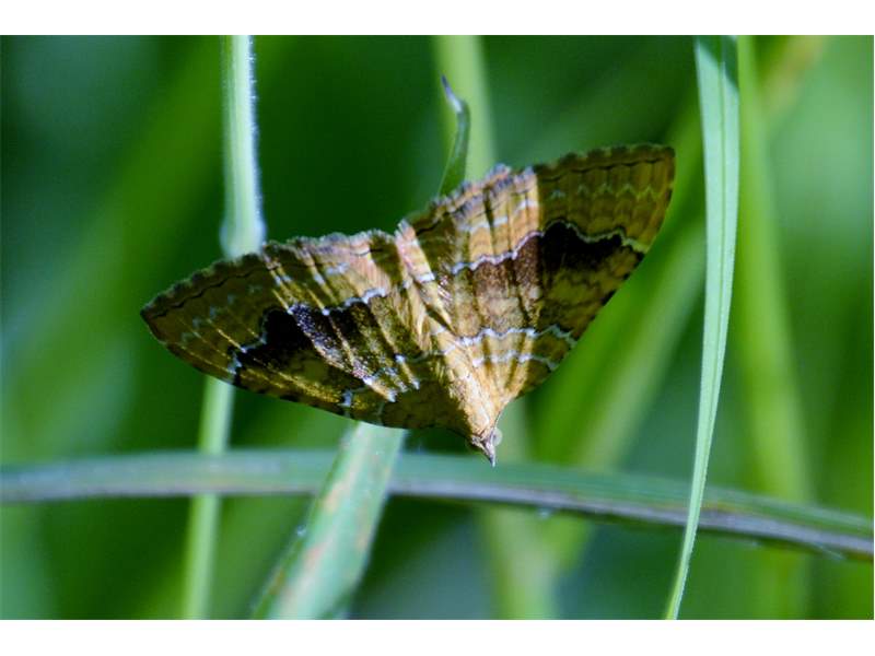 Ockergelbe Blattspanner, oder Löwenzahnspanner oder Brennnesselspanner (Camptogramma bilineata (Linnaeus, 1758)), am Licht, Radeberg, August 2013. (© Udo Lemke)( Bild vergrößern)