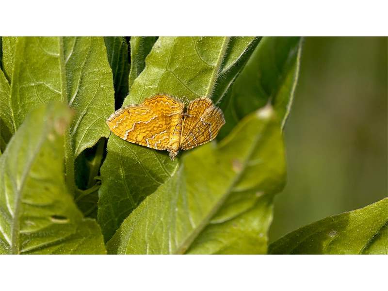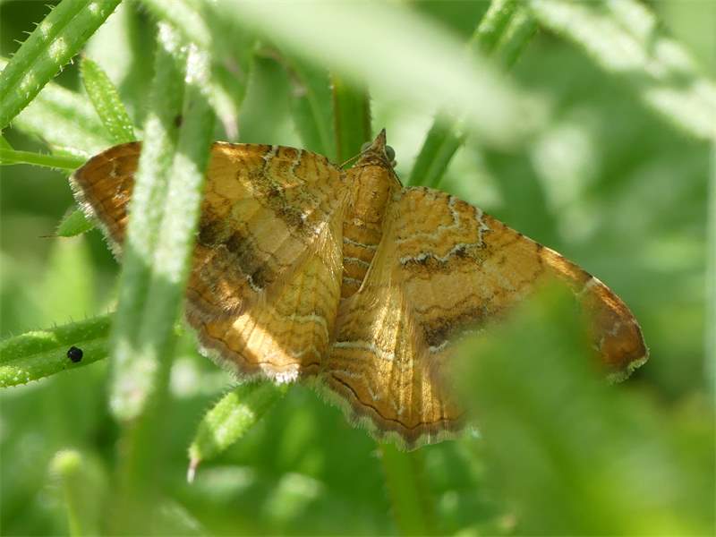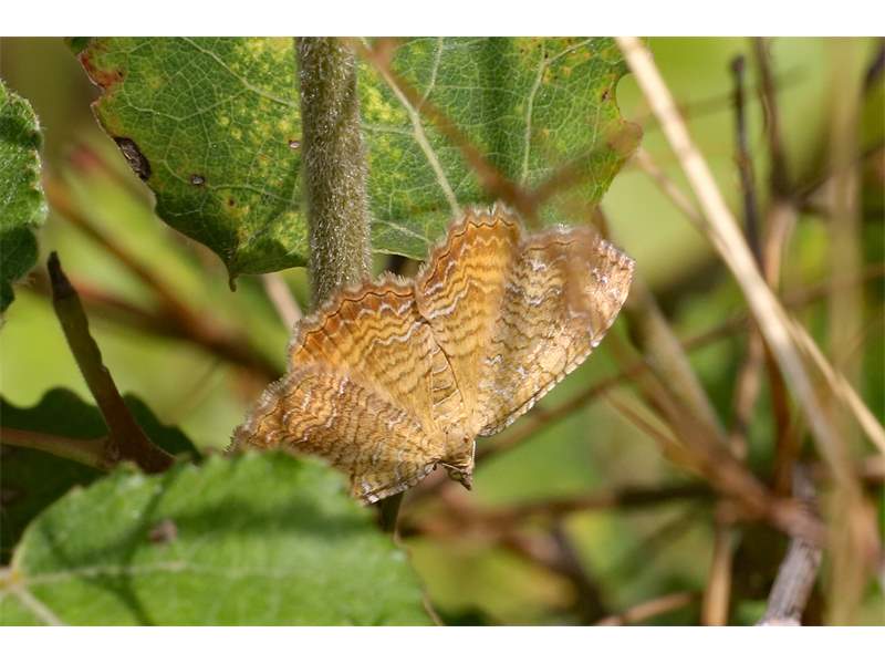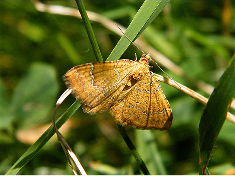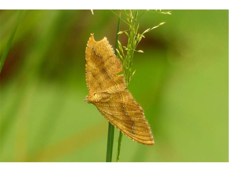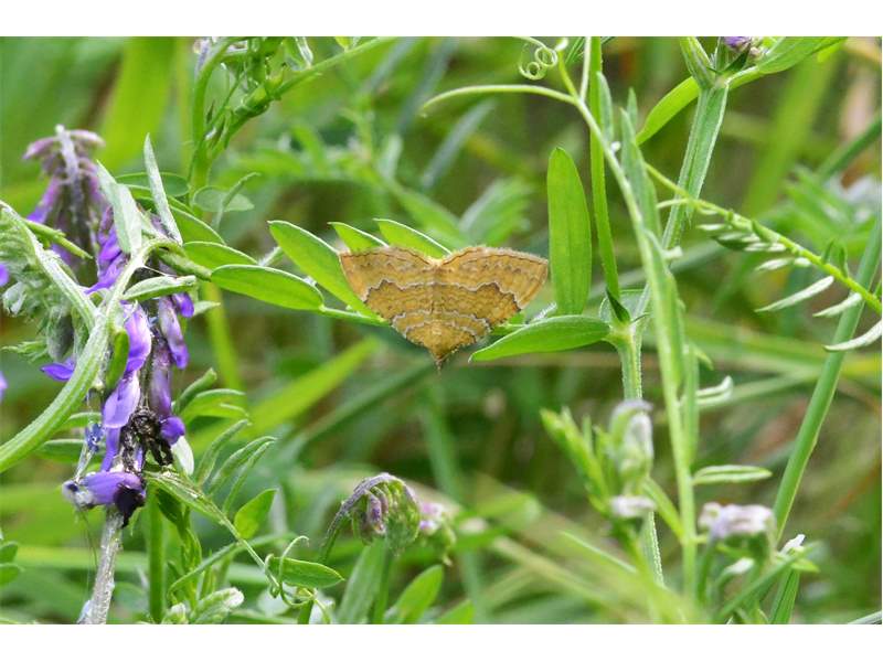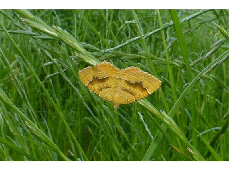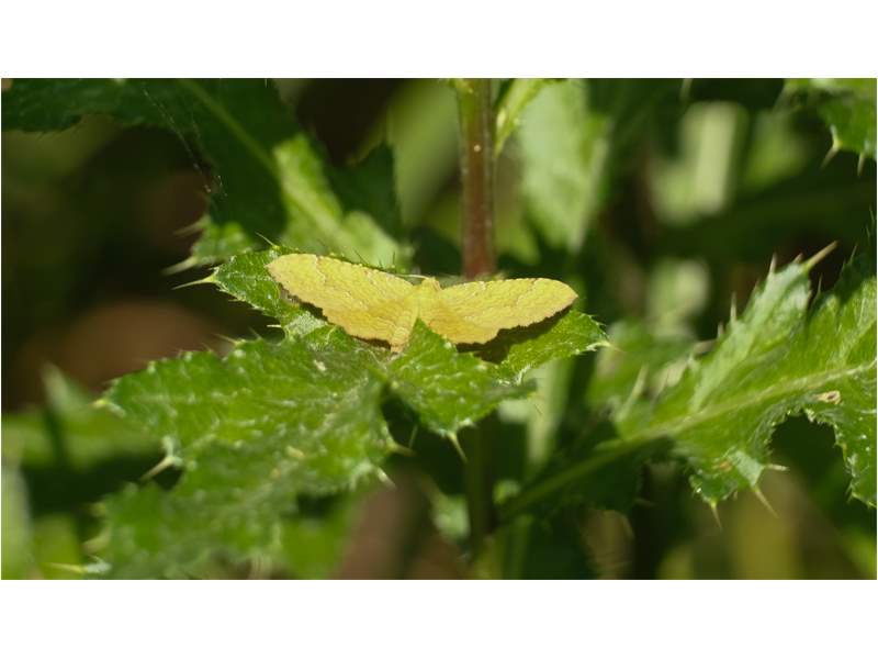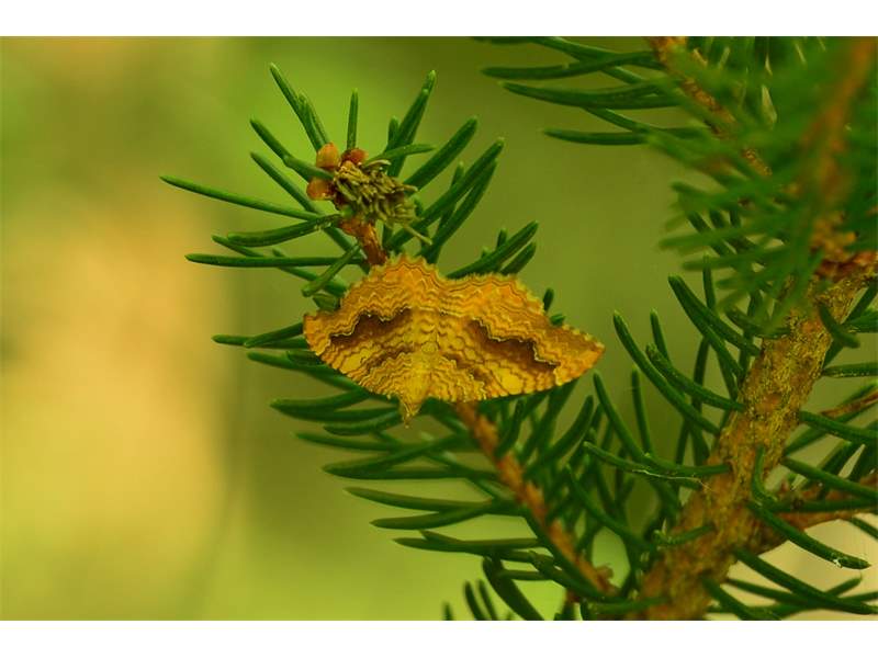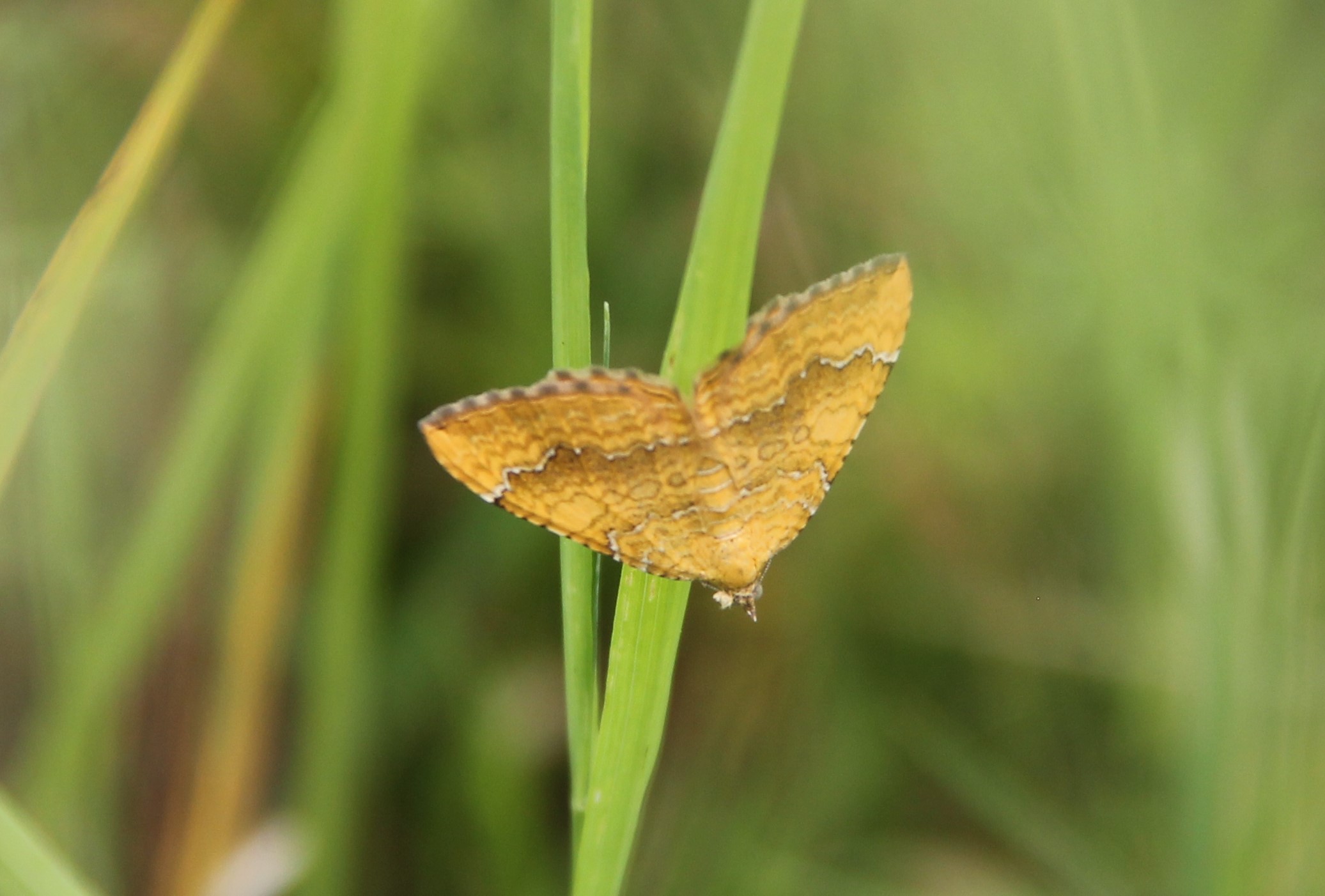 Ockergelbe Blattspanner, oder Löwenzahnspanner oder Brennnesselspanner (Camptogramma bilineata (Linnaeus, 1758)), am Licht, Radeberg, August 2013. (© Udo Lemke)( Bild vergrößern)