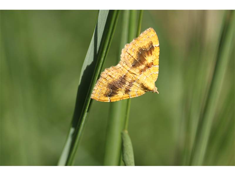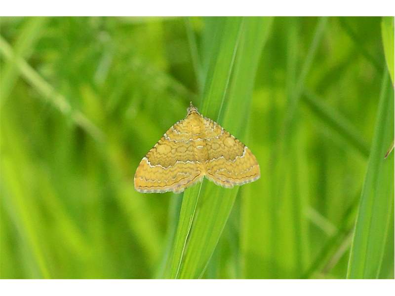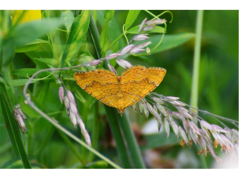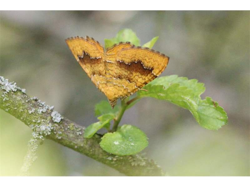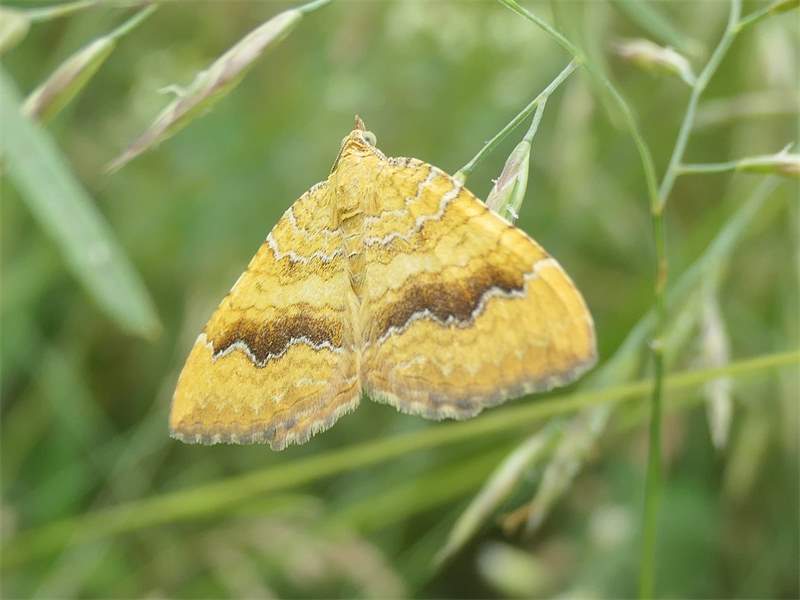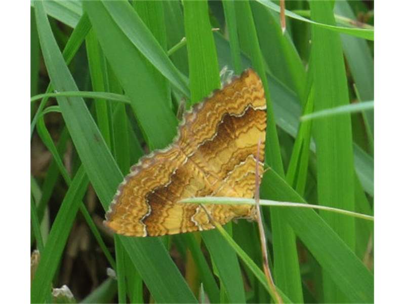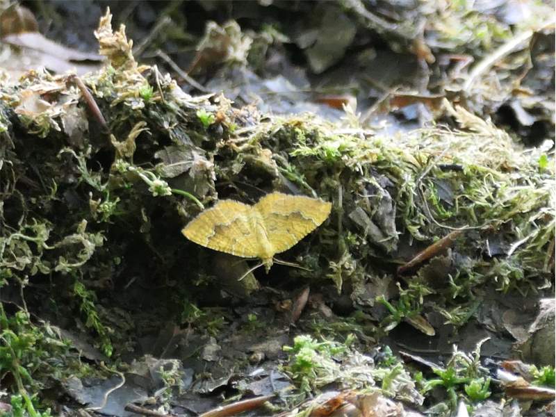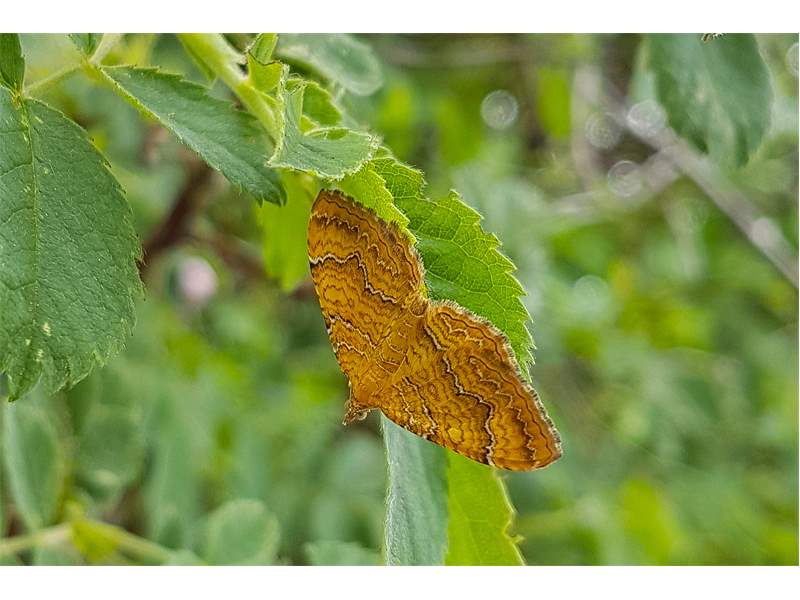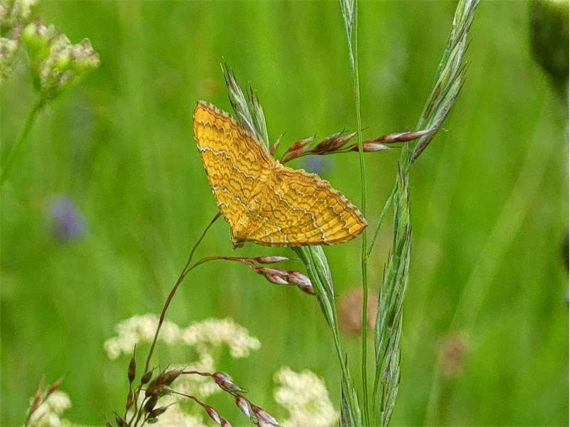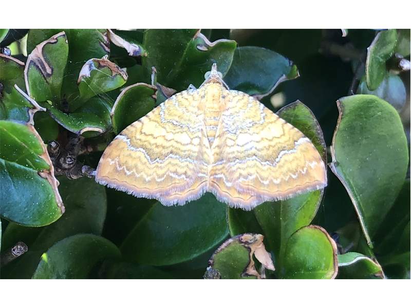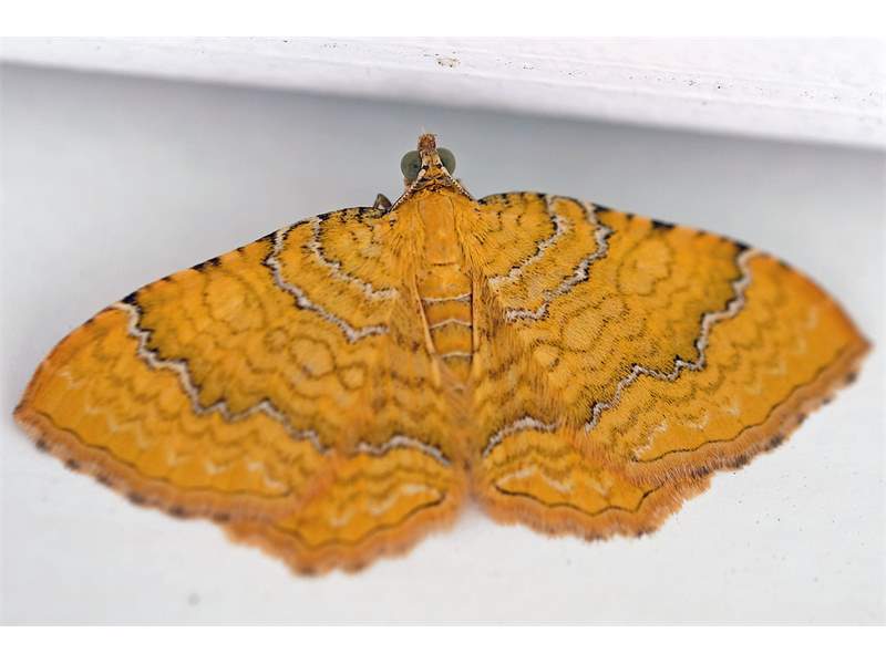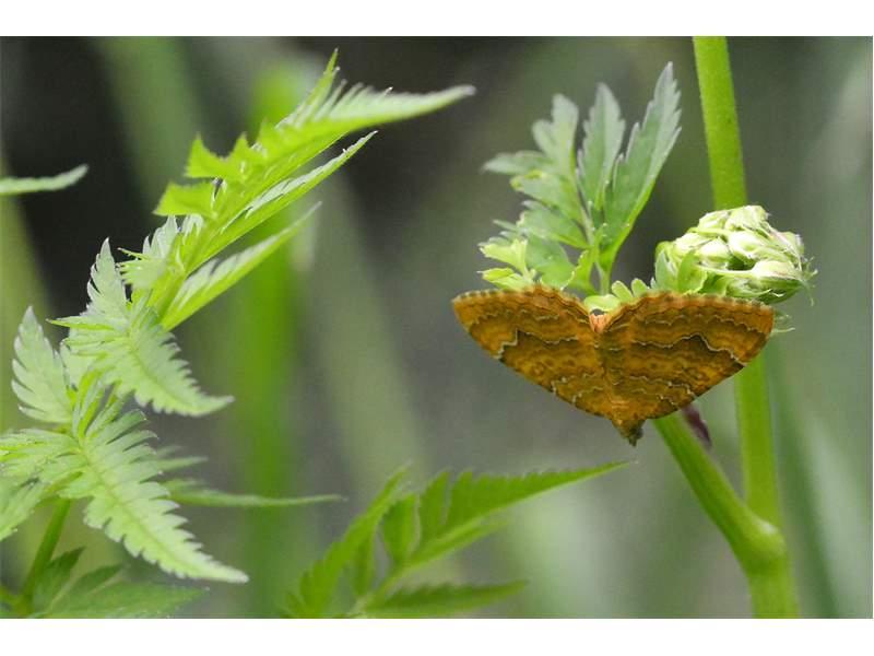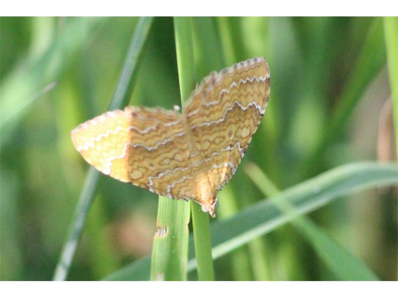 Ockergelbe Blattspanner, oder Löwenzahnspanner oder Brennnesselspanner (Camptogramma bilineata (Linnaeus, 1758)), am Licht, Radeberg, August 2013. (© Udo Lemke)( Bild vergrößern)