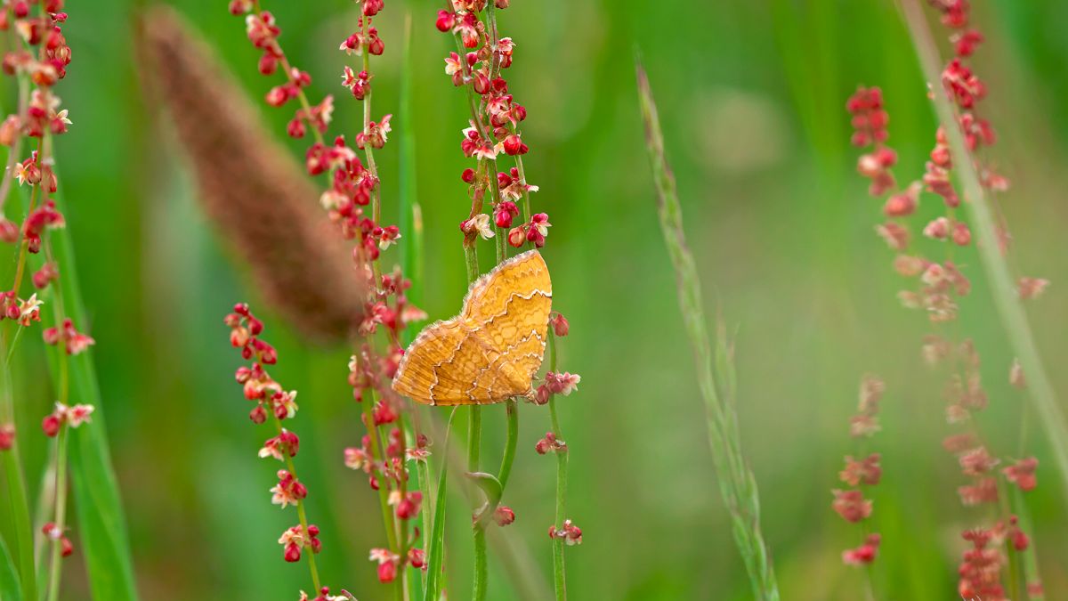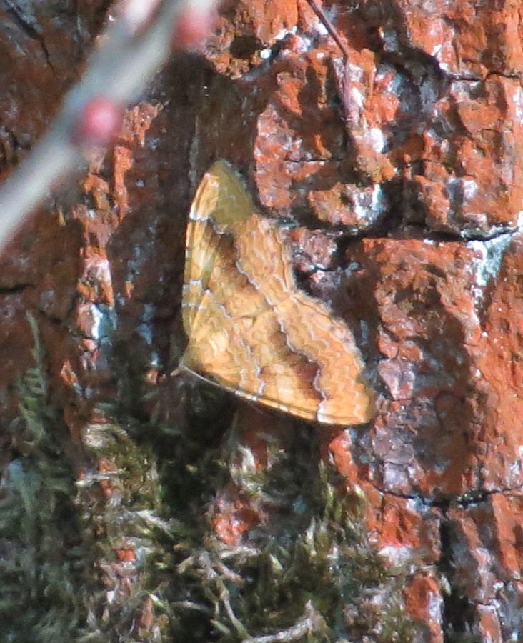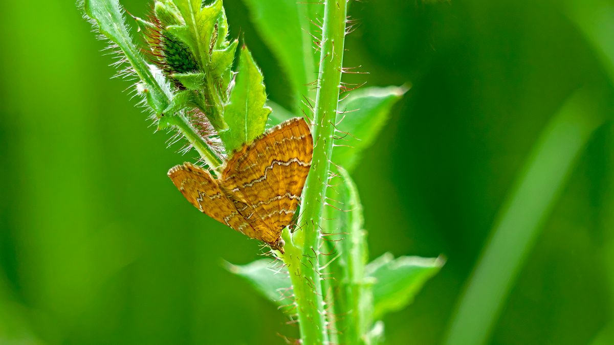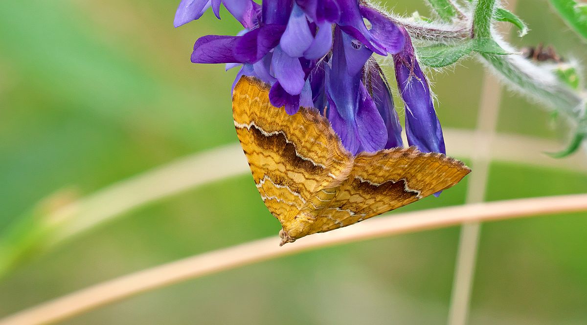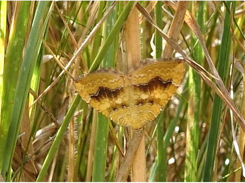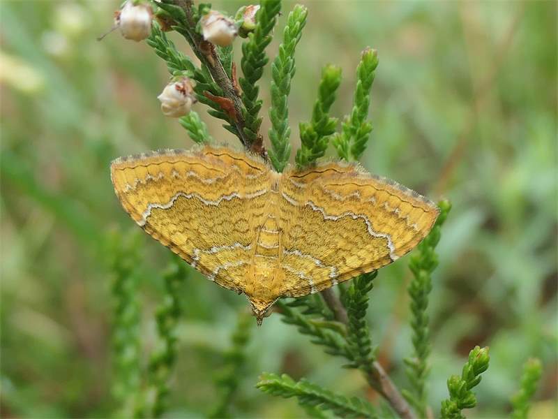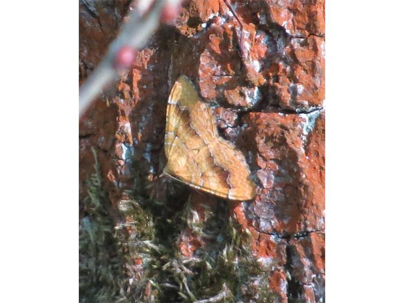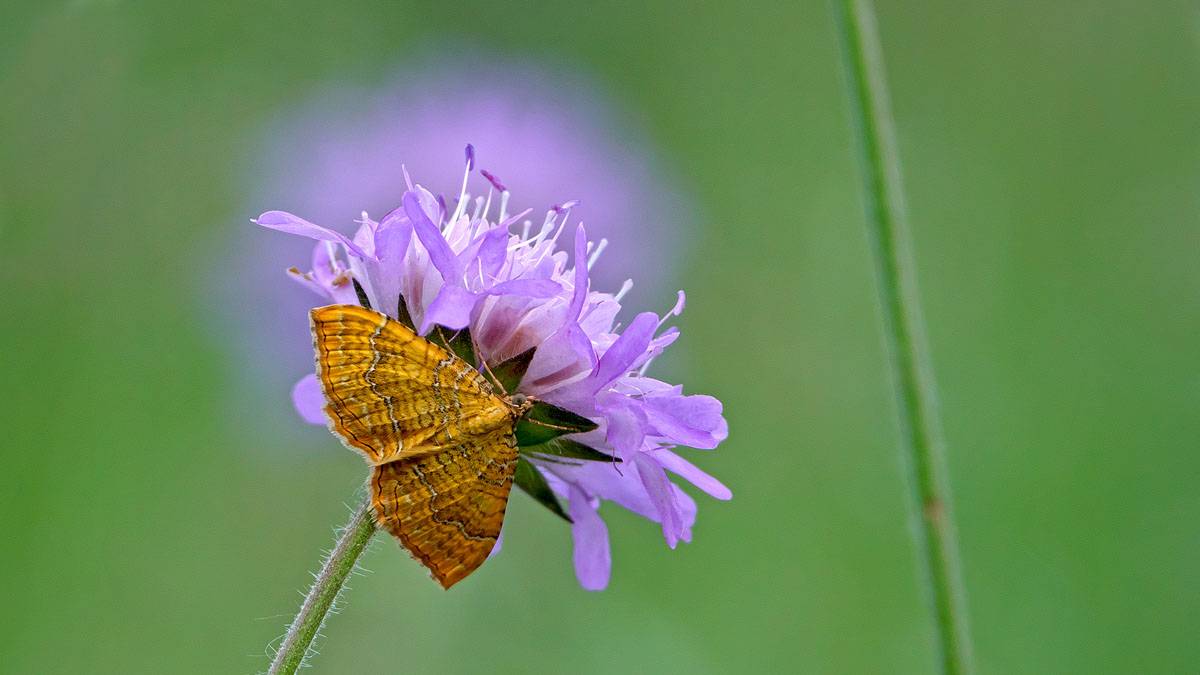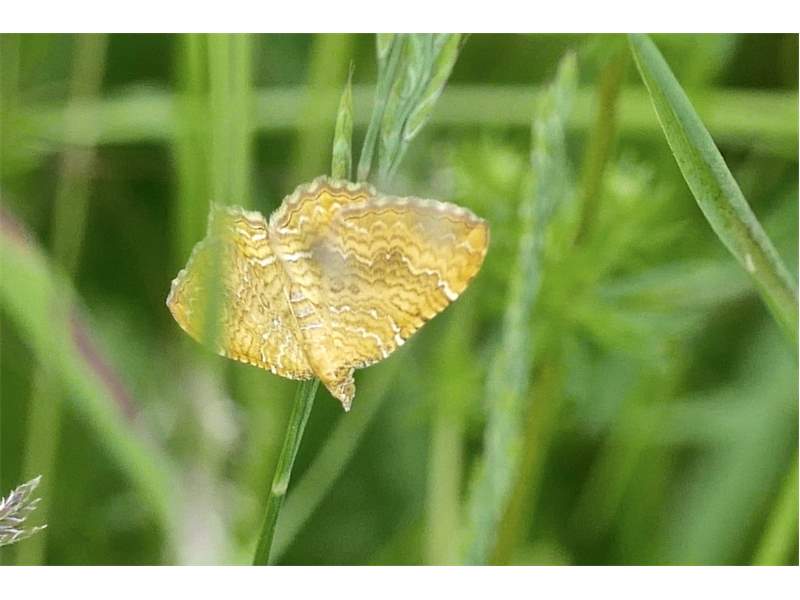 Ockergelbe Blattspanner, oder Löwenzahnspanner oder Brennnesselspanner (Camptogramma bilineata (Linnaeus, 1758)), am Licht, Radeberg, August 2013. (© Udo Lemke)( Bild vergrößern)
