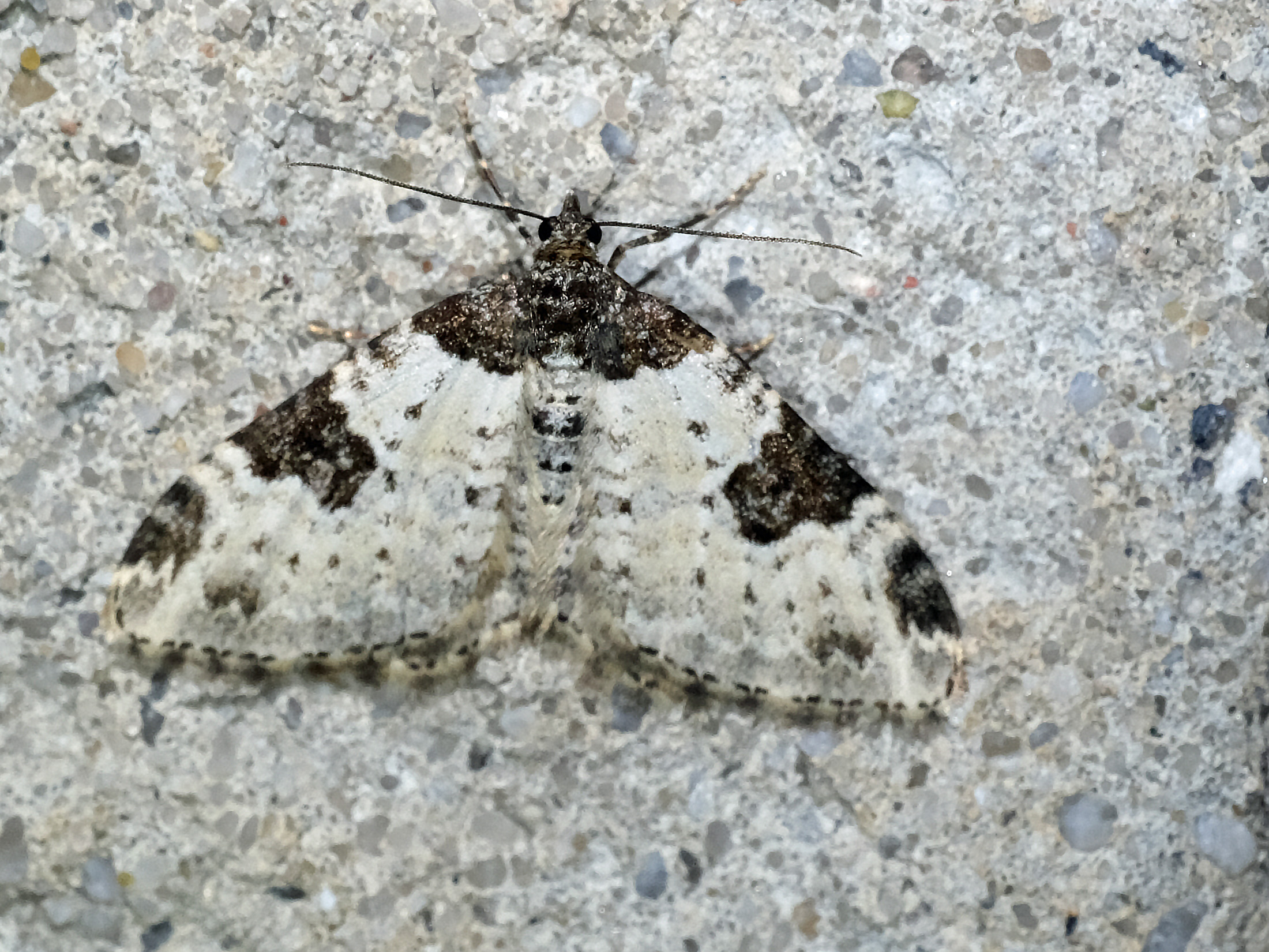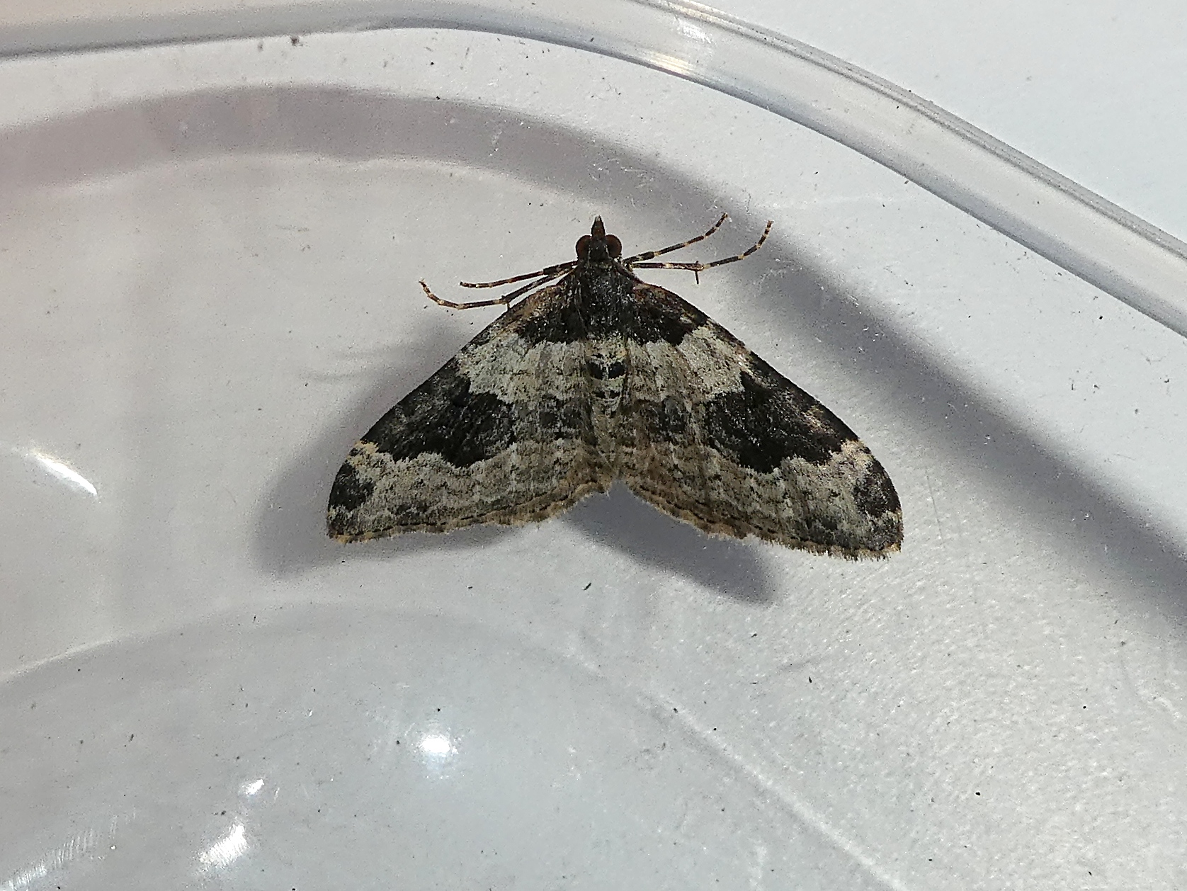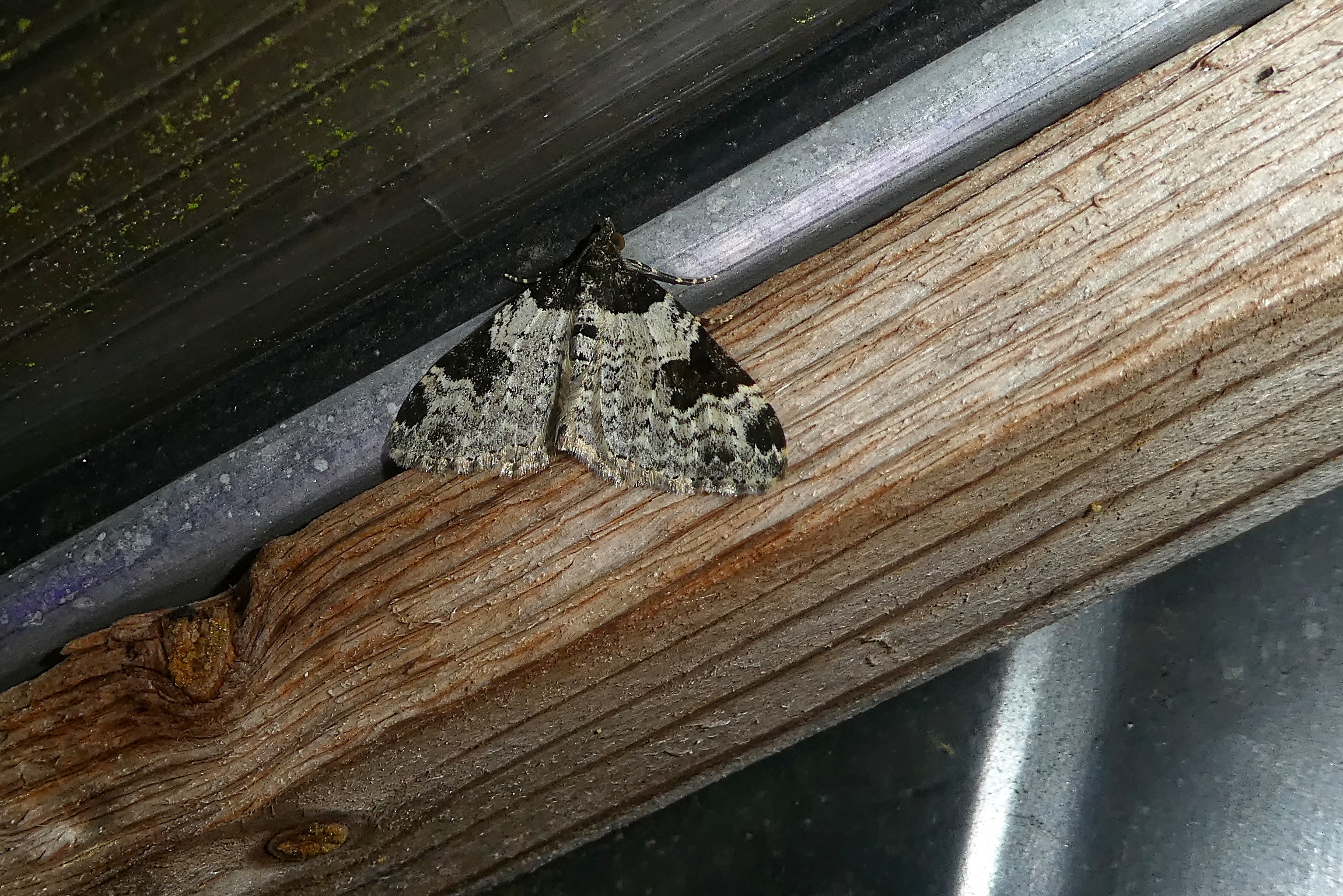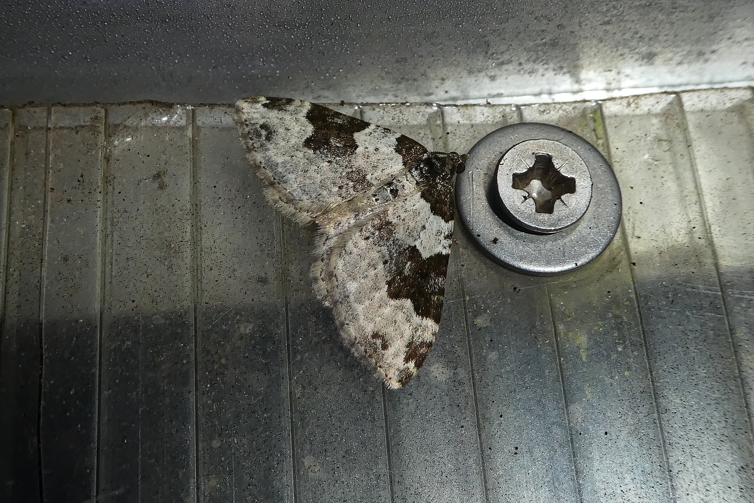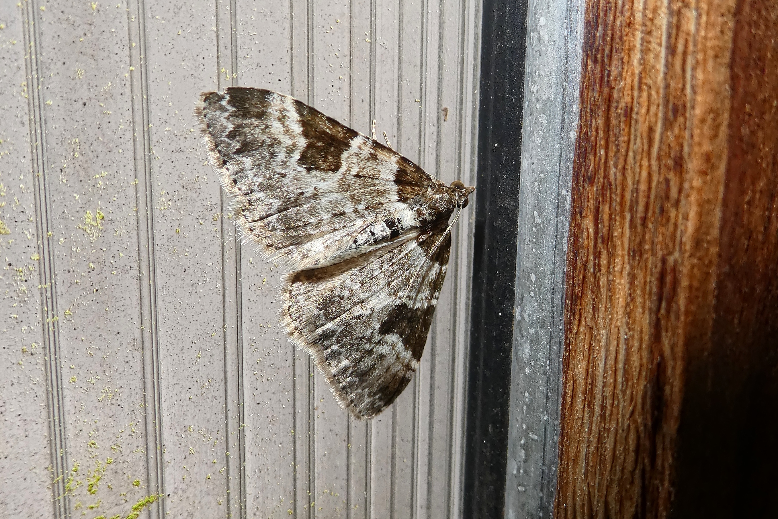 Xanthorhoe fluctuata (Linnaeus, 1758), Gartenblattspanner, Chemnitz-Bernsdorf-Lutherviertel, Haustürlicht, 15.4.2018
