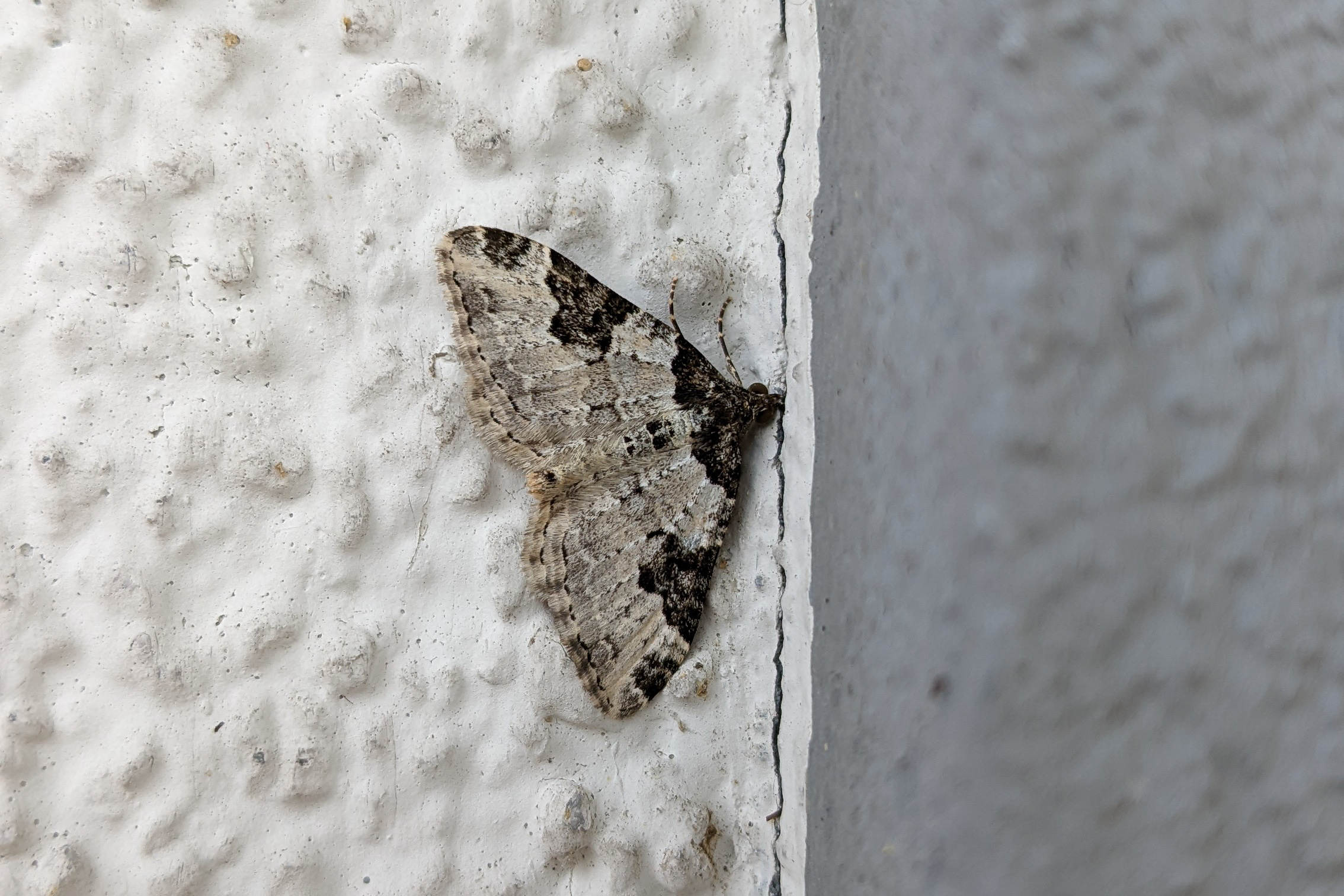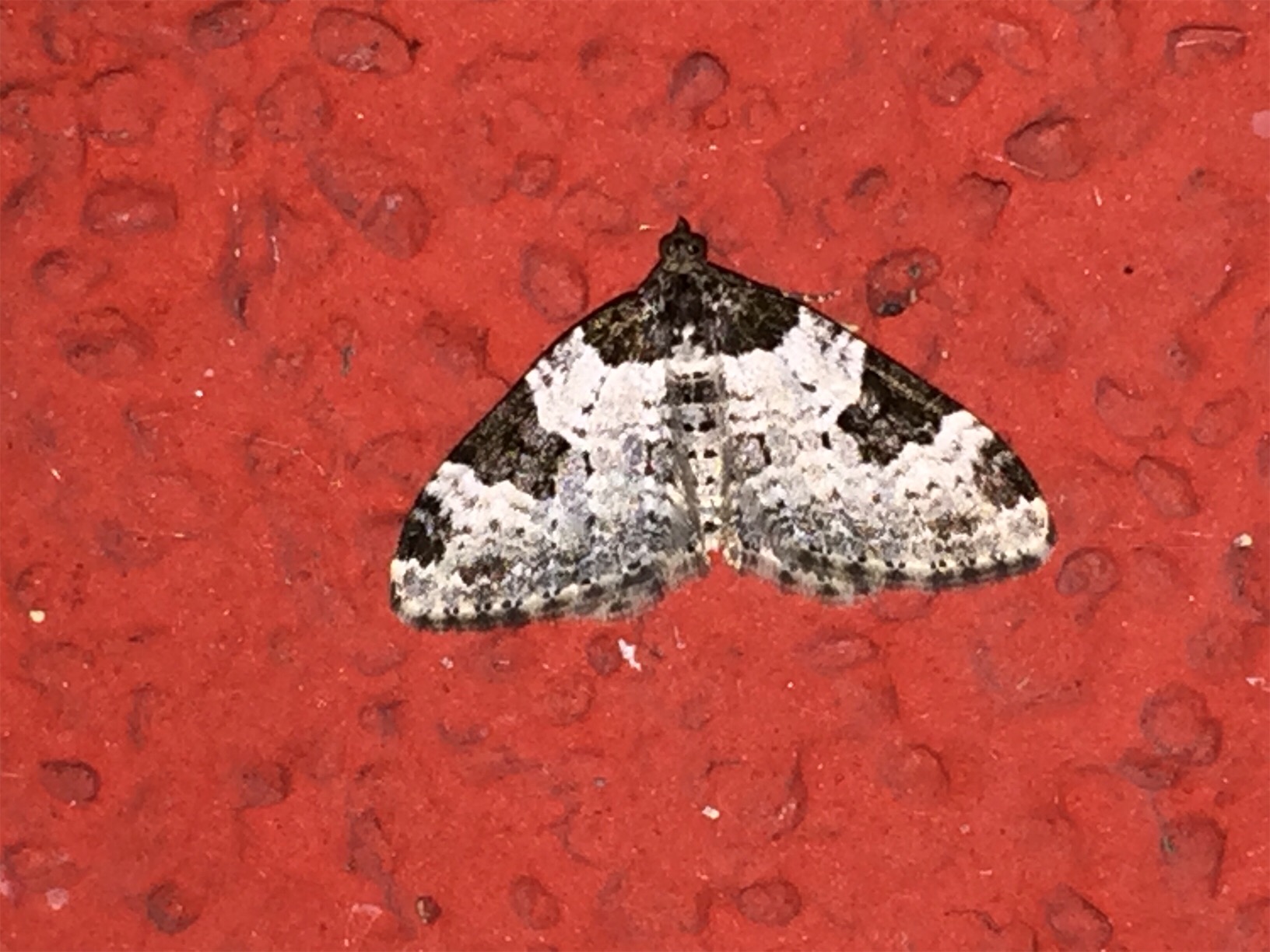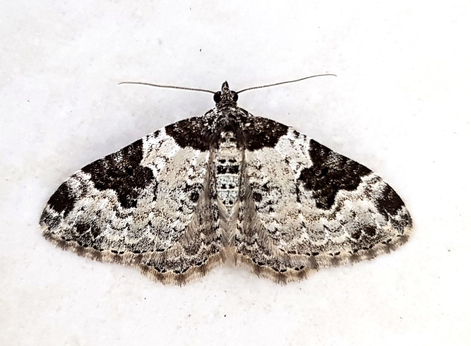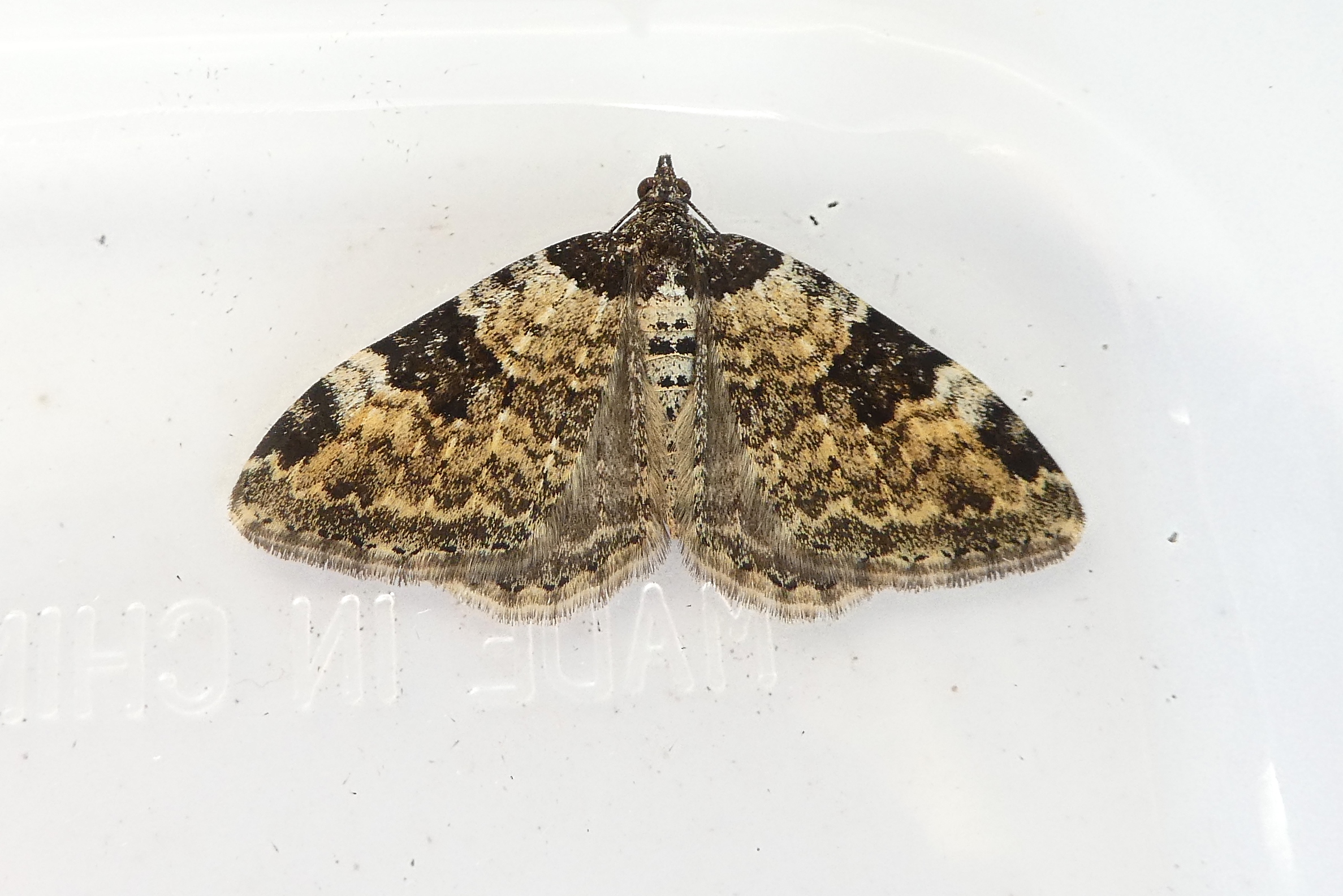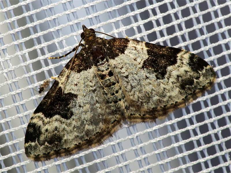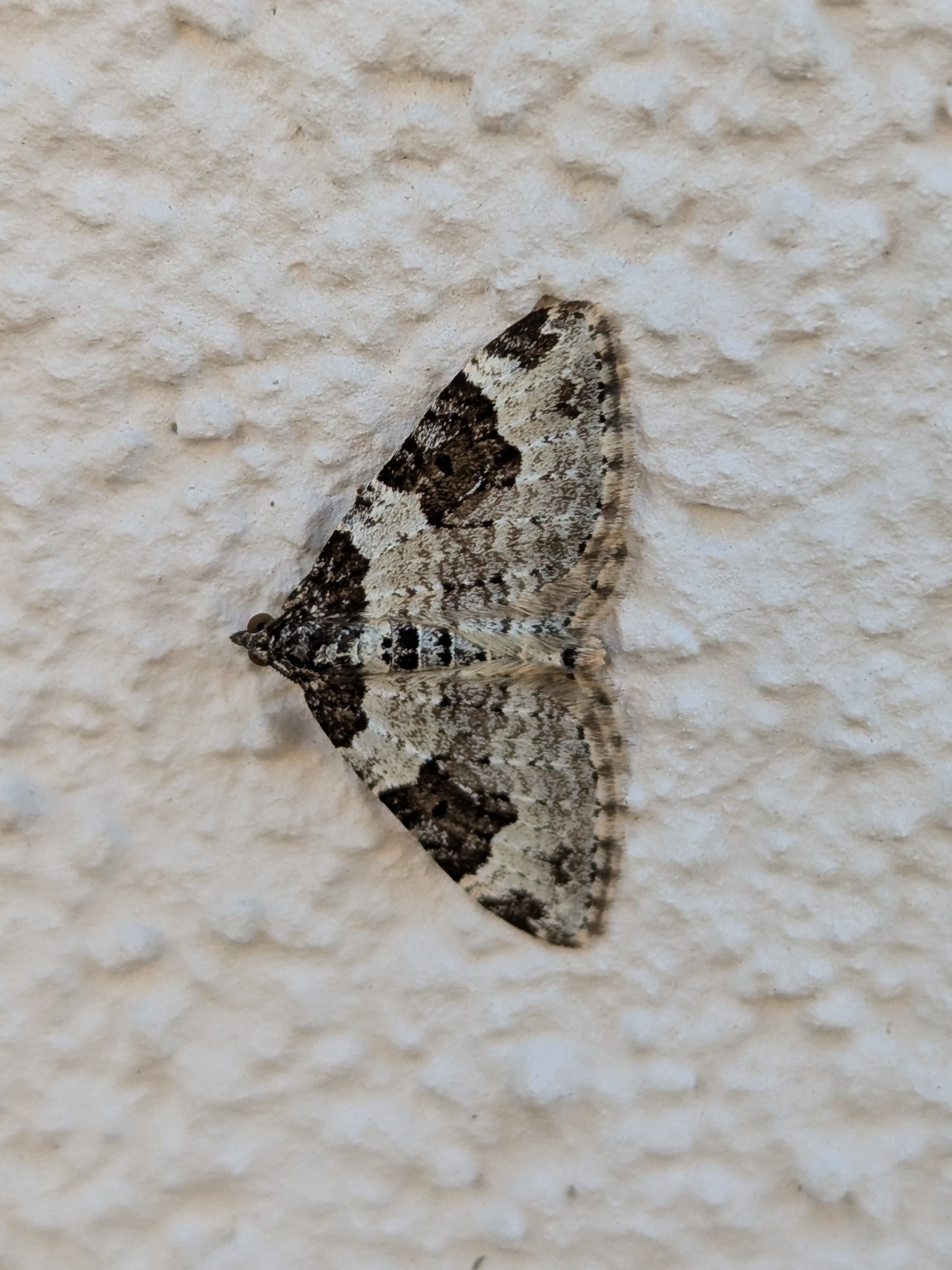 Xanthorhoe fluctuata (Linnaeus, 1758), Gartenblattspanner, Chemnitz-Bernsdorf-Lutherviertel, Haustürlicht, 15.4.2018
