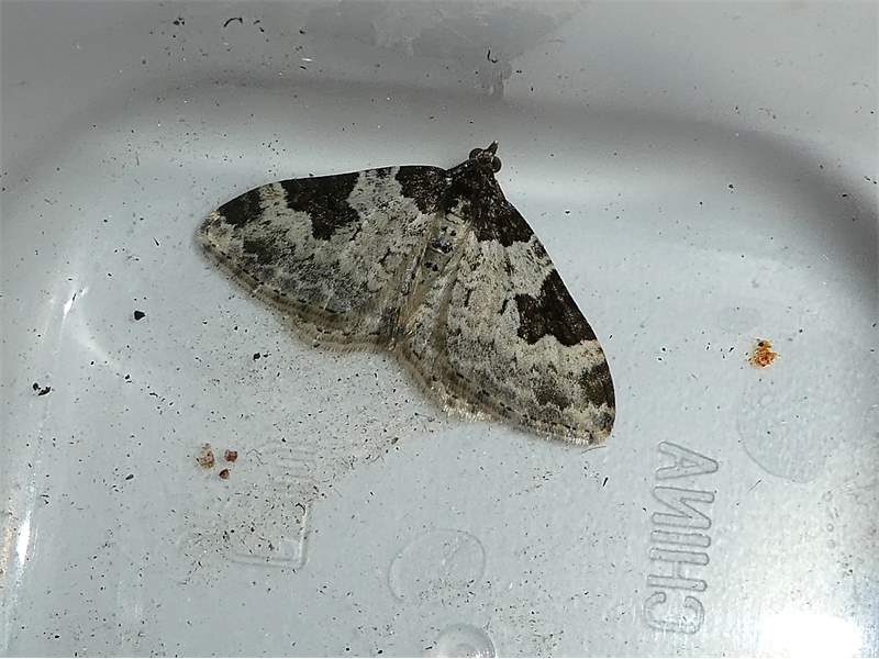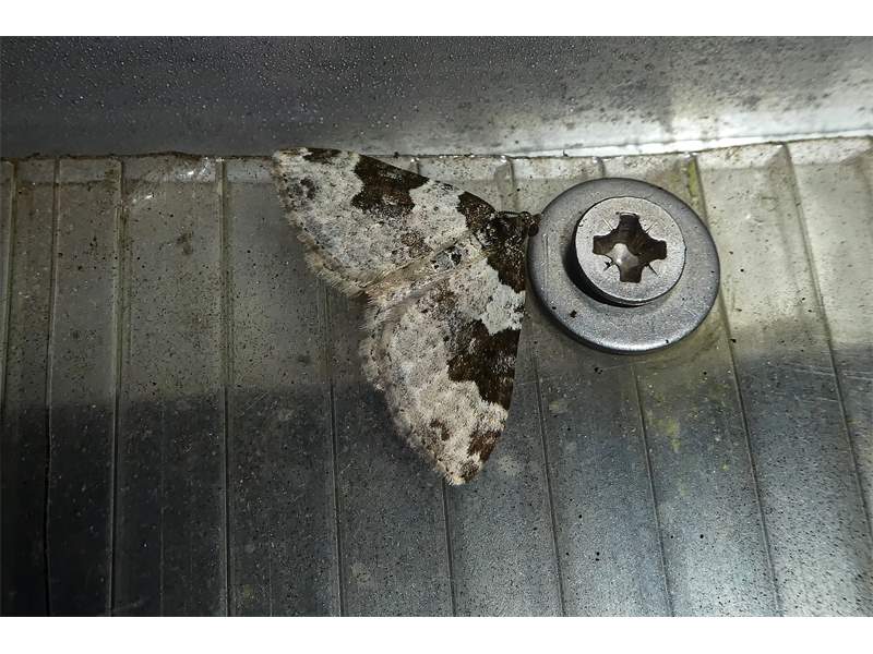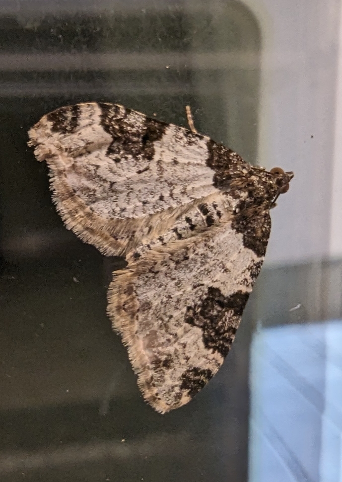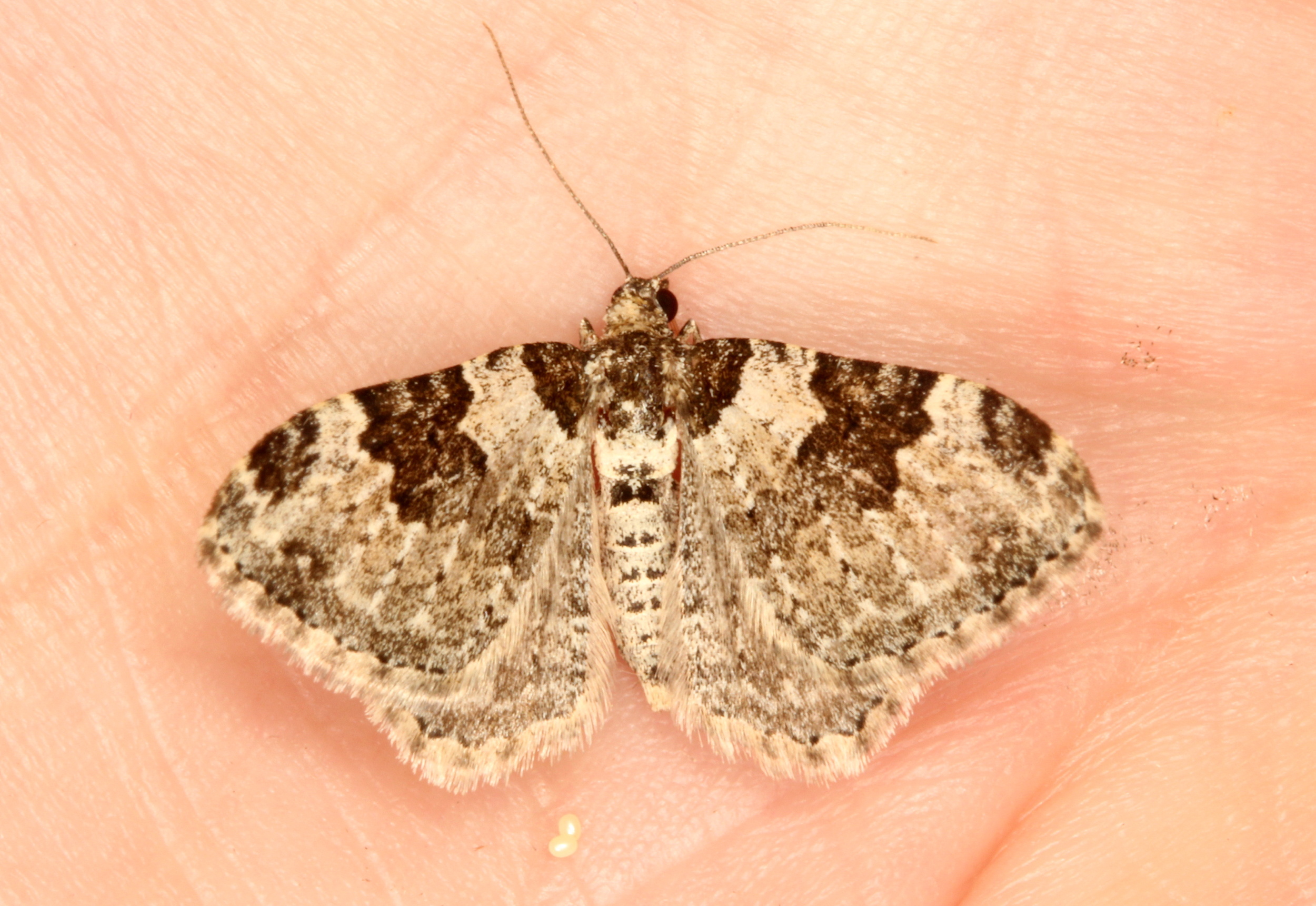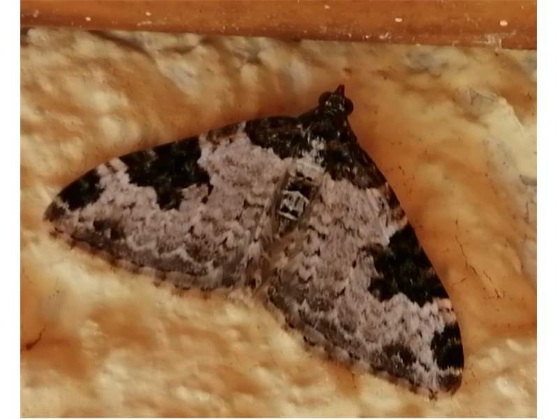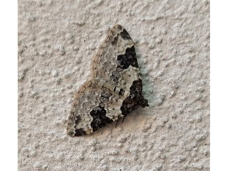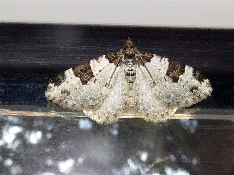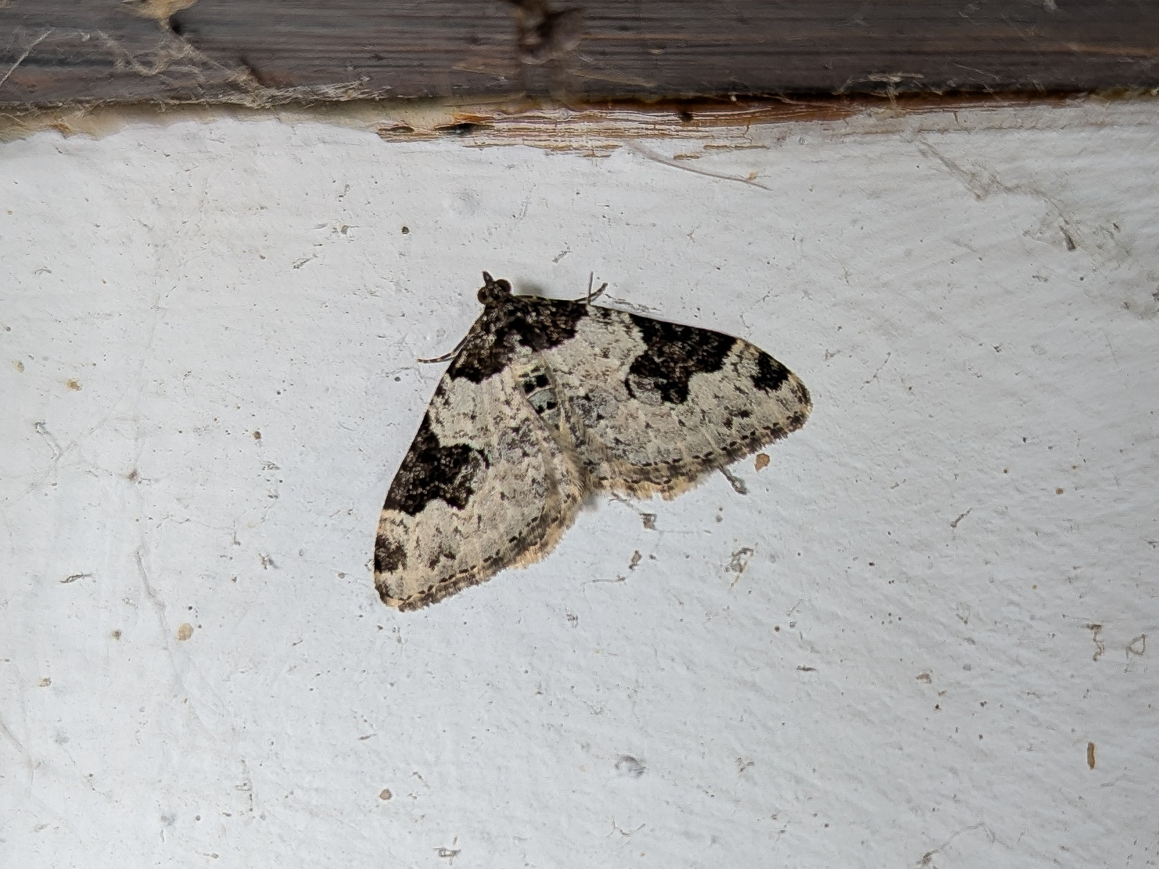 Xanthorhoe fluctuata (Linnaeus, 1758), Gartenblattspanner, Chemnitz-Bernsdorf-Lutherviertel, Haustürlicht, 15.4.2018