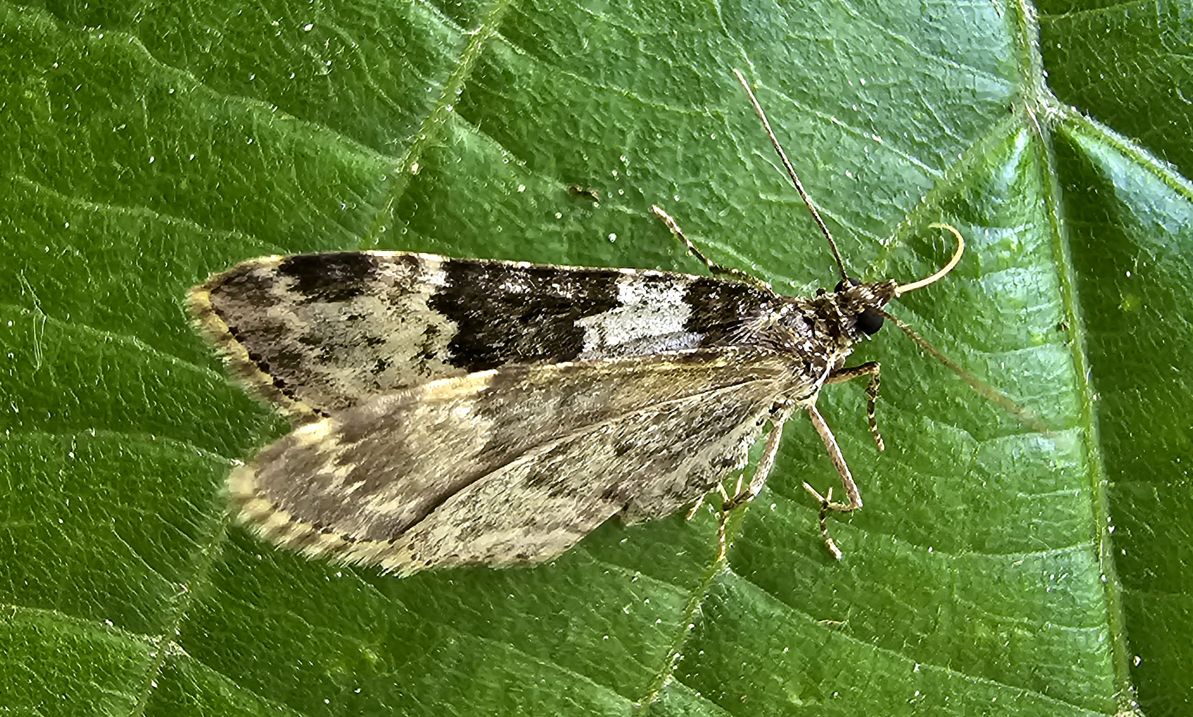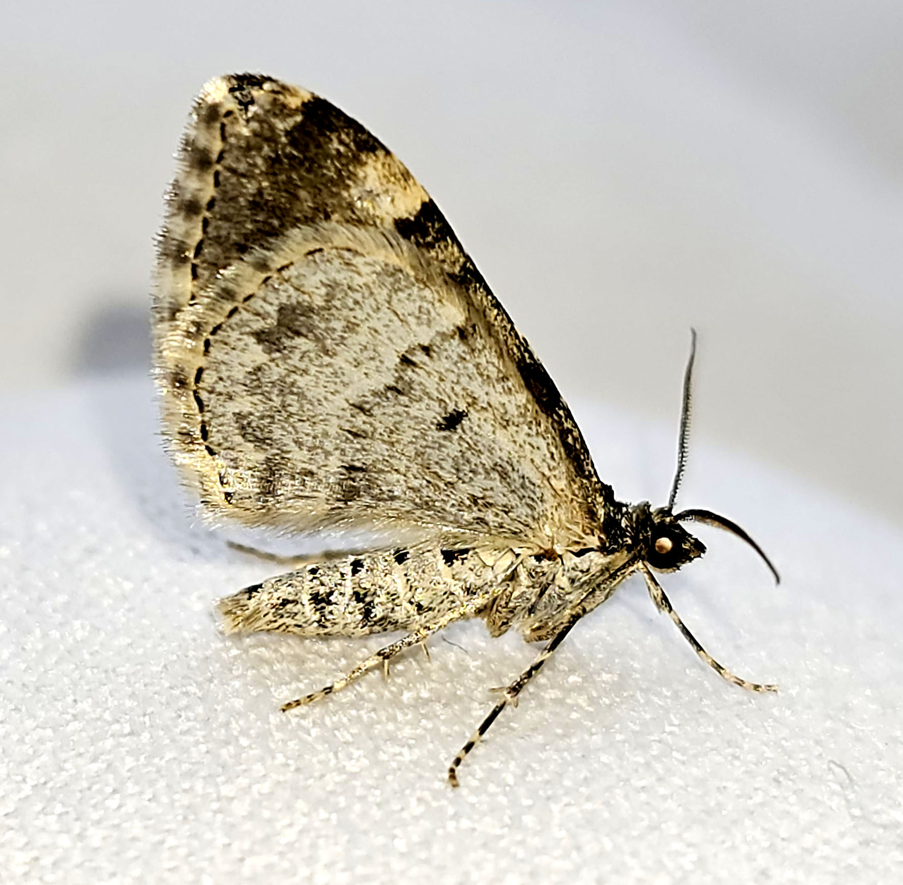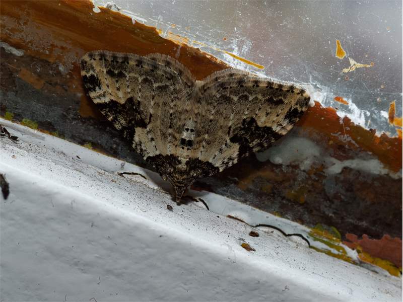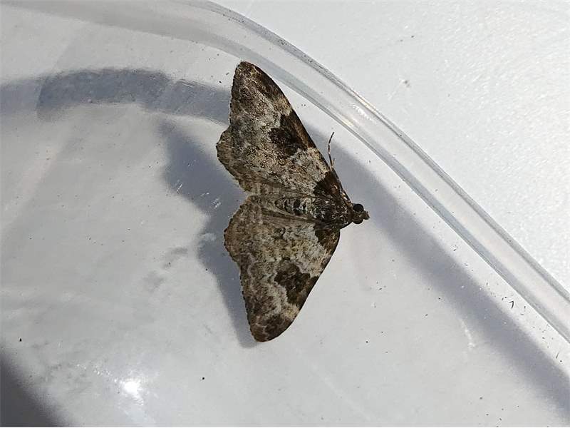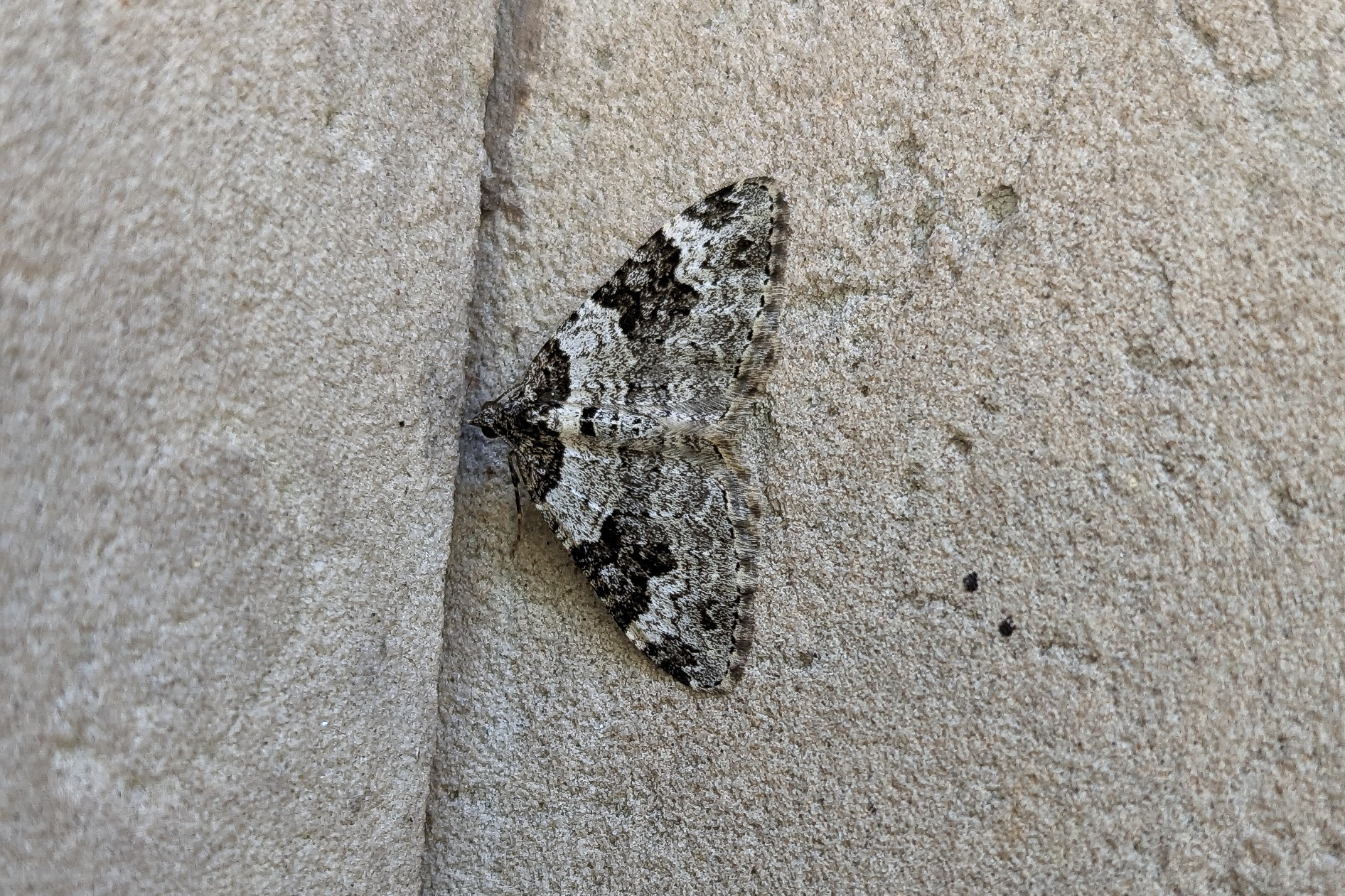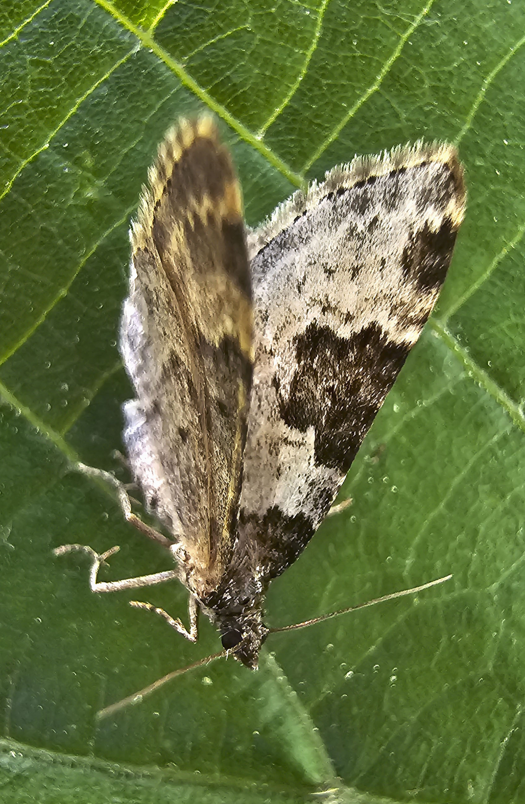 Xanthorhoe fluctuata (Linnaeus, 1758), Gartenblattspanner, Chemnitz-Bernsdorf-Lutherviertel, Haustürlicht, 15.4.2018