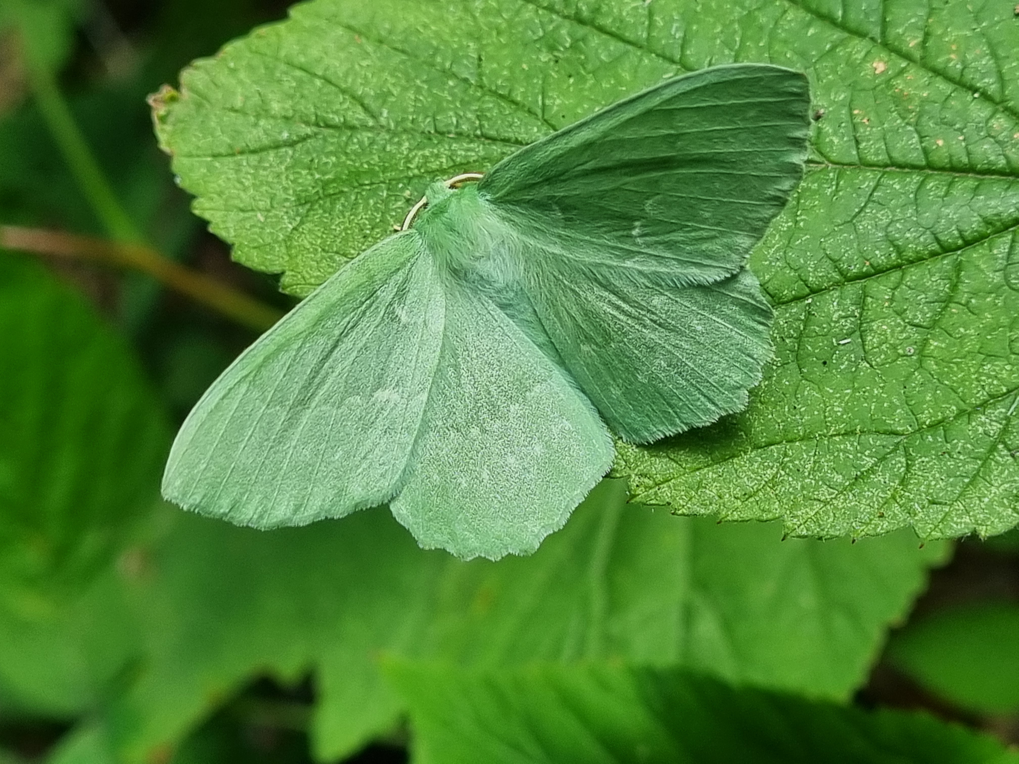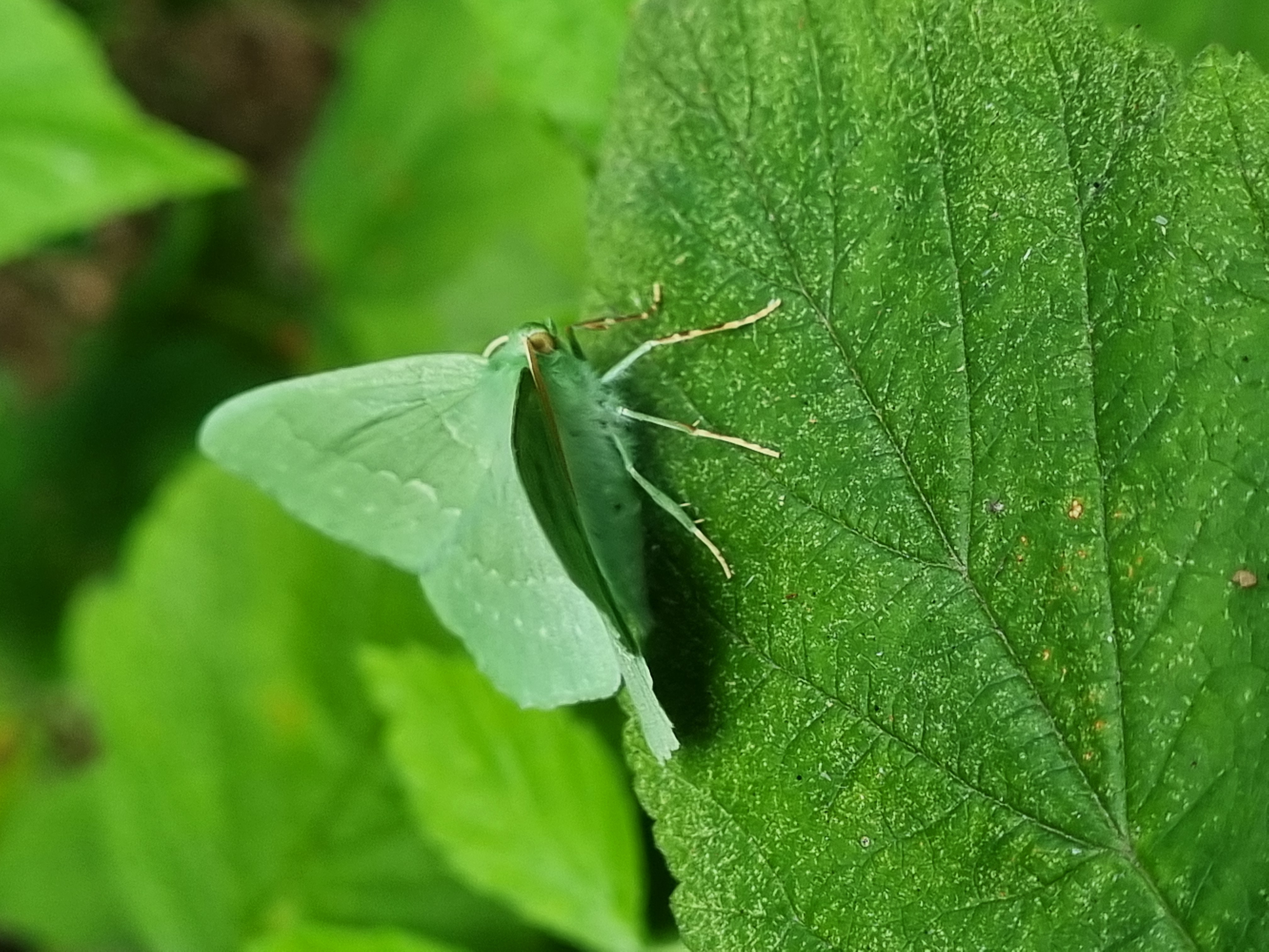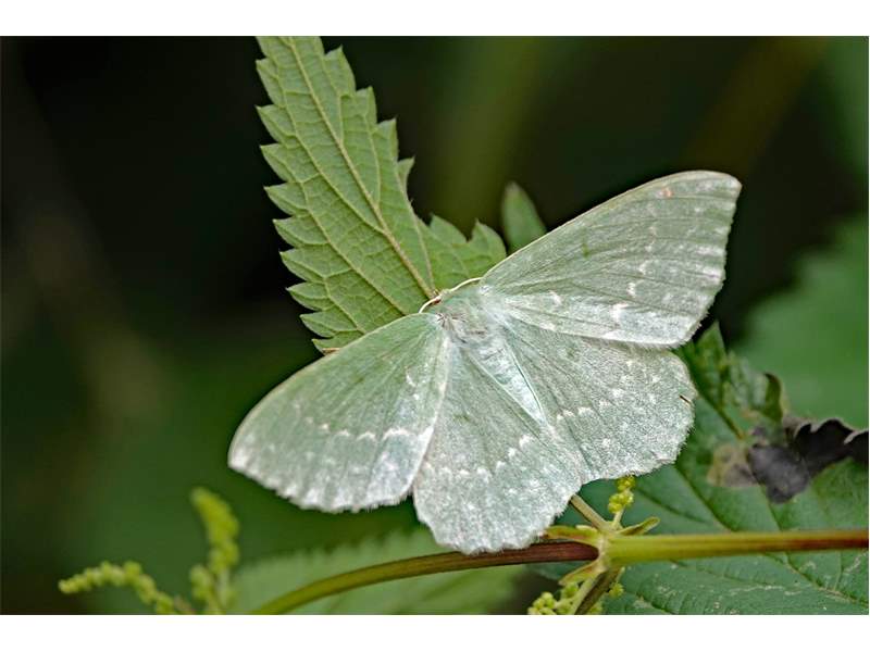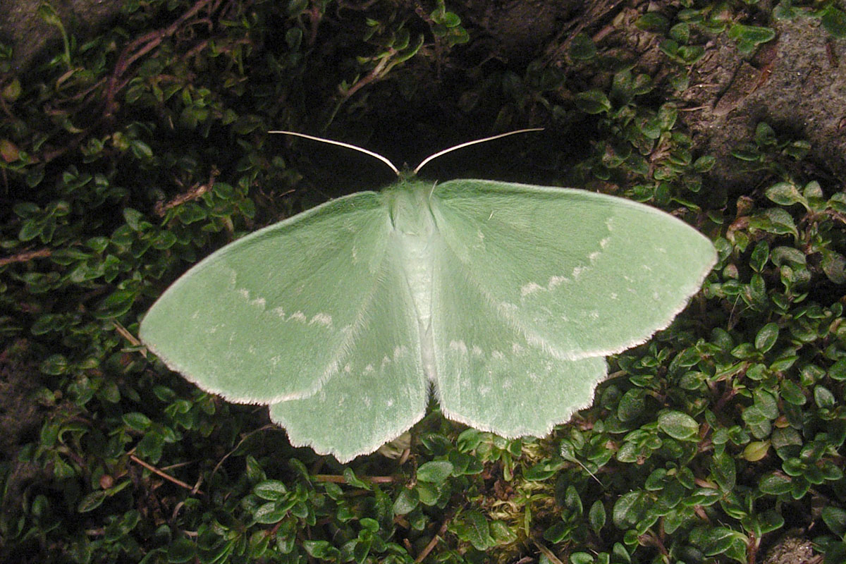 Vorderflügel mit drei weißlichen Linien, innerer und äußerer Querlinie sowie Wellenline; innere Querlinie und Wellenlinie oft nur partiell ausgebildet oder durch weiße Punkte angedeutet. Im Mittelfeld, zwischen innerer und äußerer Querlinie, das Grün manchmal etwas dunkler, und ein dunkler strichförmiger Mittelpunkt zumindest schwach zu erkennen.