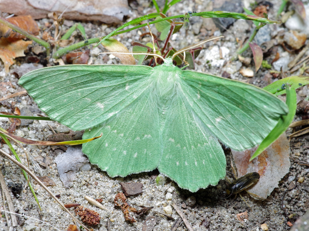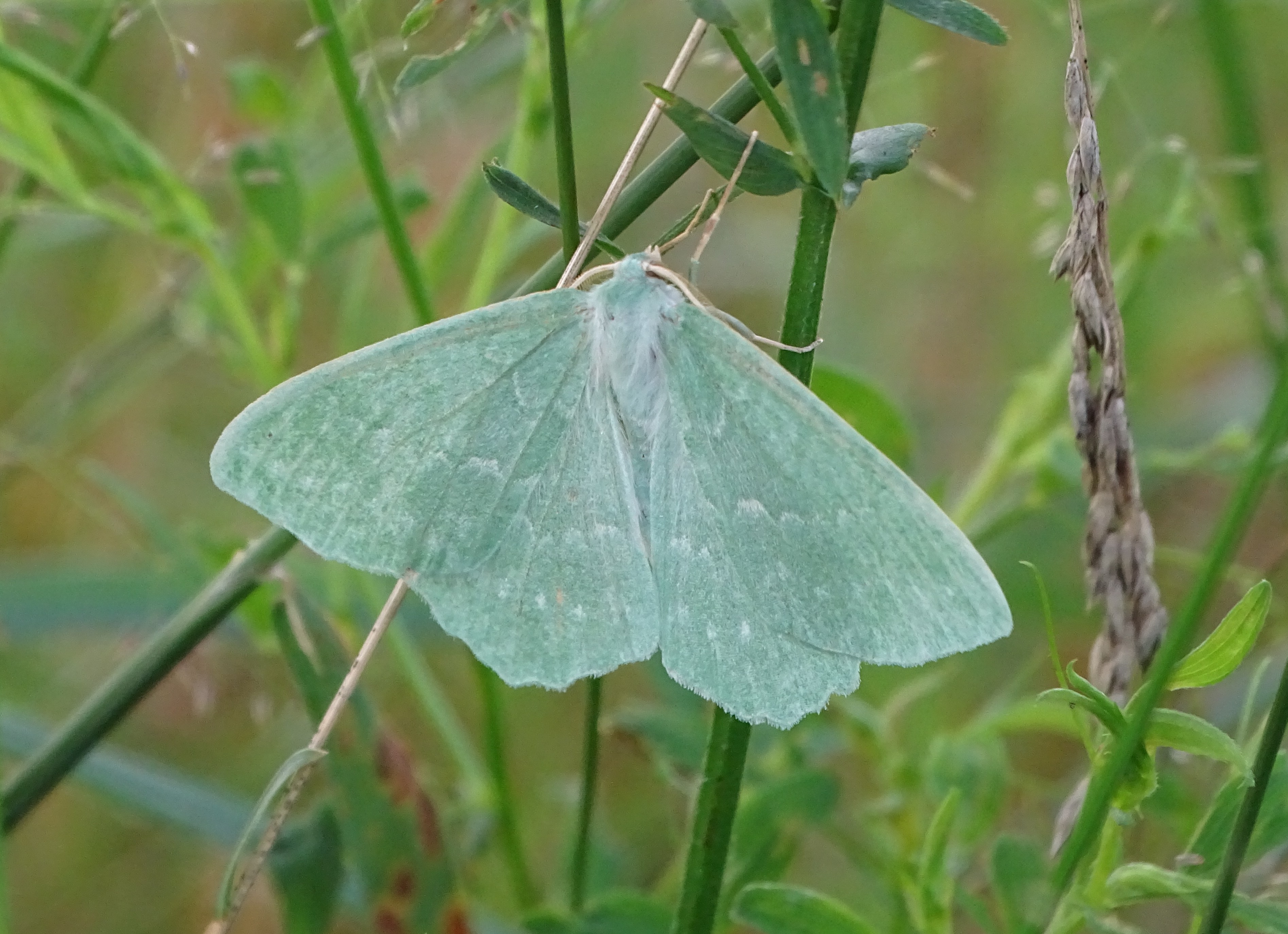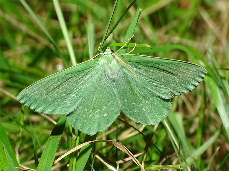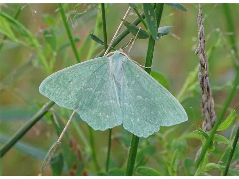 Vorderflügel mit drei weißlichen Linien, innerer und äußerer Querlinie sowie Wellenline; innere Querlinie und Wellenlinie oft nur partiell ausgebildet oder durch weiße Punkte angedeutet. Im Mittelfeld, zwischen innerer und äußerer Querlinie, das Grün manchmal etwas dunkler, und ein dunkler strichförmiger Mittelpunkt zumindest schwach zu erkennen.