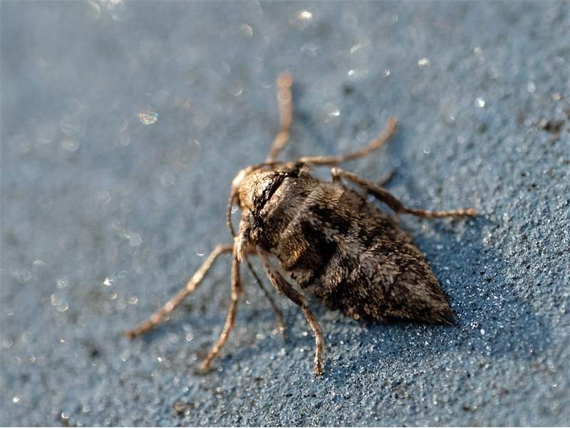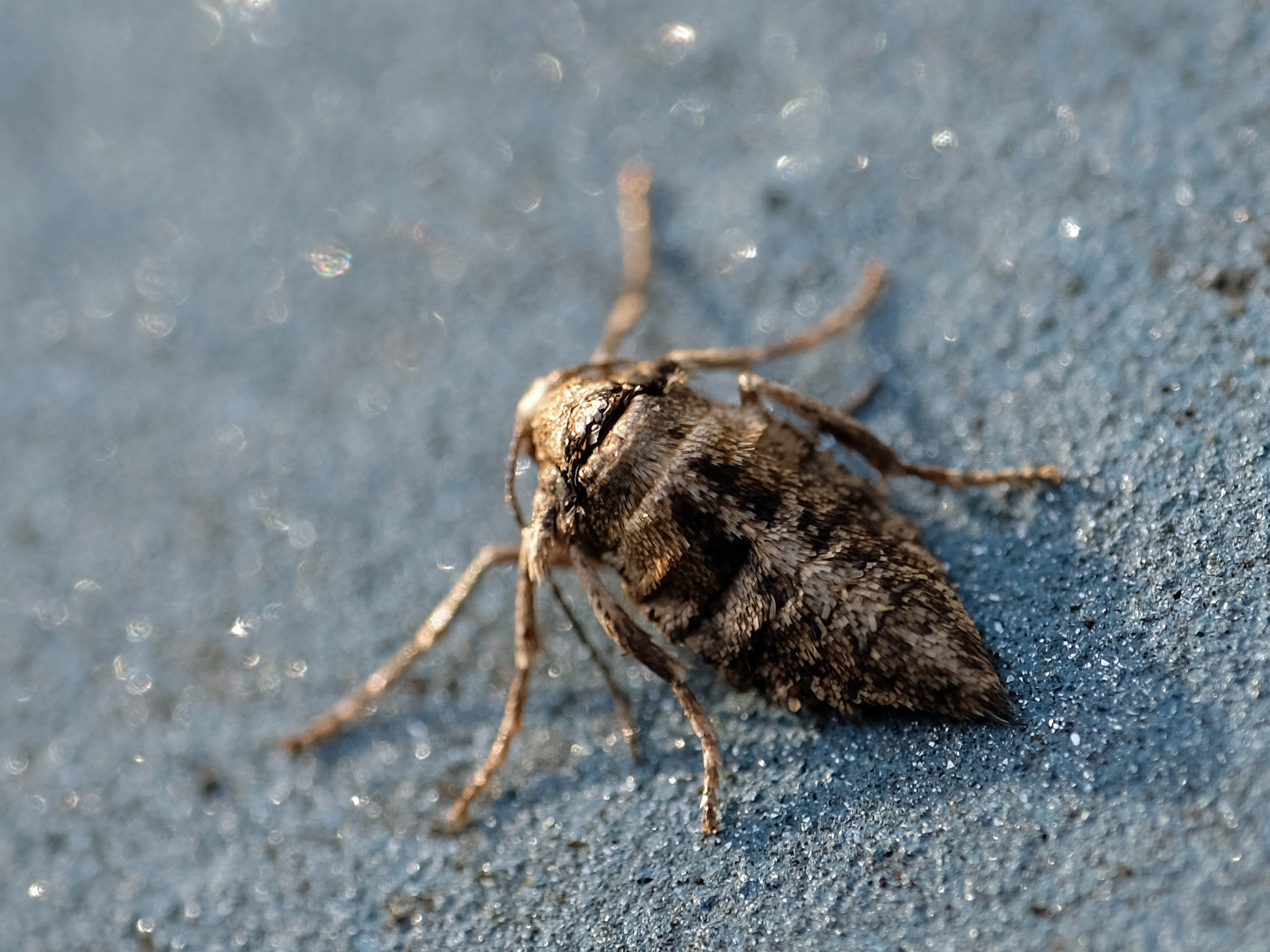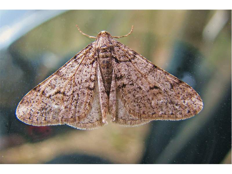 Thorax: Vorderflügel braungrau, hellgrau sowie partiell oder vollständig schwarz; das meist hellere Mittelfeld wird von zwei dunklen Querlinien begrenzt, deren innere bogenförmig um das Basalfeld verläuft, die äußere Querlinie ist stark gewellt bis gezackt; im Mittelfeld verläuft eine manchmal nur schwach ausgebildete dunklere Linie. Nur die Männchen besitzen voll ausgebildete Flügel, die Weibchen besitzen nur winzige, haarbüschelartige Flügelstummel.