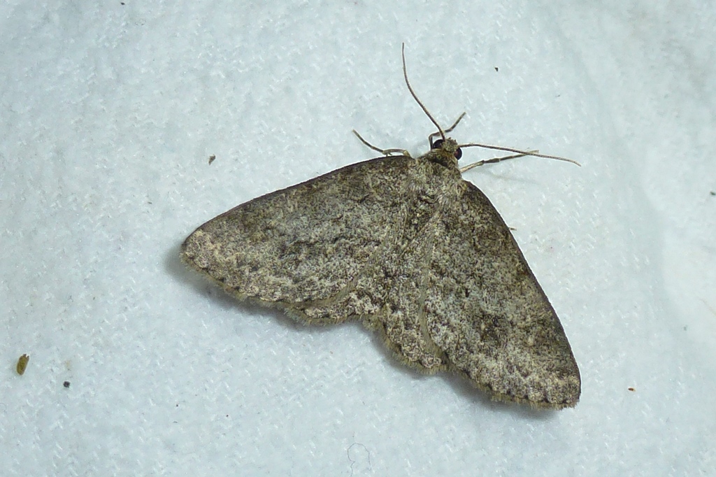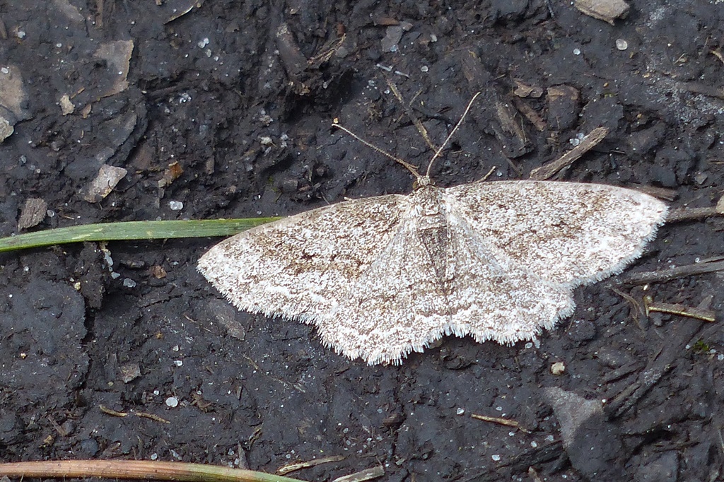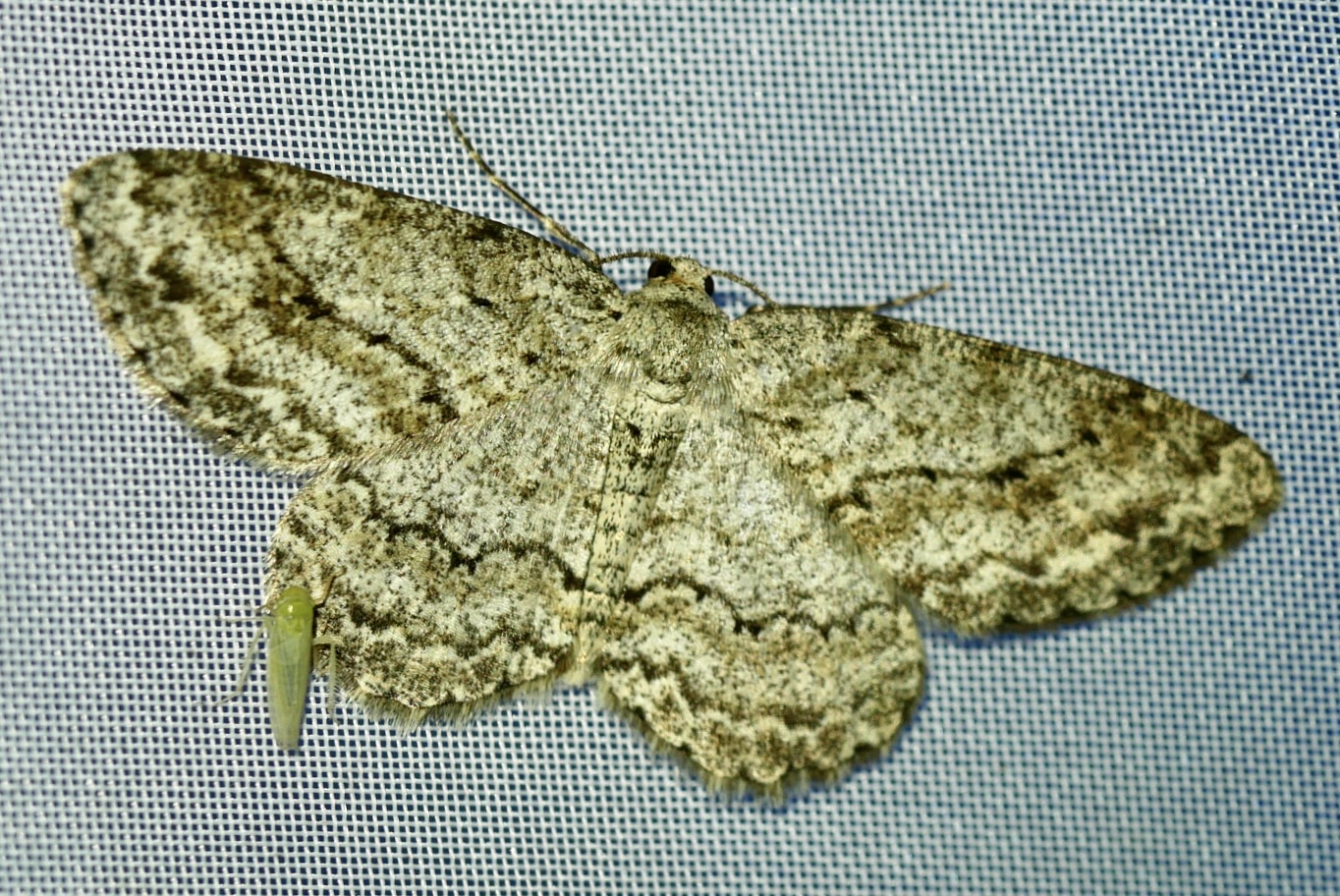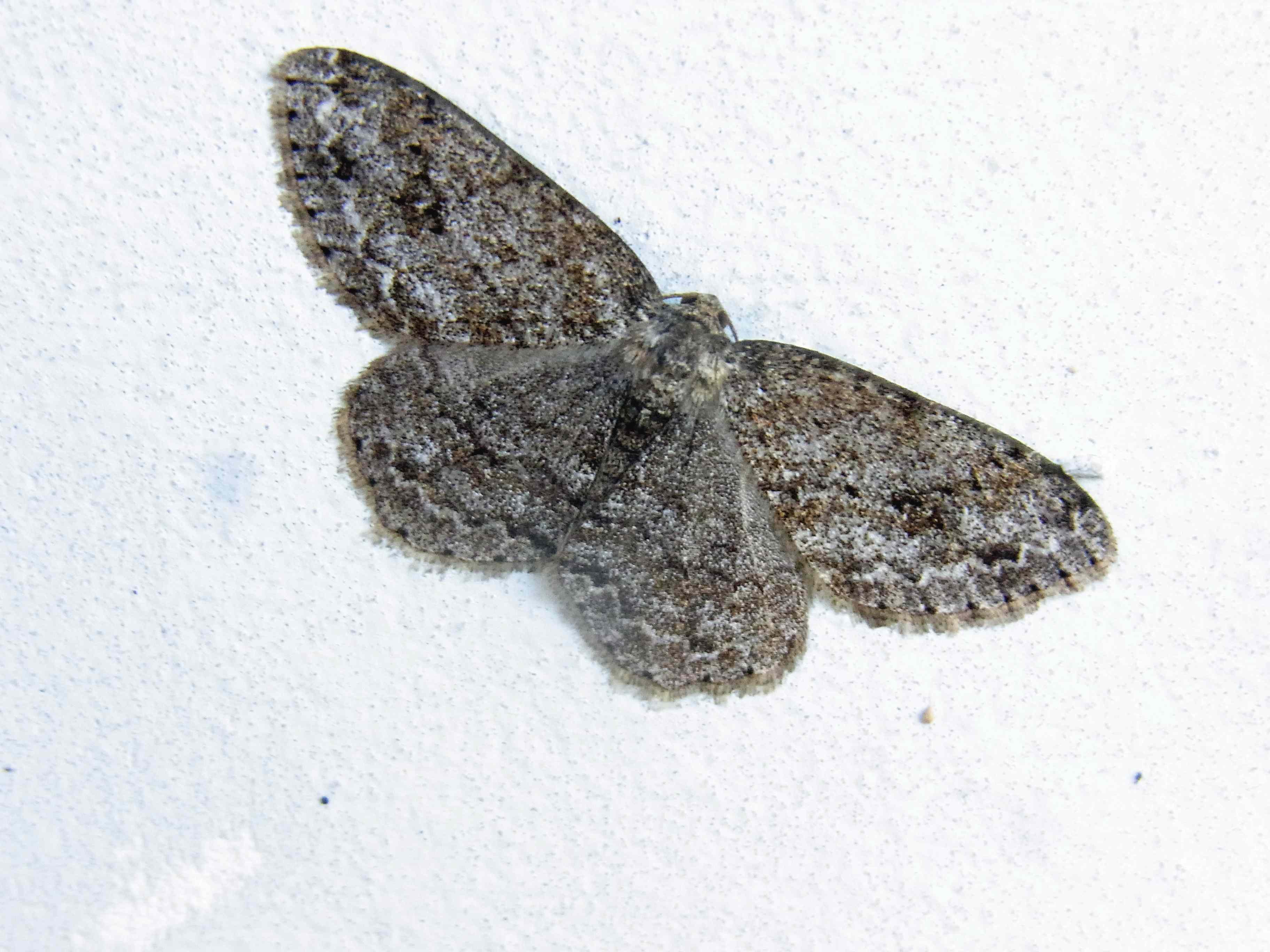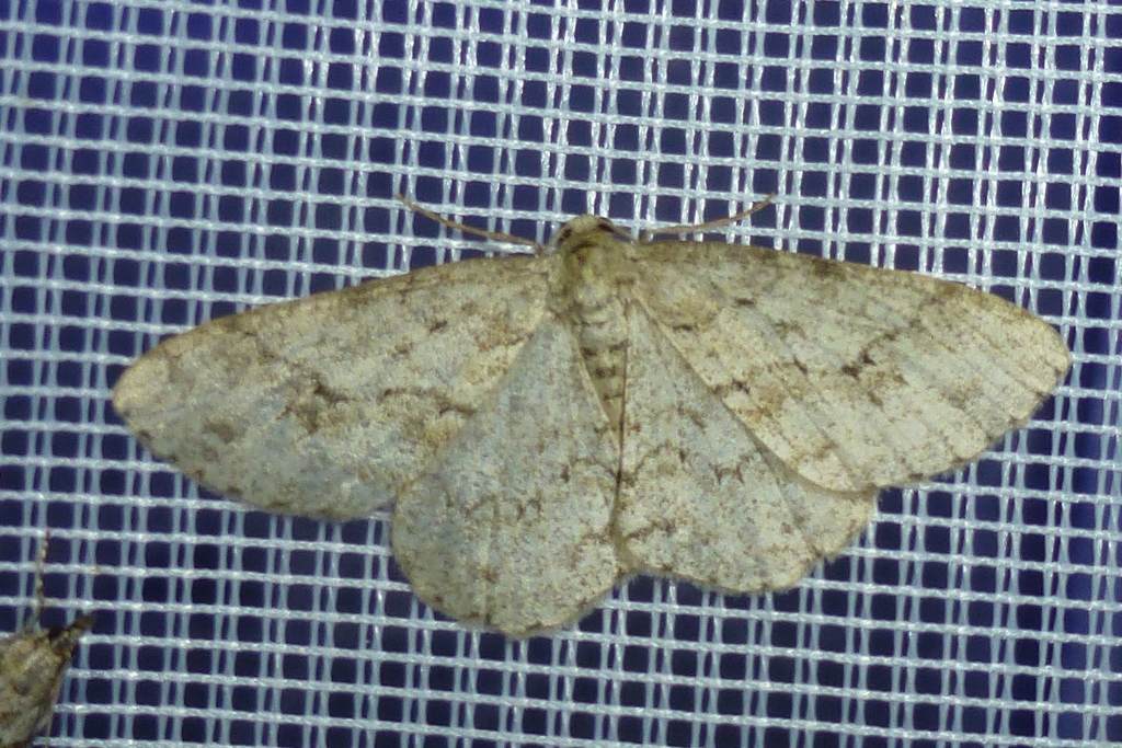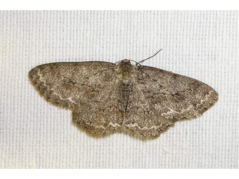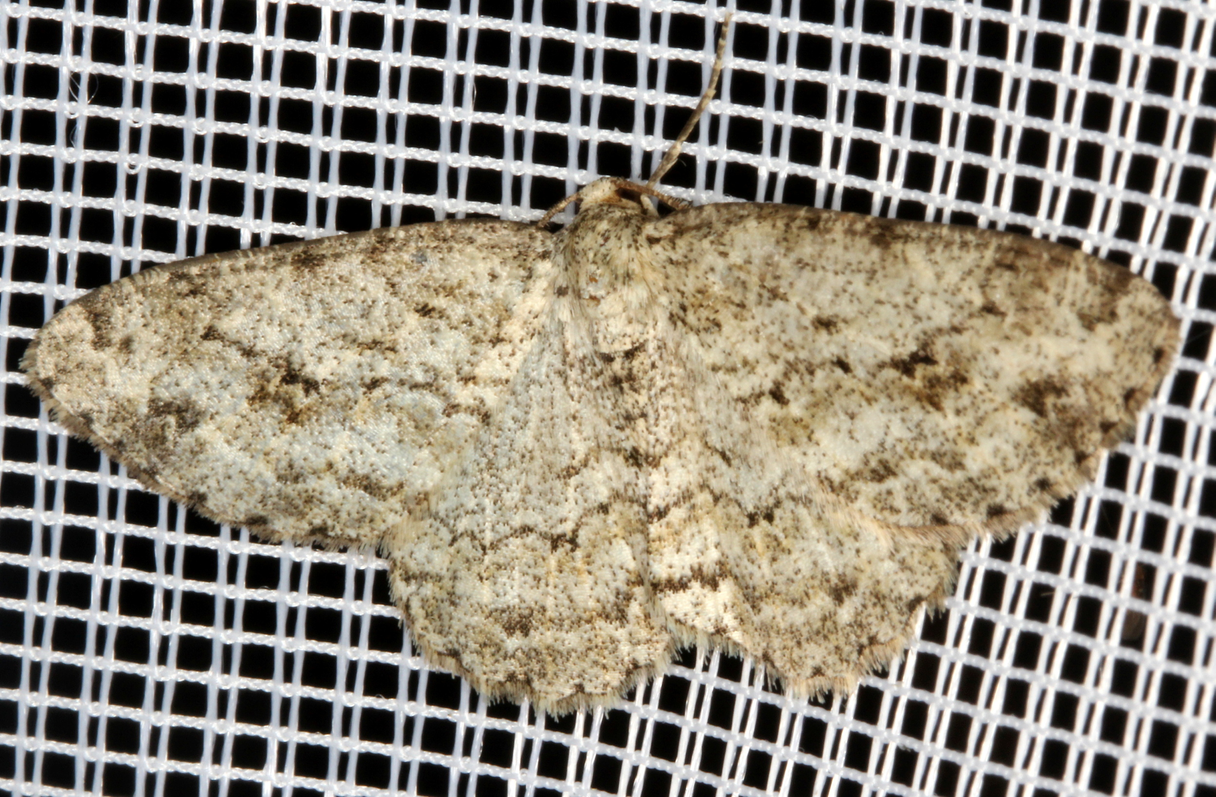 Ectropis crepuscularia (Denis & Schiffermüller, 1775), Chemnitz: Zeisigwald//Planitzwiese, 11.4.2018, seit Tagen frühsommerliche Temperaturen, passiver Lichtfang an hellem Gebäude, natürliche Farbe grau-grün