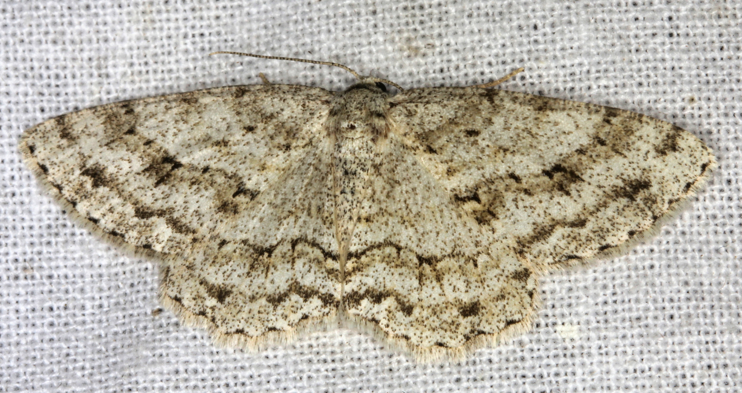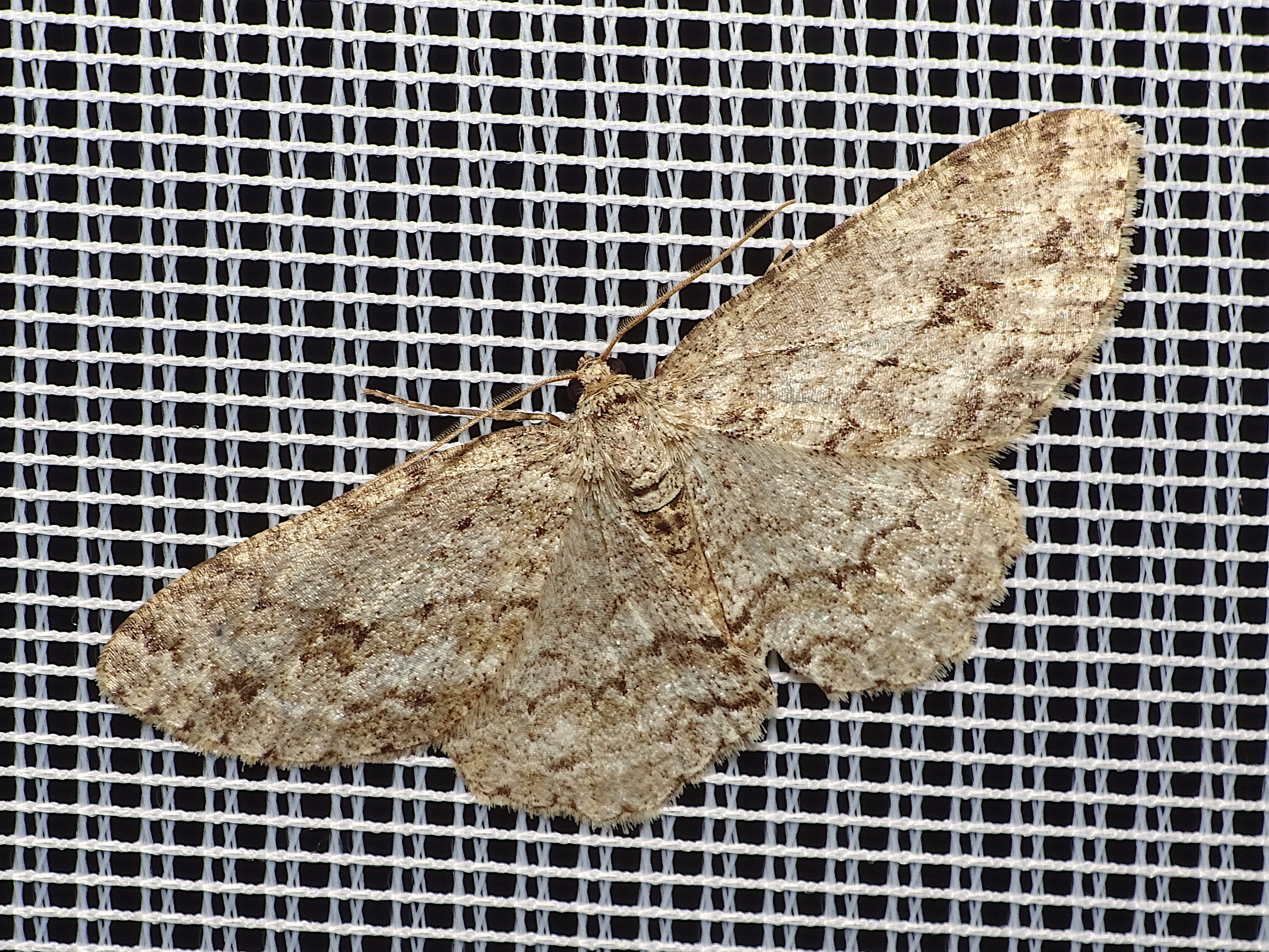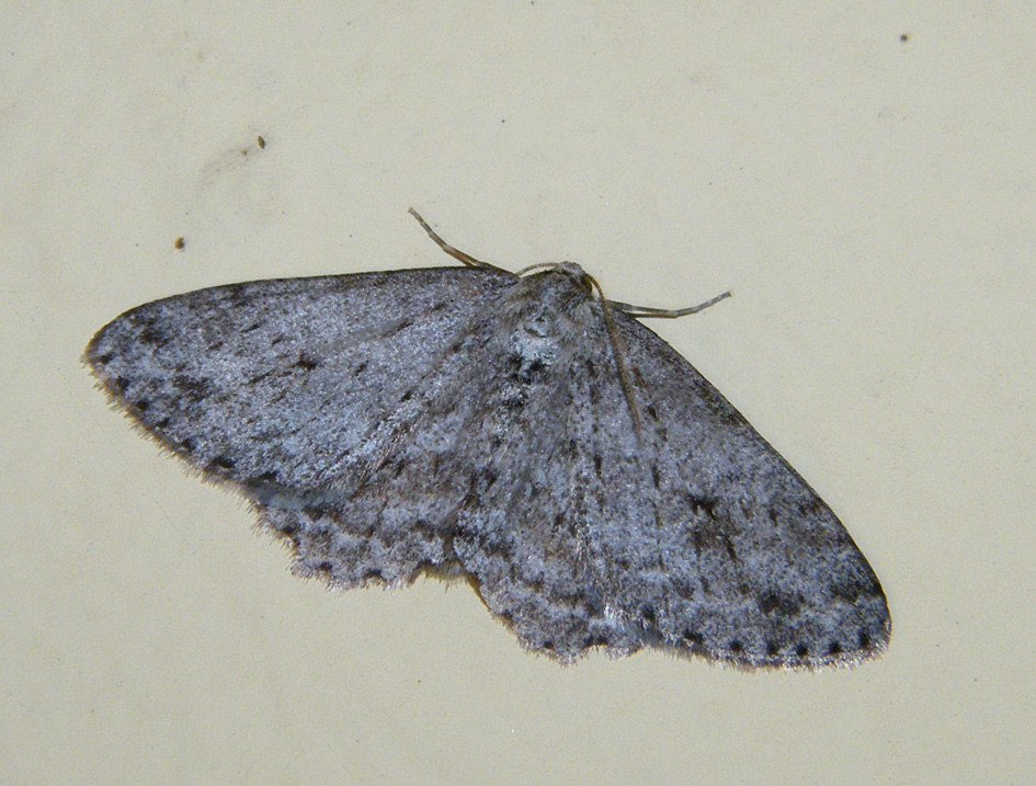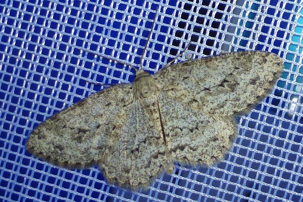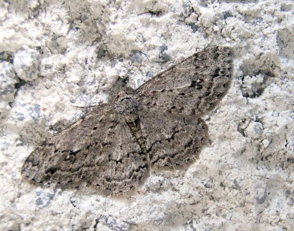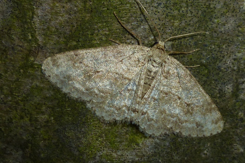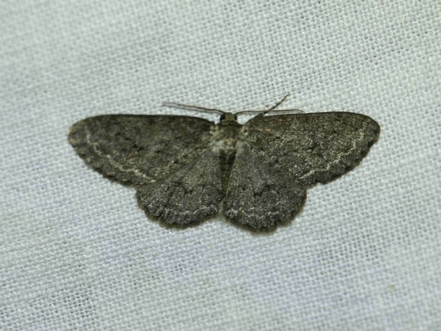 Ectropis crepuscularia (Denis & Schiffermüller, 1775), Chemnitz: Zeisigwald//Planitzwiese, 11.4.2018, seit Tagen frühsommerliche Temperaturen, passiver Lichtfang an hellem Gebäude, natürliche Farbe grau-grün