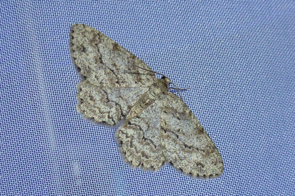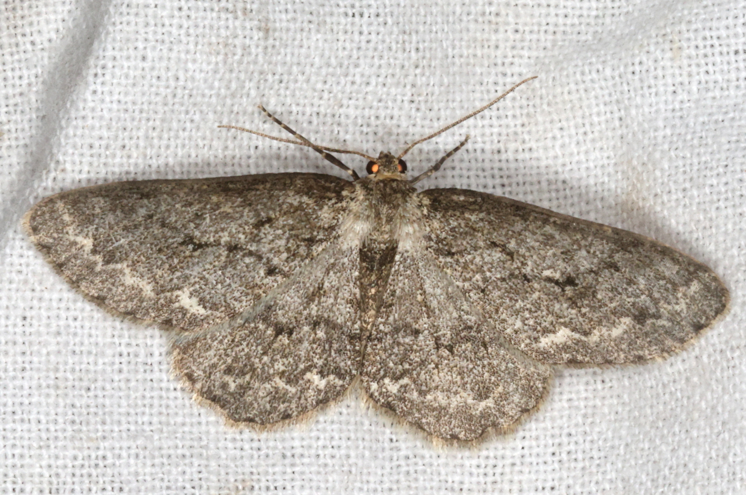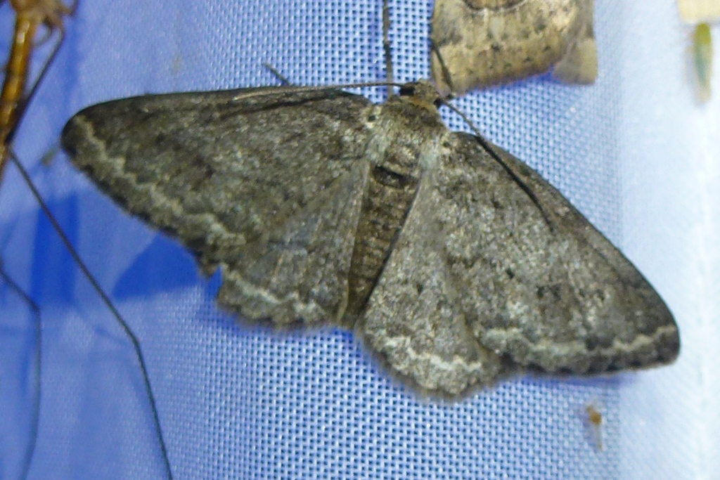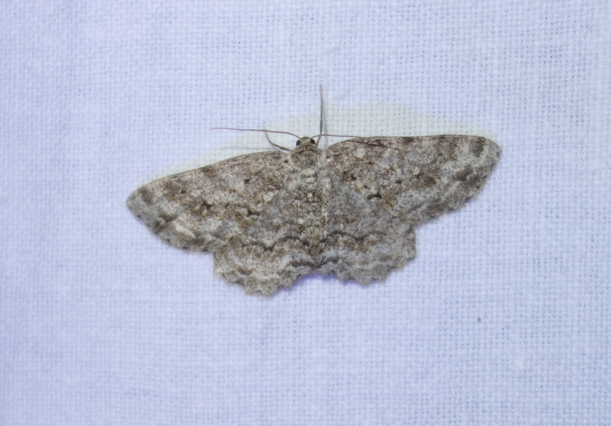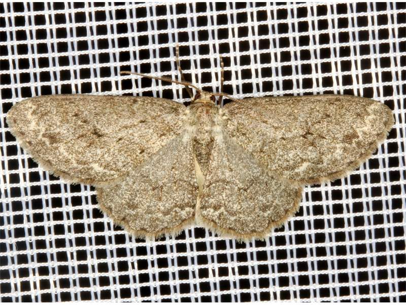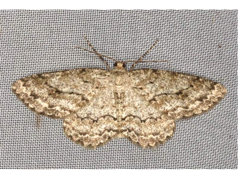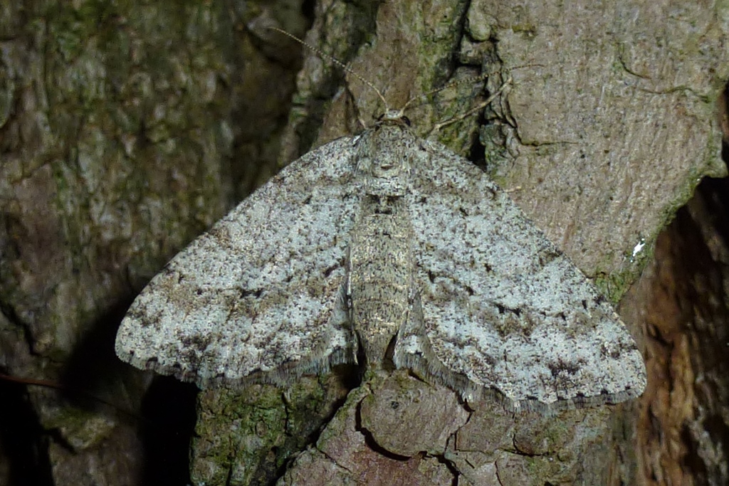 Ectropis crepuscularia (Denis & Schiffermüller, 1775), Chemnitz: Zeisigwald//Planitzwiese, 11.4.2018, seit Tagen frühsommerliche Temperaturen, passiver Lichtfang an hellem Gebäude, natürliche Farbe grau-grün