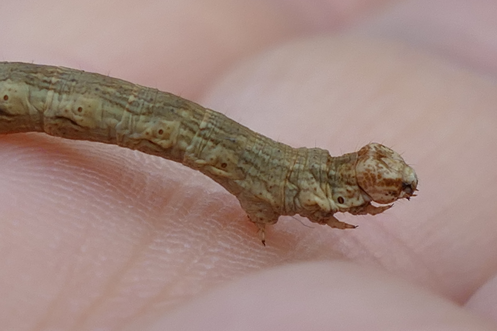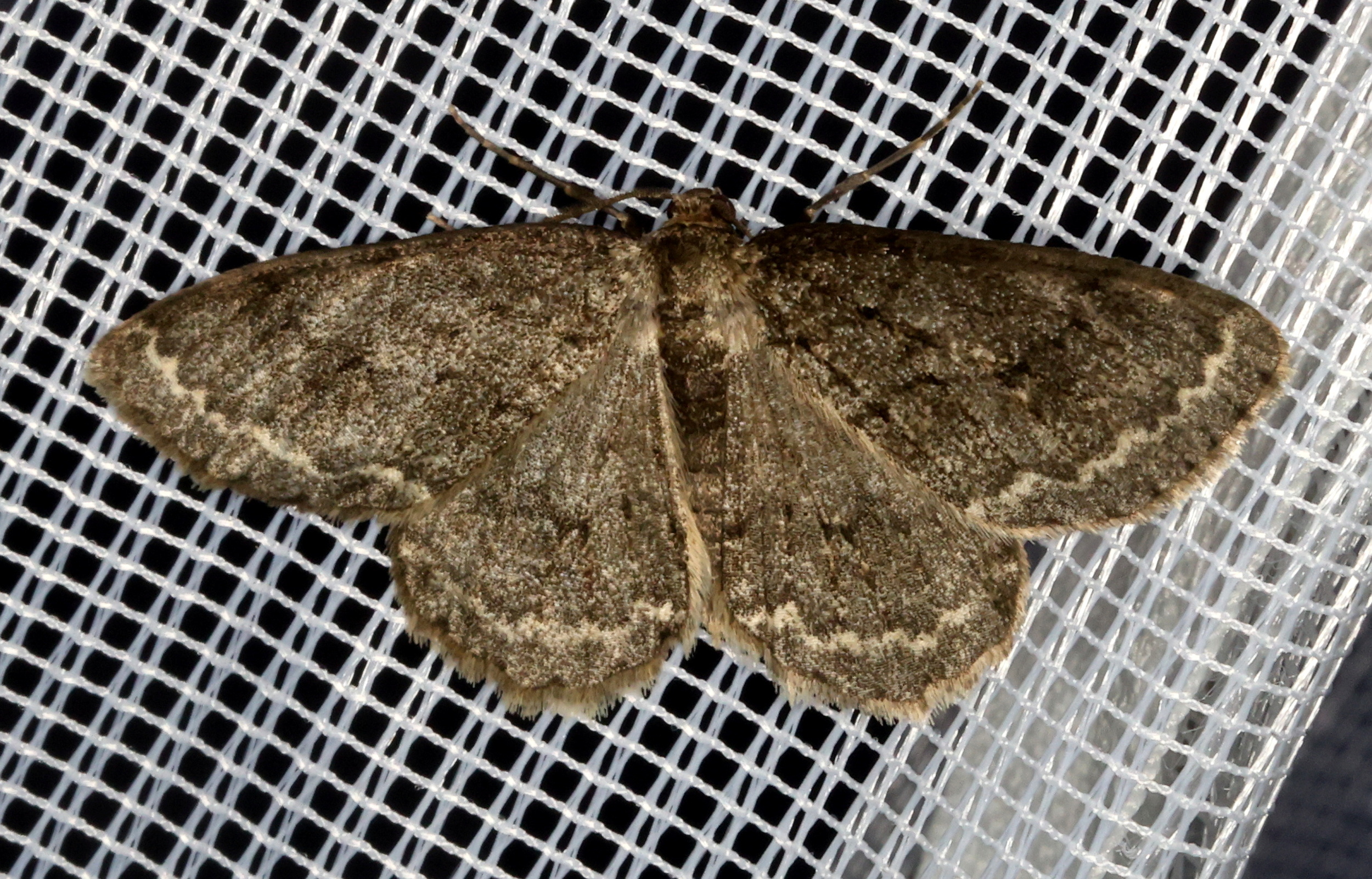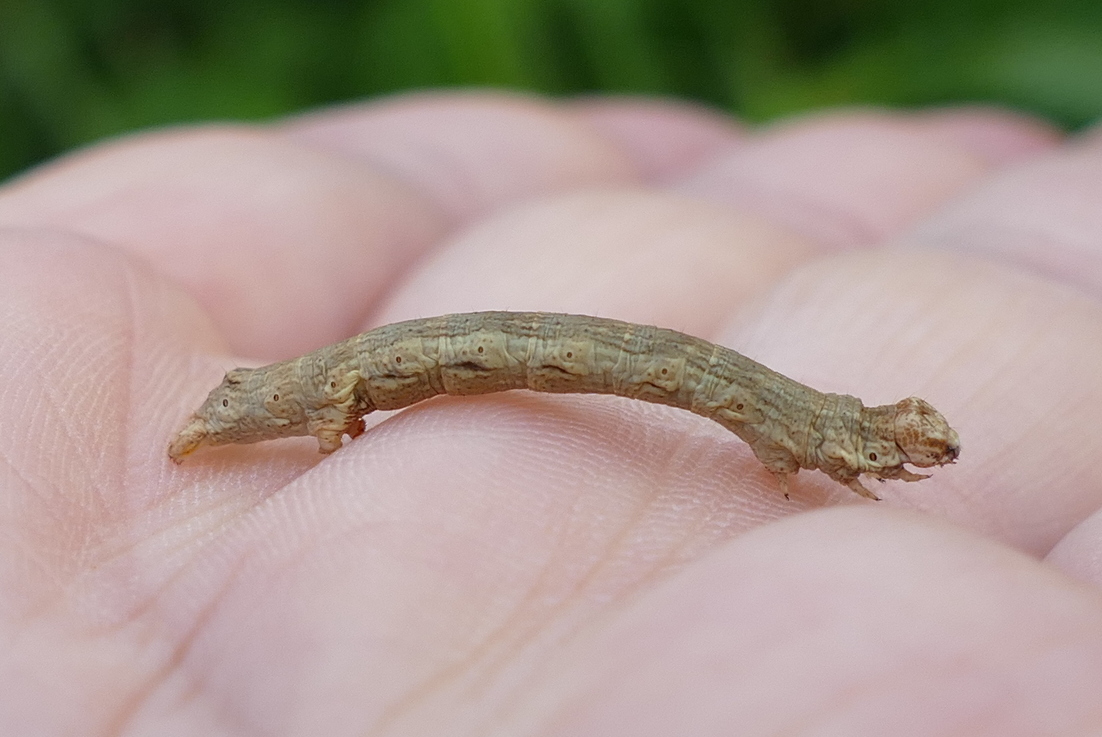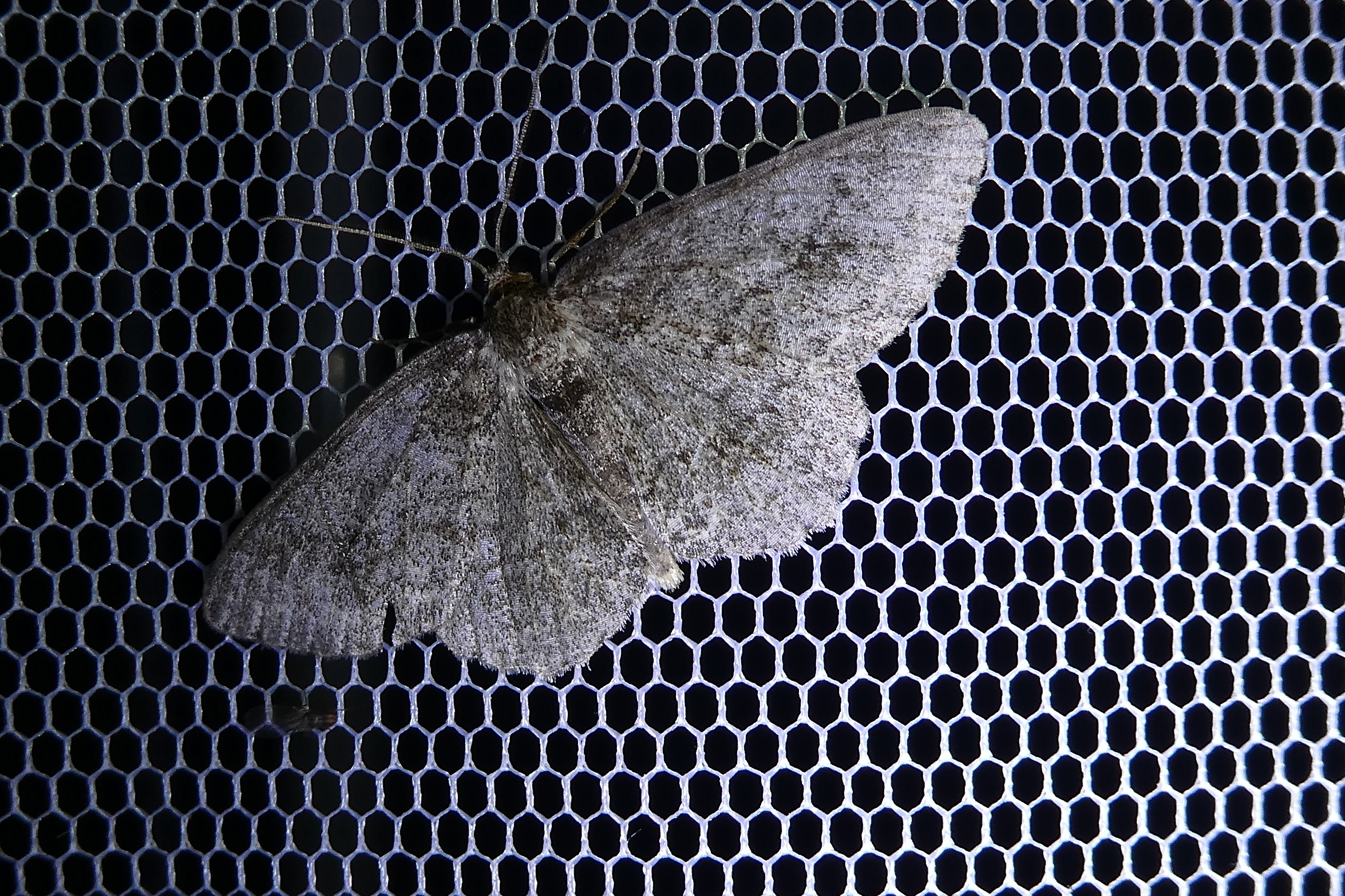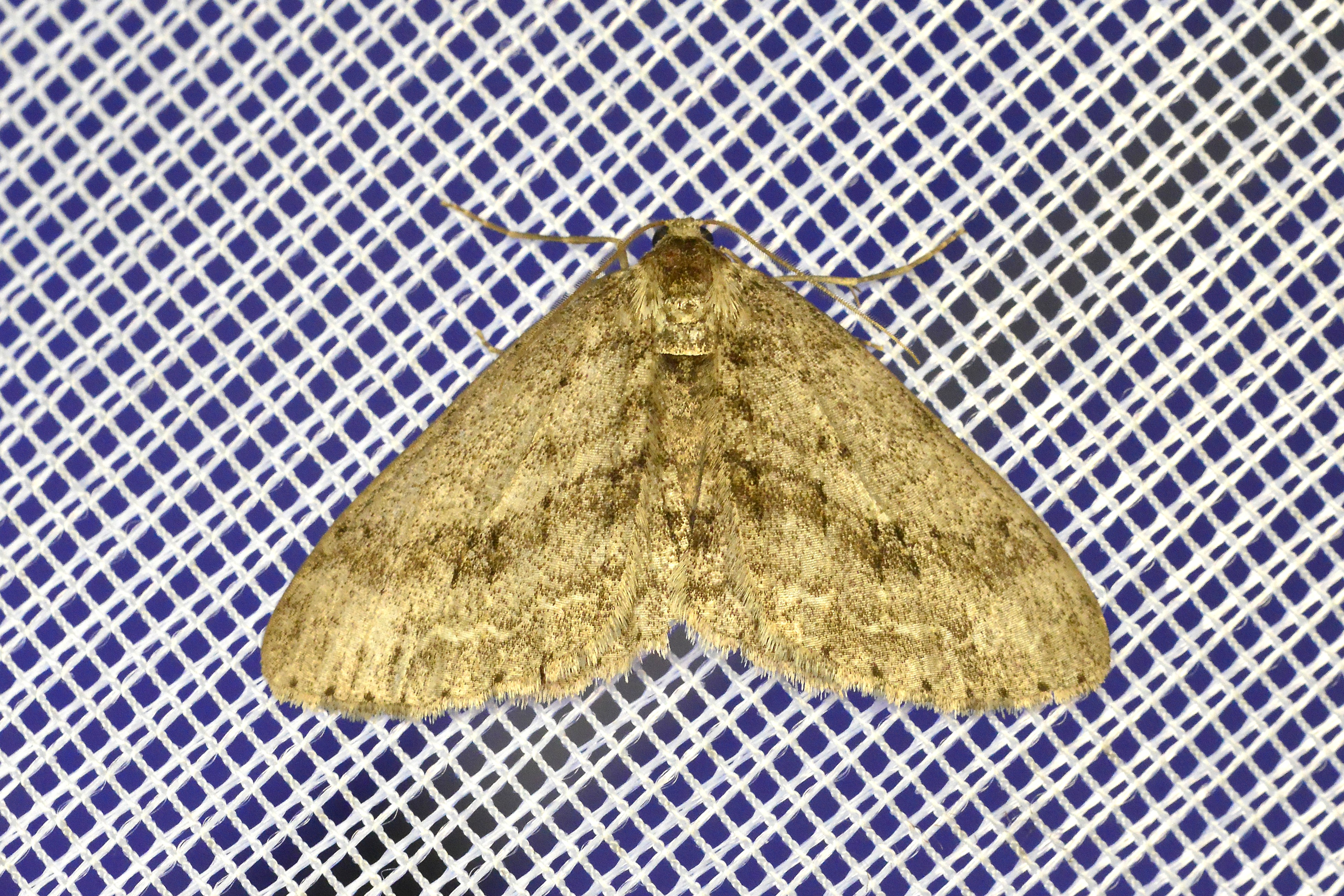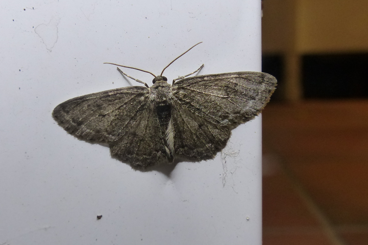 Ectropis crepuscularia (Denis & Schiffermüller, 1775), Chemnitz: Zeisigwald//Planitzwiese, 11.4.2018, seit Tagen frühsommerliche Temperaturen, passiver Lichtfang an hellem Gebäude, natürliche Farbe grau-grün