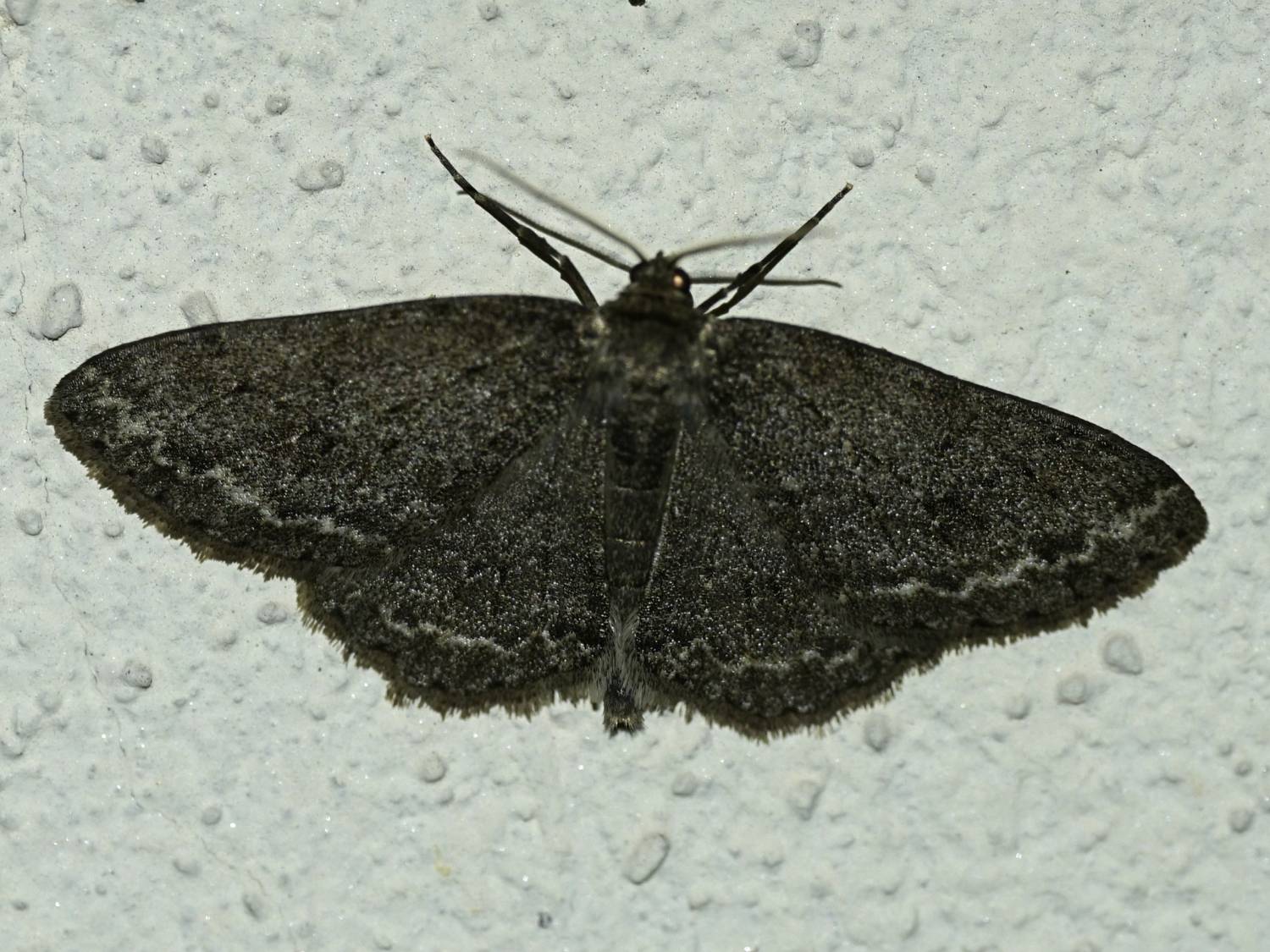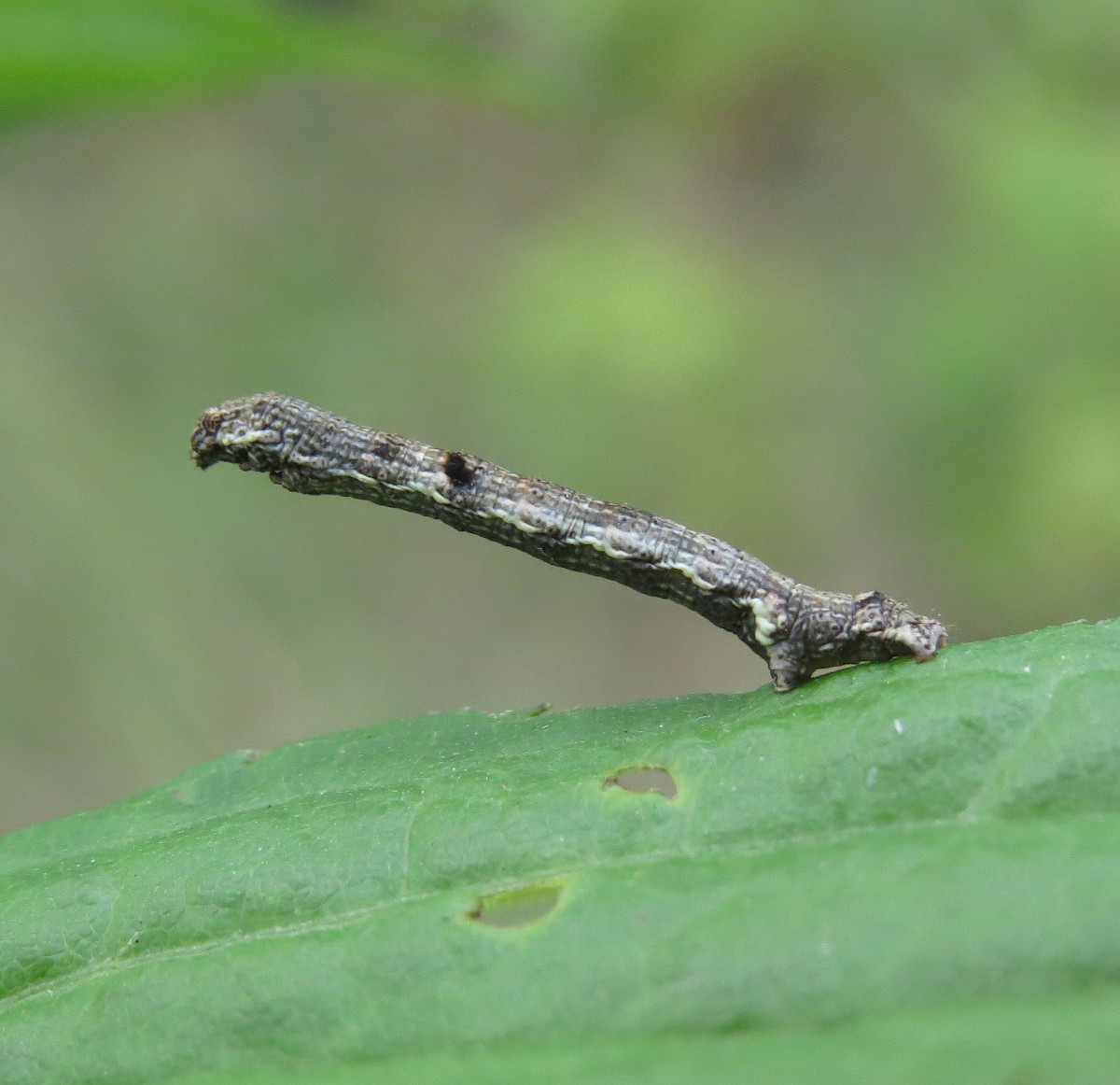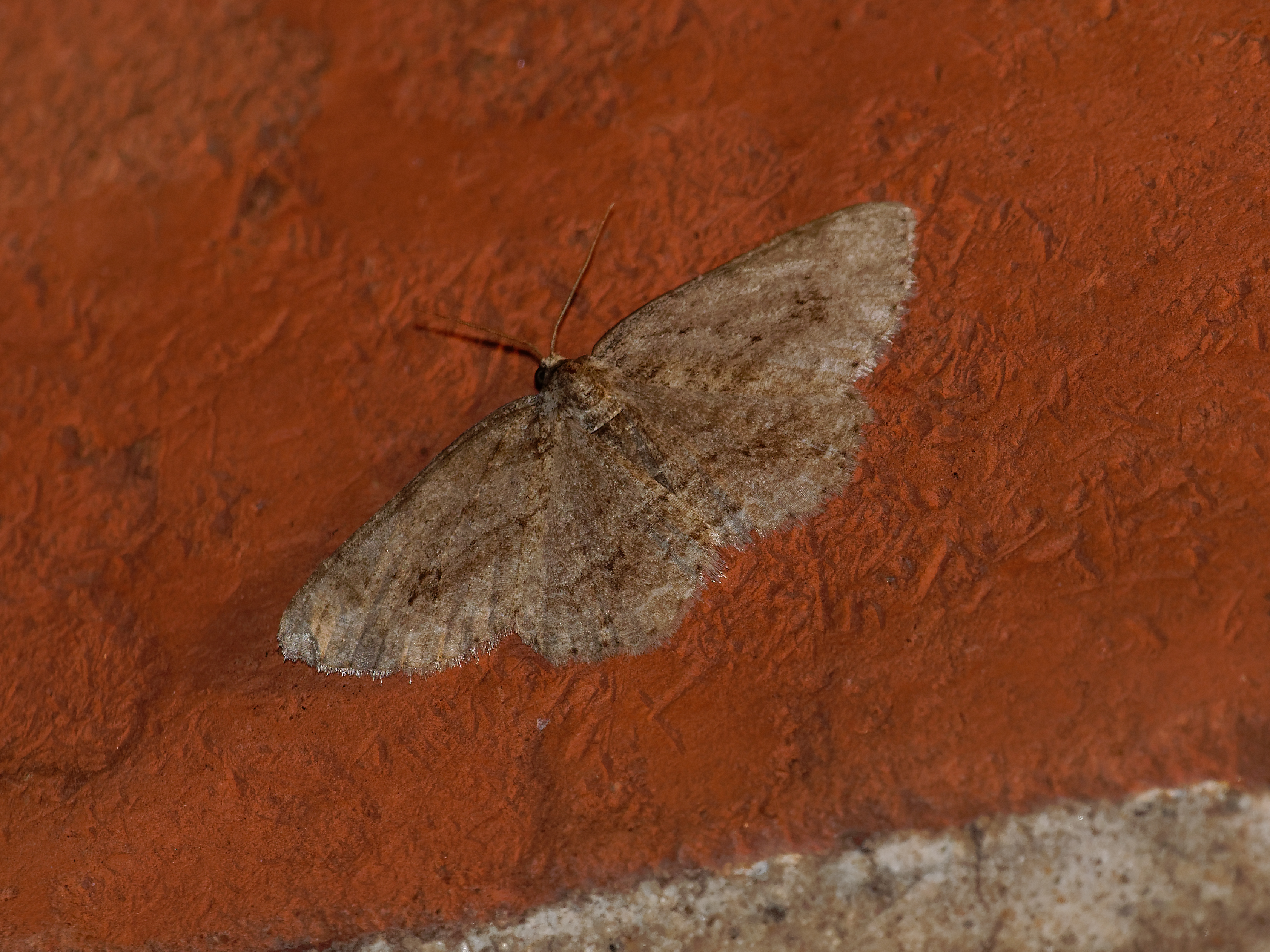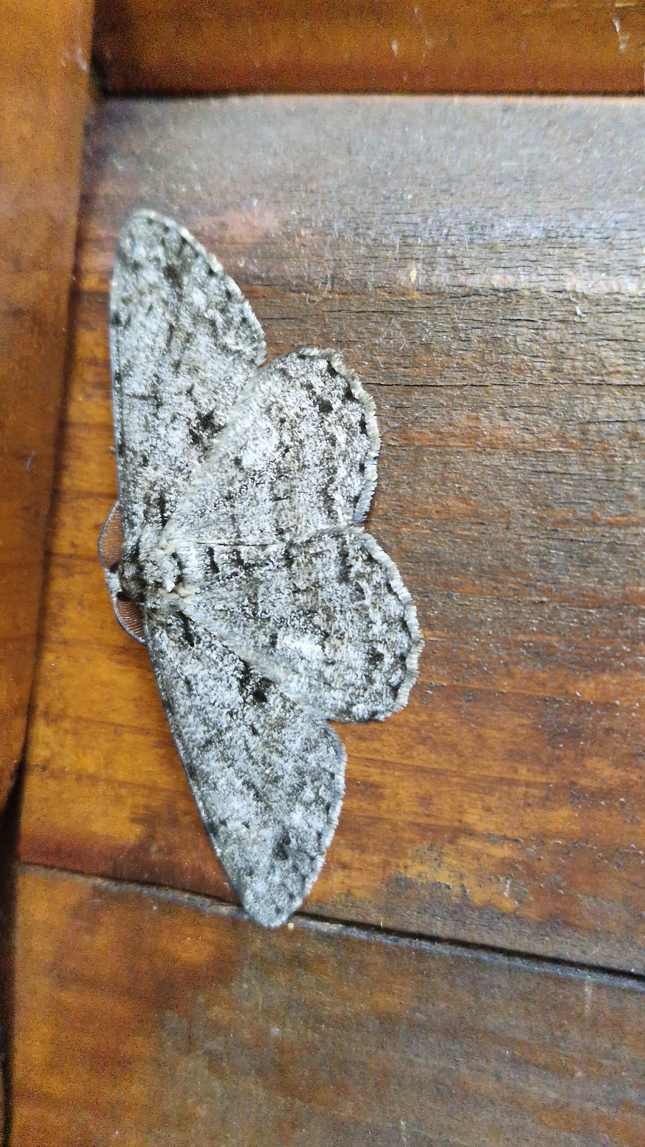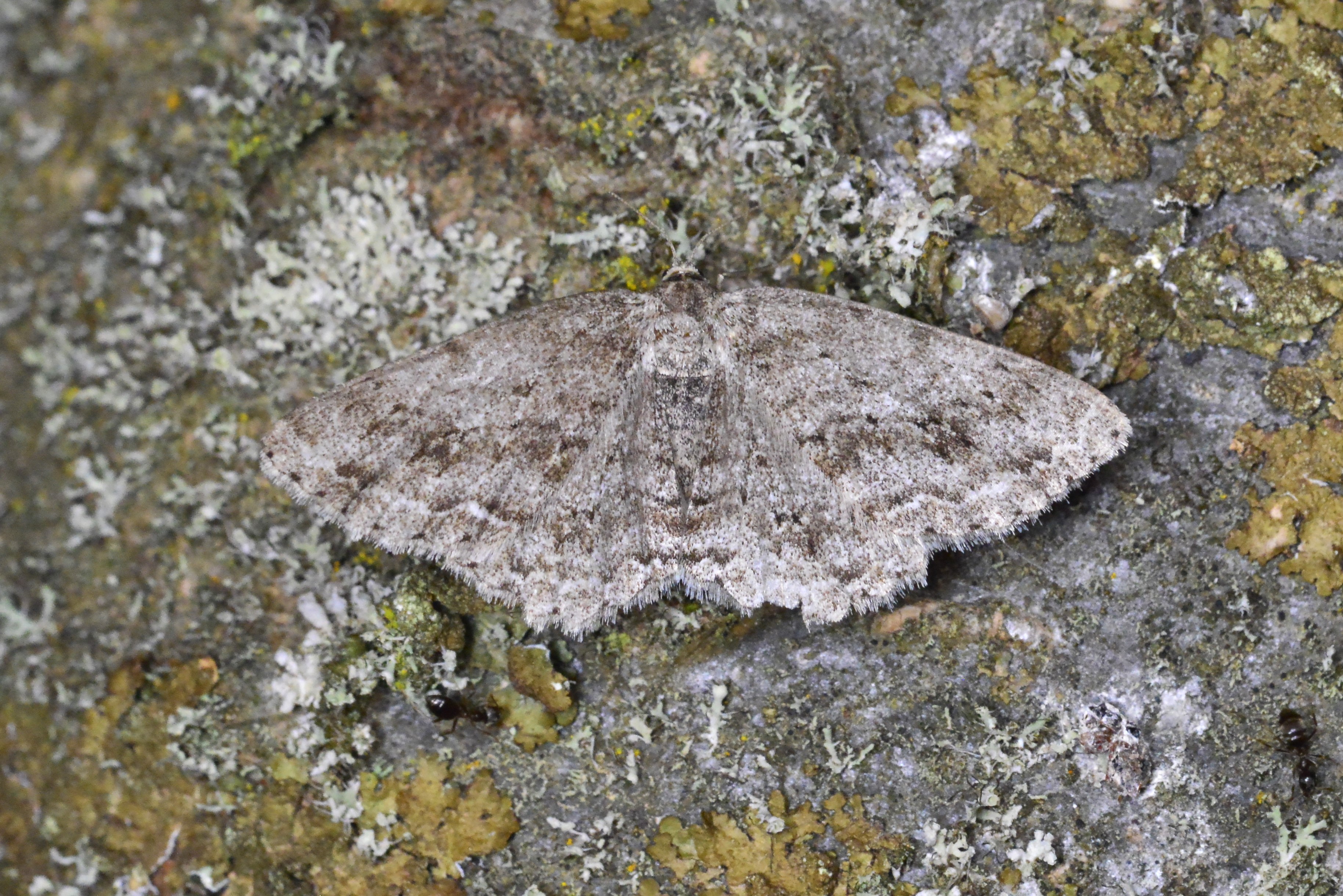 Ectropis crepuscularia (Denis & Schiffermüller, 1775), Chemnitz: Zeisigwald//Planitzwiese, 11.4.2018, seit Tagen frühsommerliche Temperaturen, passiver Lichtfang an hellem Gebäude, natürliche Farbe grau-grün