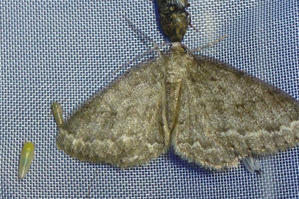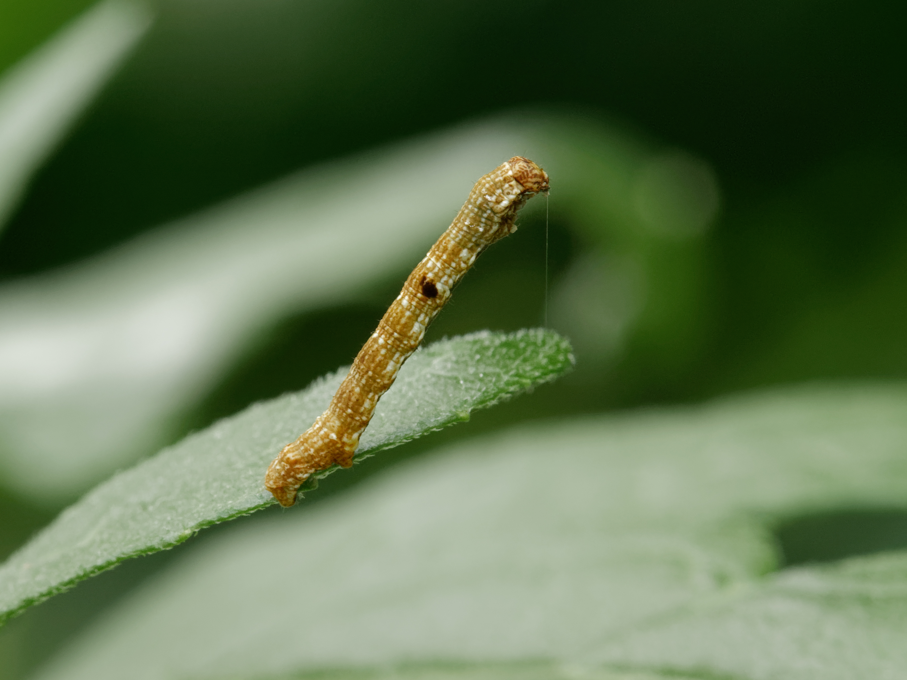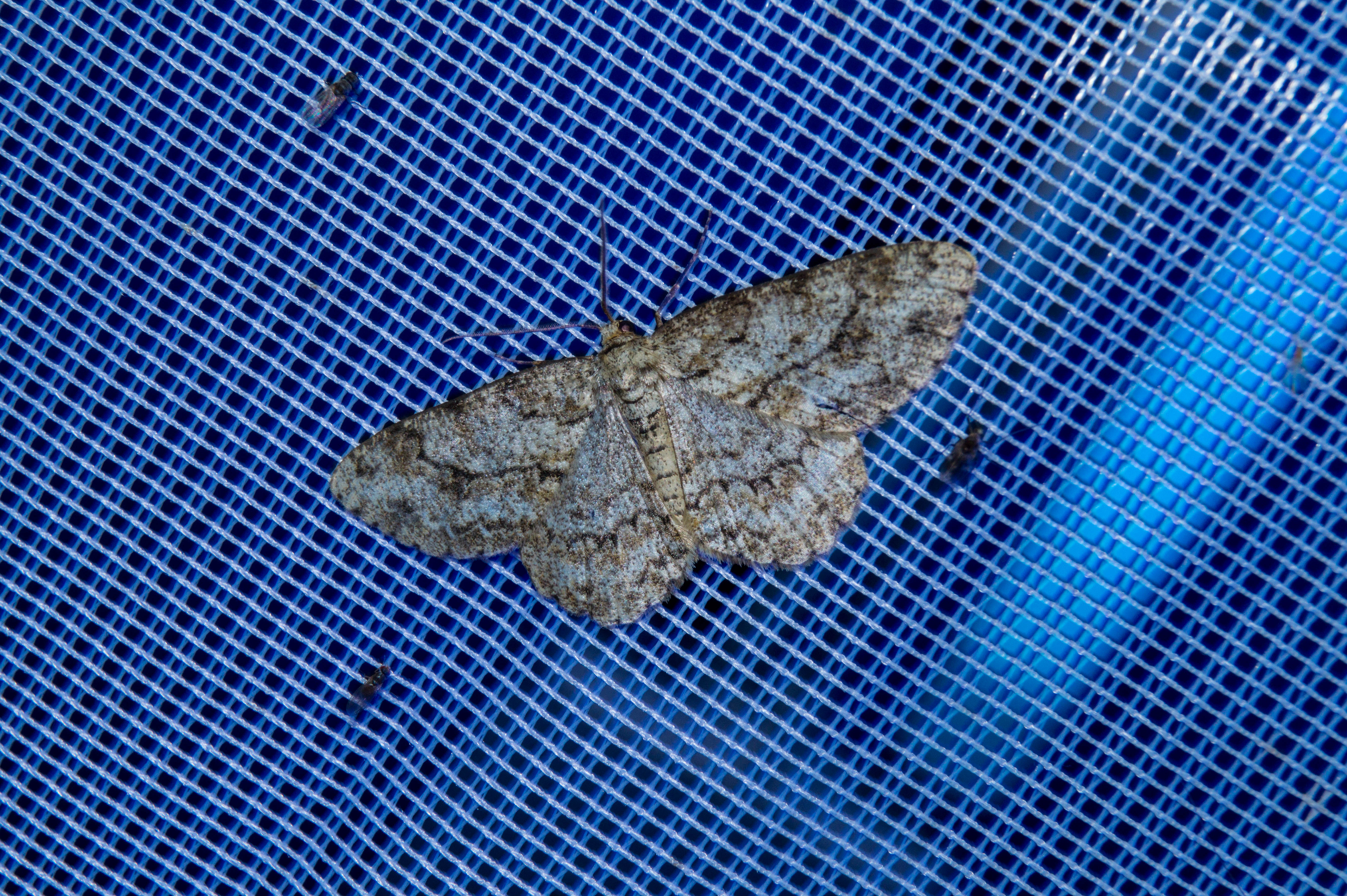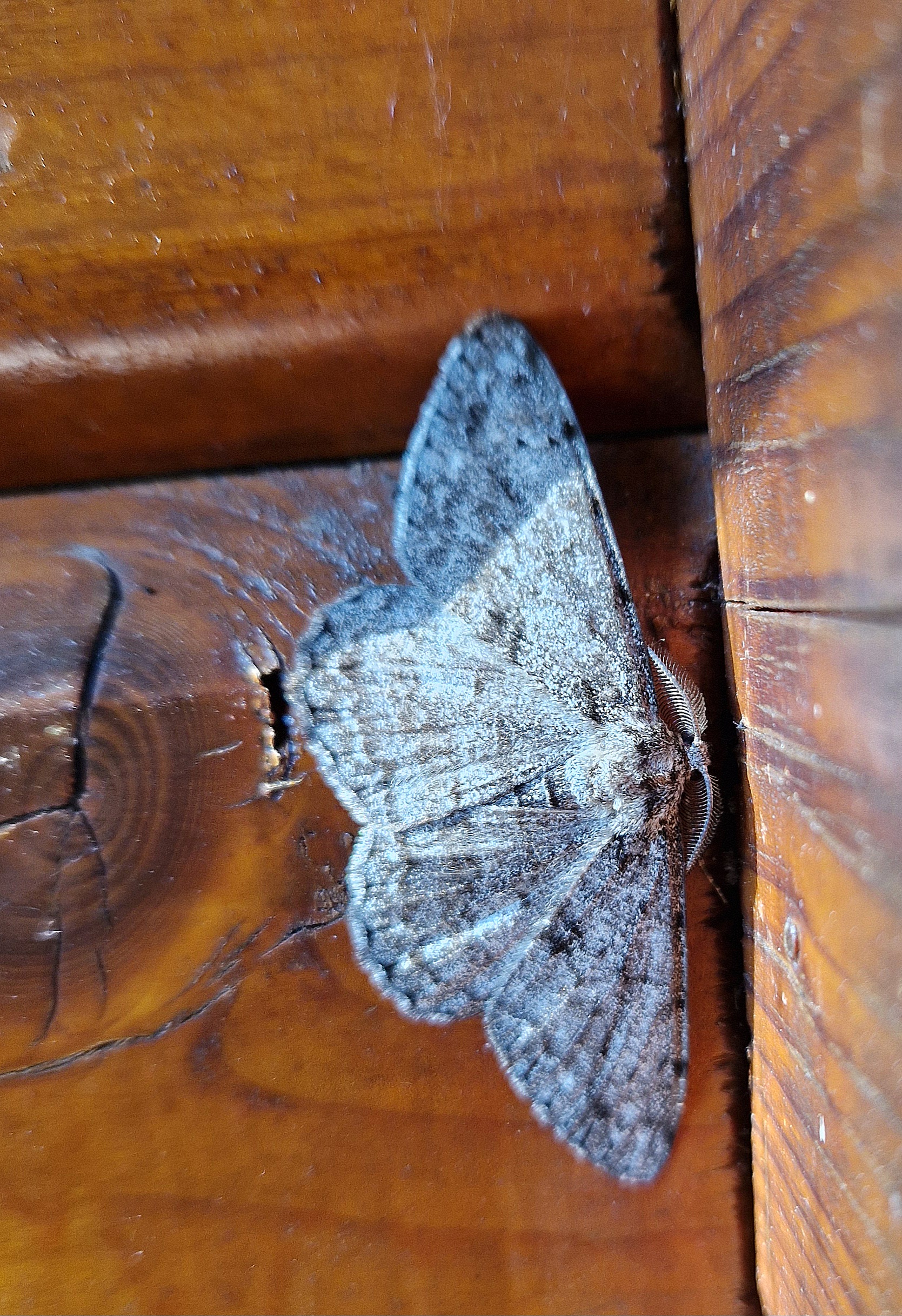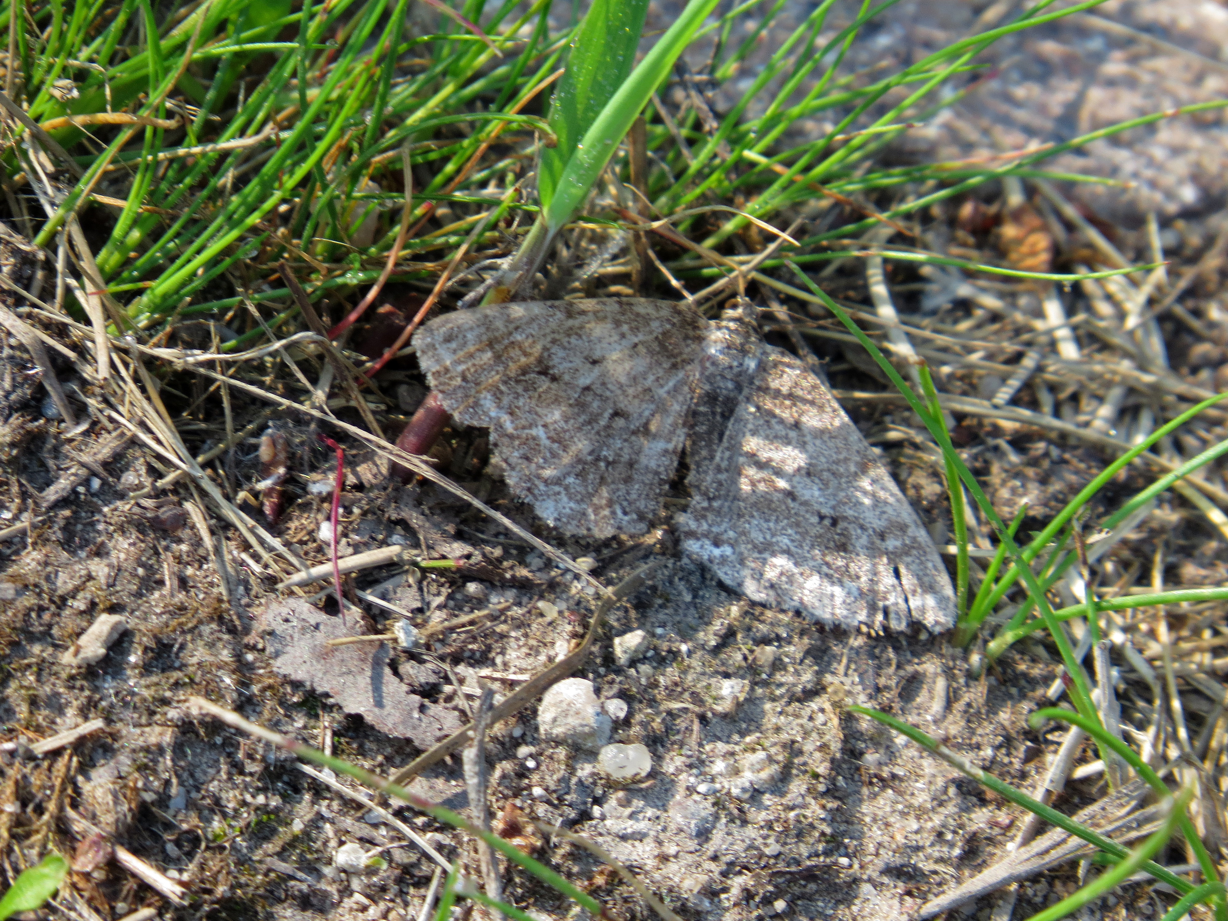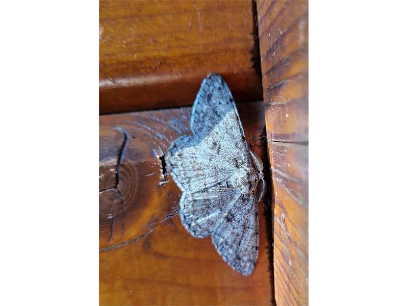 Ectropis crepuscularia (Denis & Schiffermüller, 1775), Chemnitz: Zeisigwald//Planitzwiese, 11.4.2018, seit Tagen frühsommerliche Temperaturen, passiver Lichtfang an hellem Gebäude, natürliche Farbe grau-grün