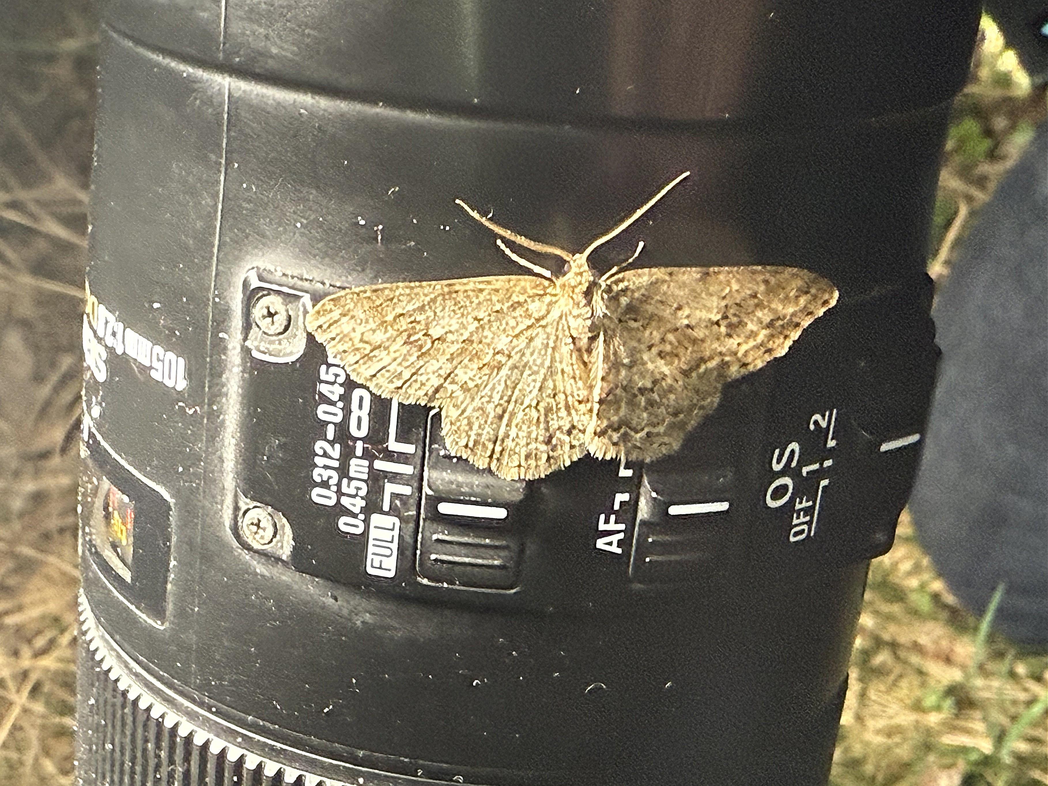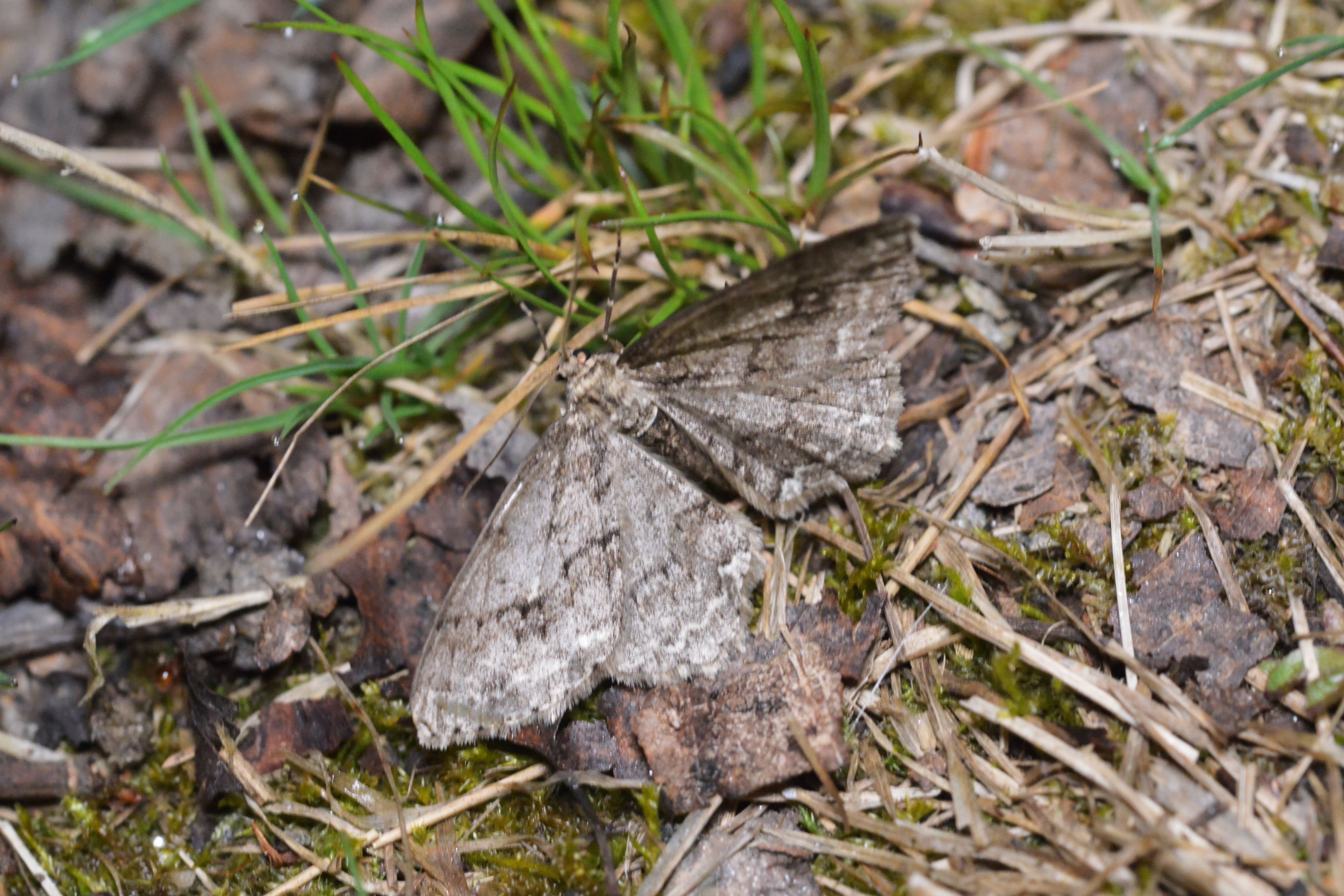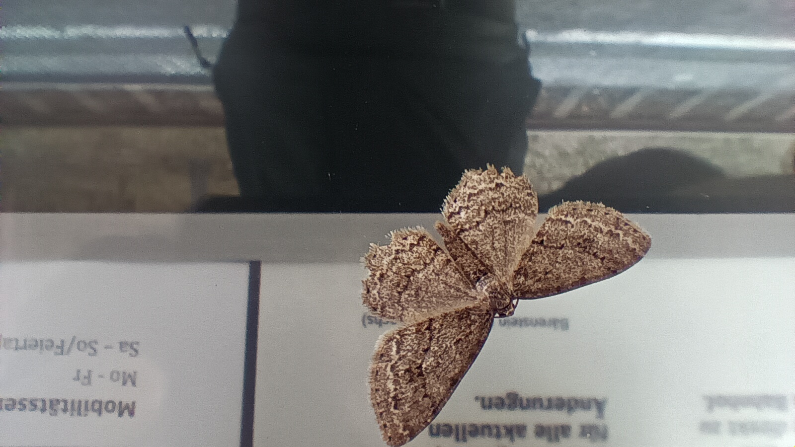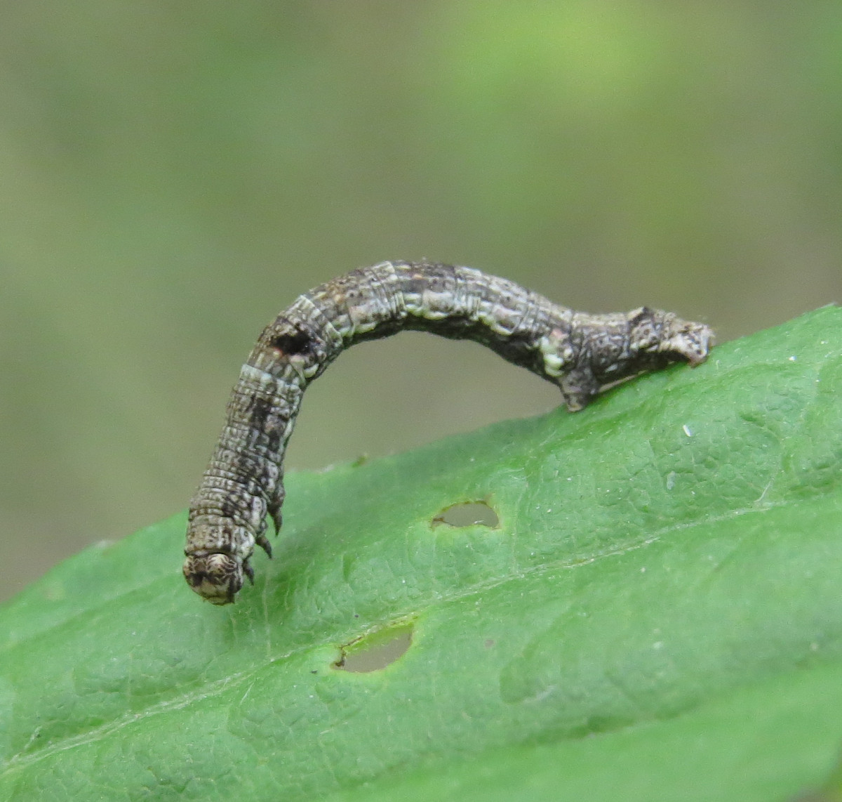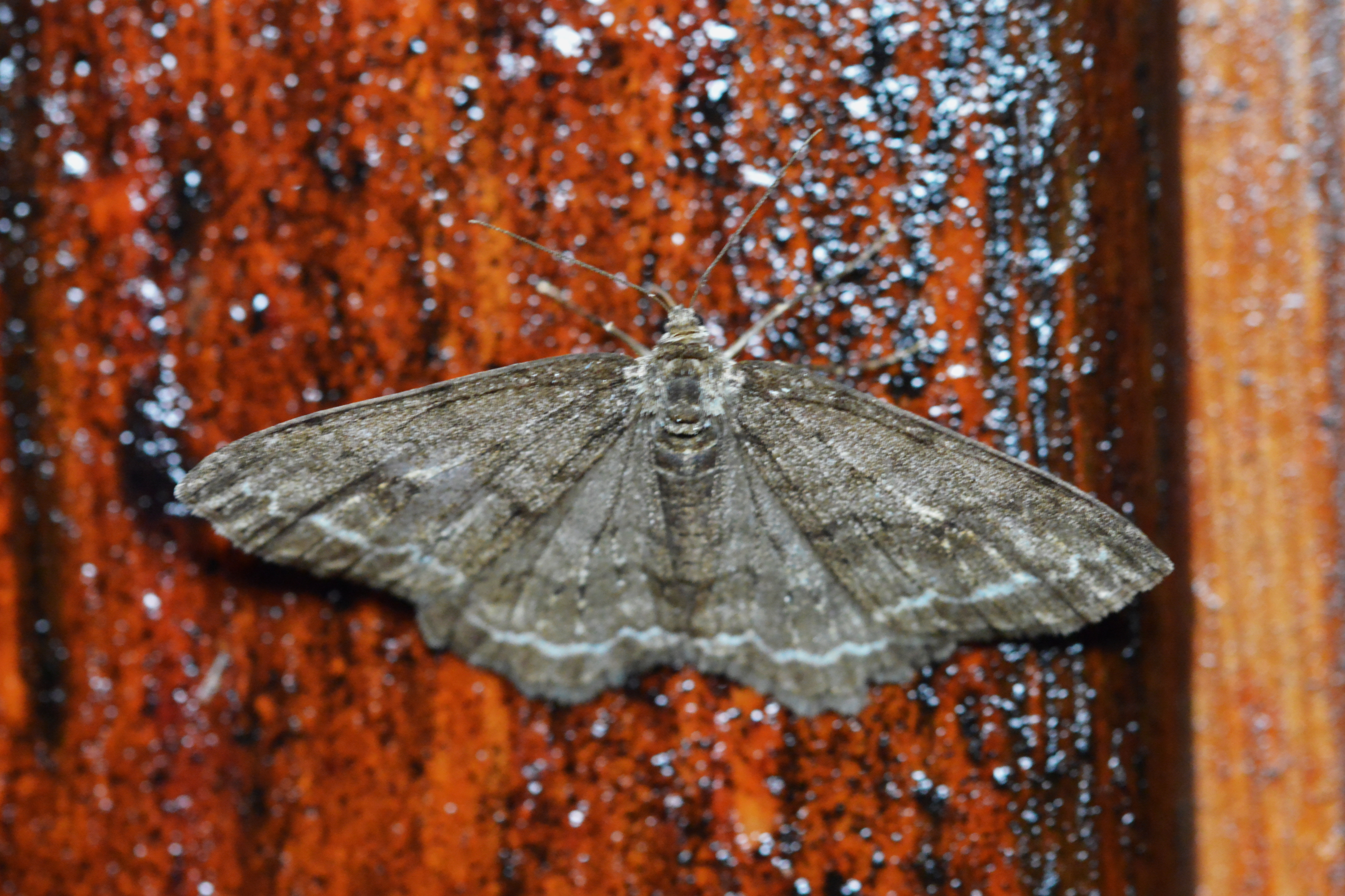 Ectropis crepuscularia (Denis & Schiffermüller, 1775), Chemnitz: Zeisigwald//Planitzwiese, 11.4.2018, seit Tagen frühsommerliche Temperaturen, passiver Lichtfang an hellem Gebäude, natürliche Farbe grau-grün