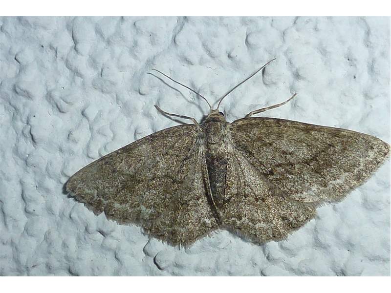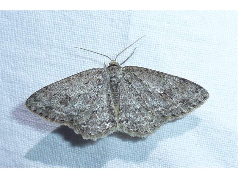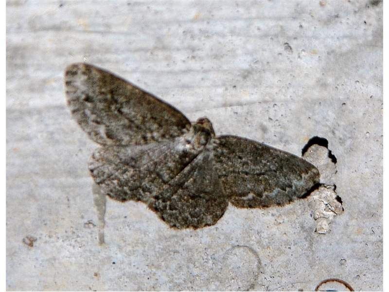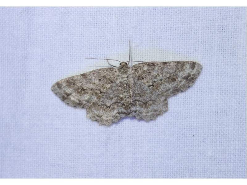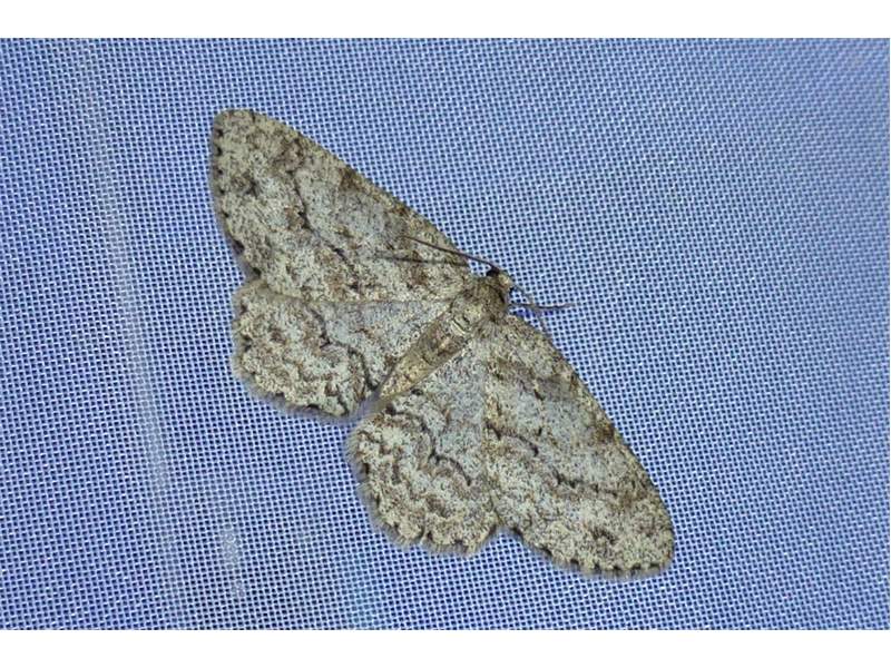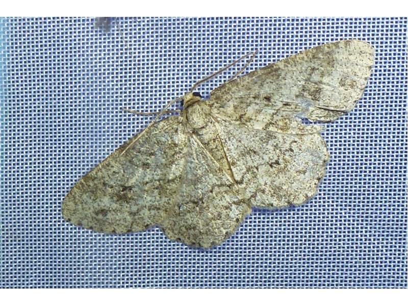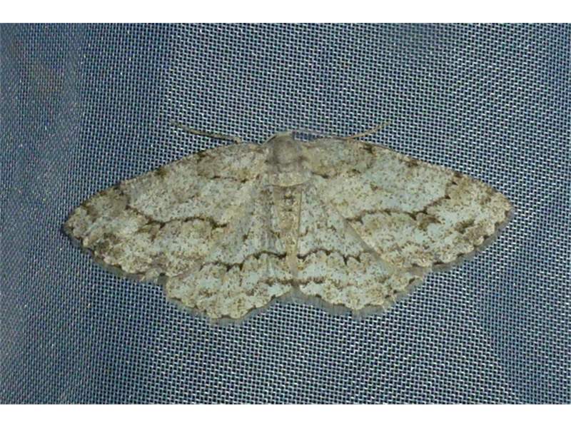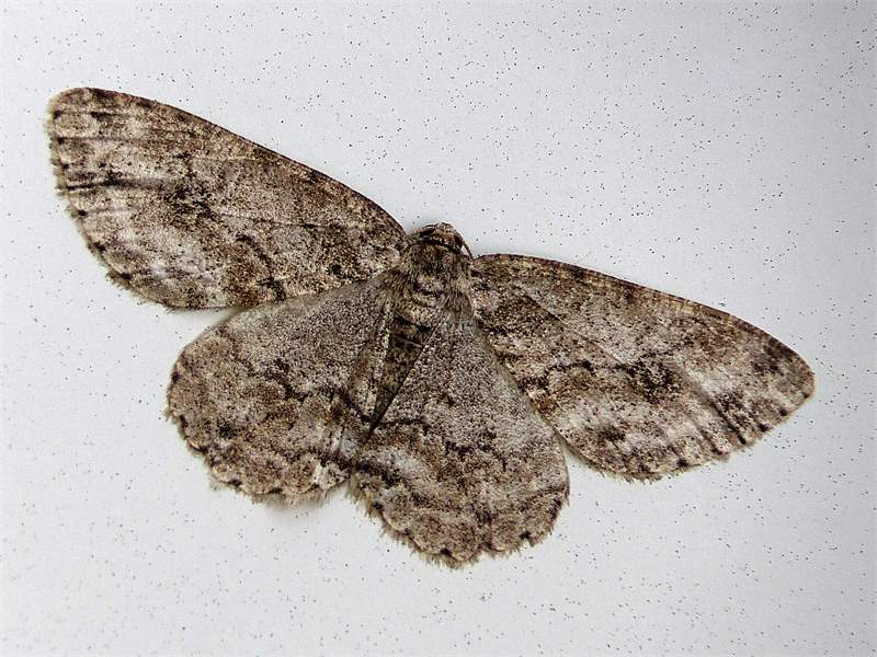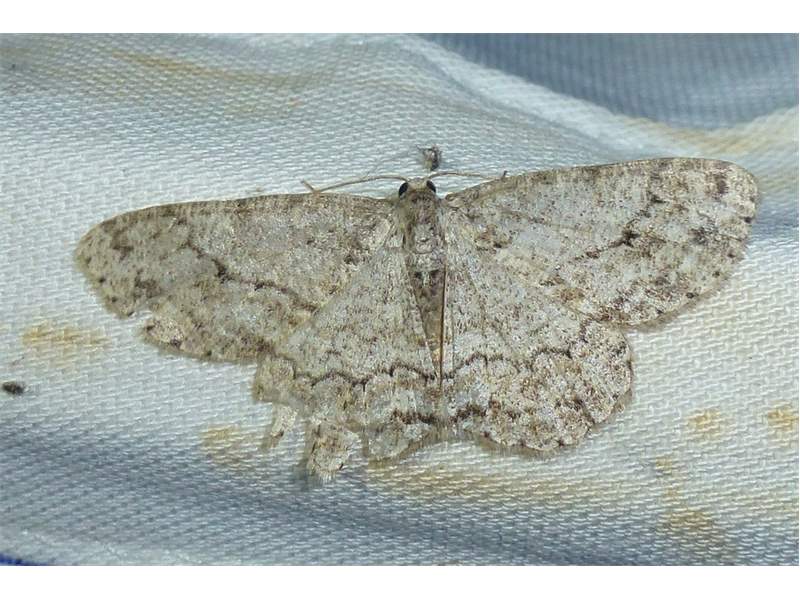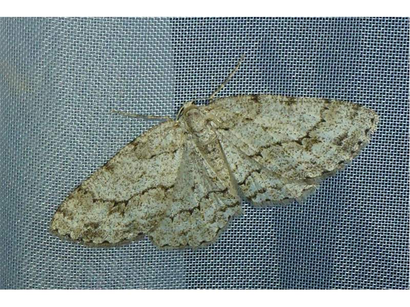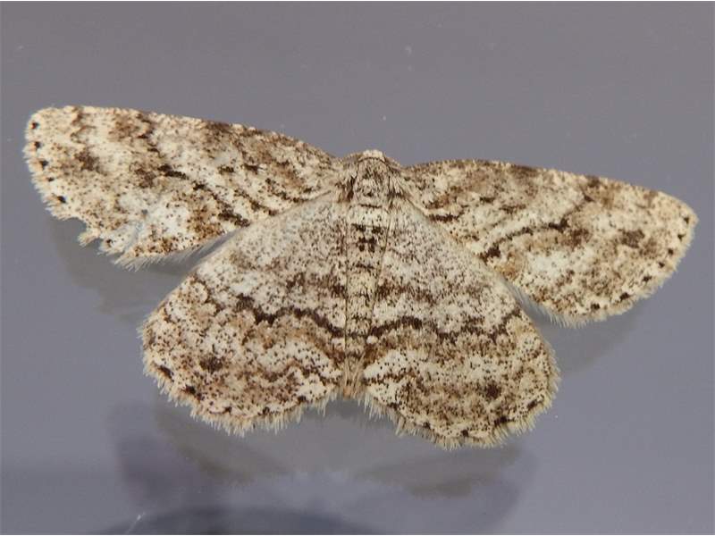 Ectropis crepuscularia (Denis & Schiffermüller, 1775), Chemnitz: Zeisigwald//Planitzwiese, 11.4.2018, seit Tagen frühsommerliche Temperaturen, passiver Lichtfang an hellem Gebäude, natürliche Farbe grau-grün (© Lutz Böttger, Chemnitz)( Bild vergrößern)