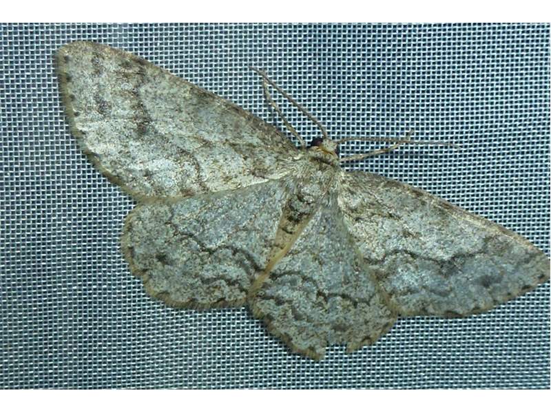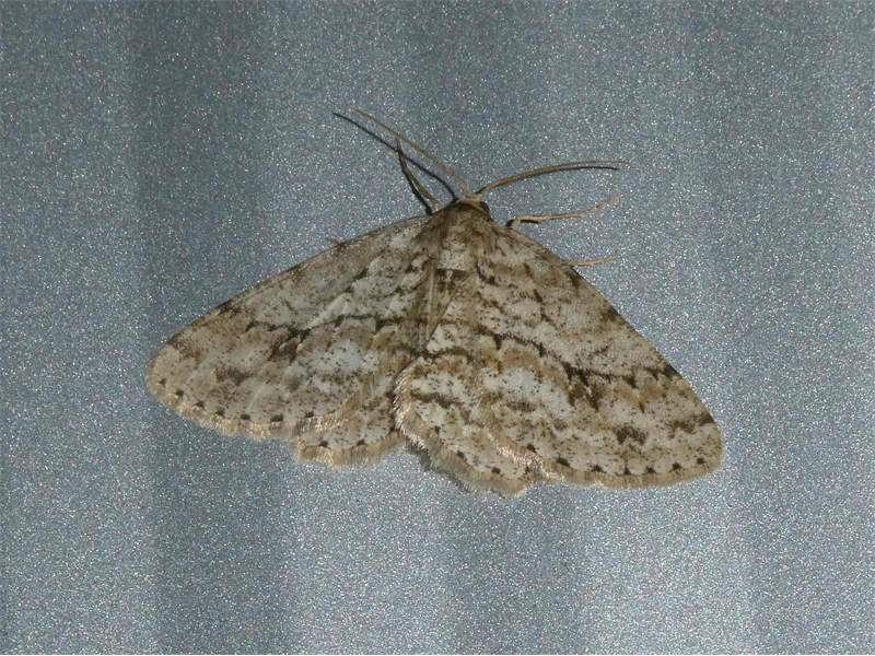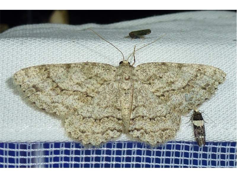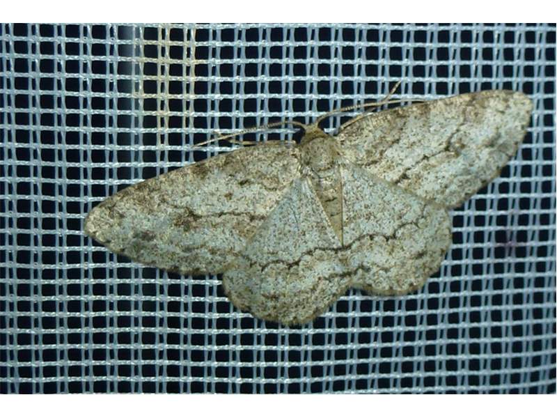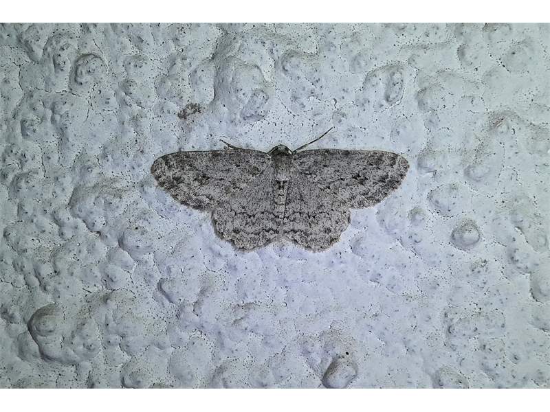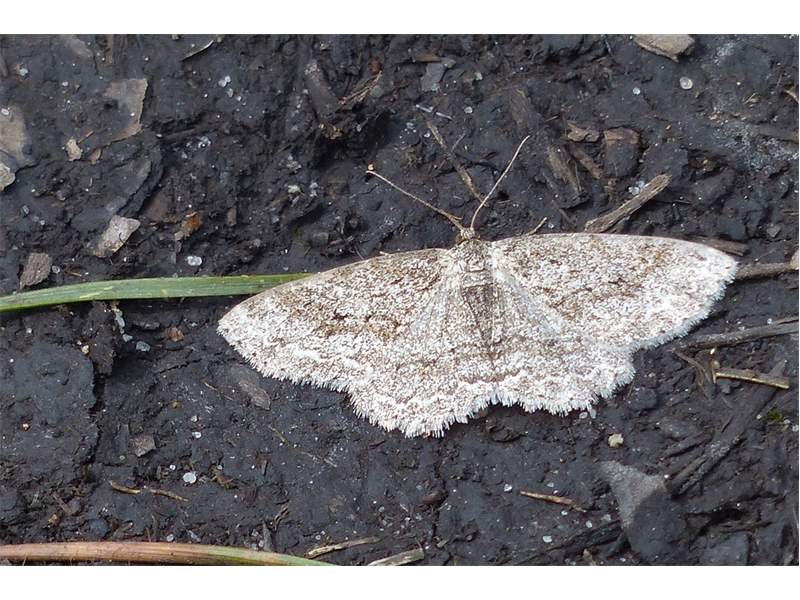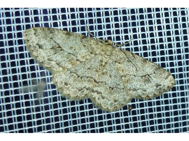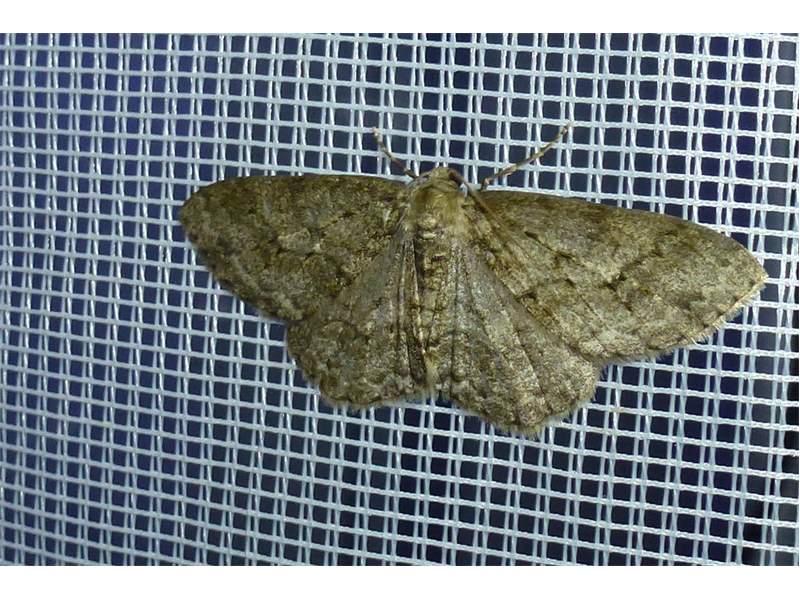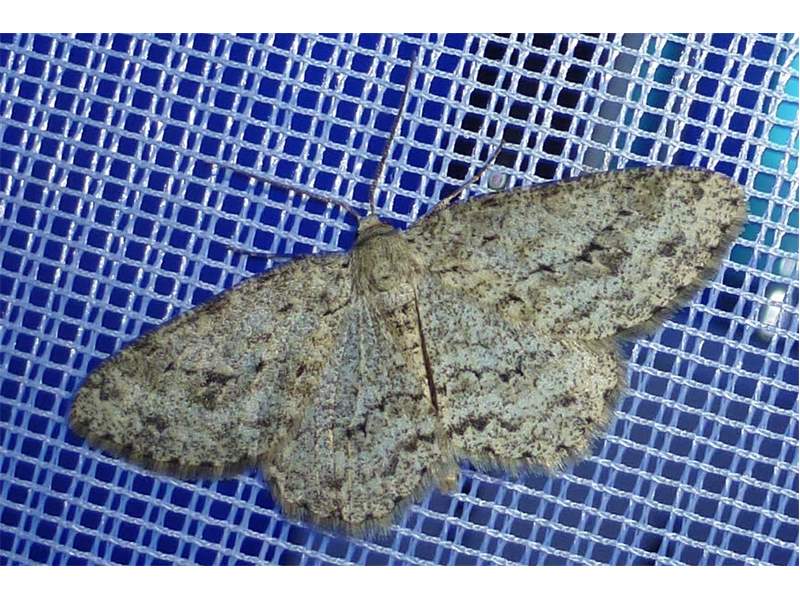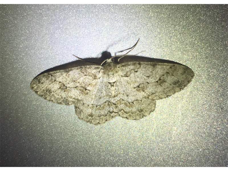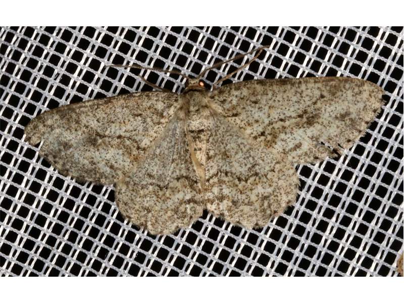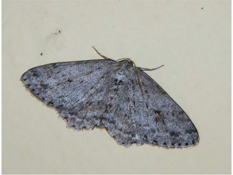 Ectropis crepuscularia (Denis & Schiffermüller, 1775), Chemnitz: Zeisigwald//Planitzwiese, 11.4.2018, seit Tagen frühsommerliche Temperaturen, passiver Lichtfang an hellem Gebäude, natürliche Farbe grau-grün (© Lutz Böttger, Chemnitz)( Bild vergrößern)
