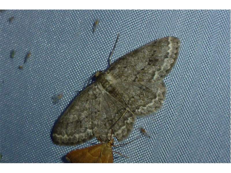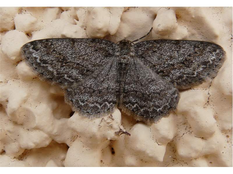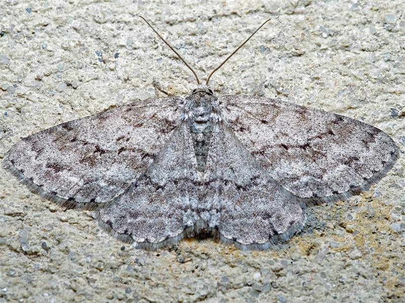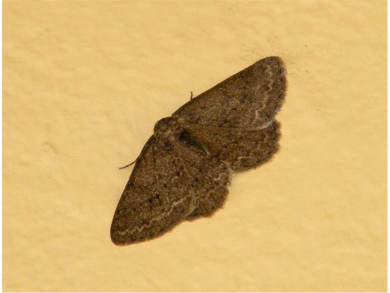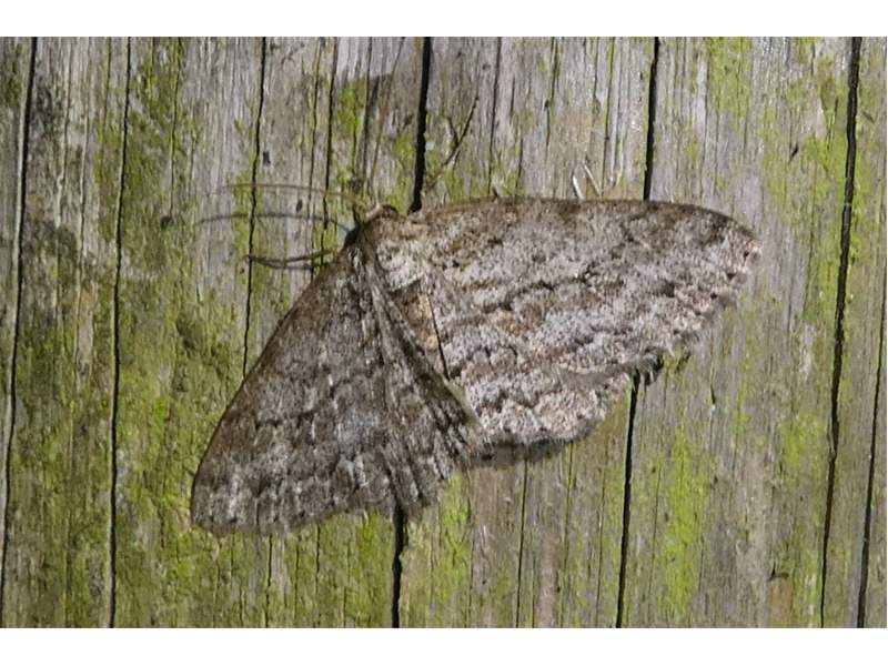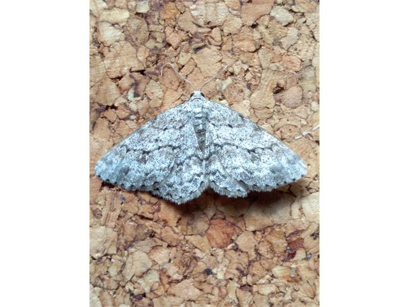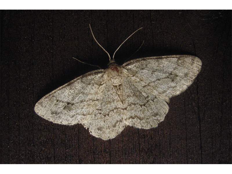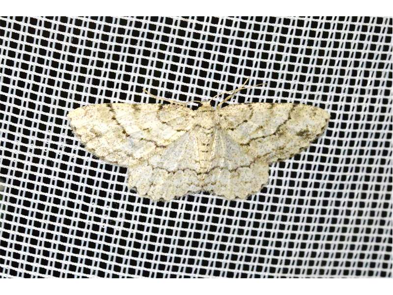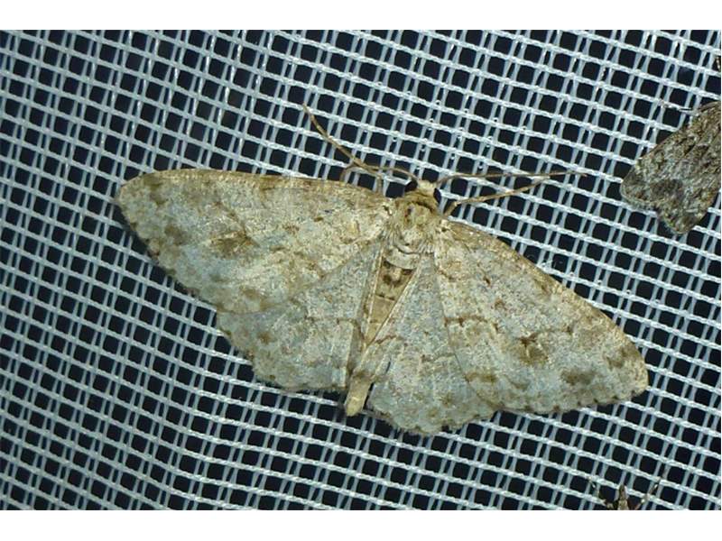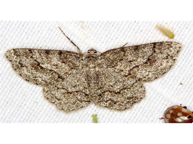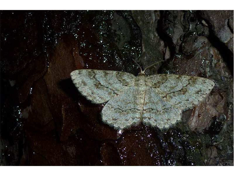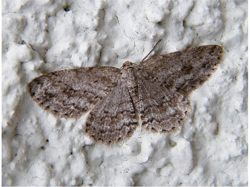 Ectropis crepuscularia (Denis & Schiffermüller, 1775), Chemnitz: Zeisigwald//Planitzwiese, 11.4.2018, seit Tagen frühsommerliche Temperaturen, passiver Lichtfang an hellem Gebäude, natürliche Farbe grau-grün (© Lutz Böttger, Chemnitz)( Bild vergrößern)