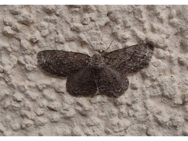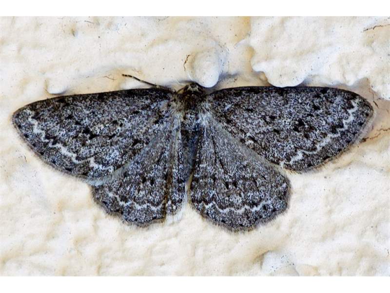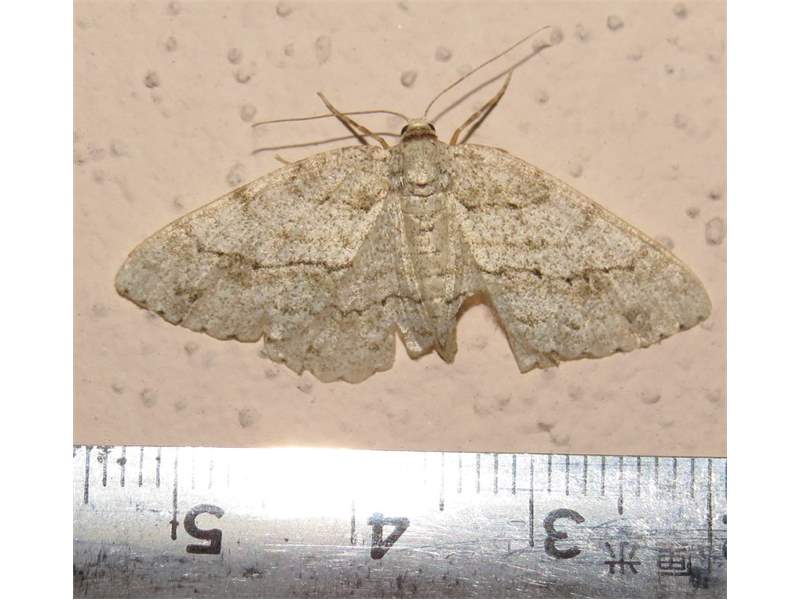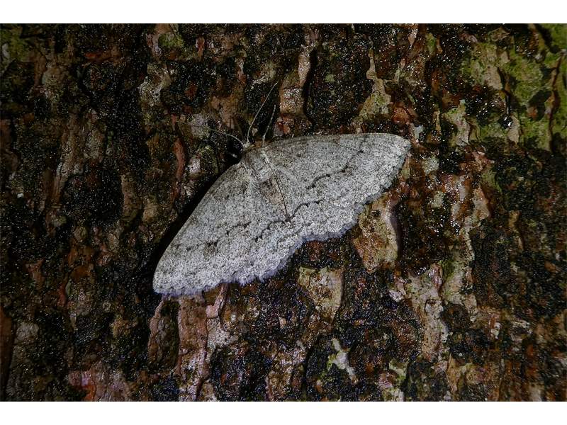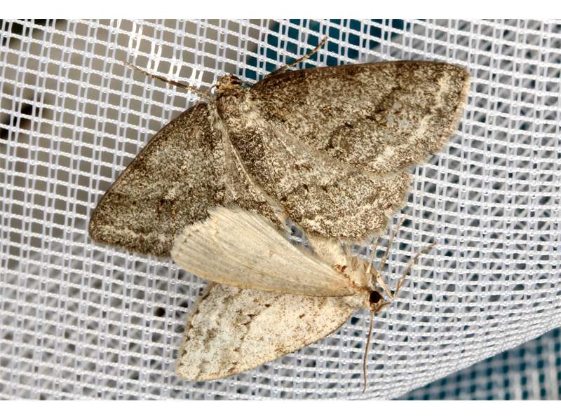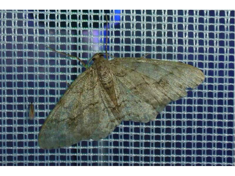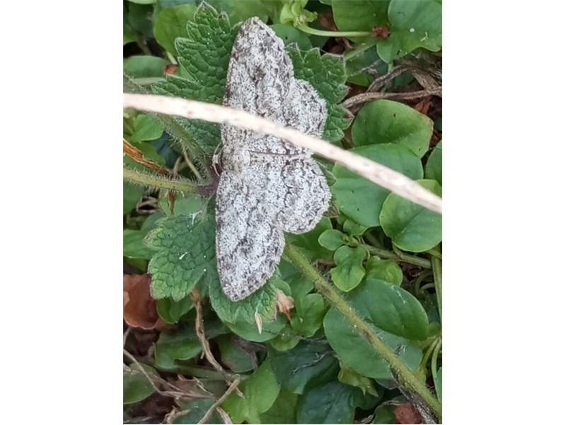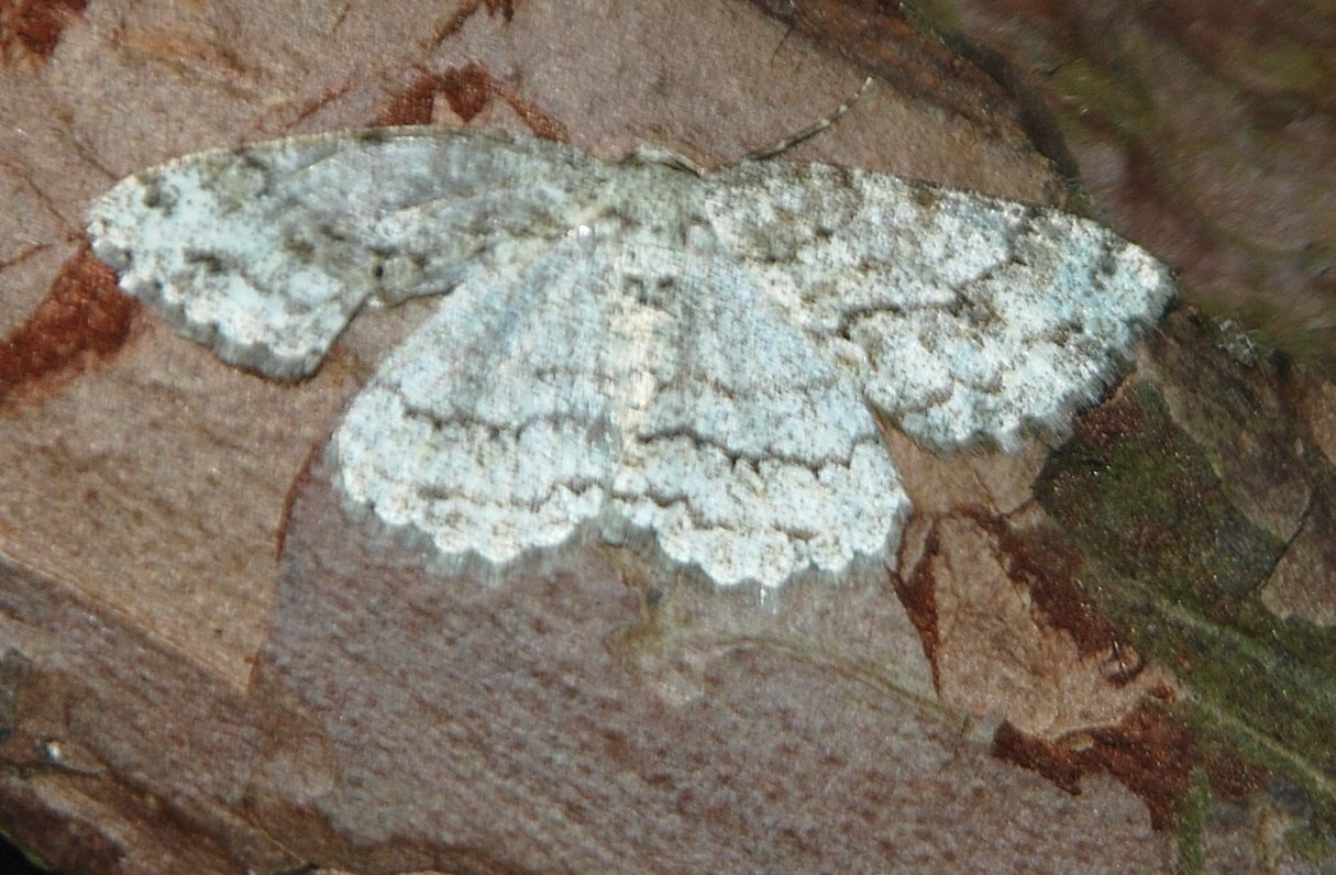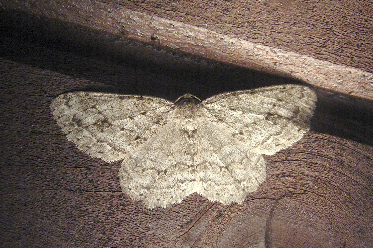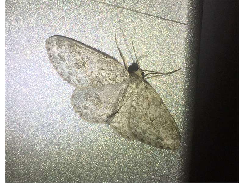 Ectropis crepuscularia (Denis & Schiffermüller, 1775), Chemnitz: Zeisigwald//Planitzwiese, 11.4.2018, seit Tagen frühsommerliche Temperaturen, passiver Lichtfang an hellem Gebäude, natürliche Farbe grau-grün (© Lutz Böttger, Chemnitz)( Bild vergrößern)