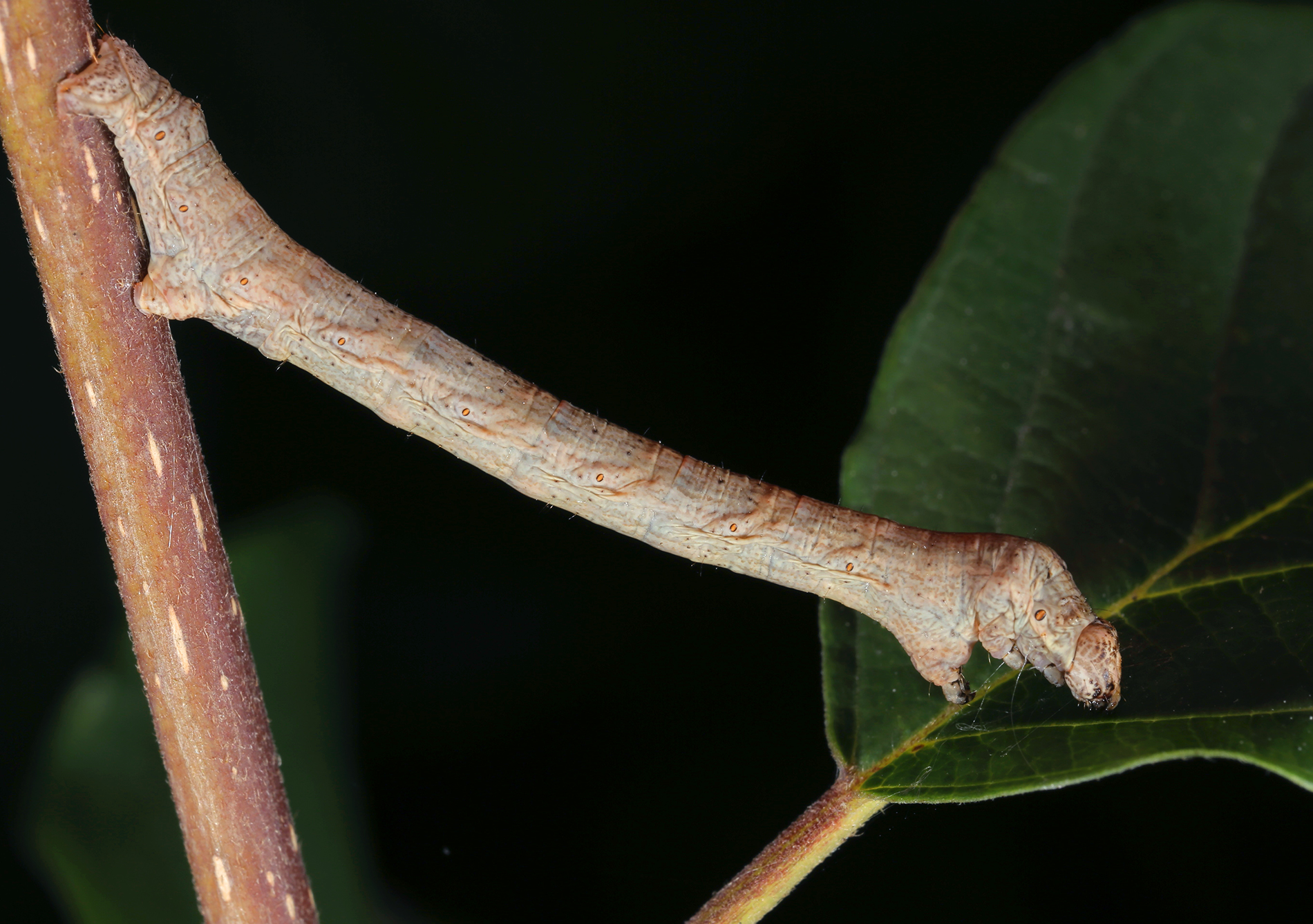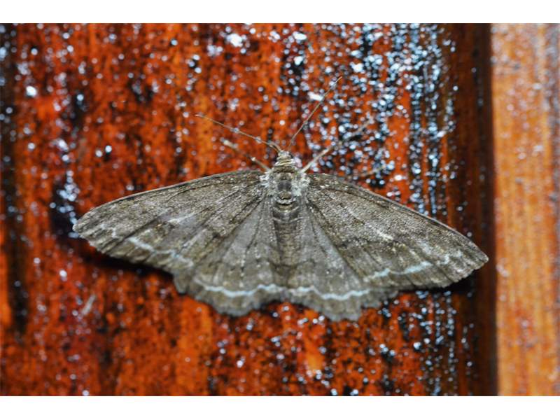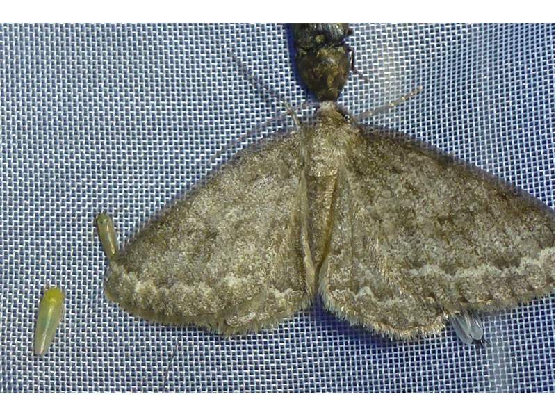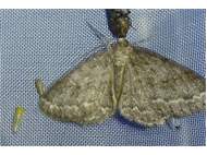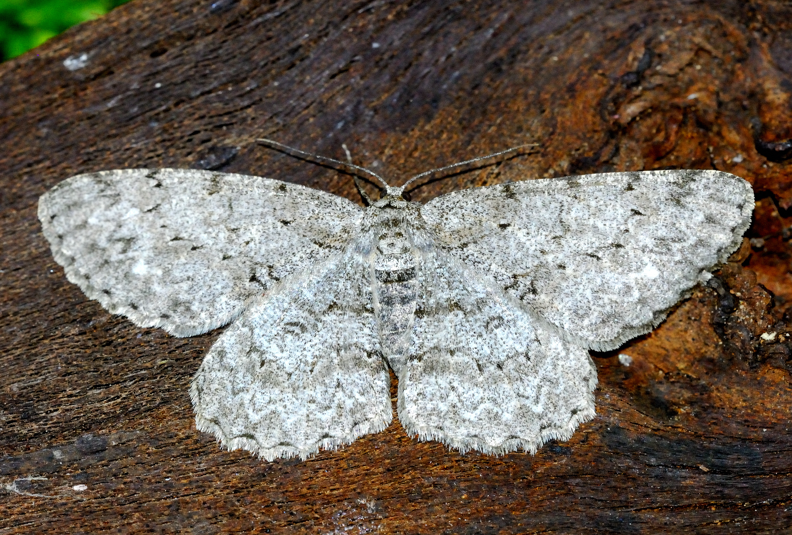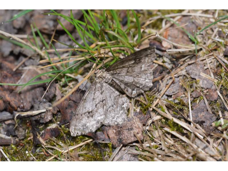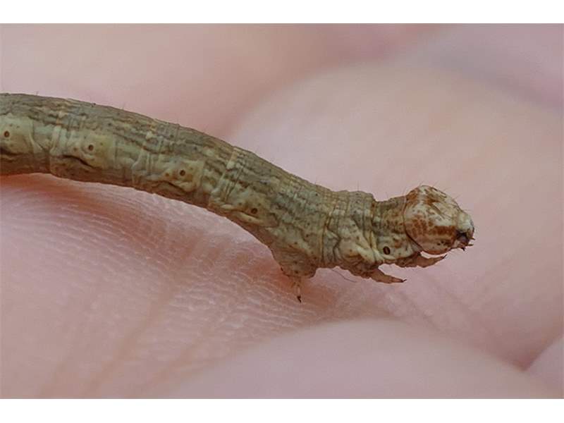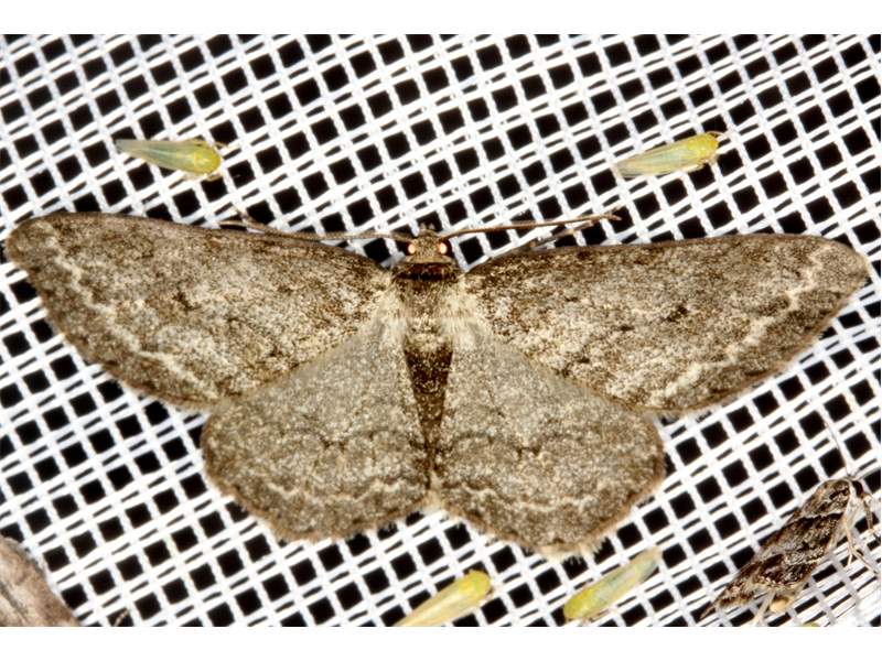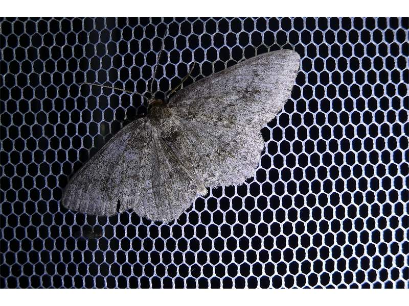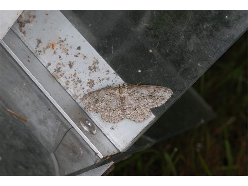 Ectropis crepuscularia (Denis & Schiffermüller, 1775), Chemnitz: Zeisigwald//Planitzwiese, 11.4.2018, seit Tagen frühsommerliche Temperaturen, passiver Lichtfang an hellem Gebäude, natürliche Farbe grau-grün (© Lutz Böttger, Chemnitz)( Bild vergrößern)