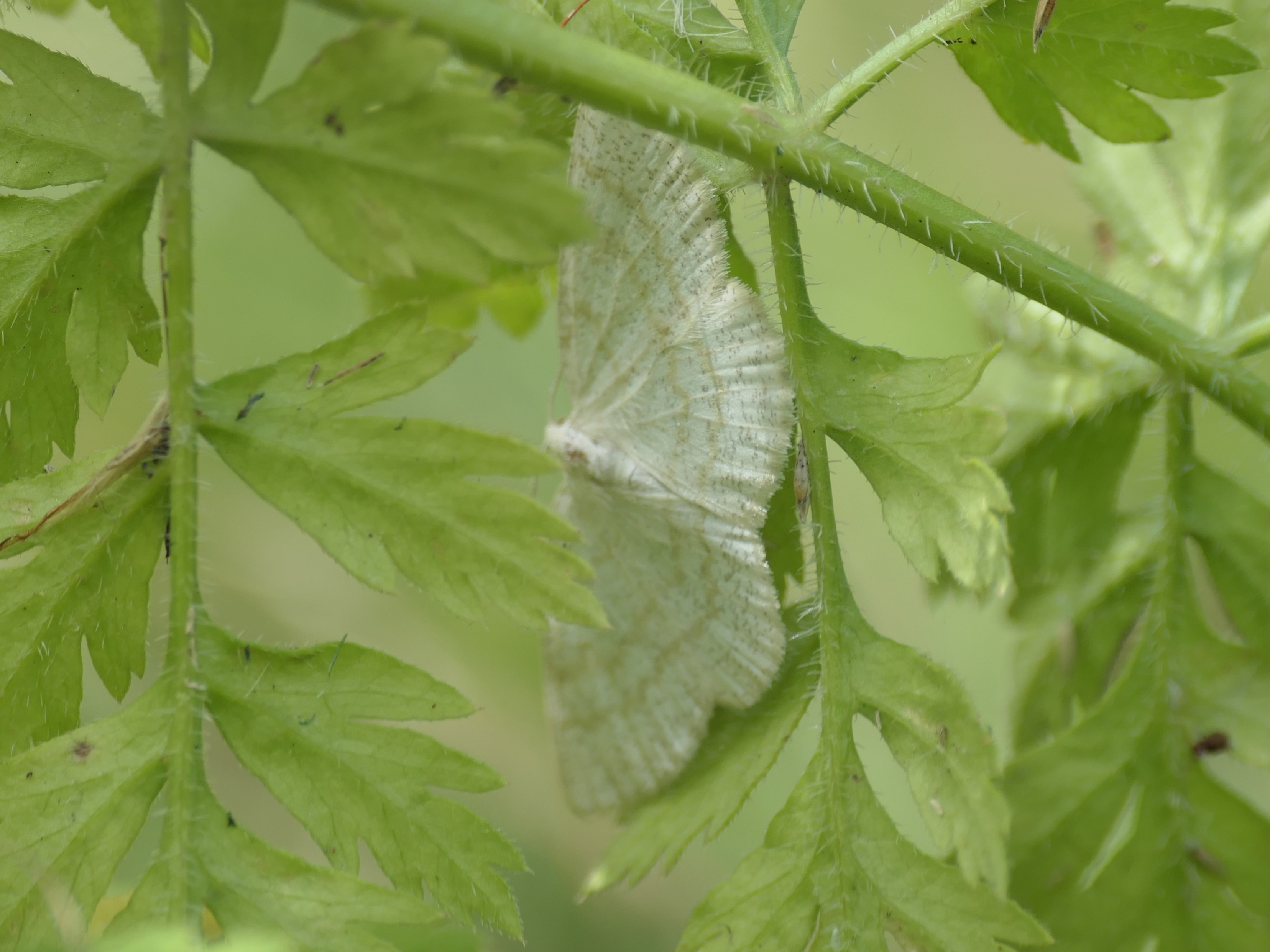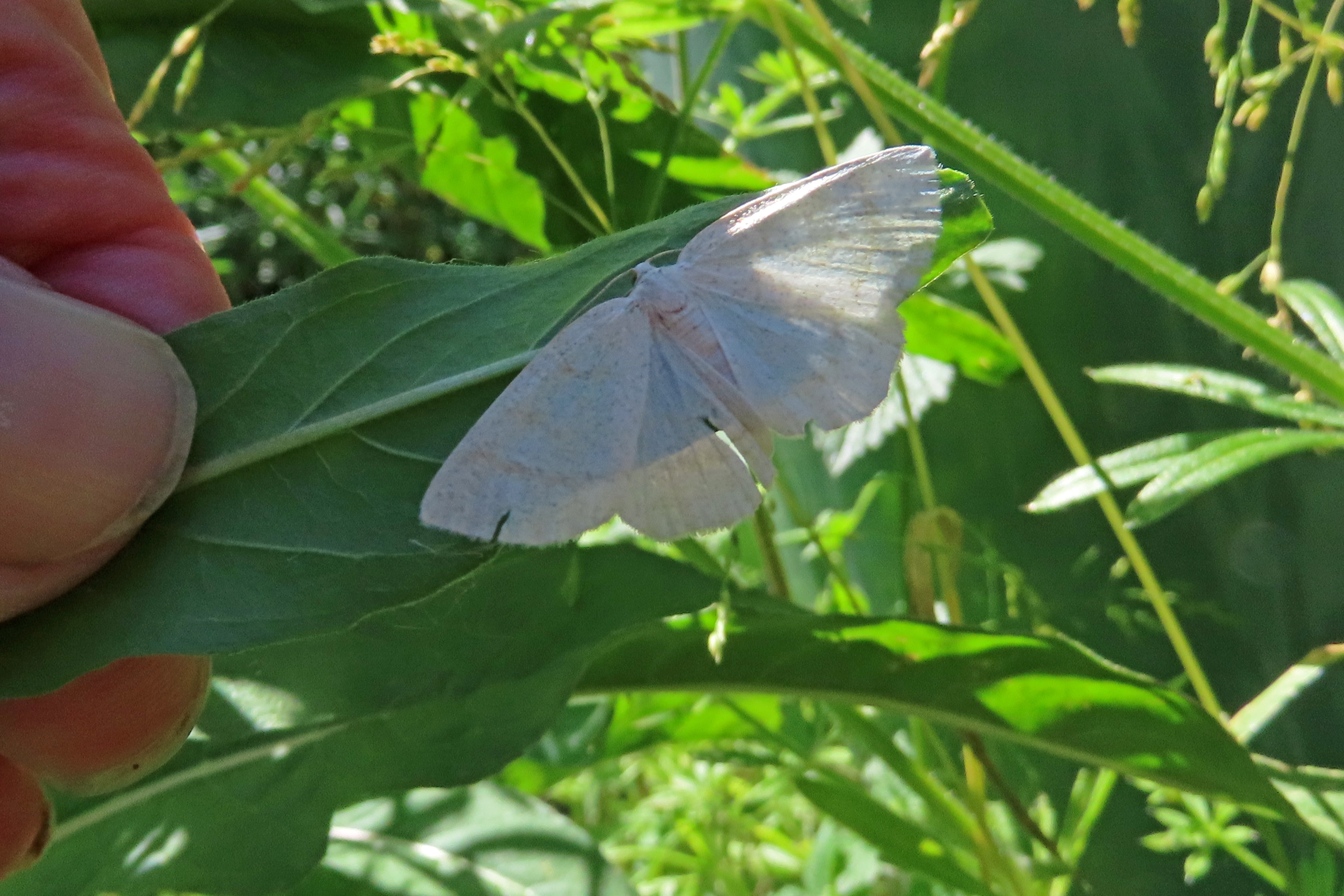 Braunstirn-Weißspanner Aufmerksamkeit erregend im krautigen Übergangsbereich zum Luppeauwald nahe 06254 Horburg-Masslau (Sachsen-Anhalt) 06. August 2022