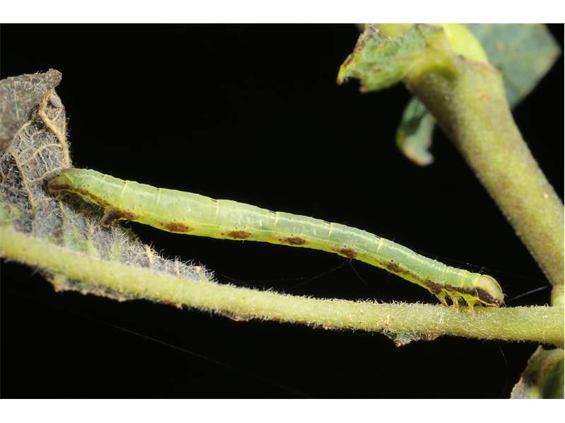 Cabera exanthemata-Larve auf Salweide am 30.09.2013 in der Dresdner Heide