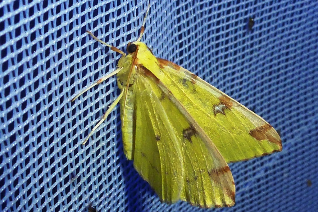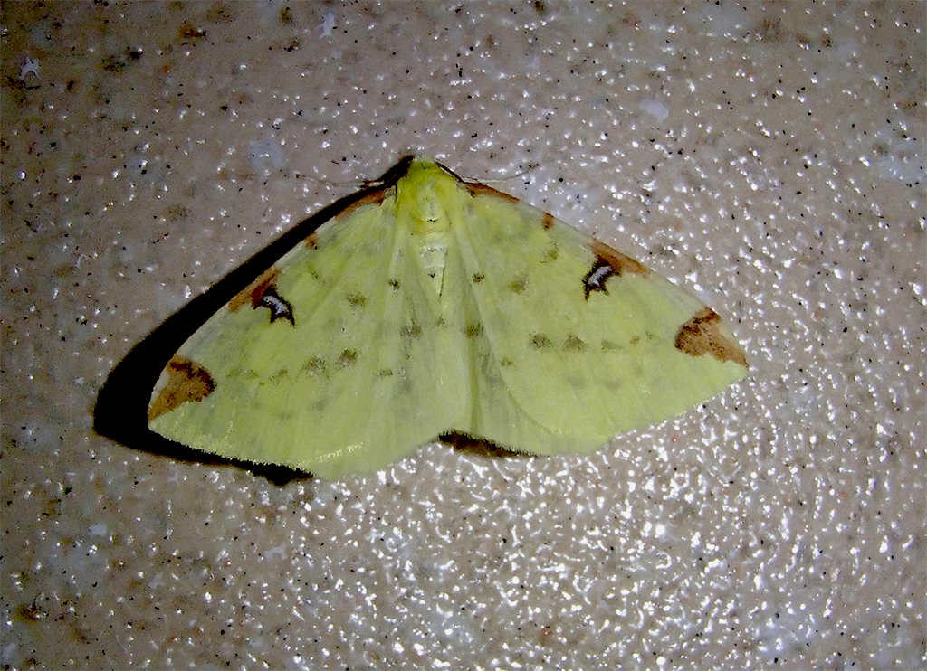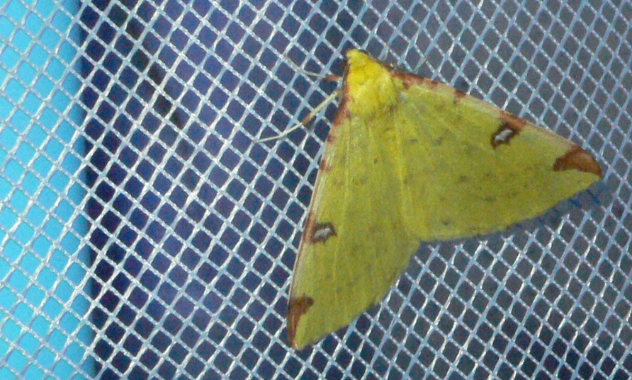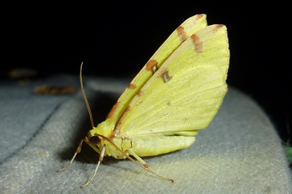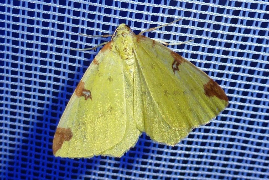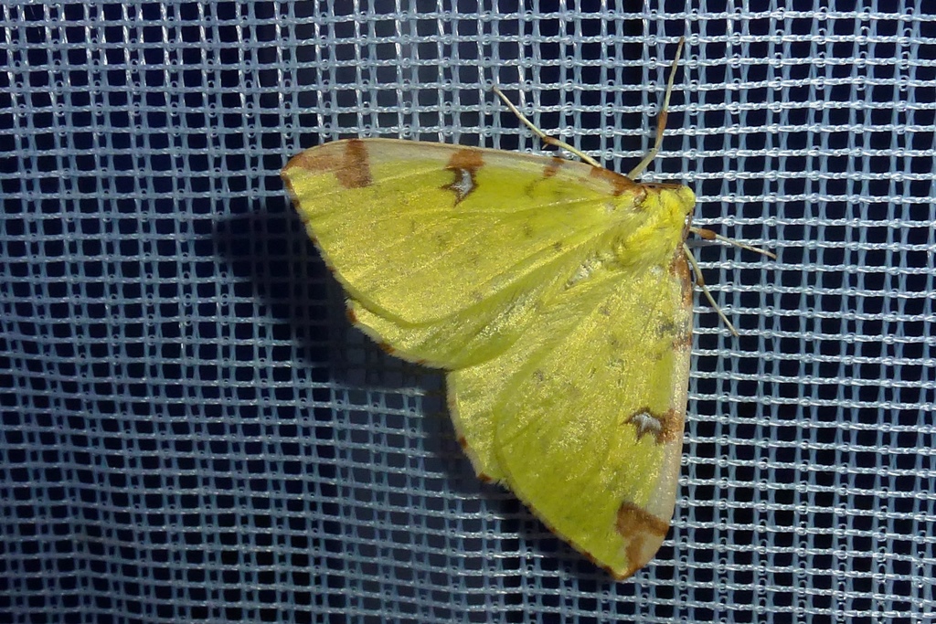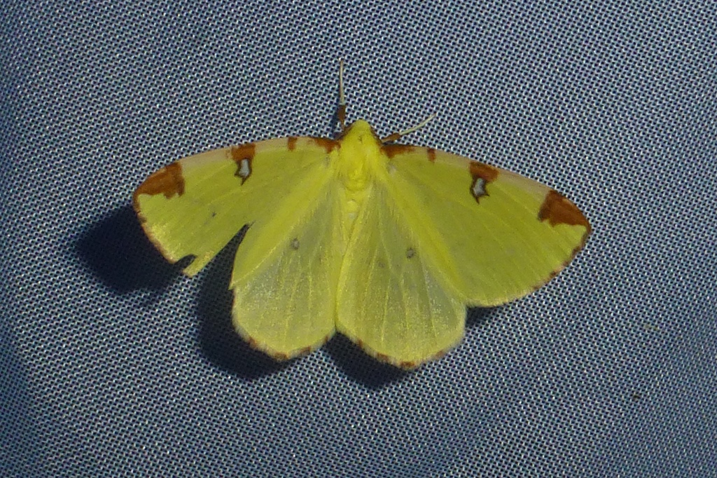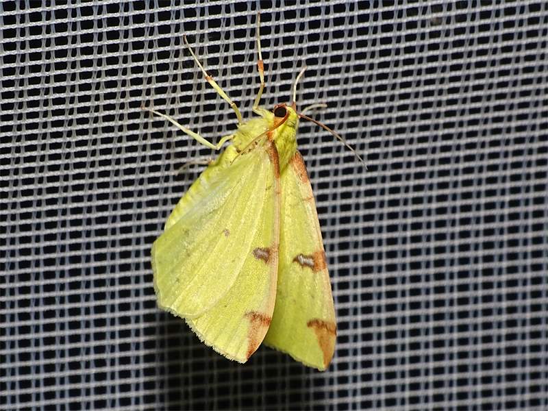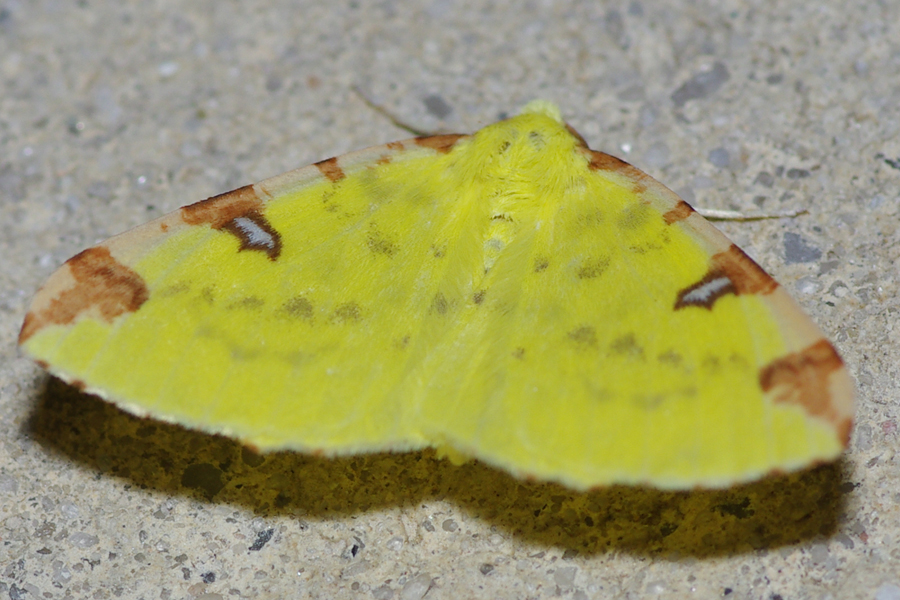 Gelbspanner, Ende Mai in Hoyerswerda, Klein Neida, am Licht