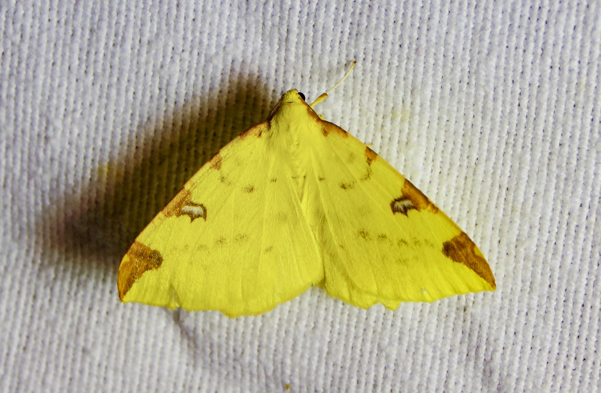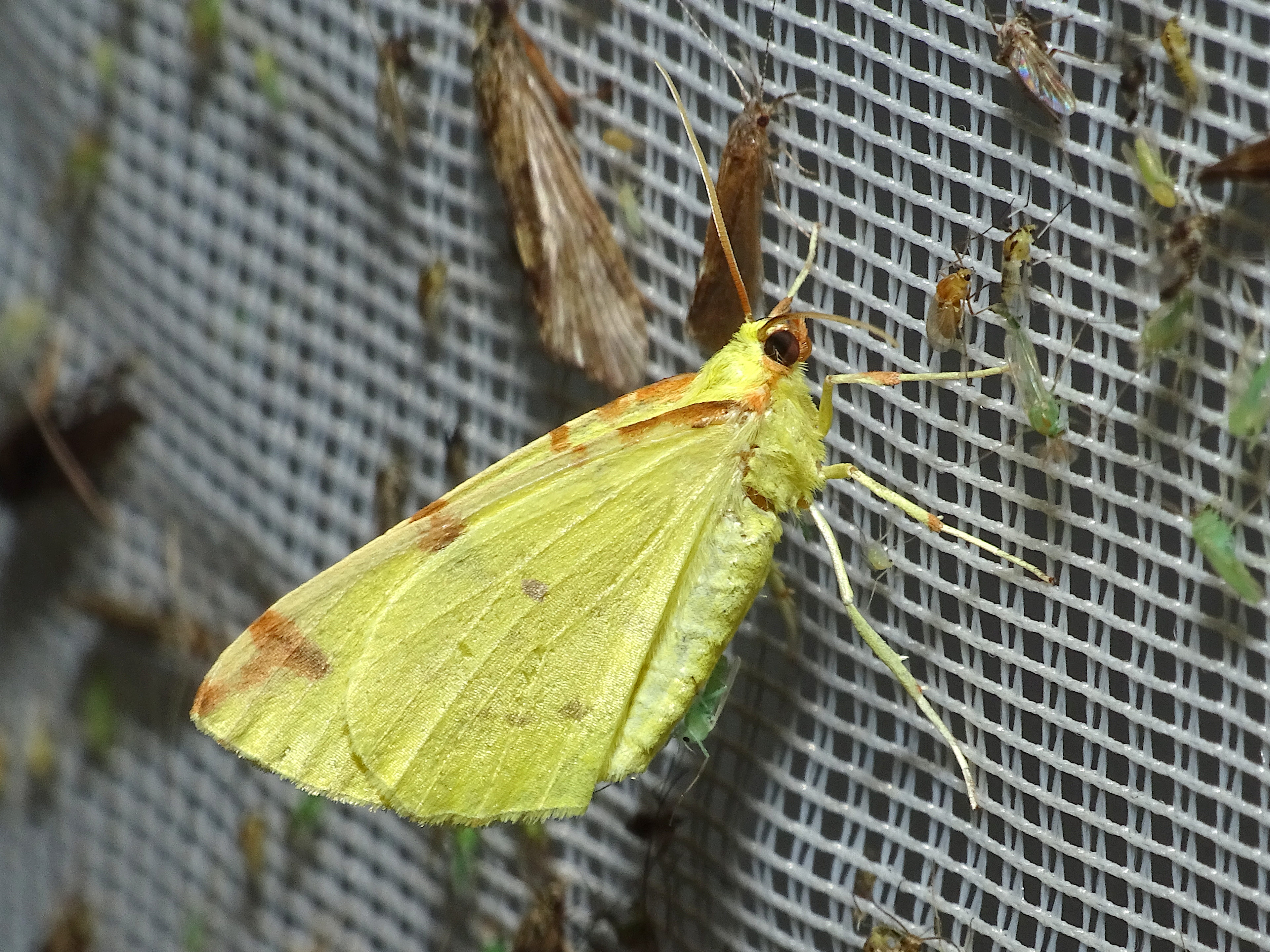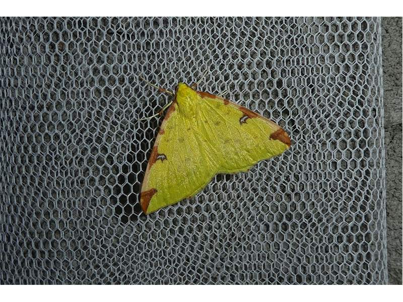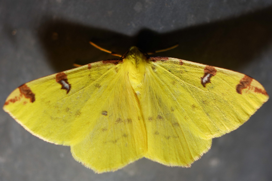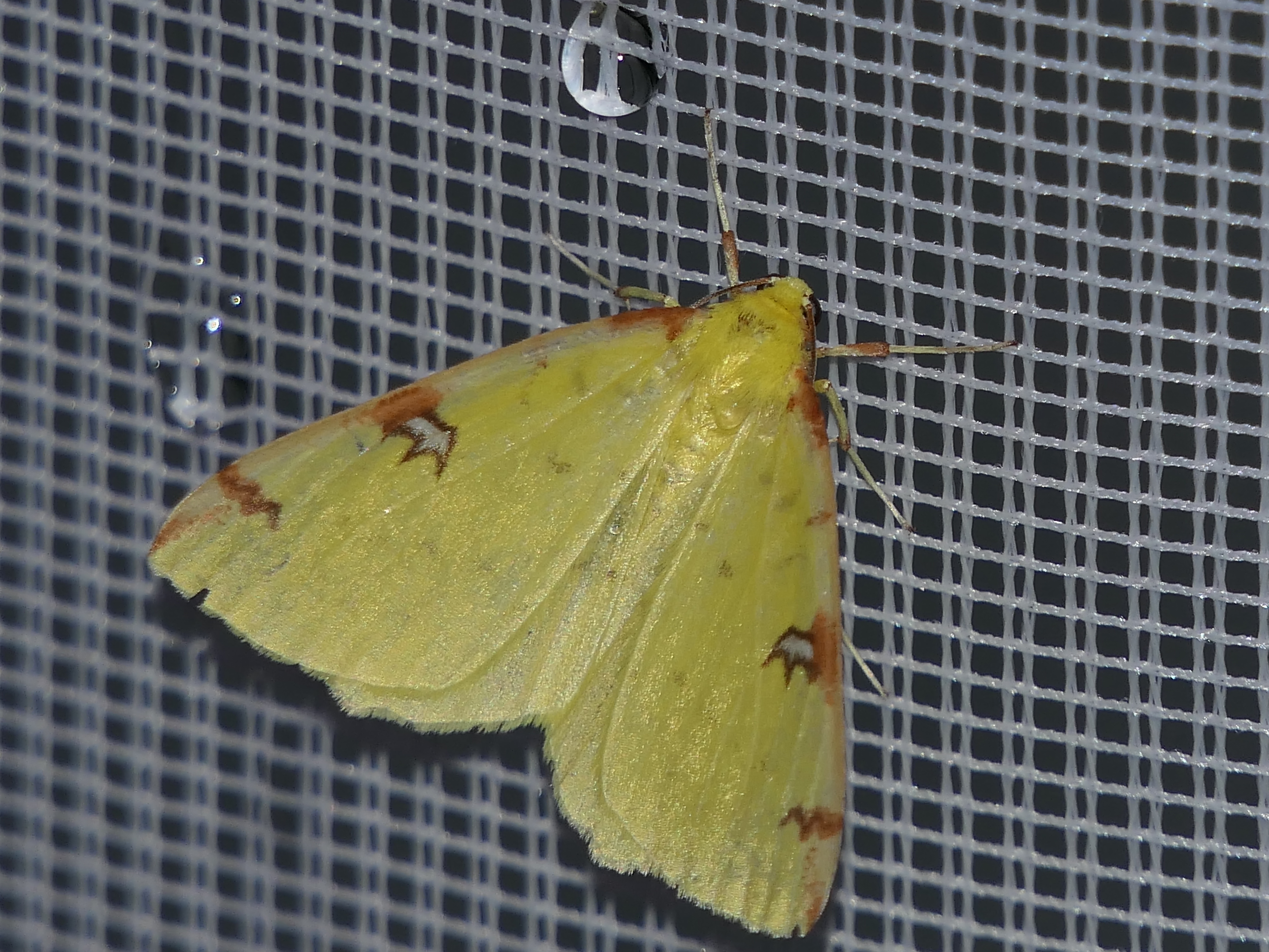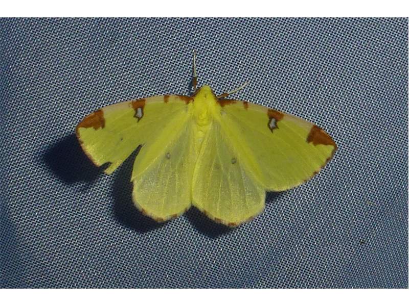 Gelbspanner, Ende Mai in Hoyerswerda, Klein Neida, am Licht